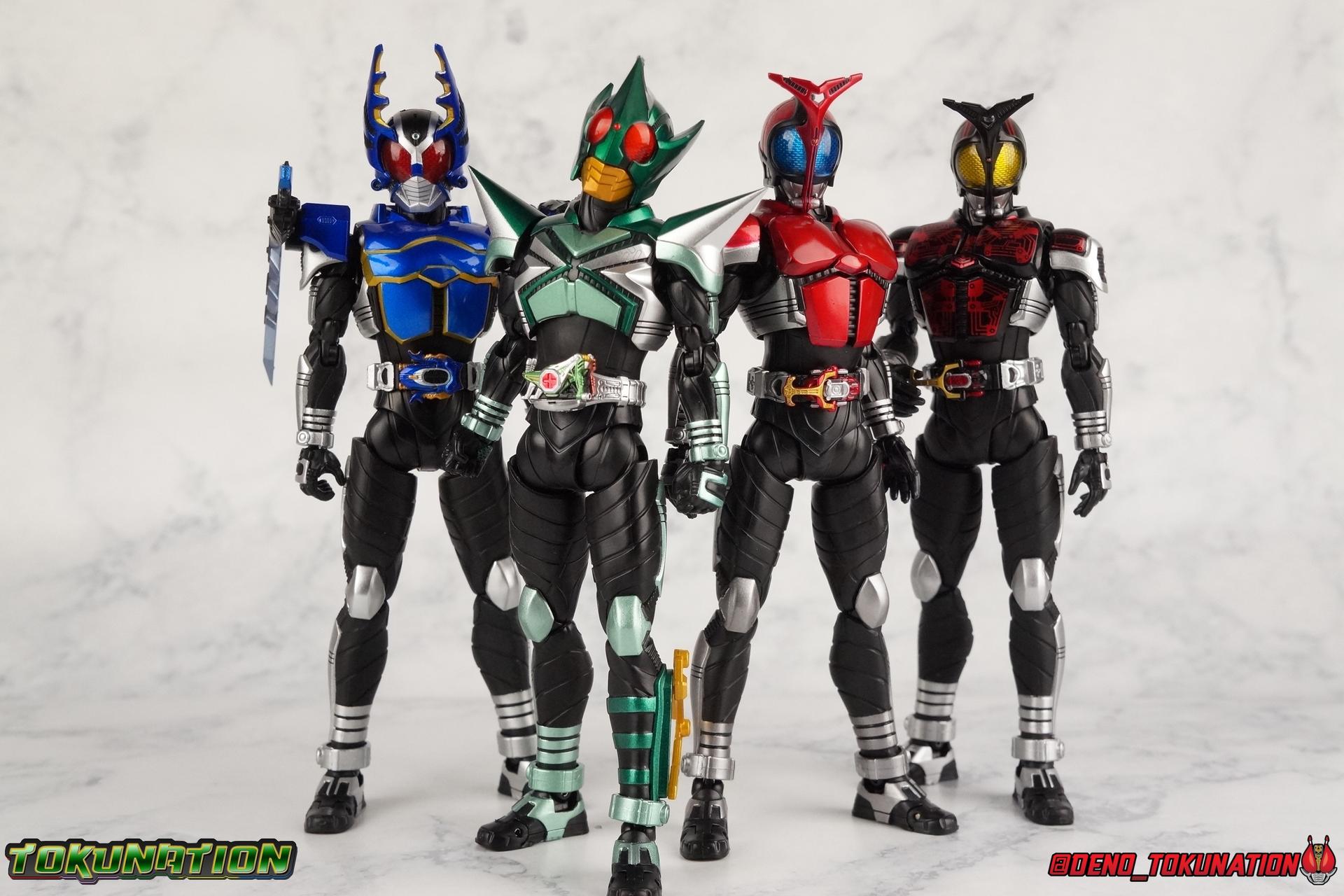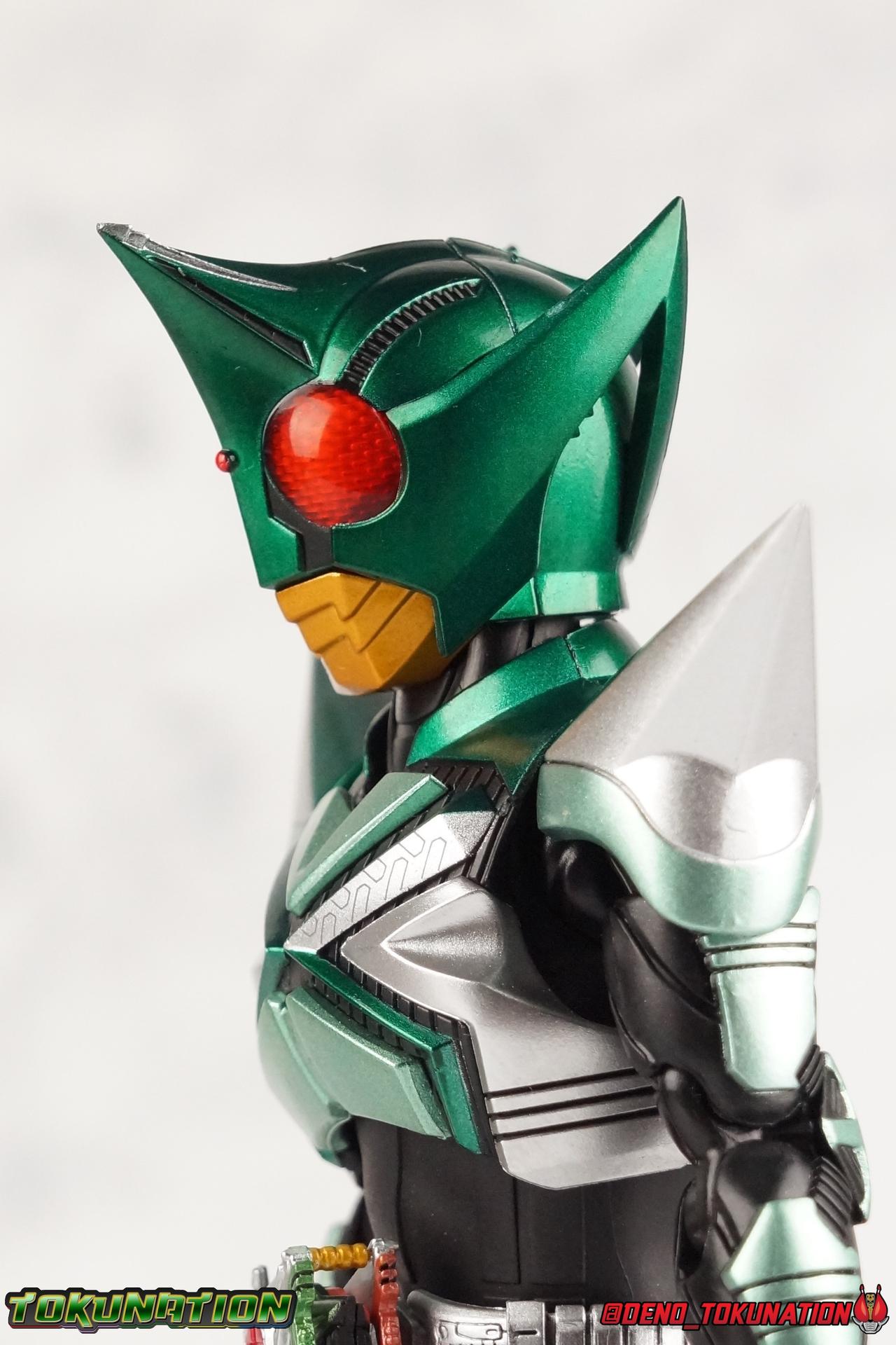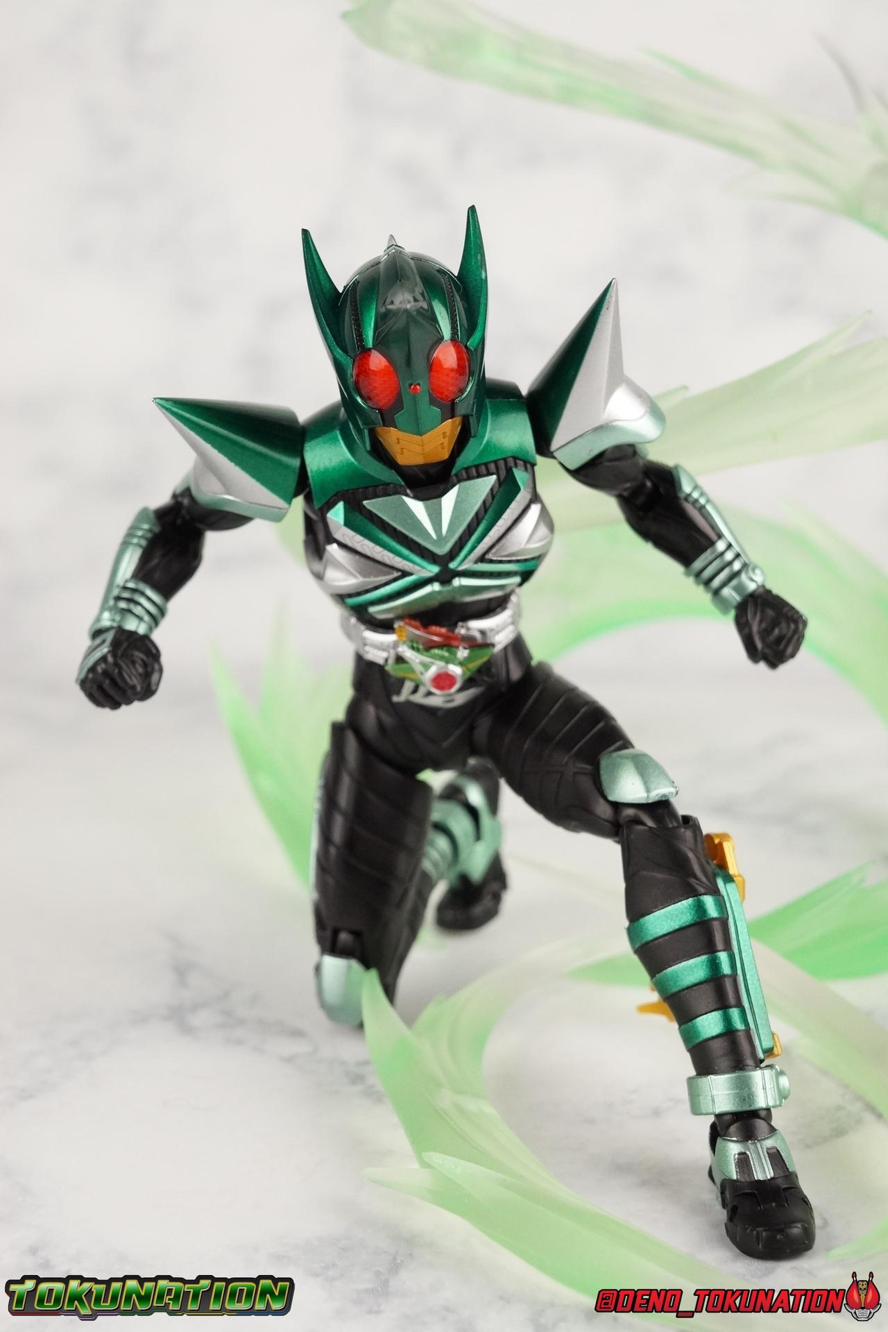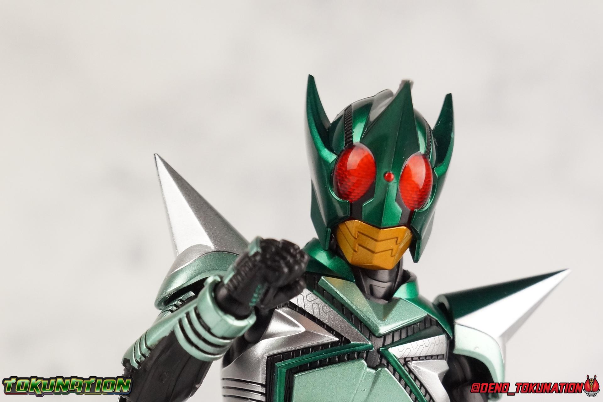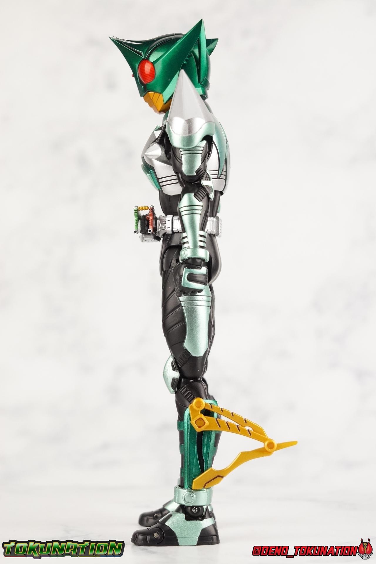 Sou Yaguruma was once the top dog of ZECT, commanding legions of ZECTroopers as Kamen Rider TheBee. The advocate of "perfect harmony" would soon be humbled however by Souji Tendou, and begin walking a darker path of self-loathing that eventually (and inexplicably) lead him to his new identity as Kamen Rider Kickhopper! Now Yaguruma is the latest addition to the Shinkocchou Seihou premium renewal line of S.H. Figuarts! So let's dive into our review of the figure. Packaging That standard slipcover packaging of Shinkocchou Seihou returns again. I promise I really appreciate the ease of access this kind of packaging provides. I really like this design more than a standard figuarts square box, but they've gotta start spicing things up. The one monotone image across the front of the box is getting rather boring. The presentation is nice but it's starting to fall flat in the face of more colorful and creative mainline releases like those from Ex-Aid is all. Main Figure Just as with Kabuto, Gattack, & Dark Kabuto before him, Kickhopper is an overwhelmingly needed update to an outdated and obsolete figure. The original release was plagued by the now standard QC issues of the original Kabuto line. Especially with those bowed legs. I'm happy to report that Seihou Kickhopper is the perfect successor to that original release. As with my last couple Seihou galleries form this series, you'll find a lot of similar passages in my review, it's just unavoidable when these figures share the same basic body and tooling aside from a few key areas. But I'll definitely zero in on the differences with this one. To start, the most iconic thing about Kickhopper is of course the Anchor Joint weapon attached to his left ankle. This unique item not only gives Kickhopper the 'jump' in his Rider Jump, but packs all the power behind his Rider Kick. It's also the most improved thing about this release. On the original figure it was a static accessory, permanently fixed in placed. This go around however the Anchor Joint is actually jointed and can be slid down the shin with the blade fully extendable to properly recreate a Rider Kick. The style of hips originally implemented in this mold provide a wide and balanced motion that allows you to replicate all of Kickhoppers most iconic poses & attacks. Though I do still think any standing kick looks pretty goofy in figure form. I would say the hips are limited only by their design as they do impact the waist assembly a little more prematurely than I'd like. But it's undeniable how versatile they are compared to many figures. The Hopper Zecter is really nicely detailed, especially when compared to the original. The details are sharp, the paint apps crisp, and it's even removeable. If you flip it around, the backside is also (properly) fully painted in Punch Hopper colors. It does pop off the buckle rather easily but it just looks so good. And while we don't have moving pectoral plates or flexible chest armor like with Kabuto & Dark Kabuto, Kickhopper's design is still pretty smooth, albeit a bit more limited in the upper body area. But you also don't have to worry about the torso impacting the Zecter. The new chest armor is really really nice though, it looks like a perfect replica of the show prop with really subtle paint details I had never really noticed before. The arms are free of nearly all obstruction thanks to wonderfully hinged shoulder pads. They do tend to look a little unnatural in some poses and expose the joints beneath however. But the elbows and wrist provide the same great range of motion we've come to expect from this mold, one that's still holding up very well 3 years on. Lastly we look at Kickhoppers head, which is just spot on. The original suffered from it's disproportionate size to the body as well as some issues with length and width. I'm happy to report that this go around the head is the correct size relative to the body and also the proper glossy green. The mouth plate is a brilliant gold and the compound eyes really sparkle in the right light. As with his 3 predecessors, Shinkocchou Seihou Kickhopper really is the ultimate apology for the original release. And being able to FINALLY recreate my favorite moment from Kabuto, the Triple Rider Kick in Seihou form, is the ultimate treat. Accessories Not much here, but just what you need: 1- Hopper Zecter (open). This is the flipped version of the Hopper Zecter from Kickhopper's Rider Jump/Kick combination. After the moving parts that were present on Seihou Kabuto's Zecter years ago I was surprised that Seihou Gattacks' was a swap out part instead, and I'm surprised again that the Hopper Zecter is the same. It just seems like something that could have been engineered to work instead. I mean just look at the W Driver & Gaia Memories. 2 - sets of hands. These hands are a bit odd if you ask me. The open hands are a very stiff variety of open palm. They aren't very expressive at all. The other pair are the standard type of "holding things" hands, and they look almost perfectly shaped for handlebars on a Rider Machine. But the Hopper Bros had no such bikes, nor any weapons they would have held. So these hands are a really pointless inclusion. The two glaring omissions that most collectors will notice are undoubtedly items included with the original figuart. The ramen bowl as well as a personalized Tamashii Stage. The ramen bowl was a pretty hilarious and iconic accessory, signifying one of the goofier plots of the show. And while the stage isn't nearly as important, it was nice that the original Hopper bros came with them. As is the original figuart is so dirt cheap now you could pretty much buy it just for those accessories. So while it's a bummer they weren't included here, it's no great loss either. Final Thoughts That's 4 down and well frankly quite a few to go. With Hyper Kabuto on the way finally, is it only a mater of time before TheBee, Sasword, Drake and others finally get this premium treatment as well