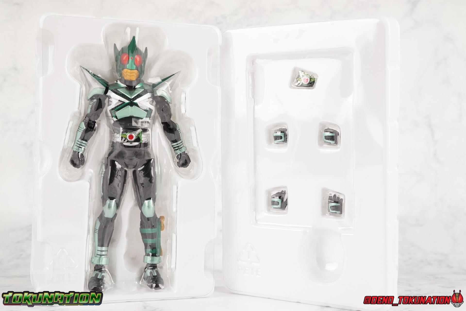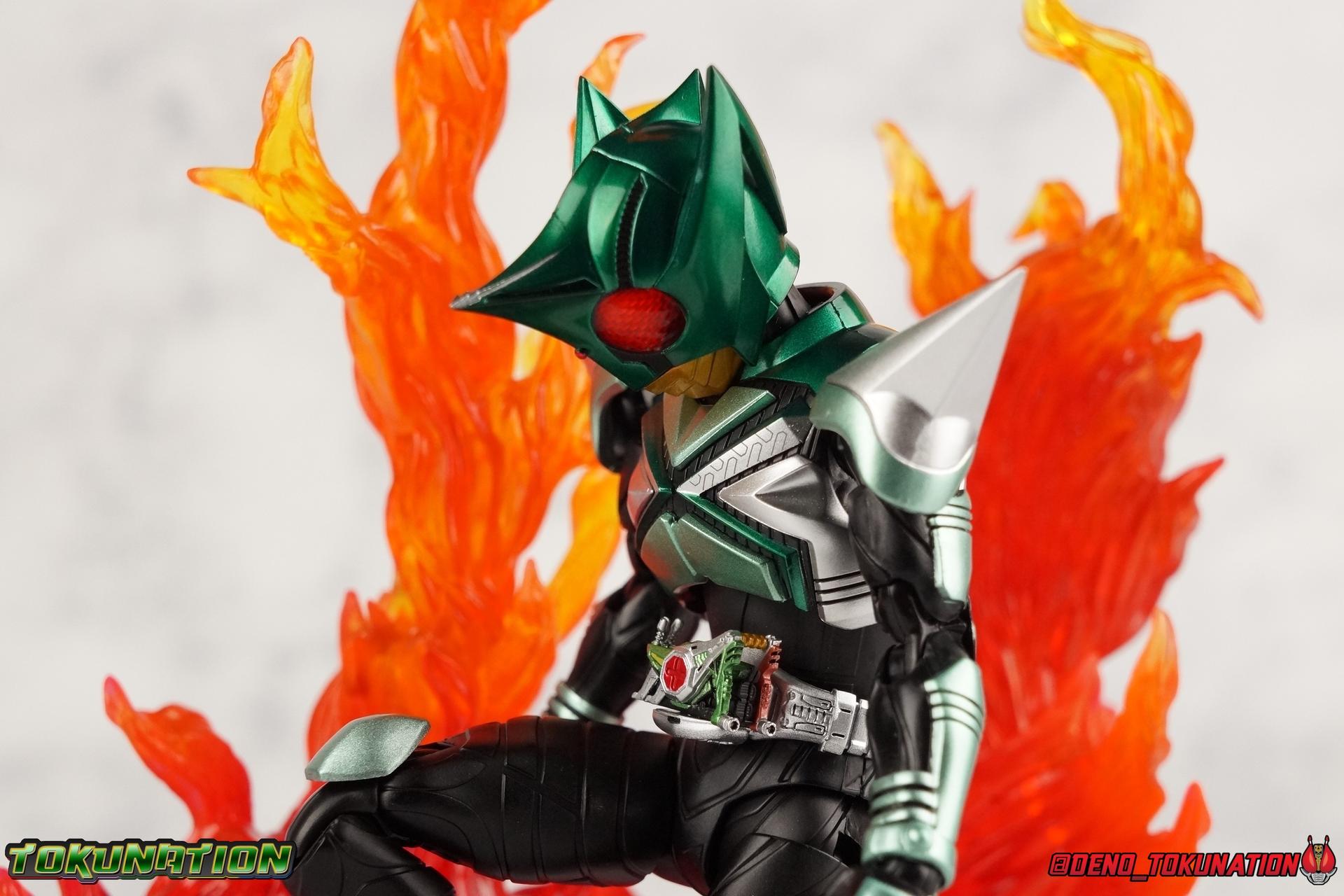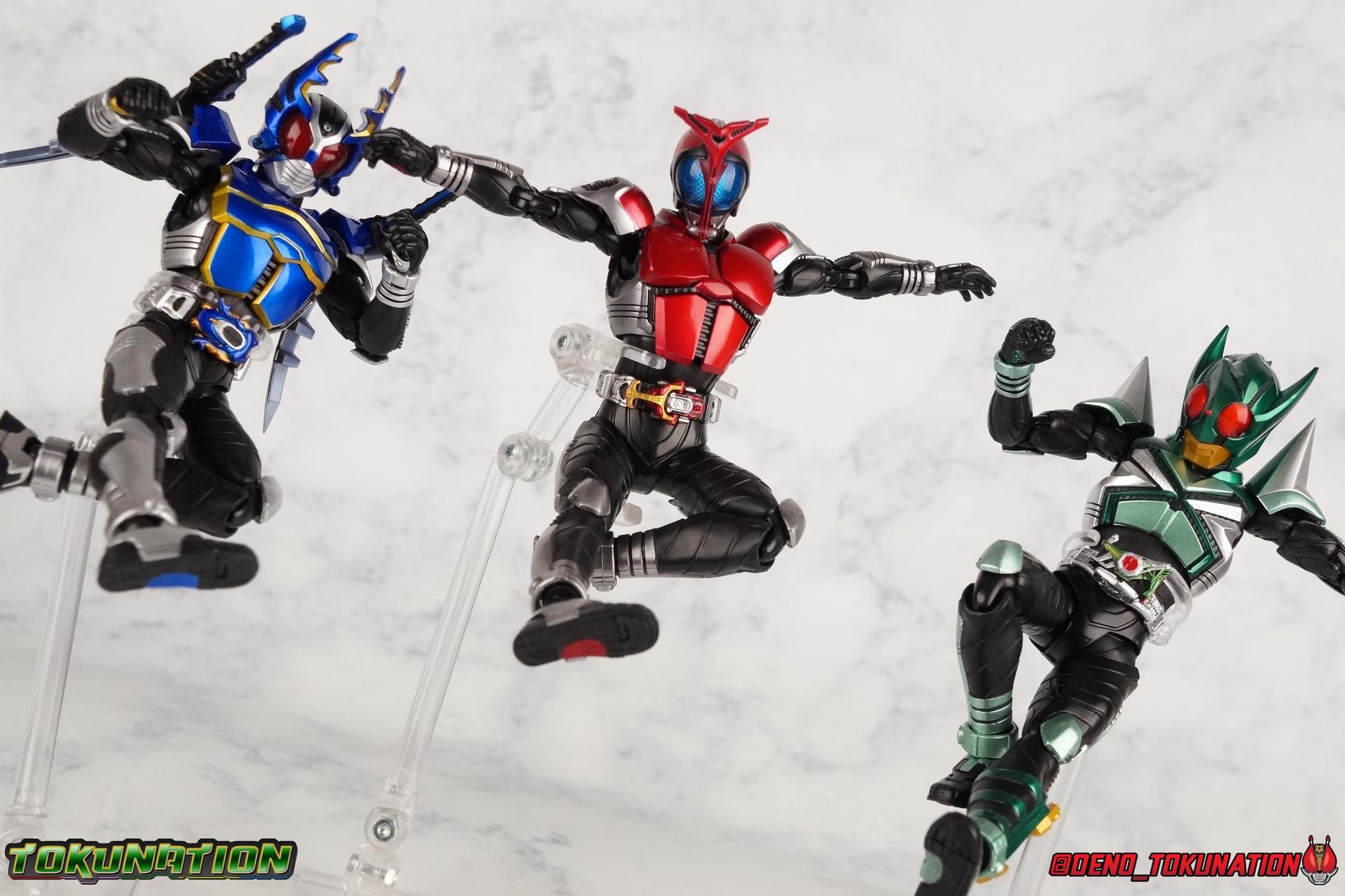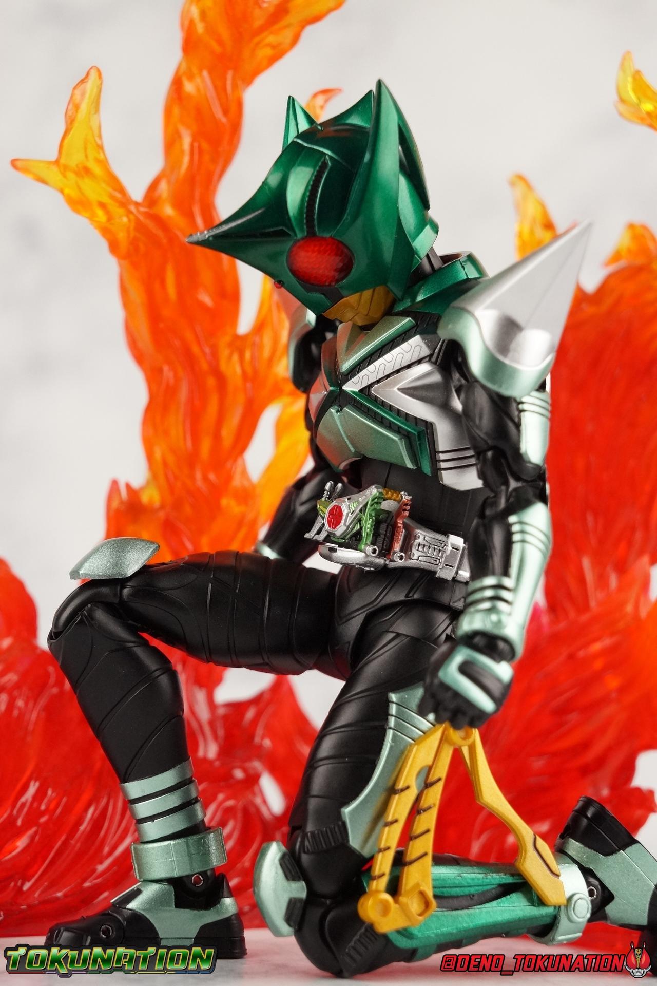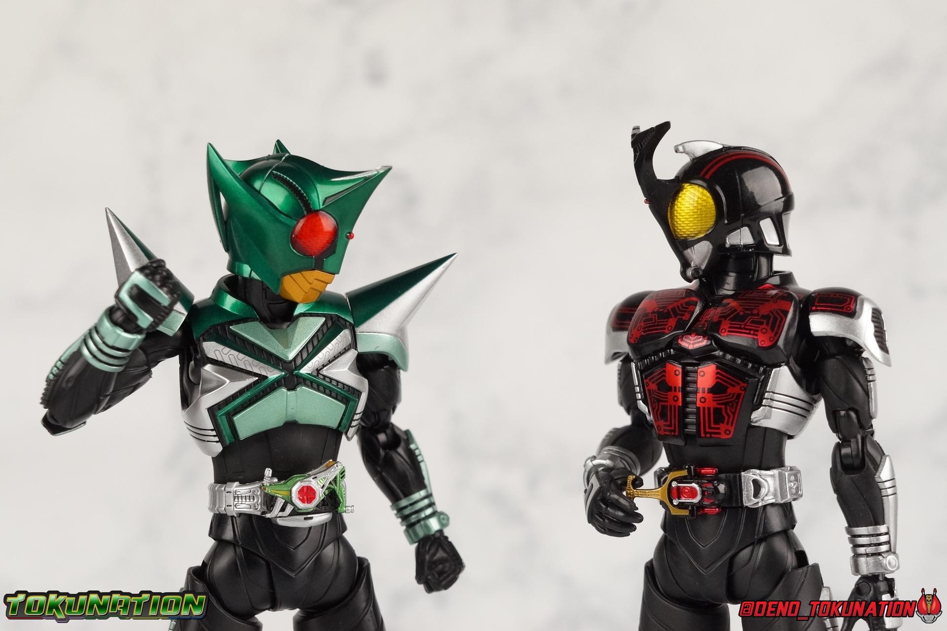 Sou Yaguruma was once the top dog of ZECT, commanding legions of ZECTroopers as Kamen Rider TheBee. The advocate of "perfect harmony" would soon be humbled however by Souji Tendou, and begin walking a darker path of self-loathing that eventually (and inexplicably) lead him to his new identity as Kamen Rider Kickhopper! Now Yaguruma is the latest addition to the Shinkocchou Seihou premium renewal line of S.H. Figuarts! So let's dive into our review of the figure. Packaging That standard slipcover packaging of Shinkocchou Seihou returns again. I promise I really appreciate the ease of access this kind of packaging provides. I really like this design more than a standard figuarts square box, but they've gotta start spicing things up. The one monotone image across the front of the box is getting rather boring. The presentation is nice but it's starting to fall flat in the face of more colorful and creative mainline releases like those from Ex-Aid is all. Main Figure Just as with Kabuto, Gattack, & Dark Kabuto before him, Kickhopper is an overwhelmingly needed update to an outdated and obsolete figure. The original release was plagued by the now standard QC issues of the original Kabuto line. Especially with those bowed legs. I'm happy to report that Seihou Kickhopper is the perfect successor to that original release. As with my last couple Seihou galleries form this series, you'll find a lot of similar passages in my review, it's just unavoidable when these figures share the same basic body and tooling aside from a few key areas. But I'll definitely zero in on the differences with this one. To start, the most iconic thing about Kickhopper is of course the Anchor Joint weapon attached to his left ankle. This unique item not only gives Kickhopper the 'jump' in his Rider Jump, but packs all the power behind his Rider Kick. It's also the most improved thing about this release. On the original figure it was a static accessory, permanently fixed in placed. This go around however the Anchor Joint is actually jointed and can be slid down the shin with the blade fully extendable to properly recreate a Rider Kick. The style of hips originally implemented in this mold provide a wide and balanced motion that allows you to replicate all of Kickhoppers most iconic poses & attacks. Though I do still think any standing kick looks pretty goofy in figure form. I would say the hips are limited only by their design as they do impact the waist assembly a little more prematurely than I'd like. But it's undeniable how versatile they are compared to many figures. The Hopper Zecter is really nicely detailed, especially when compared to the original. The details are sharp, the paint apps crisp, and it's even removeable. If you flip it around, the backside is also (properly) fully painted in Punch Hopper colors. It does pop off the buckle rather easily but it just looks so good. And while we don't have moving pectoral plates or flexible chest armor like with Kabuto & Dark Kabuto, Kickhopper's design is still pretty smooth, albeit a bit more limited in the upper body area. But you also don't have to worry about the torso impacting the Zecter. The new chest armor is really really nice though, it looks like a perfect replica of the show prop with really subtle paint details I had never really noticed before. The arms are free of nearly all obstruction thanks to wonderfully hinged shoulder pads. They do tend to look a little unnatural in some poses and expose the joints beneath however. But the elbows and wrist provide the same great range of motion we've come to expect from this mold, one that's still holding up very well 3 years on. Lastly we look at Kickhoppers head, which is just spot on. The original suffered from it's disproportionate size to the body as well as some issues with length and width. I'm happy to report that this go around the head is the correct size relative to the body and also the proper glossy green. The mouth plate is a brilliant gold and the compound eyes really sparkle in the right light. As with his 3 predecessors, Shinkocchou Seihou Kickhopper really is the ultimate apology for the original release. And being able to FINALLY recreate my favorite moment from Kabuto, the Triple Rider Kick in Seihou form, is the ultimate treat. Accessories Not much here, but just what you need: 1- Hopper Zecter (open). This is the flipped version of the Hopper Zecter from Kickhopper's Rider Jump/Kick combination. After the moving parts that were present on Seihou Kabuto's Zecter years ago I was surprised that Seihou Gattacks' was a swap out part instead, and I'm surprised again that the Hopper Zecter is the same. It just seems like something that could have been engineered to work instead. I mean just look at the W Driver & Gaia Memories. 2 - sets of hands. These hands are a bit odd if you ask me. The open hands are a very stiff variety of open palm. They aren't very expressive at all. The other pair are the standard type of "holding things" hands, and they look almost perfectly shaped for handlebars on a Rider Machine. But the Hopper Bros had no such bikes, nor any weapons they would have held. So these hands are a really pointless inclusion. The two glaring omissions that most collectors will notice are undoubtedly items included with the original figuart. The ramen bowl as well as a personalized Tamashii Stage. The ramen bowl was a pretty hilarious and iconic accessory, signifying one of the goofier plots of the show. And while the stage isn't nearly as important, it was nice that the original Hopper bros came with them. As is the original figuart is so dirt cheap now you could pretty much buy it just for those accessories. So while it's a bummer they weren't included here, it's no great loss either. Final Thoughts That's 4 down and well frankly quite a few to go. With Hyper Kabuto on the way finally, is it only a mater of time before TheBee, Sasword, Drake and others finally get this premium treatment as well