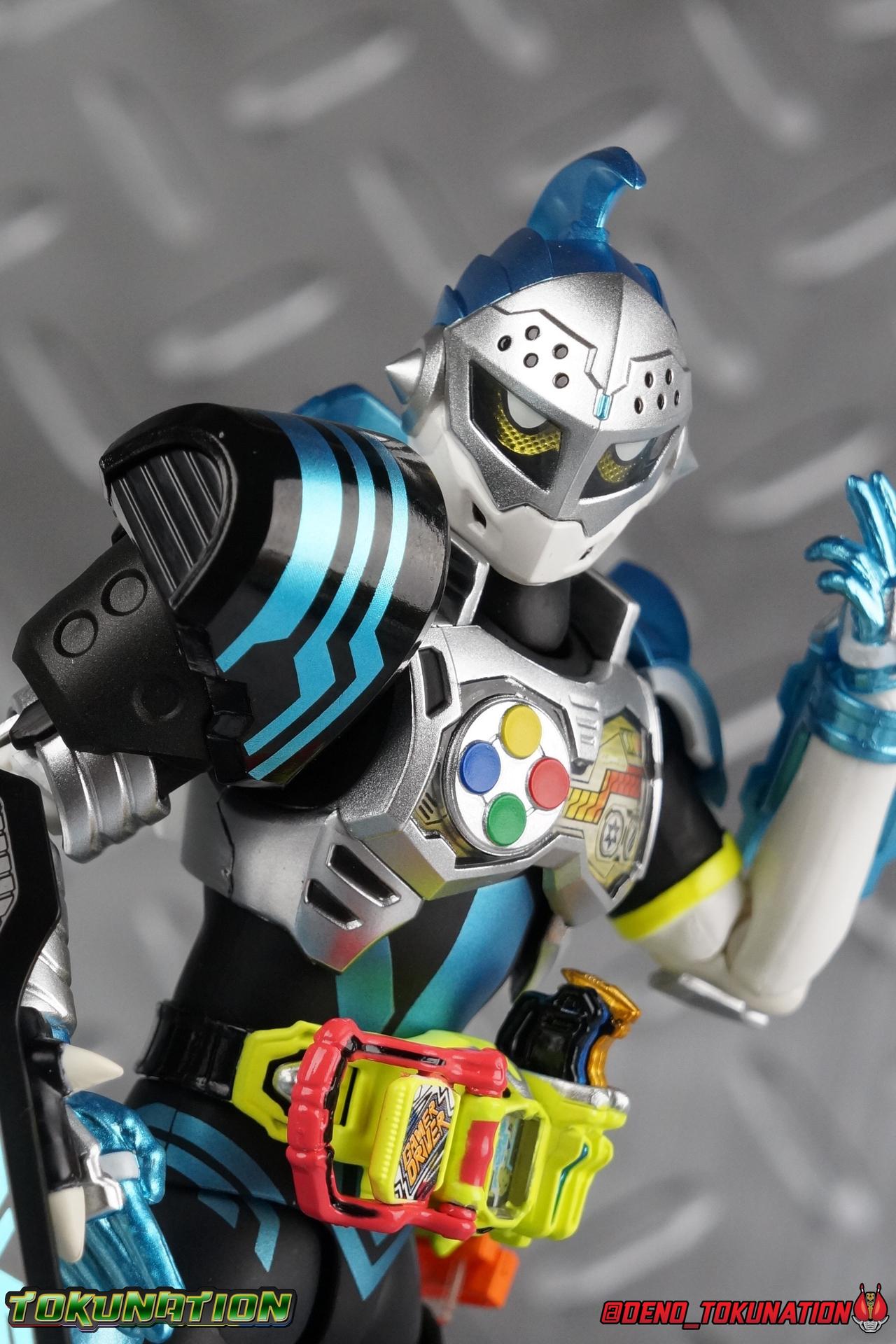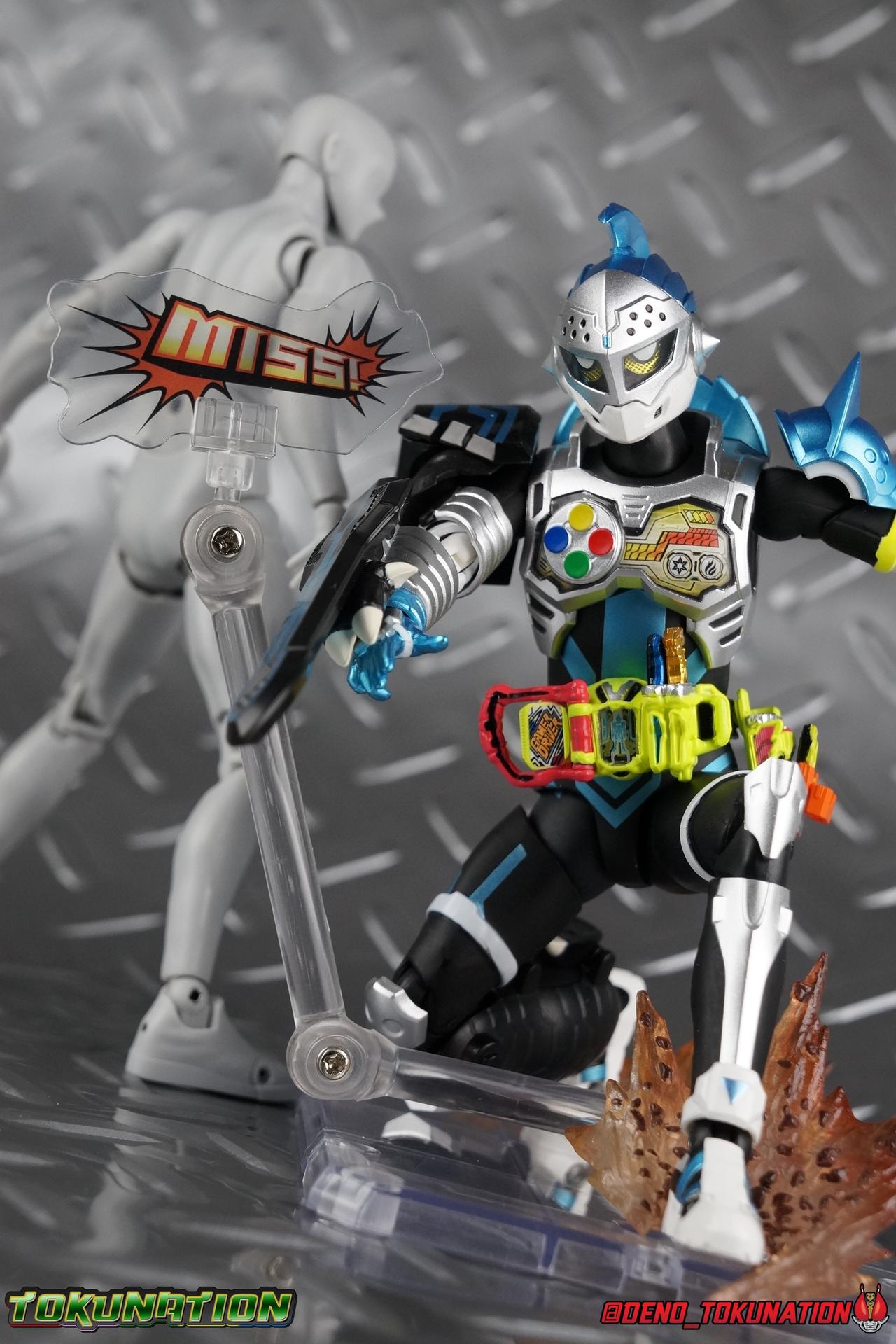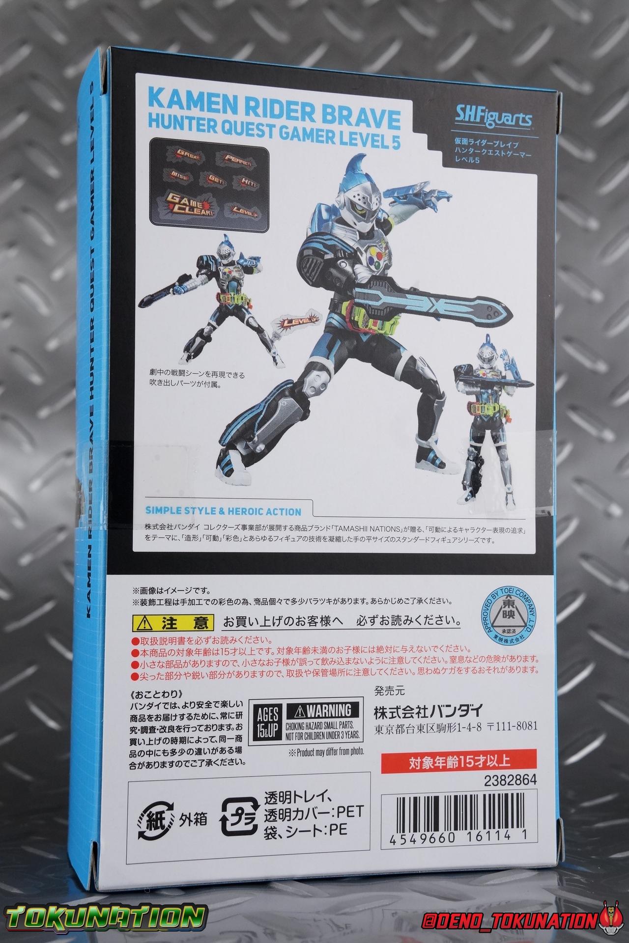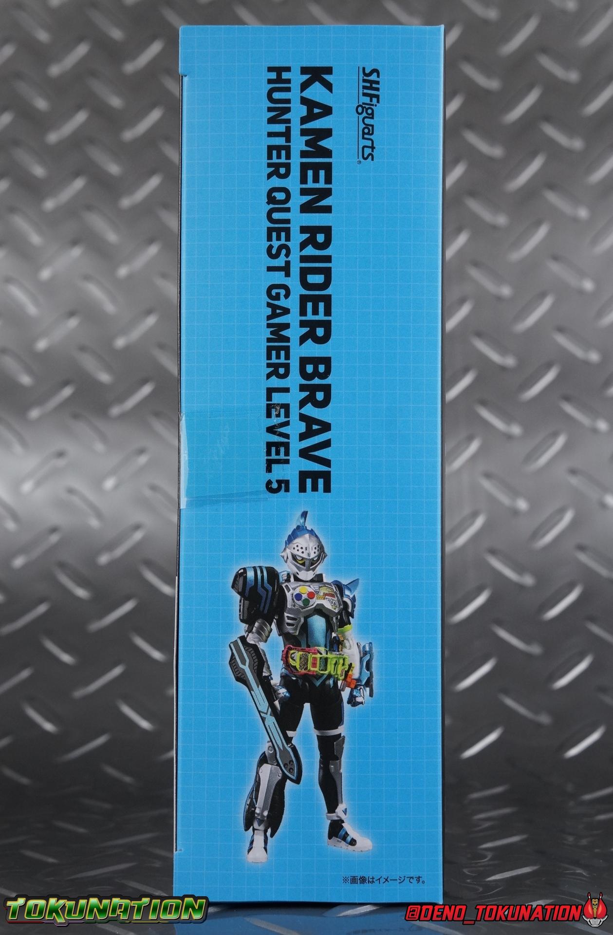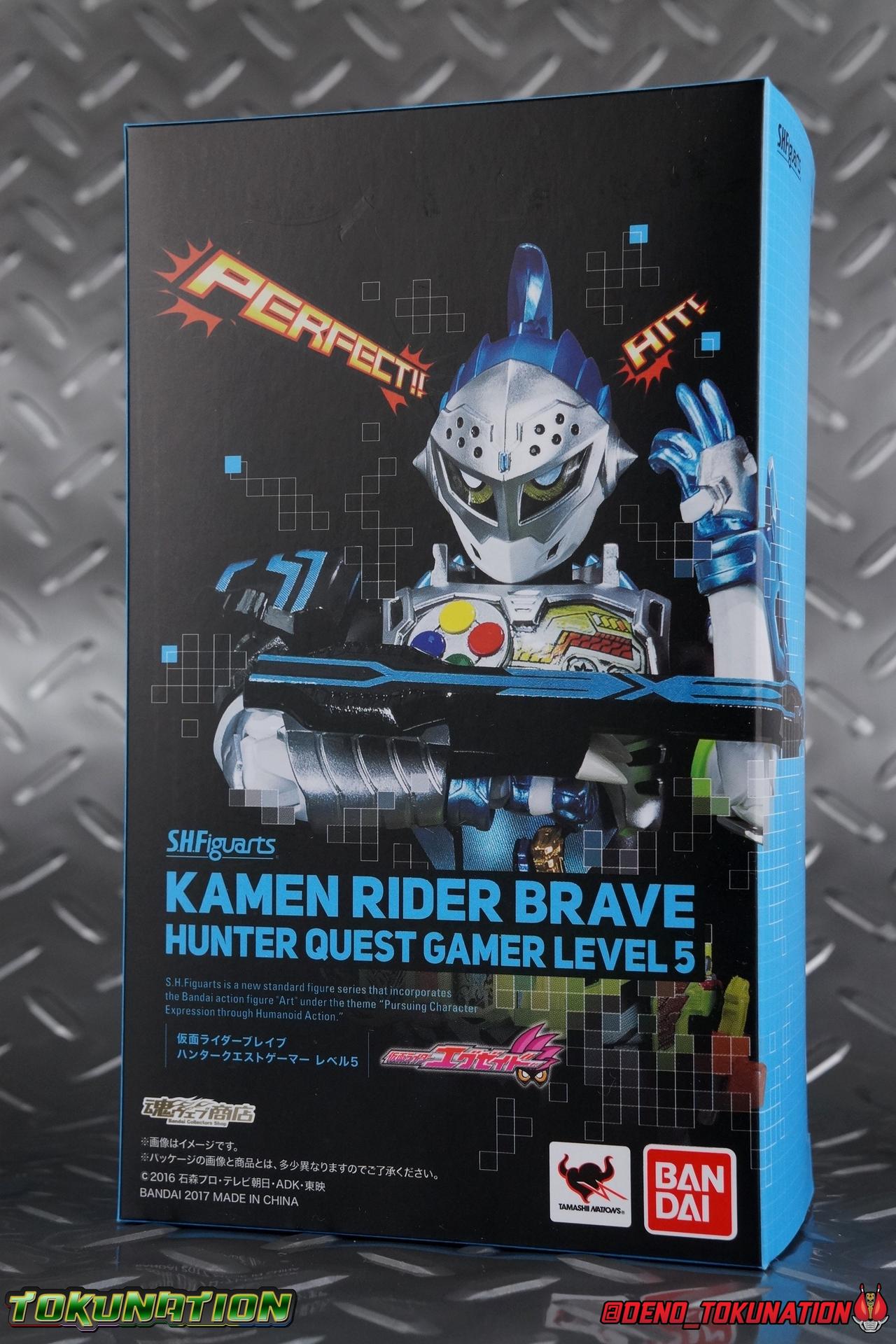 When 1 Player alone couldn't defeat the powered up Bugster, Graphite, it took 4-Player co-op to bring him down! Using the Level 5 Gashat Drago Knight Hunter Z Ex-Aid and his allies were each granted a portion of it's power and a piece of it's armor. In Hiro's case he inherited the power of the Dragon Blade, fitting his knight theme perfectly. In co-op form Brave only gained this piece of the Hunter Gamer powers but would eventually come to master this Gashat's power completely. Now it's time to take a look at how well his Figuart has inherited the Dragon's Blade with our review of S.H. Figuarts Kamen Rider Brave Hunter Quest Gamer Level 5! Packaging As with the first web exclusive in this line, Lazer Level 2, Brave features a bright and standout box. With no packaging window as all web exclusives are these days. As with Lazer the colors really pop and I like the character portrait on the front, despite it's rather misleading positioning of the figures arms. More on that later. Main Figure Seeing as this figure features components from two others we've seen previously, Brave Level 2 & Ex-Aid Level 5, you'll notice a lot of my review is very similar. Most of Brave Level 5's body is reused from the Level 2 release. While the right side of the body reuses components from the Level 5 Ex-Aid body. The Level 2 Ex-Aid riders themselves all share a great many number of parts as is. Each suit has it's own unique detailing and colors, but at a basic level they feature the same mold. Sporty type shoes, the bike shorts look, the driver, the chest plate. You see what I mean. This release of Brave is still as lavish as the first. From the Ground up the Ex-Aid type body is pretty solidly built. Though the ankles are still a huge fault for me. They don't have the full range of motion they need for Brave to assume many of the dynamic poses he's known for. You'll find that wide stances are just really really difficult to achieve, which means he's always gonna be a bit off balance. Sadly my Level 5 Brave also appears to have one leg longer than the other making it difficult to get him in a normal standing pose. The knees have a great bend that helps improve some of the articulation. And I would say that the bulkier right leg helps a bit with weight and stability. All that being said, the paint apps for the legs are exquisite. Luckily the white paint apps are so much better this go around. My Level 2 Brave had very spotty QC there. As with previous releases, Gamer Driver is still my favorite thing about the figure. This entire device is extraordinarily detailed for something at this scale. The Driver handle can flip shut. The functionality it features still astounds me. Changes to this release include a new "dummy" Drago Knight Hunter Z Gashat, which is removable as you can see in my pictures below. You can insert it as with any other Gashat into the Critical Finish slot on the Gashat Holster. Speaking of there's also what is meant to be the Level 3 DoReMiFa Beat Gashat in the holster. As with Ex-Aid Level 5's Gekitotsu Robots Gashat, DoReMiFa Beat is sparsely detailed and permanently fixed to the holster. Brave's upper body, left arm and head are unchanged. Brave is absolutely breathtaking but his chest detailing is something I still just cannot get over. The paint apps on the outer layer are crisp and clear, but I'm so impressed by the Rider Gauge label within his chest. On the flip side of the torso is the deactivated Level 1 head we've seen before. The left arm still has that pesky issue with the shoulder pad. Every time I try to stretch the arms out it's like rather than sliding out properly the pads just pop off again. Still a minor issue but one that bugs me. Looking up to the head, if you were irked by the lack of a white collar on the Level 2 releases then feel free to be irked again. It's an inconsequential detail to me. It's silver this go around too and that doesn't really bother me. Before we finish up with the main body, Brave's right arm has been replaced by the Level 5 Dragon Gun arm. Surprisingly, or maybe it shouldn't be, this arm isn't impaired at all like it was with Ex-Aid Level 5. With Ex-Aid the bulky shoulder pad was attached directly to the main body via the new chest plate on the torso. With Brave thankfully this pad is just attached to the arm and it really frees up the movement. Sadly the elbow is still neutered, being unable to achieve even a decent 90 degree angle. Exchanging hands on this arm is also a nightmare. The wrist pegs are rather tight on this release and difficult to replace thanks to the dragon claws on the wrist. Just as they were with Ex-Aid Physical shortcomings aside, this release still fills out my display quite well. But the real point of it is the accessories it includes. Accessories 4 - sets of hands. These are identical to those that came with Level 2 Brave. Straight re-packs with no additions or subtractions at all. 7 - "word bubble" effect parts. These clear thin plastic sheets were the big selling point for both Brave & Snipe Level 5. Each replicates an effect a battle action or outcome from the show. Included are: