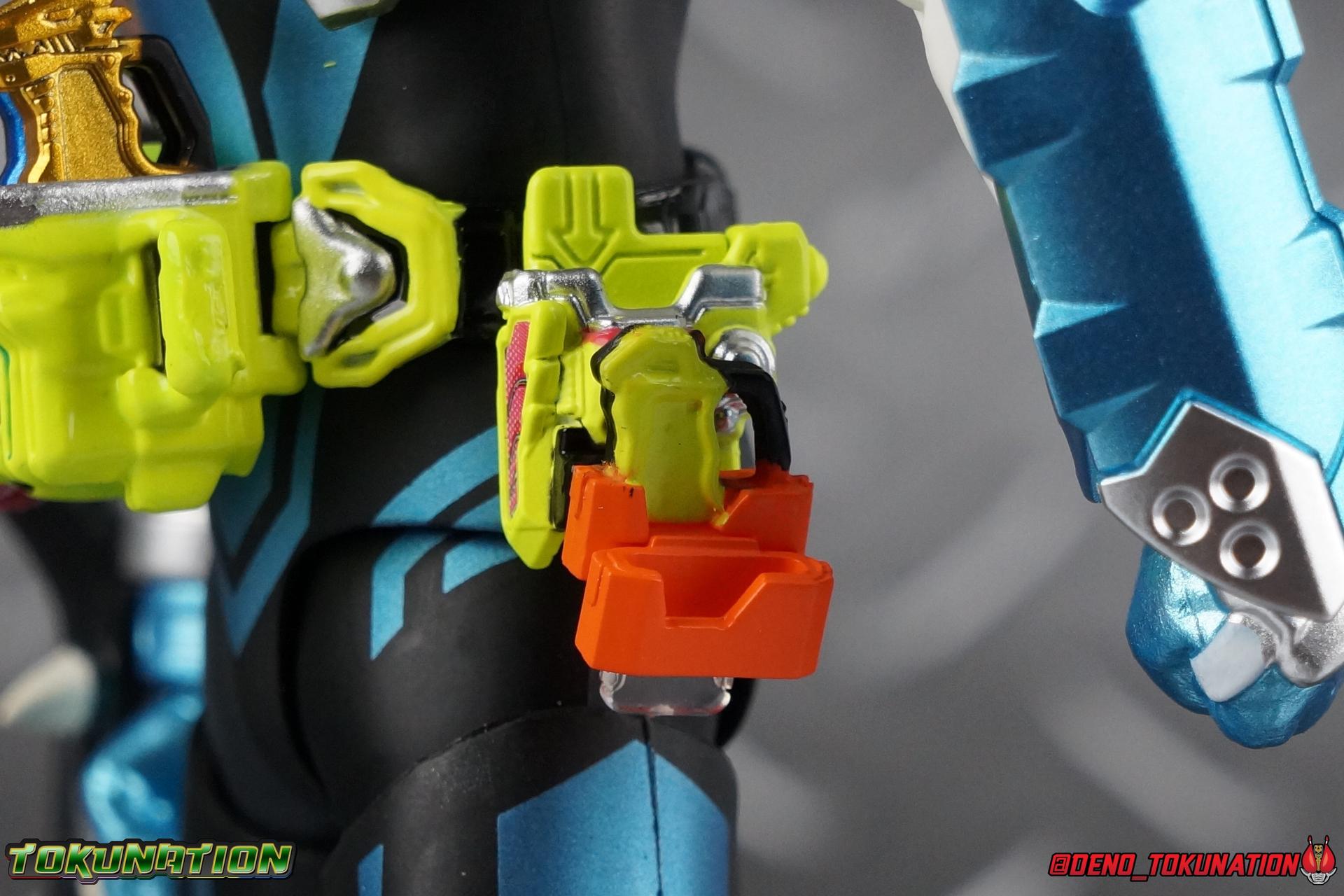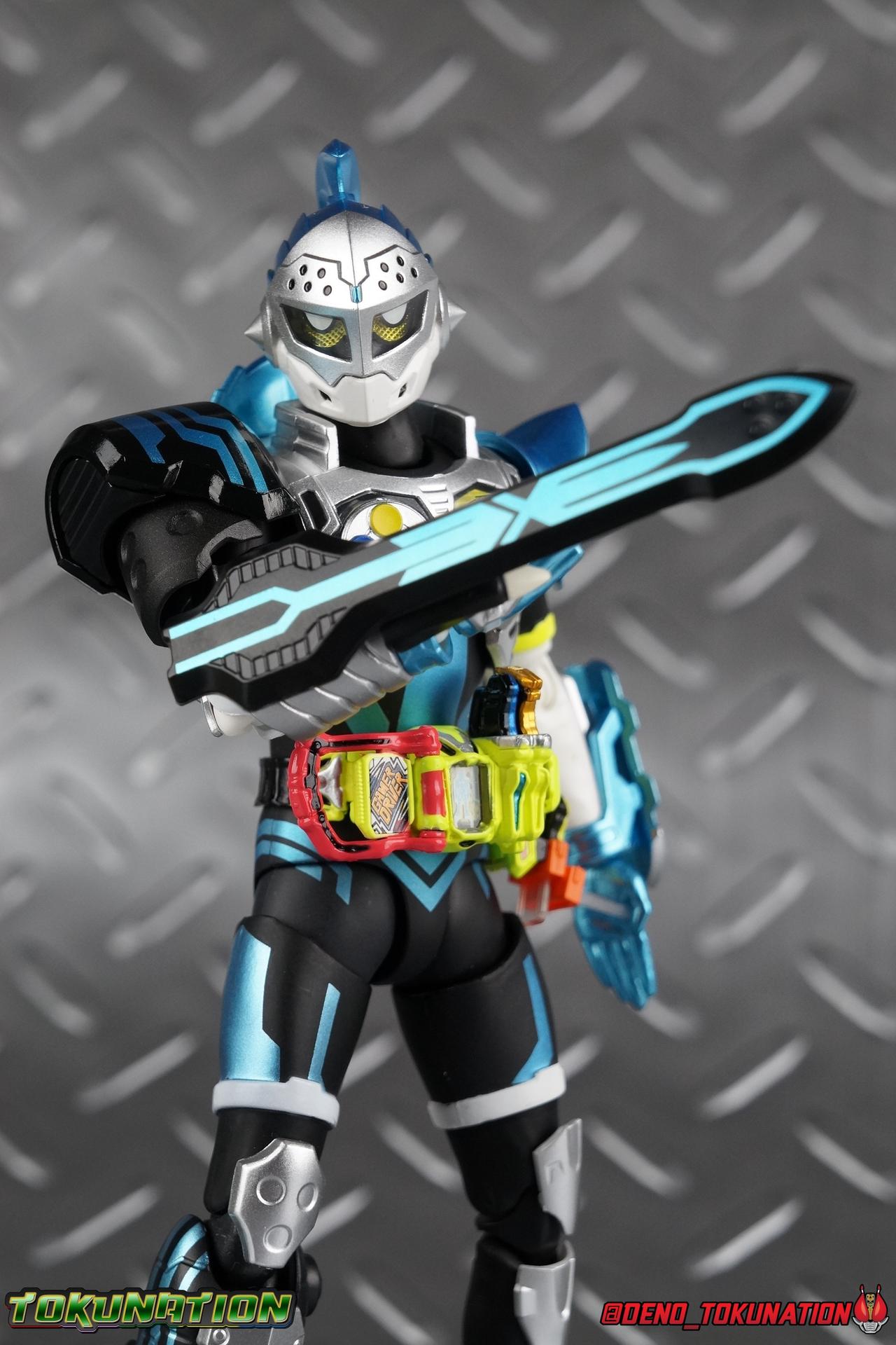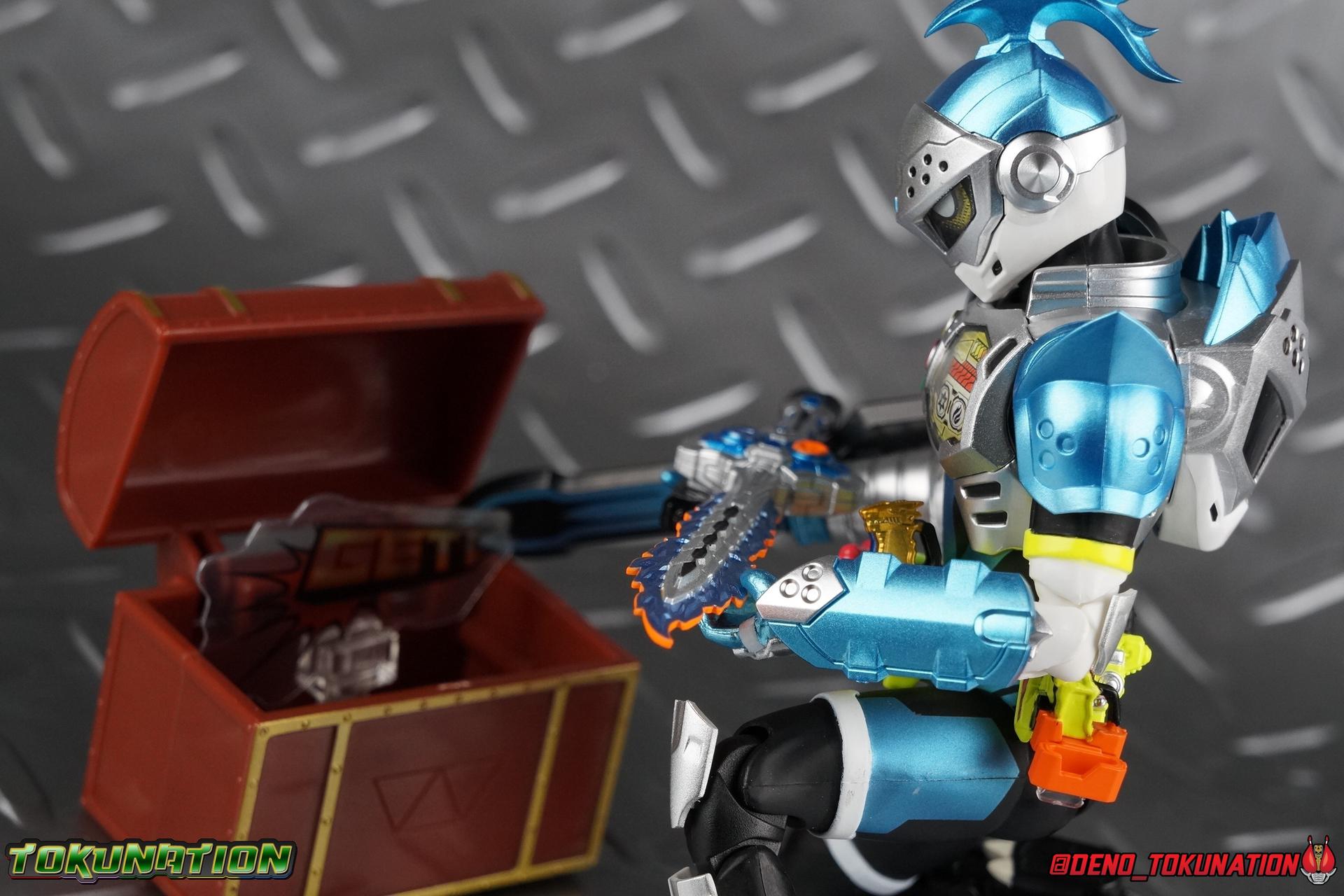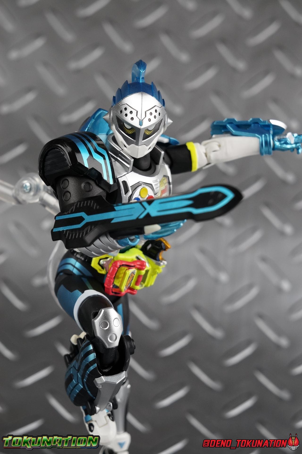 When 1 Player alone couldn't defeat the powered up Bugster, Graphite, it took 4-Player co-op to bring him down! Using the Level 5 Gashat Drago Knight Hunter Z Ex-Aid and his allies were each granted a portion of it's power and a piece of it's armor. In Hiro's case he inherited the power of the Dragon Blade, fitting his knight theme perfectly. In co-op form Brave only gained this piece of the Hunter Gamer powers but would eventually come to master this Gashat's power completely. Now it's time to take a look at how well his Figuart has inherited the Dragon's Blade with our review of S.H. Figuarts Kamen Rider Brave Hunter Quest Gamer Level 5! Packaging As with the first web exclusive in this line, Lazer Level 2, Brave features a bright and standout box. With no packaging window as all web exclusives are these days. As with Lazer the colors really pop and I like the character portrait on the front, despite it's rather misleading positioning of the figures arms. More on that later. Main Figure Seeing as this figure features components from two others we've seen previously, Brave Level 2 & Ex-Aid Level 5, you'll notice a lot of my review is very similar. Most of Brave Level 5's body is reused from the Level 2 release. While the right side of the body reuses components from the Level 5 Ex-Aid body. The Level 2 Ex-Aid riders themselves all share a great many number of parts as is. Each suit has it's own unique detailing and colors, but at a basic level they feature the same mold. Sporty type shoes, the bike shorts look, the driver, the chest plate. You see what I mean. This release of Brave is still as lavish as the first. From the Ground up the Ex-Aid type body is pretty solidly built. Though the ankles are still a huge fault for me. They don't have the full range of motion they need for Brave to assume many of the dynamic poses he's known for. You'll find that wide stances are just really really difficult to achieve, which means he's always gonna be a bit off balance. Sadly my Level 5 Brave also appears to have one leg longer than the other making it difficult to get him in a normal standing pose. The knees have a great bend that helps improve some of the articulation. And I would say that the bulkier right leg helps a bit with weight and stability. All that being said, the paint apps for the legs are exquisite. Luckily the white paint apps are so much better this go around. My Level 2 Brave had very spotty QC there. As with previous releases, Gamer Driver is still my favorite thing about the figure. This entire device is extraordinarily detailed for something at this scale. The Driver handle can flip shut. The functionality it features still astounds me. Changes to this release include a new "dummy" Drago Knight Hunter Z Gashat, which is removable as you can see in my pictures below. You can insert it as with any other Gashat into the Critical Finish slot on the Gashat Holster. Speaking of there's also what is meant to be the Level 3 DoReMiFa Beat Gashat in the holster. As with Ex-Aid Level 5's Gekitotsu Robots Gashat, DoReMiFa Beat is sparsely detailed and permanently fixed to the holster. Brave's upper body, left arm and head are unchanged. Brave is absolutely breathtaking but his chest detailing is something I still just cannot get over. The paint apps on the outer layer are crisp and clear, but I'm so impressed by the Rider Gauge label within his chest. On the flip side of the torso is the deactivated Level 1 head we've seen before. The left arm still has that pesky issue with the shoulder pad. Every time I try to stretch the arms out it's like rather than sliding out properly the pads just pop off again. Still a minor issue but one that bugs me. Looking up to the head, if you were irked by the lack of a white collar on the Level 2 releases then feel free to be irked again. It's an inconsequential detail to me. It's silver this go around too and that doesn't really bother me. Before we finish up with the main body, Brave's right arm has been replaced by the Level 5 Dragon Gun arm. Surprisingly, or maybe it shouldn't be, this arm isn't impaired at all like it was with Ex-Aid Level 5. With Ex-Aid the bulky shoulder pad was attached directly to the main body via the new chest plate on the torso. With Brave thankfully this pad is just attached to the arm and it really frees up the movement. Sadly the elbow is still neutered, being unable to achieve even a decent 90 degree angle. Exchanging hands on this arm is also a nightmare. The wrist pegs are rather tight on this release and difficult to replace thanks to the dragon claws on the wrist. Just as they were with Ex-Aid Physical shortcomings aside, this release still fills out my display quite well. But the real point of it is the accessories it includes. Accessories 4 - sets of hands. These are identical to those that came with Level 2 Brave. Straight re-packs with no additions or subtractions at all. 7 - "word bubble" effect parts. These clear thin plastic sheets were the big selling point for both Brave & Snipe Level 5. Each replicates an effect a battle action or outcome from the show. Included are: