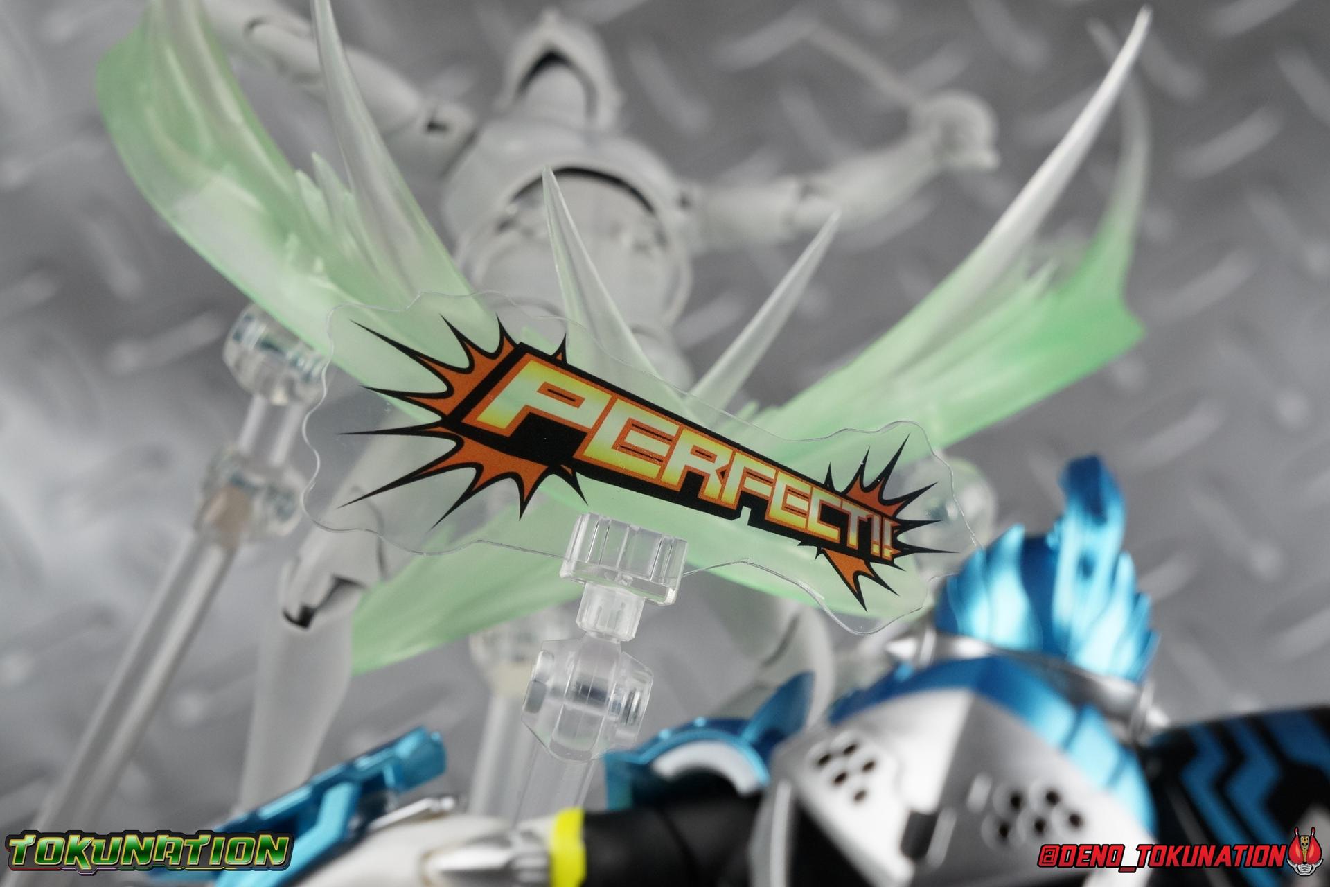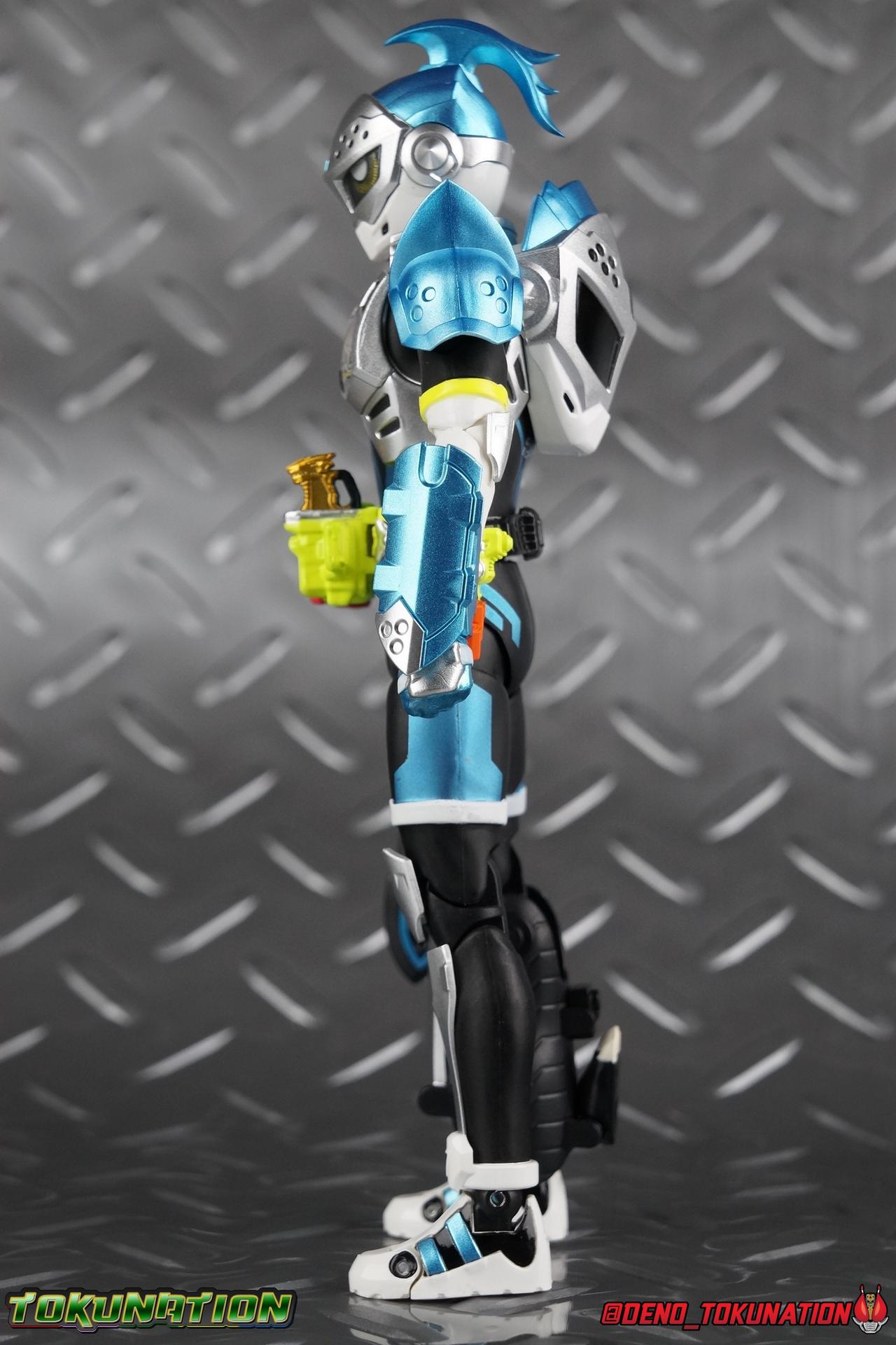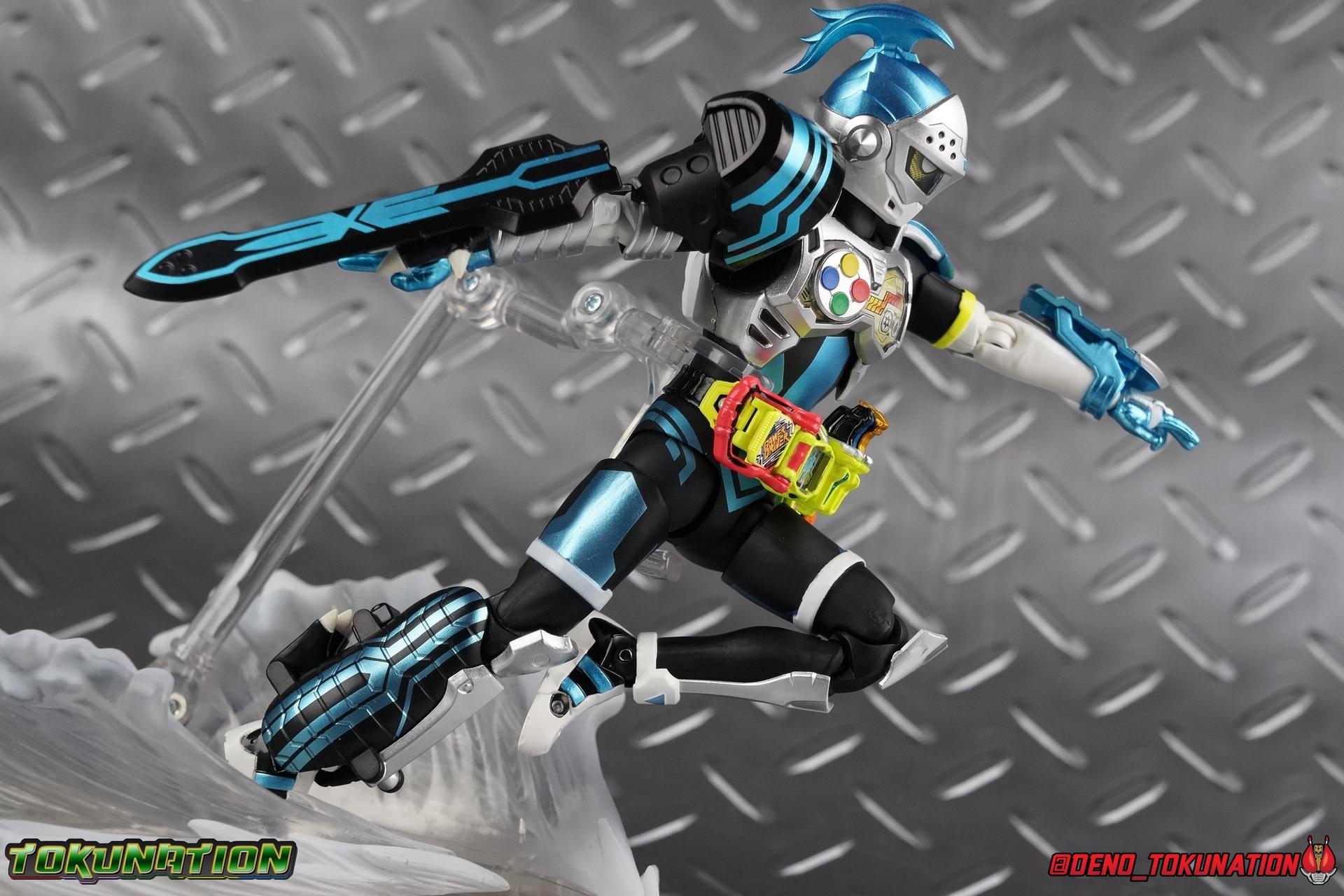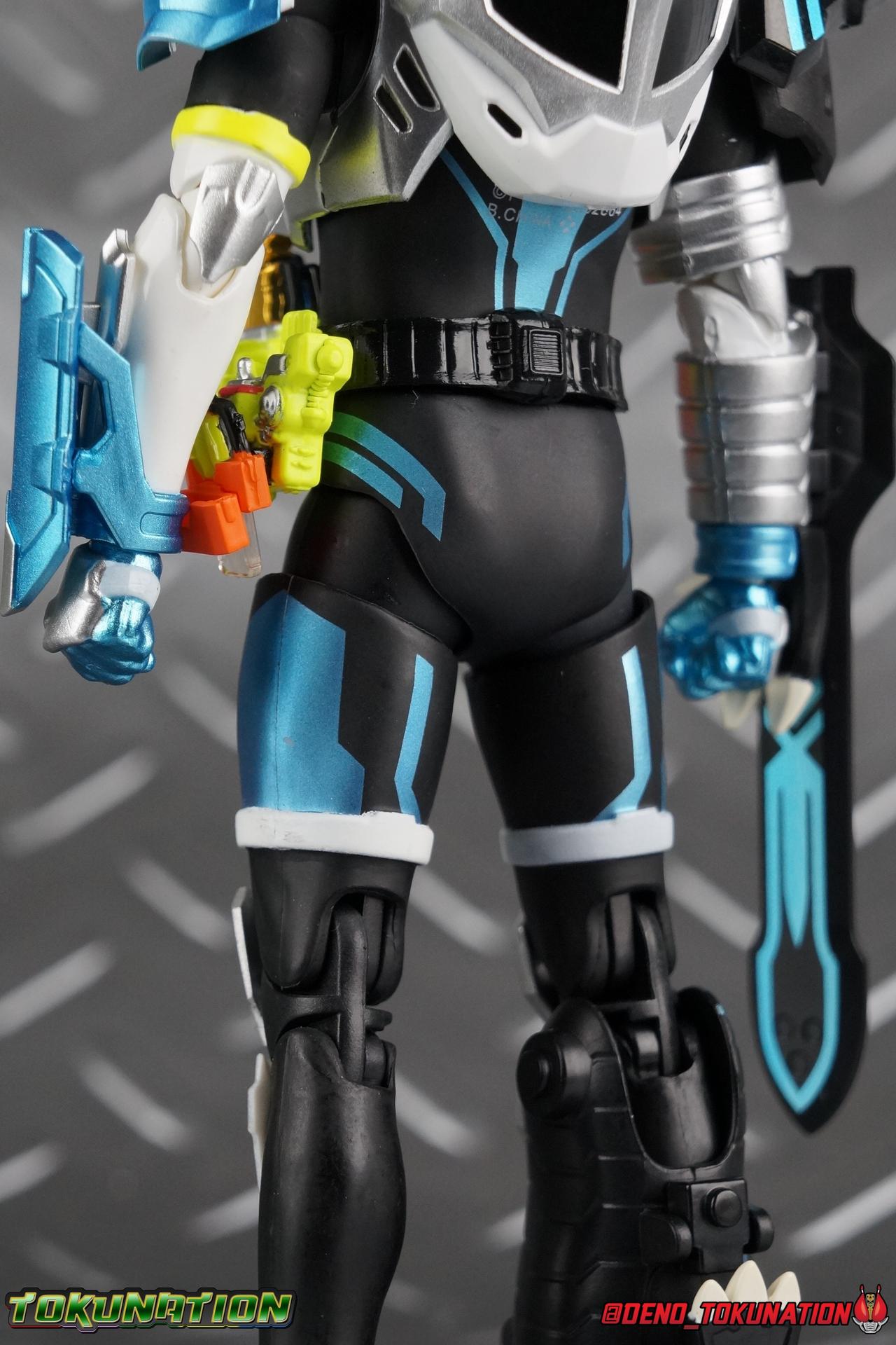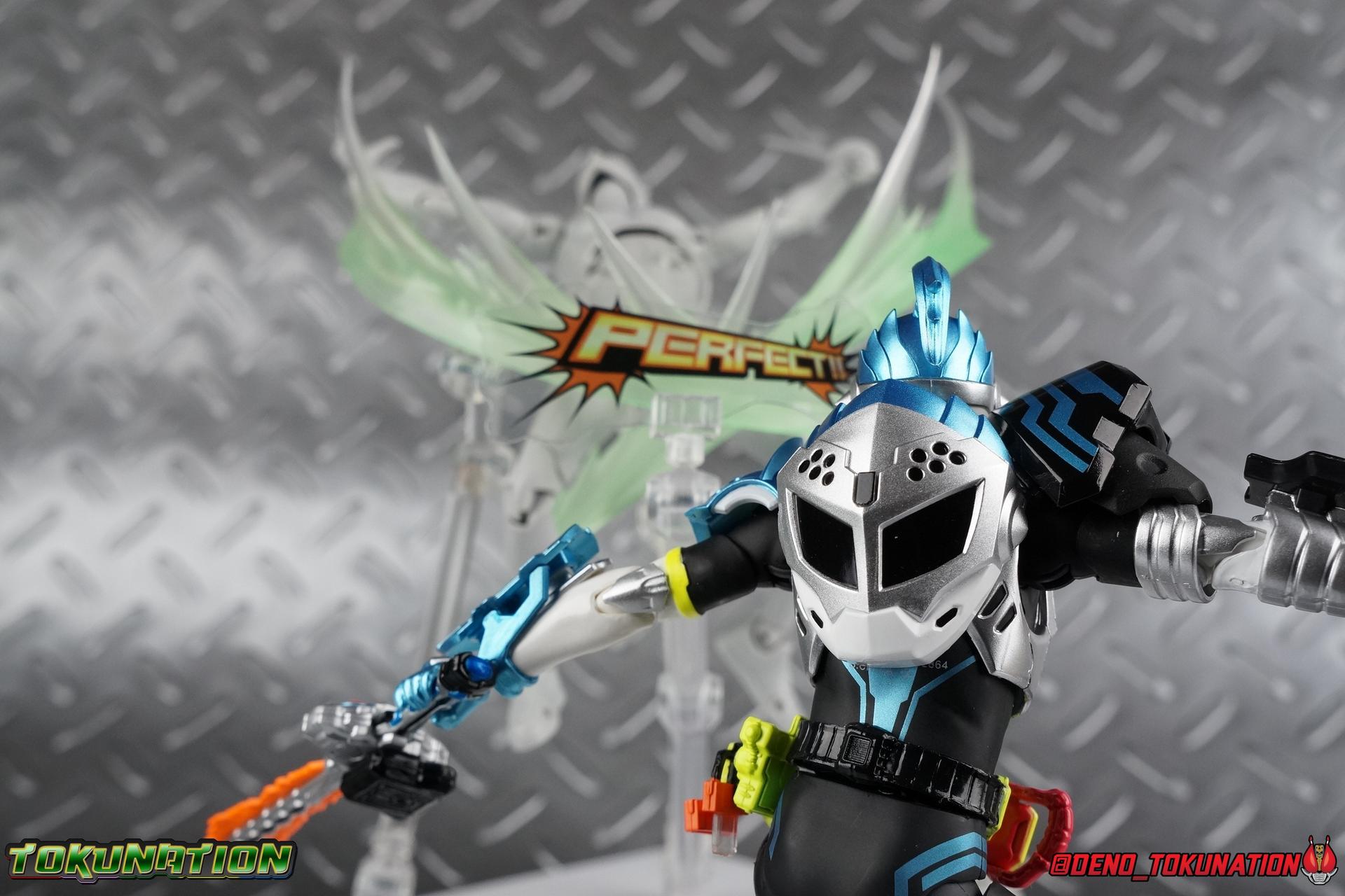 When 1 Player alone couldn't defeat the powered up Bugster, Graphite, it took 4-Player co-op to bring him down! Using the Level 5 Gashat Drago Knight Hunter Z Ex-Aid and his allies were each granted a portion of it's power and a piece of it's armor. In Hiro's case he inherited the power of the Dragon Blade, fitting his knight theme perfectly. In co-op form Brave only gained this piece of the Hunter Gamer powers but would eventually come to master this Gashat's power completely. Now it's time to take a look at how well his Figuart has inherited the Dragon's Blade with our review of S.H. Figuarts Kamen Rider Brave Hunter Quest Gamer Level 5! Packaging As with the first web exclusive in this line, Lazer Level 2, Brave features a bright and standout box. With no packaging window as all web exclusives are these days. As with Lazer the colors really pop and I like the character portrait on the front, despite it's rather misleading positioning of the figures arms. More on that later. Main Figure Seeing as this figure features components from two others we've seen previously, Brave Level 2 & Ex-Aid Level 5, you'll notice a lot of my review is very similar. Most of Brave Level 5's body is reused from the Level 2 release. While the right side of the body reuses components from the Level 5 Ex-Aid body. The Level 2 Ex-Aid riders themselves all share a great many number of parts as is. Each suit has it's own unique detailing and colors, but at a basic level they feature the same mold. Sporty type shoes, the bike shorts look, the driver, the chest plate. You see what I mean. This release of Brave is still as lavish as the first. From the Ground up the Ex-Aid type body is pretty solidly built. Though the ankles are still a huge fault for me. They don't have the full range of motion they need for Brave to assume many of the dynamic poses he's known for. You'll find that wide stances are just really really difficult to achieve, which means he's always gonna be a bit off balance. Sadly my Level 5 Brave also appears to have one leg longer than the other making it difficult to get him in a normal standing pose. The knees have a great bend that helps improve some of the articulation. And I would say that the bulkier right leg helps a bit with weight and stability. All that being said, the paint apps for the legs are exquisite. Luckily the white paint apps are so much better this go around. My Level 2 Brave had very spotty QC there. As with previous releases, Gamer Driver is still my favorite thing about the figure. This entire device is extraordinarily detailed for something at this scale. The Driver handle can flip shut. The functionality it features still astounds me. Changes to this release include a new "dummy" Drago Knight Hunter Z Gashat, which is removable as you can see in my pictures below. You can insert it as with any other Gashat into the Critical Finish slot on the Gashat Holster. Speaking of there's also what is meant to be the Level 3 DoReMiFa Beat Gashat in the holster. As with Ex-Aid Level 5's Gekitotsu Robots Gashat, DoReMiFa Beat is sparsely detailed and permanently fixed to the holster. Brave's upper body, left arm and head are unchanged. Brave is absolutely breathtaking but his chest detailing is something I still just cannot get over. The paint apps on the outer layer are crisp and clear, but I'm so impressed by the Rider Gauge label within his chest. On the flip side of the torso is the deactivated Level 1 head we've seen before. The left arm still has that pesky issue with the shoulder pad. Every time I try to stretch the arms out it's like rather than sliding out properly the pads just pop off again. Still a minor issue but one that bugs me. Looking up to the head, if you were irked by the lack of a white collar on the Level 2 releases then feel free to be irked again. It's an inconsequential detail to me. It's silver this go around too and that doesn't really bother me. Before we finish up with the main body, Brave's right arm has been replaced by the Level 5 Dragon Gun arm. Surprisingly, or maybe it shouldn't be, this arm isn't impaired at all like it was with Ex-Aid Level 5. With Ex-Aid the bulky shoulder pad was attached directly to the main body via the new chest plate on the torso. With Brave thankfully this pad is just attached to the arm and it really frees up the movement. Sadly the elbow is still neutered, being unable to achieve even a decent 90 degree angle. Exchanging hands on this arm is also a nightmare. The wrist pegs are rather tight on this release and difficult to replace thanks to the dragon claws on the wrist. Just as they were with Ex-Aid Physical shortcomings aside, this release still fills out my display quite well. But the real point of it is the accessories it includes. Accessories 4 - sets of hands. These are identical to those that came with Level 2 Brave. Straight re-packs with no additions or subtractions at all. 7 - "word bubble" effect parts. These clear thin plastic sheets were the big selling point for both Brave & Snipe Level 5. Each replicates an effect a battle action or outcome from the show. Included are: