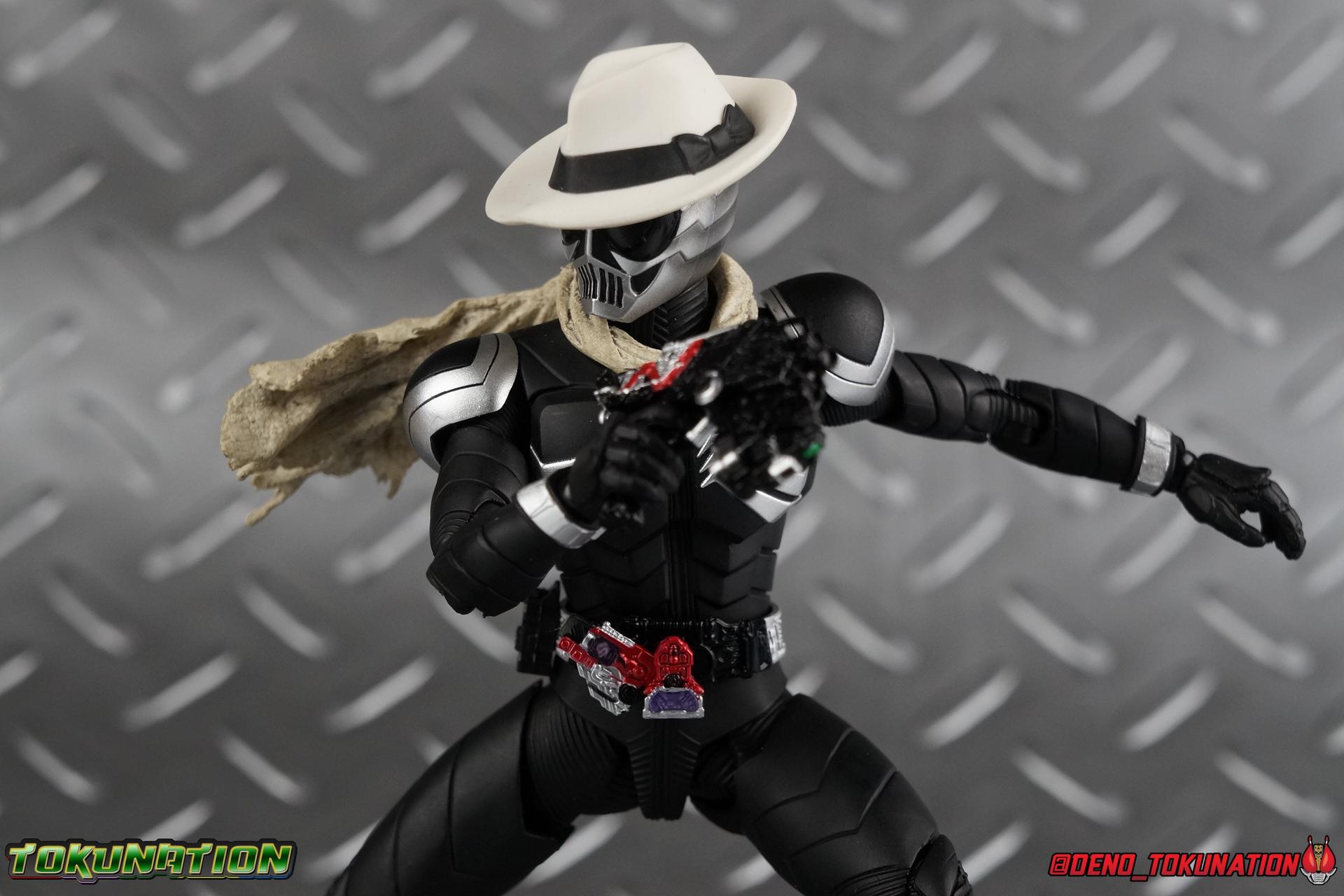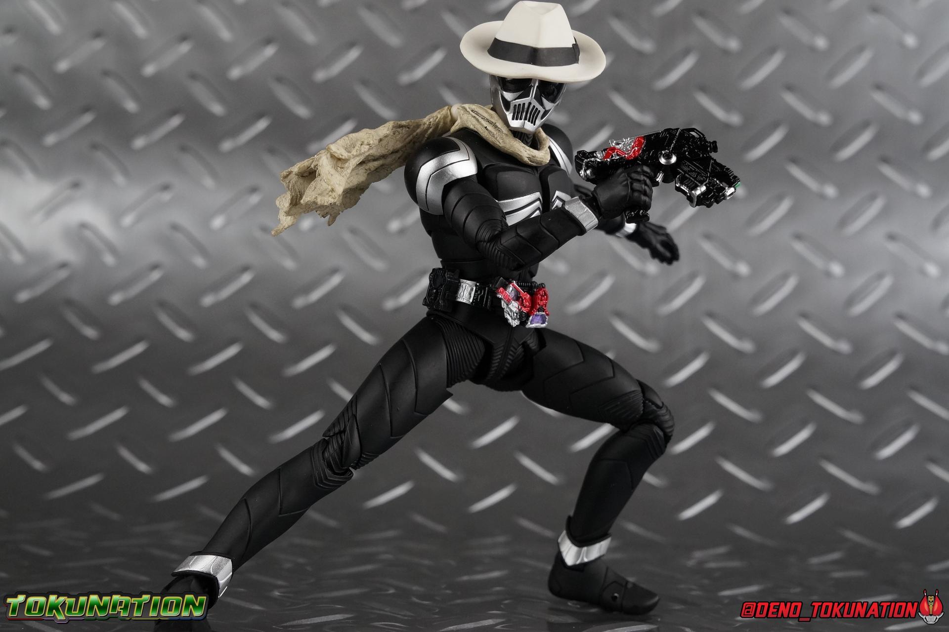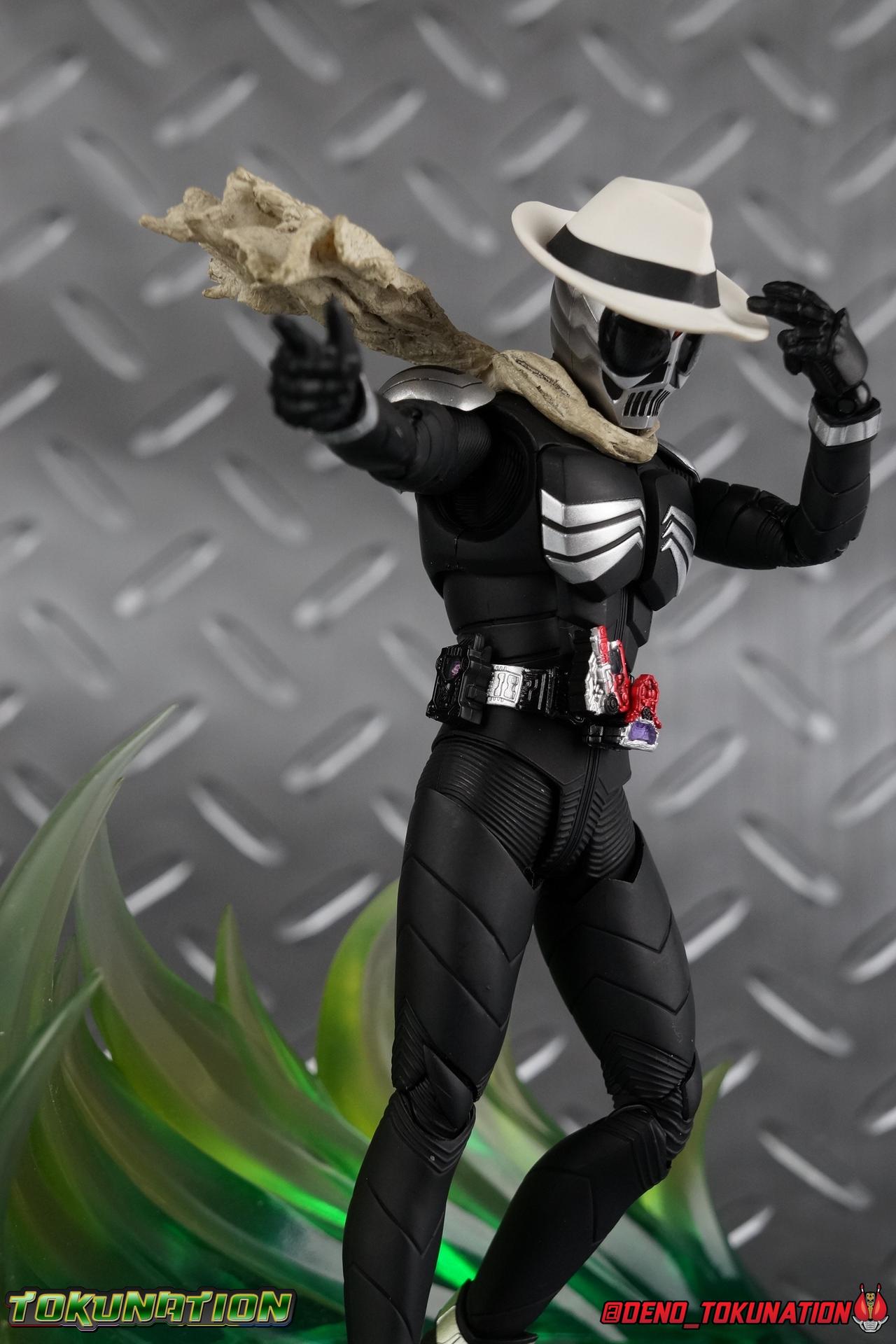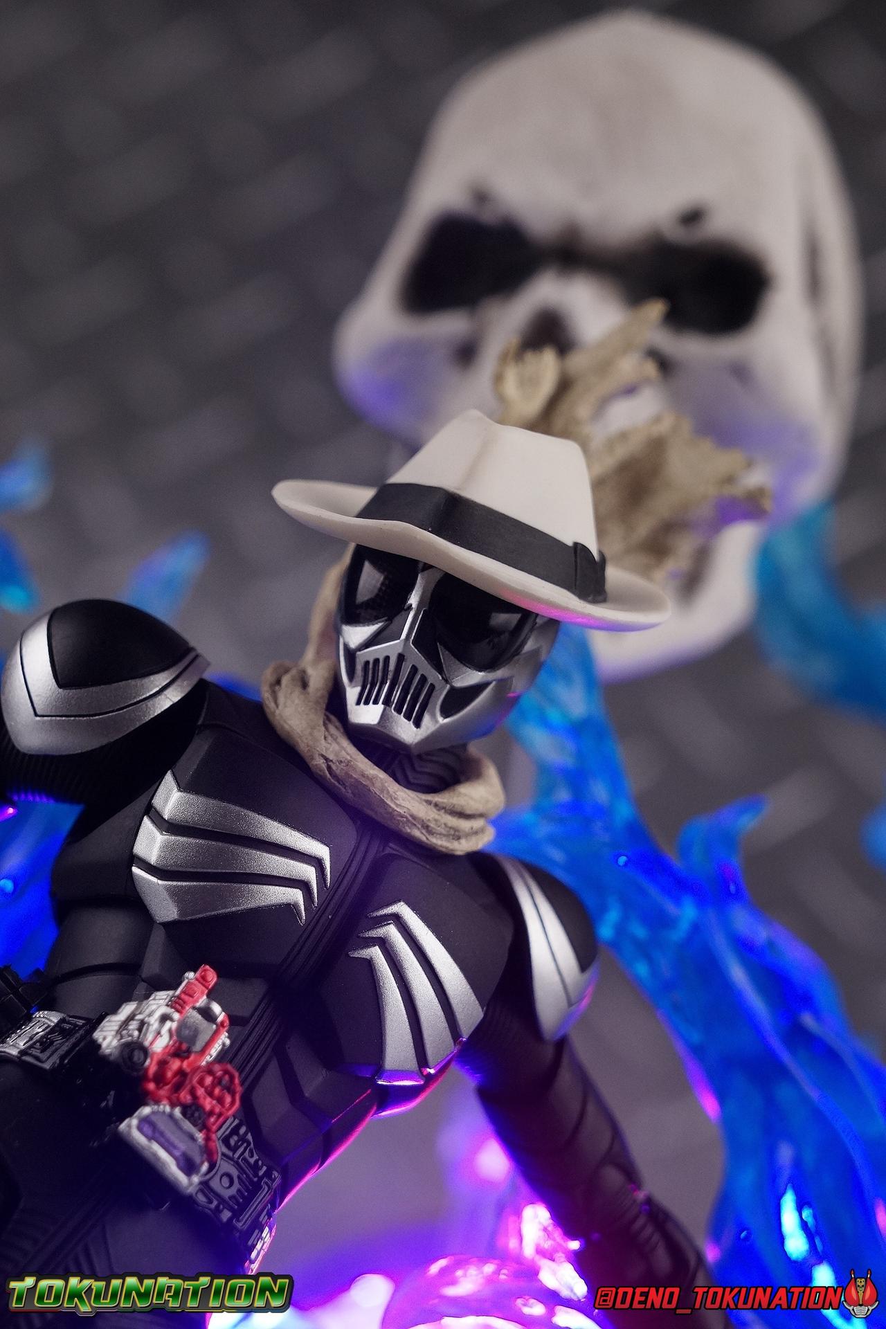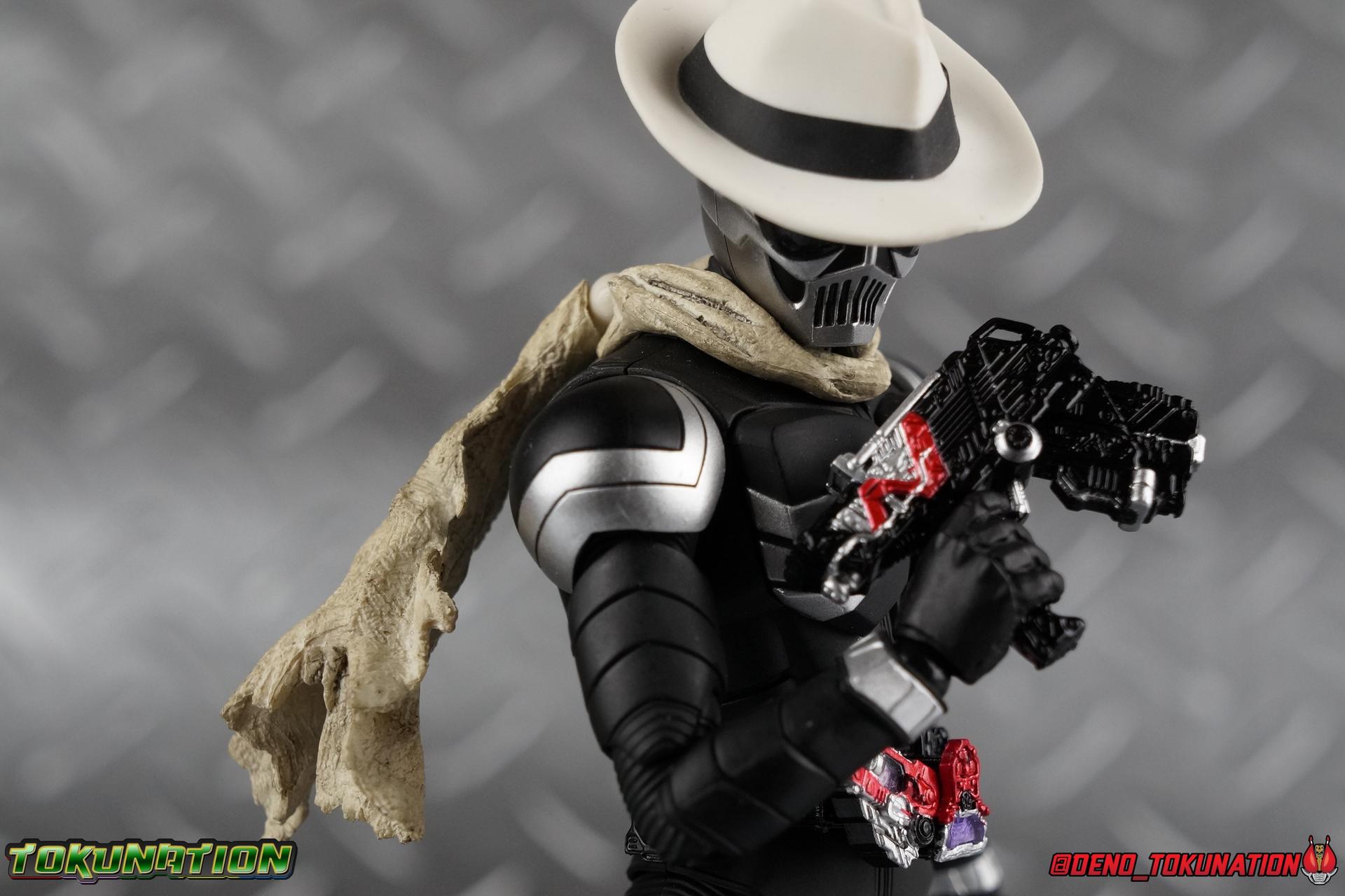 When the city of Fuuto faced it's darkest hour a hard boiled detective named Soukichi Narumi defended it as it's first hero, Kamen Rider Skull! Creating a legacy that would live on in his protege Kamen Rider W, Skull set the example for what it truly meant to be a hero in this city. Now Bandai have set a new standard for what it means to be a collector. Truly apologizing for the shortcomings of an older figure. The original Kamen Rider Skull & subsequent Skull Crystal release were made from the same flawed mold that the original Kamen Rider W and it's various repaints were. Plagued by QC issues, improper proportions, a non-functioning driver, and all the rest. Now all these years later Bandai have rectified all these issues and more with S.H. Figuarts Shinkocchou Seihou Kamen Rider Skull! Let's dive in to see just how much of an improvement it really is. ** This gallery is split across the first 3 posts of this thread. Part 1 is a basic breakdown of Skull, part 2 is the Skull Magnum & Skull Crystal, part 3 is group shots & further accessories. Pacakaging That standard slipcover packaging of Shinkocchou Seihou returns again. You've seen it numerous times before. Skull's colors and theme fit it very well. But ultimately it's still a rather bland type of packaging. Main Figure As with the previous line of Kamen Rider W figuarts, this new Seihou line relies heavily on repaints. Skull is basically W with a new head and accessories, and obviously a fresh coat of paint. But that means we know what to expect when it comes to this releases. As with W, that's excellence. Feel free to peruse my review below, but it will be very similar in wording to my W review. While I've never been the biggest fans of the Kamen Rider W TV Series and related films, I've been astonished thus far by this revitalized line of S.H. Figuarts. Shinkocchou Seihou W was the renewal fans deserved for years, Seihou Accel was likewise light years beyond the original figure. Now I'm happy to report that Kamen Rider Skull has similarly blown it's original counterpart out of the water. The W body type has easily been my favorite in the Seihou line, it just really checks off all the boxes for what collectors have demanded for years. It's taken a long time to get back to this point, but it's been worth the wait. At the end of it's lifespan my original Skull figuart was certainly showing it's age. Incredibly weak hip joints made it reliant on a Tamashii Stage, easily scratched black paint made damage very apparent and easy to happen. The imperfect match of the hat material with the heads paint resulted in horrendous defects. It was plagued by many problems. This go around however we have the excellent Seihou W body. For the majority of my review you'll see this figure in the configuration of accessories that to me, presents the perfect Skull, but you have 3 options really: Skull Crystal - Using the included Crystal head with the undamaged fedora recreate his appearance in Movie War Core. A film which documented Soukichi Narumi's earliest adventure as the incomplete Skull Crystal. I included a handful of shots with the crystal head during the mid section of the gallery, but it's honestly difficult to differentiate them from the others when he has the hat on so my apologies. Skull - The standard appearance Narumi uses. Most notably seen in flashbacks thanks to the Begins Night portion of Movie Wars 2010, and the Skull: Message for W sequence in Movie War Core. This standard appearance is how he is most often depicted in media though the damaged fedora is sometimes seen interchangeably as well. This look is also the standard appearance of the A.R. World Skull seen at the end of Movie Wars 2010. Most of this gallery displays this form. Imposter/Dopant Skull - seen in Movie Wars 2010, this impostor looks identical to the original Skull but is seen wearing the torn fedora. One which Shotaro has held dear since Skulls' death during the Begins Night incident. I saved shots of that for near the end of the gallery before reverting to the standard look. With all that out of the way I just want to touch a bit on the functionality of the figure. I won't spend a ton of time on it because the articulation is identical to Seihou W. Fantastic ankles and toe bends, really nice knees that look like a natural expansion of the costume akin to real fabric stretching, same for the hips. The legs are very tight on this release compared to What and in thinking it has something to do with the paint. Unsure of that though. As with W, Skull features an intricately detailed sculpt with appropriate paint apps for his Lost Driver, and it's entirely functional.We have an open slot for any to-scale Gaia Memory to be inserted. I find the fit very loose for the Skull Memory in the driver, but otherwise I still love it. Be careful not to lose it, it's very tiny. I'm still amazed at how well the torso is designed as well. When I initially handled Seihou W, I thought that figure's torso was all one piece until I realized the upper body could move. It just looks that good in hand. This figure can pull off most any pose you recall the character making, and looks absolutely perfect while doing so. Maybe my only gripe with the articulation is the scarf/muffler. The neck piece hit's skulls chin just the right way to nix movement in some cases. This is exacerbated by the fact that the actually poseable part of the scarf has to be inserted through a hole on the neck, effectively locking the other part of the scarf in place. But this is a minor concern. This is 100% a fantastic figure. W has so far been the absolute best of the best for the Shinkocchou Seihou sub-line. In the coming months we'll be getting Eternal, and I very much welcome that despite my distaste of the character. While it's not relevant now, when I bought my Seihou Skull I got very unlucky in that it had two standard left fists. I can safely say I've never gotten a figuart with an error like this before. So I