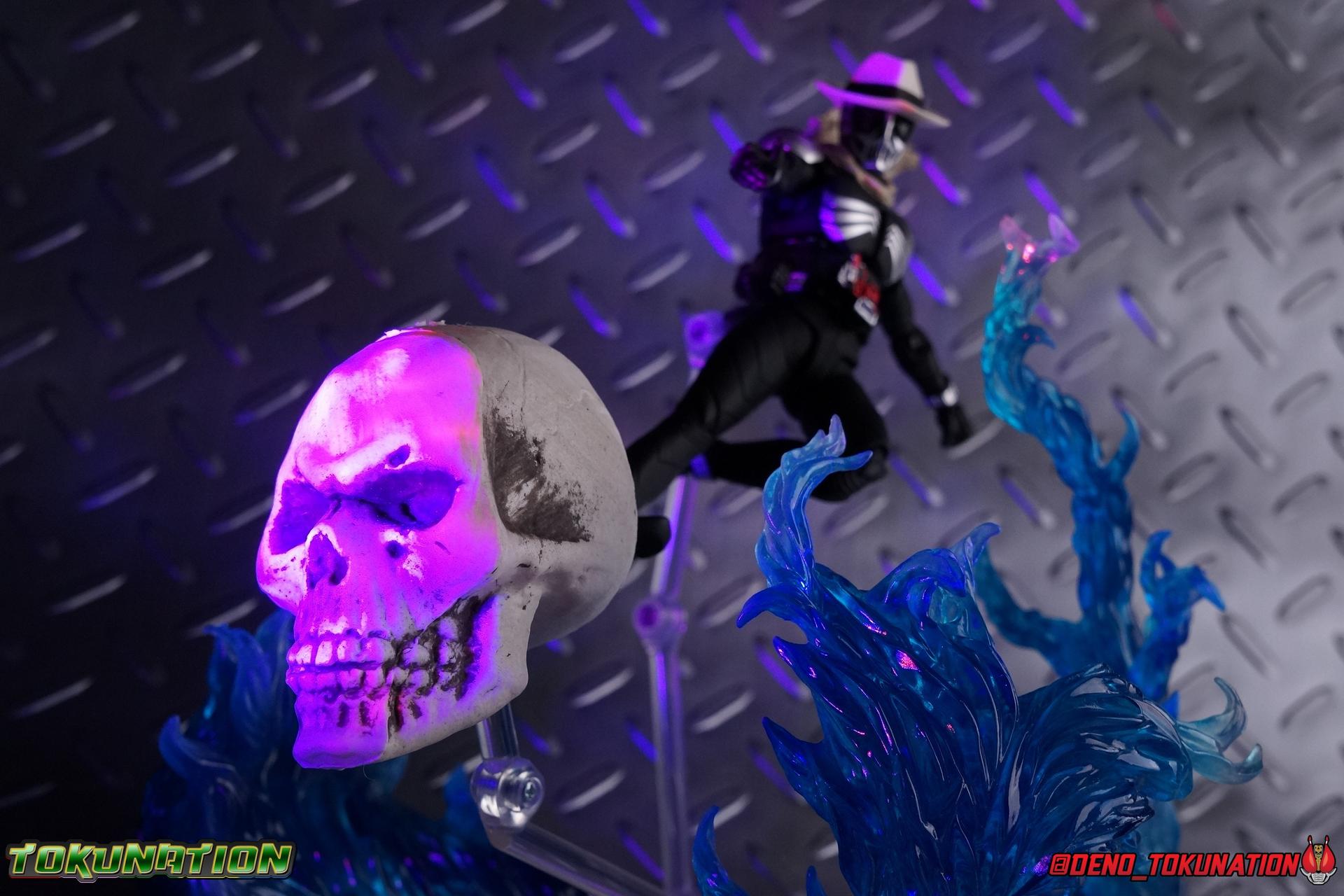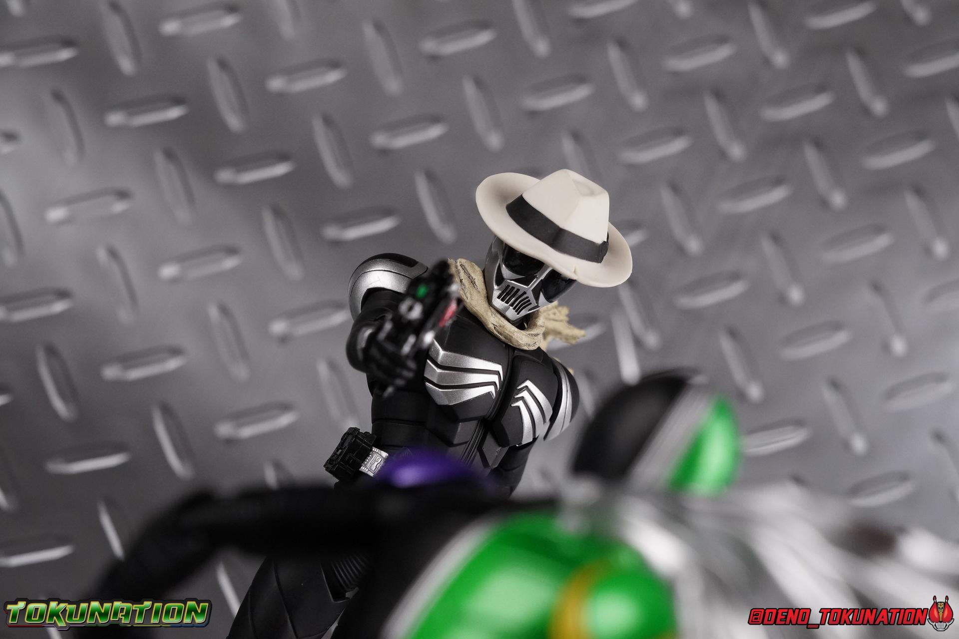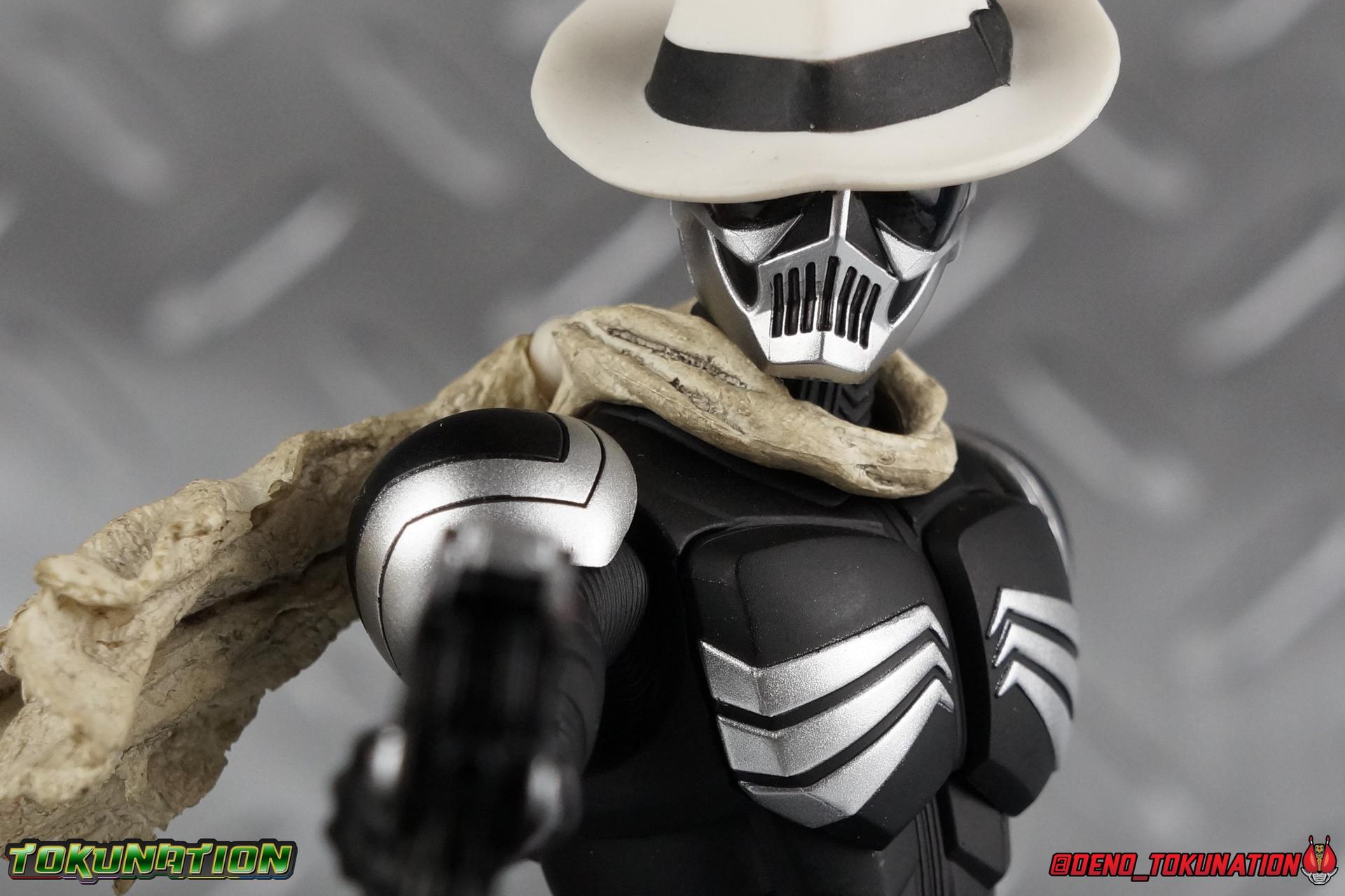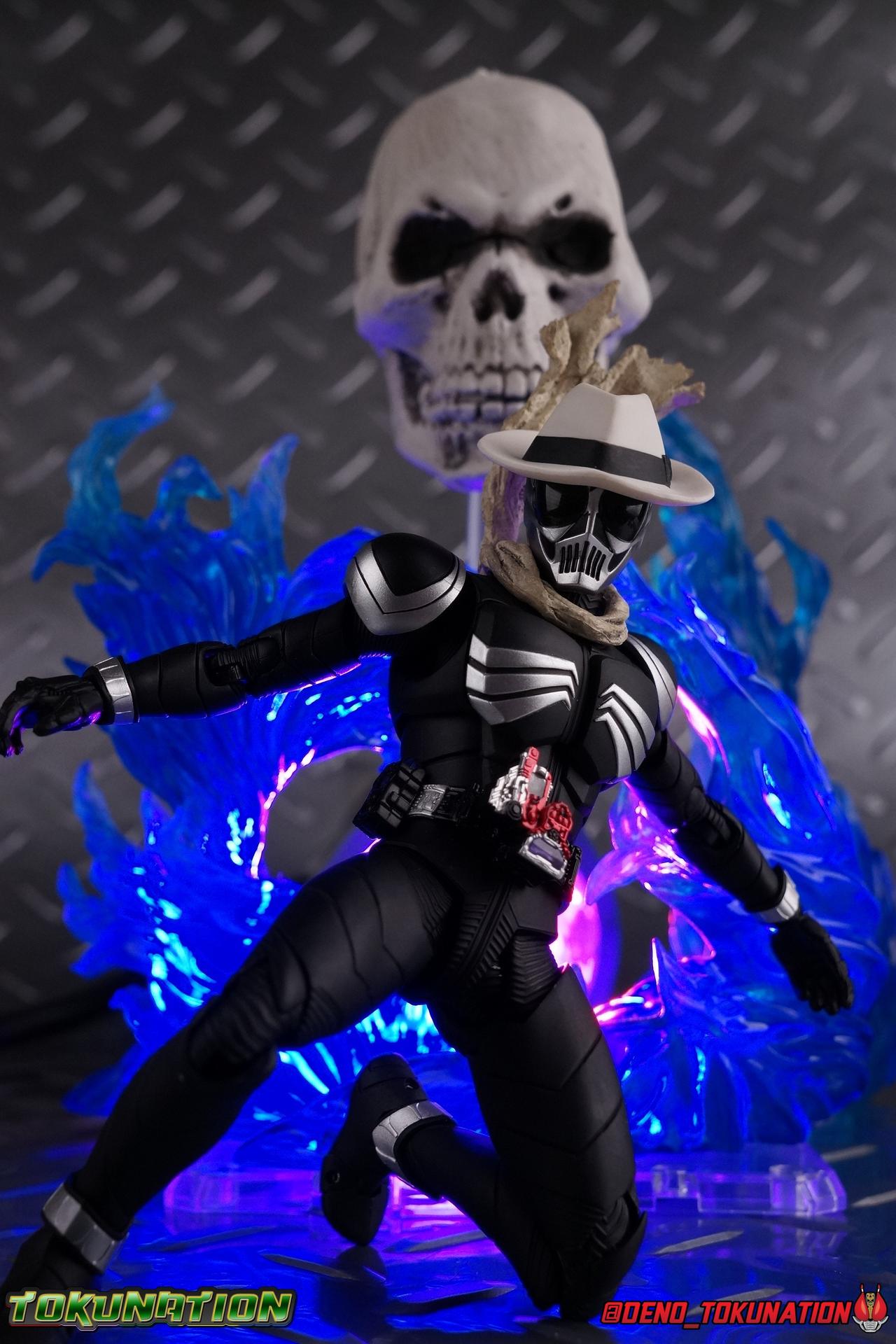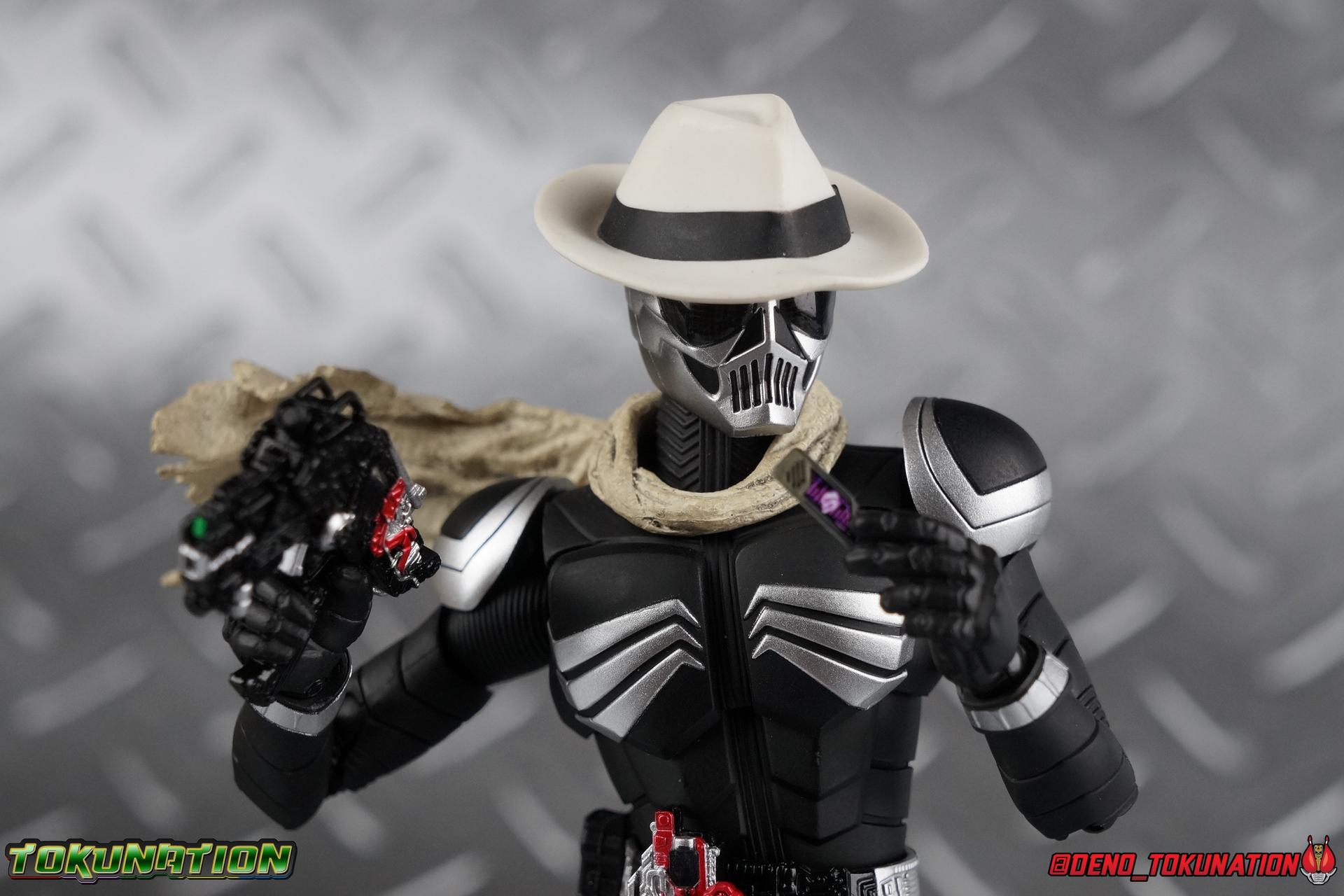 When the city of Fuuto faced it's darkest hour a hard boiled detective named Soukichi Narumi defended it as it's first hero, Kamen Rider Skull! Creating a legacy that would live on in his protege Kamen Rider W, Skull set the example for what it truly meant to be a hero in this city. Now Bandai have set a new standard for what it means to be a collector. Truly apologizing for the shortcomings of an older figure. The original Kamen Rider Skull & subsequent Skull Crystal release were made from the same flawed mold that the original Kamen Rider W and it's various repaints were. Plagued by QC issues, improper proportions, a non-functioning driver, and all the rest. Now all these years later Bandai have rectified all these issues and more with S.H. Figuarts Shinkocchou Seihou Kamen Rider Skull! Let's dive in to see just how much of an improvement it really is. ** This gallery is split across the first 3 posts of this thread. Part 1 is a basic breakdown of Skull, part 2 is the Skull Magnum & Skull Crystal, part 3 is group shots & further accessories. Pacakaging That standard slipcover packaging of Shinkocchou Seihou returns again. You've seen it numerous times before. Skull's colors and theme fit it very well. But ultimately it's still a rather bland type of packaging. Main Figure As with the previous line of Kamen Rider W figuarts, this new Seihou line relies heavily on repaints. Skull is basically W with a new head and accessories, and obviously a fresh coat of paint. But that means we know what to expect when it comes to this releases. As with W, that's excellence. Feel free to peruse my review below, but it will be very similar in wording to my W review. While I've never been the biggest fans of the Kamen Rider W TV Series and related films, I've been astonished thus far by this revitalized line of S.H. Figuarts. Shinkocchou Seihou W was the renewal fans deserved for years, Seihou Accel was likewise light years beyond the original figure. Now I'm happy to report that Kamen Rider Skull has similarly blown it's original counterpart out of the water. The W body type has easily been my favorite in the Seihou line, it just really checks off all the boxes for what collectors have demanded for years. It's taken a long time to get back to this point, but it's been worth the wait. At the end of it's lifespan my original Skull figuart was certainly showing it's age. Incredibly weak hip joints made it reliant on a Tamashii Stage, easily scratched black paint made damage very apparent and easy to happen. The imperfect match of the hat material with the heads paint resulted in horrendous defects. It was plagued by many problems. This go around however we have the excellent Seihou W body. For the majority of my review you'll see this figure in the configuration of accessories that to me, presents the perfect Skull, but you have 3 options really: Skull Crystal - Using the included Crystal head with the undamaged fedora recreate his appearance in Movie War Core. A film which documented Soukichi Narumi's earliest adventure as the incomplete Skull Crystal. I included a handful of shots with the crystal head during the mid section of the gallery, but it's honestly difficult to differentiate them from the others when he has the hat on so my apologies. Skull - The standard appearance Narumi uses. Most notably seen in flashbacks thanks to the Begins Night portion of Movie Wars 2010, and the Skull: Message for W sequence in Movie War Core. This standard appearance is how he is most often depicted in media though the damaged fedora is sometimes seen interchangeably as well. This look is also the standard appearance of the A.R. World Skull seen at the end of Movie Wars 2010. Most of this gallery displays this form. Imposter/Dopant Skull - seen in Movie Wars 2010, this impostor looks identical to the original Skull but is seen wearing the torn fedora. One which Shotaro has held dear since Skulls' death during the Begins Night incident. I saved shots of that for near the end of the gallery before reverting to the standard look. With all that out of the way I just want to touch a bit on the functionality of the figure. I won't spend a ton of time on it because the articulation is identical to Seihou W. Fantastic ankles and toe bends, really nice knees that look like a natural expansion of the costume akin to real fabric stretching, same for the hips. The legs are very tight on this release compared to What and in thinking it has something to do with the paint. Unsure of that though. As with W, Skull features an intricately detailed sculpt with appropriate paint apps for his Lost Driver, and it's entirely functional.We have an open slot for any to-scale Gaia Memory to be inserted. I find the fit very loose for the Skull Memory in the driver, but otherwise I still love it. Be careful not to lose it, it's very tiny. I'm still amazed at how well the torso is designed as well. When I initially handled Seihou W, I thought that figure's torso was all one piece until I realized the upper body could move. It just looks that good in hand. This figure can pull off most any pose you recall the character making, and looks absolutely perfect while doing so. Maybe my only gripe with the articulation is the scarf/muffler. The neck piece hit's skulls chin just the right way to nix movement in some cases. This is exacerbated by the fact that the actually poseable part of the scarf has to be inserted through a hole on the neck, effectively locking the other part of the scarf in place. But this is a minor concern. This is 100% a fantastic figure. W has so far been the absolute best of the best for the Shinkocchou Seihou sub-line. In the coming months we'll be getting Eternal, and I very much welcome that despite my distaste of the character. While it's not relevant now, when I bought my Seihou Skull I got very unlucky in that it had two standard left fists. I can safely say I've never gotten a figuart with an error like this before. So I