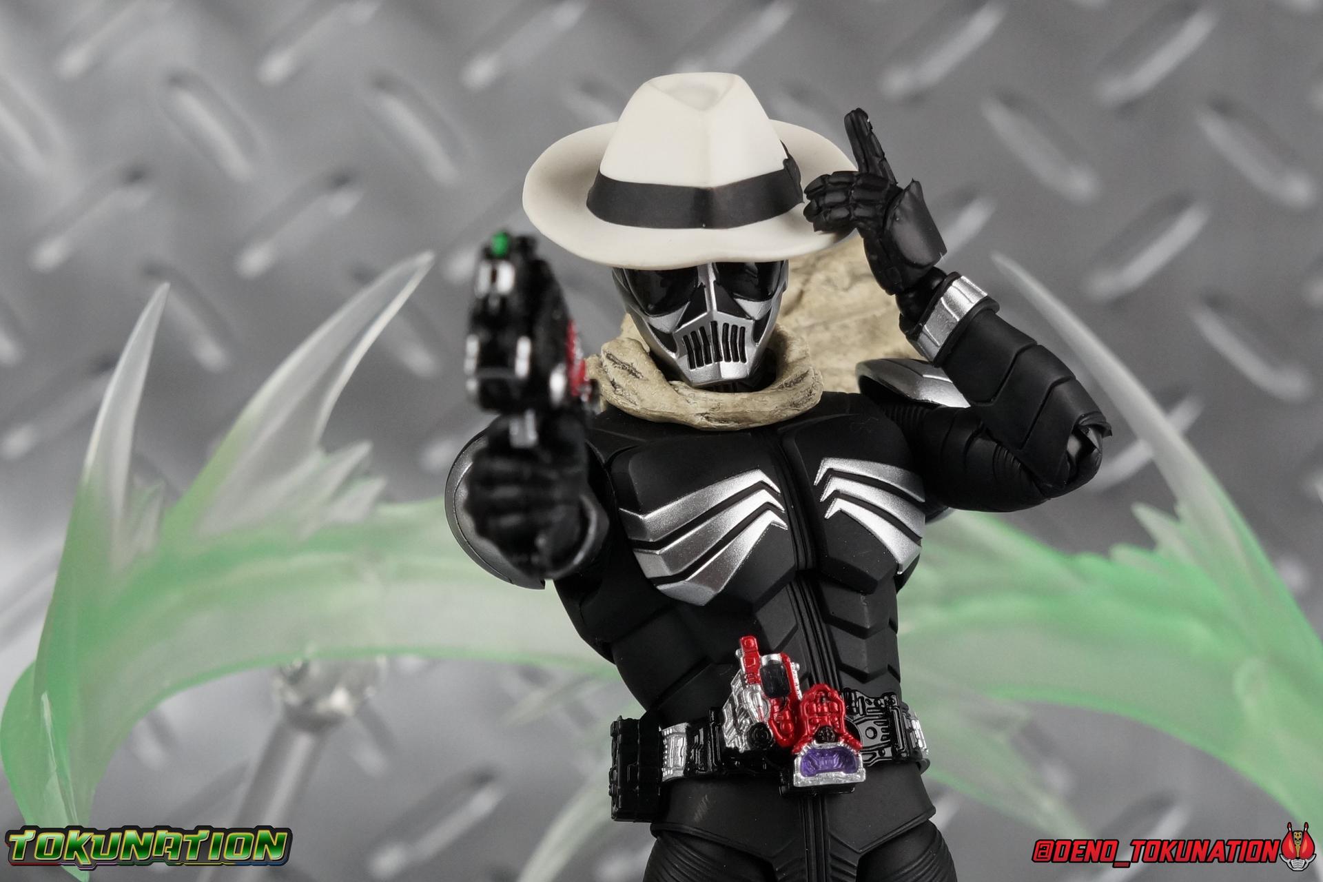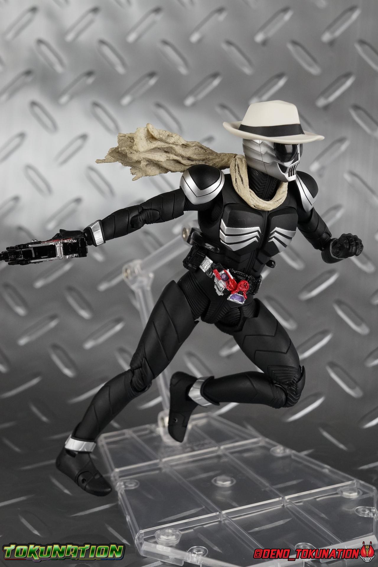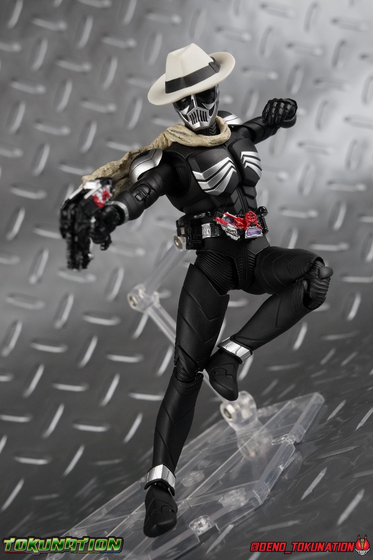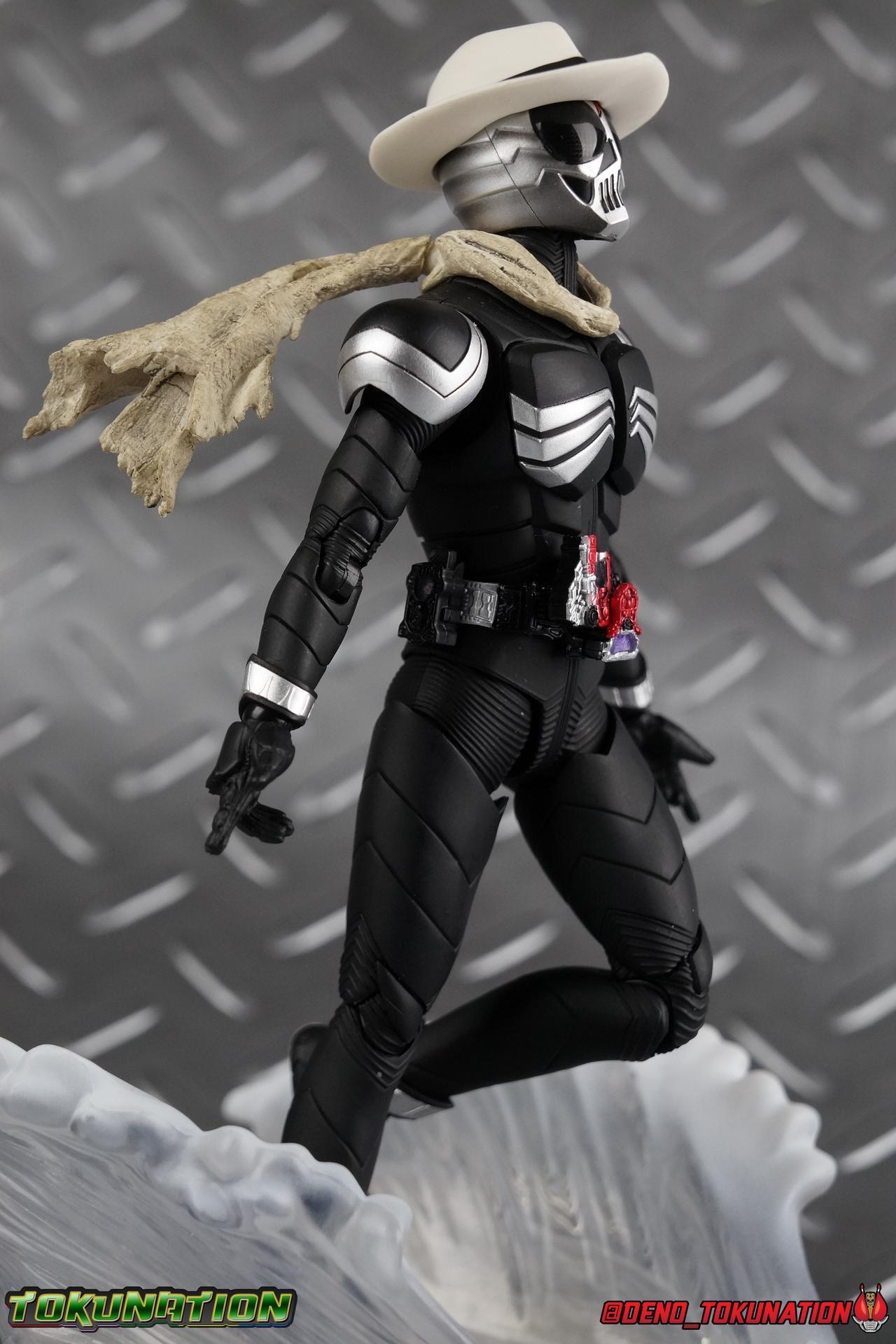 When the city of Fuuto faced it's darkest hour a hard boiled detective named Soukichi Narumi defended it as it's first hero, Kamen Rider Skull! Creating a legacy that would live on in his protege Kamen Rider W, Skull set the example for what it truly meant to be a hero in this city. Now Bandai have set a new standard for what it means to be a collector. Truly apologizing for the shortcomings of an older figure. The original Kamen Rider Skull & subsequent Skull Crystal release were made from the same flawed mold that the original Kamen Rider W and it's various repaints were. Plagued by QC issues, improper proportions, a non-functioning driver, and all the rest. Now all these years later Bandai have rectified all these issues and more with S.H. Figuarts Shinkocchou Seihou Kamen Rider Skull! Let's dive in to see just how much of an improvement it really is. ** This gallery is split across the first 3 posts of this thread. Part 1 is a basic breakdown of Skull, part 2 is the Skull Magnum & Skull Crystal, part 3 is group shots & further accessories. Pacakaging That standard slipcover packaging of Shinkocchou Seihou returns again. You've seen it numerous times before. Skull's colors and theme fit it very well. But ultimately it's still a rather bland type of packaging. Main Figure As with the previous line of Kamen Rider W figuarts, this new Seihou line relies heavily on repaints. Skull is basically W with a new head and accessories, and obviously a fresh coat of paint. But that means we know what to expect when it comes to this releases. As with W, that's excellence. Feel free to peruse my review below, but it will be very similar in wording to my W review. While I've never been the biggest fans of the Kamen Rider W TV Series and related films, I've been astonished thus far by this revitalized line of S.H. Figuarts. Shinkocchou Seihou W was the renewal fans deserved for years, Seihou Accel was likewise light years beyond the original figure. Now I'm happy to report that Kamen Rider Skull has similarly blown it's original counterpart out of the water. The W body type has easily been my favorite in the Seihou line, it just really checks off all the boxes for what collectors have demanded for years. It's taken a long time to get back to this point, but it's been worth the wait. At the end of it's lifespan my original Skull figuart was certainly showing it's age. Incredibly weak hip joints made it reliant on a Tamashii Stage, easily scratched black paint made damage very apparent and easy to happen. The imperfect match of the hat material with the heads paint resulted in horrendous defects. It was plagued by many problems. This go around however we have the excellent Seihou W body. For the majority of my review you'll see this figure in the configuration of accessories that to me, presents the perfect Skull, but you have 3 options really: Skull Crystal - Using the included Crystal head with the undamaged fedora recreate his appearance in Movie War Core. A film which documented Soukichi Narumi's earliest adventure as the incomplete Skull Crystal. I included a handful of shots with the crystal head during the mid section of the gallery, but it's honestly difficult to differentiate them from the others when he has the hat on so my apologies. Skull - The standard appearance Narumi uses. Most notably seen in flashbacks thanks to the Begins Night portion of Movie Wars 2010, and the Skull: Message for W sequence in Movie War Core. This standard appearance is how he is most often depicted in media though the damaged fedora is sometimes seen interchangeably as well. This look is also the standard appearance of the A.R. World Skull seen at the end of Movie Wars 2010. Most of this gallery displays this form. Imposter/Dopant Skull - seen in Movie Wars 2010, this impostor looks identical to the original Skull but is seen wearing the torn fedora. One which Shotaro has held dear since Skulls' death during the Begins Night incident. I saved shots of that for near the end of the gallery before reverting to the standard look. With all that out of the way I just want to touch a bit on the functionality of the figure. I won't spend a ton of time on it because the articulation is identical to Seihou W. Fantastic ankles and toe bends, really nice knees that look like a natural expansion of the costume akin to real fabric stretching, same for the hips. The legs are very tight on this release compared to What and in thinking it has something to do with the paint. Unsure of that though. As with W, Skull features an intricately detailed sculpt with appropriate paint apps for his Lost Driver, and it's entirely functional.We have an open slot for any to-scale Gaia Memory to be inserted. I find the fit very loose for the Skull Memory in the driver, but otherwise I still love it. Be careful not to lose it, it's very tiny. I'm still amazed at how well the torso is designed as well. When I initially handled Seihou W, I thought that figure's torso was all one piece until I realized the upper body could move. It just looks that good in hand. This figure can pull off most any pose you recall the character making, and looks absolutely perfect while doing so. Maybe my only gripe with the articulation is the scarf/muffler. The neck piece hit's skulls chin just the right way to nix movement in some cases. This is exacerbated by the fact that the actually poseable part of the scarf has to be inserted through a hole on the neck, effectively locking the other part of the scarf in place. But this is a minor concern. This is 100% a fantastic figure. W has so far been the absolute best of the best for the Shinkocchou Seihou sub-line. In the coming months we'll be getting Eternal, and I very much welcome that despite my distaste of the character. While it's not relevant now, when I bought my Seihou Skull I got very unlucky in that it had two standard left fists. I can safely say I've never gotten a figuart with an error like this before. So I