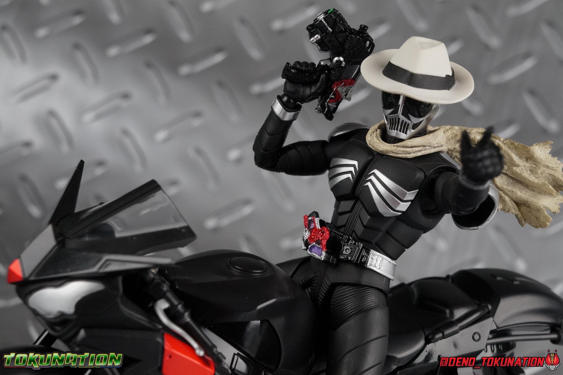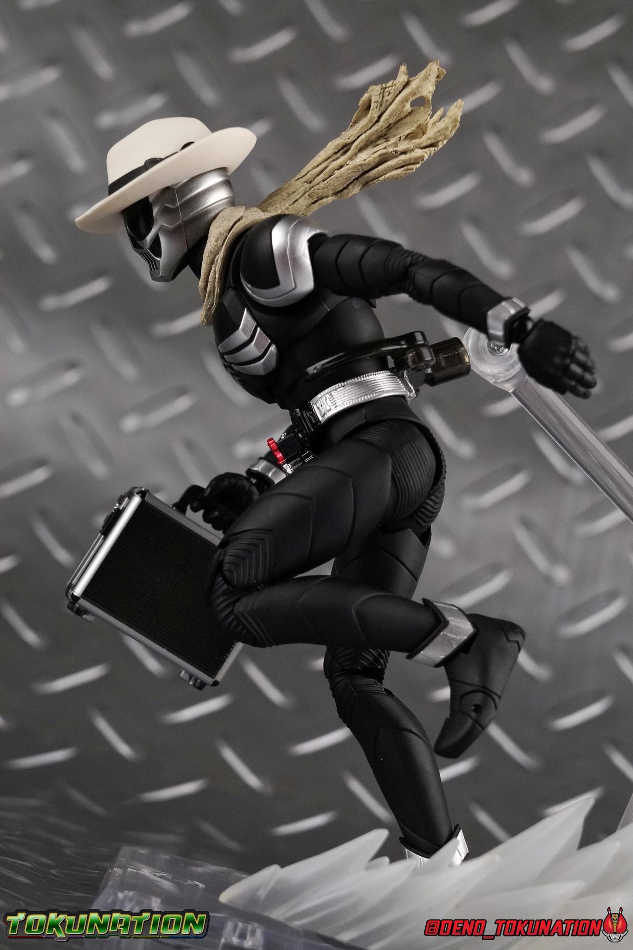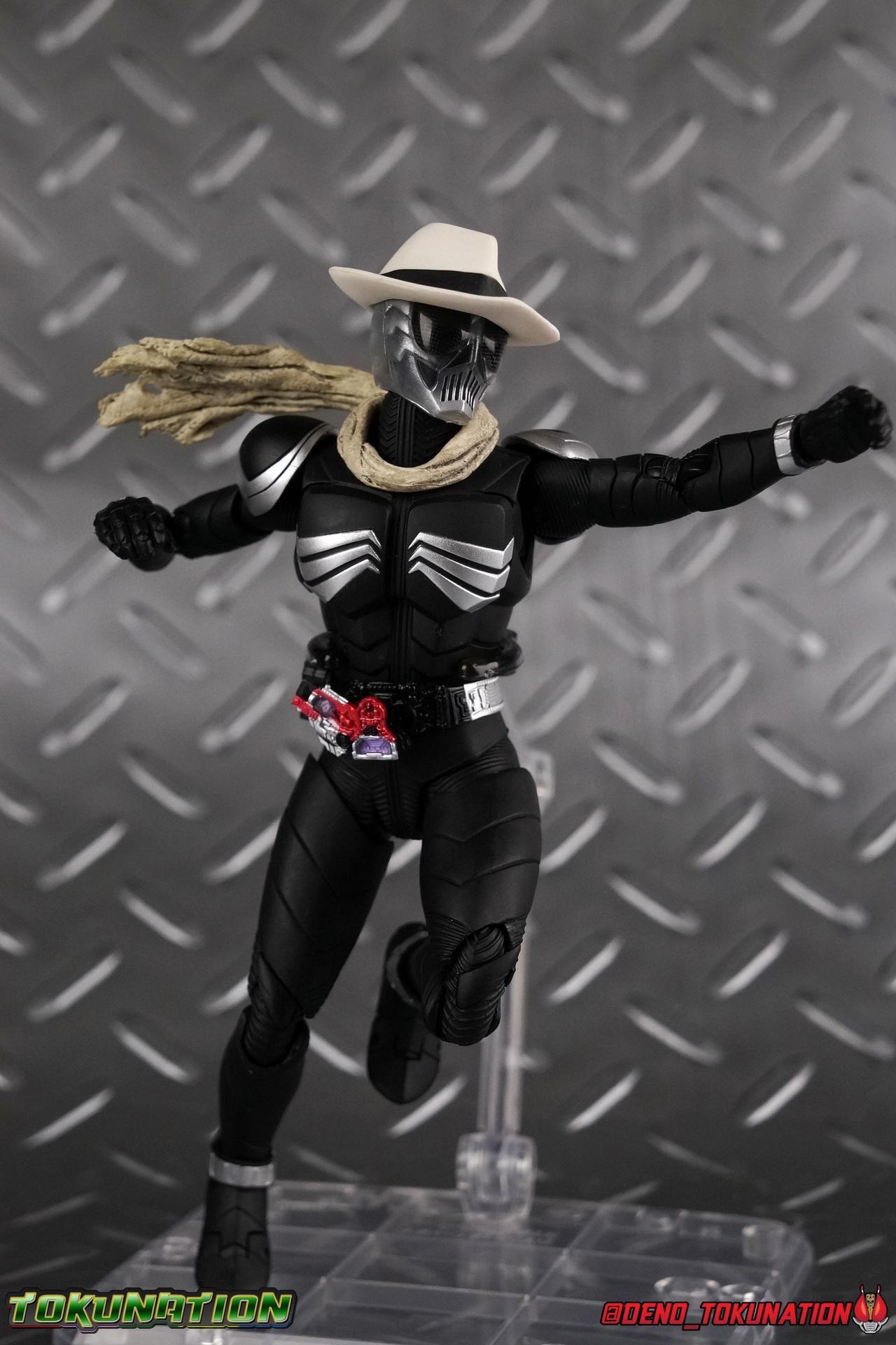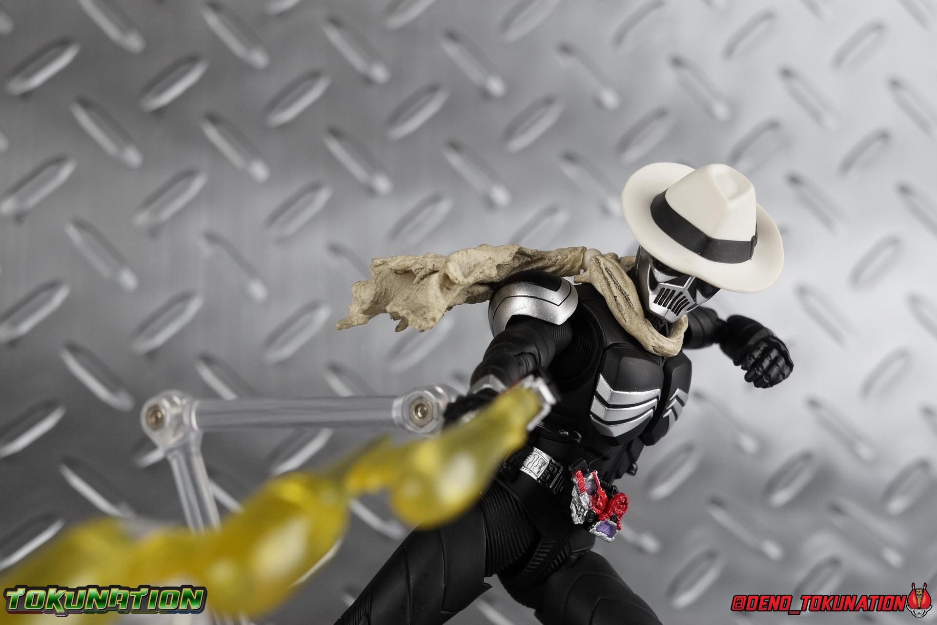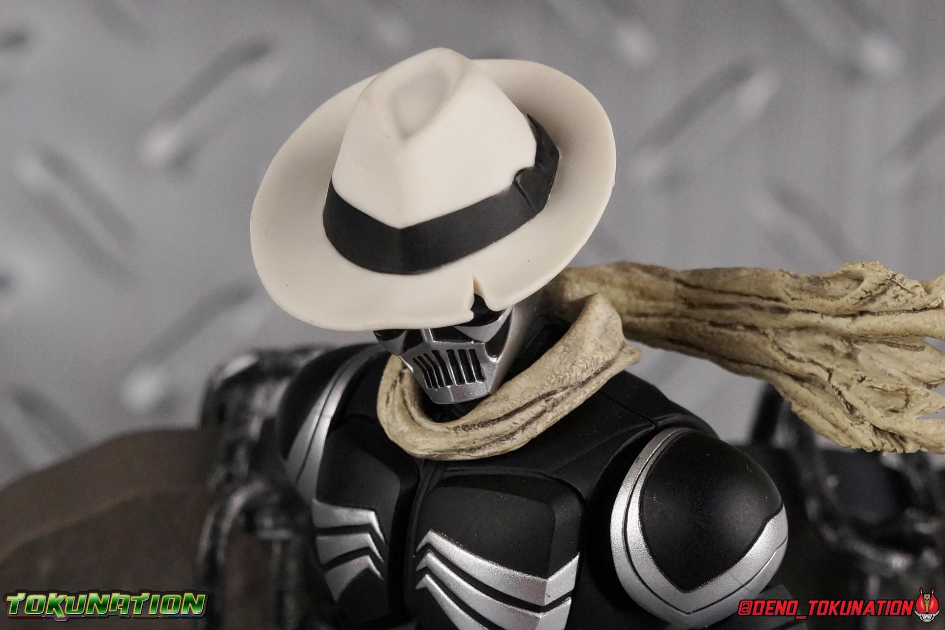 When the city of Fuuto faced it's darkest hour a hard boiled detective named Soukichi Narumi defended it as it's first hero, Kamen Rider Skull! Creating a legacy that would live on in his protege Kamen Rider W, Skull set the example for what it truly meant to be a hero in this city. Now Bandai have set a new standard for what it means to be a collector. Truly apologizing for the shortcomings of an older figure. The original Kamen Rider Skull & subsequent Skull Crystal release were made from the same flawed mold that the original Kamen Rider W and it's various repaints were. Plagued by QC issues, improper proportions, a non-functioning driver, and all the rest. Now all these years later Bandai have rectified all these issues and more with S.H. Figuarts Shinkocchou Seihou Kamen Rider Skull! Let's dive in to see just how much of an improvement it really is. ** This gallery is split across the first 3 posts of this thread. Part 1 is a basic breakdown of Skull, part 2 is the Skull Magnum & Skull Crystal, part 3 is group shots & further accessories. Pacakaging That standard slipcover packaging of Shinkocchou Seihou returns again. You've seen it numerous times before. Skull's colors and theme fit it very well. But ultimately it's still a rather bland type of packaging. Main Figure As with the previous line of Kamen Rider W figuarts, this new Seihou line relies heavily on repaints. Skull is basically W with a new head and accessories, and obviously a fresh coat of paint. But that means we know what to expect when it comes to this releases. As with W, that's excellence. Feel free to peruse my review below, but it will be very similar in wording to my W review. While I've never been the biggest fans of the Kamen Rider W TV Series and related films, I've been astonished thus far by this revitalized line of S.H. Figuarts. Shinkocchou Seihou W was the renewal fans deserved for years, Seihou Accel was likewise light years beyond the original figure. Now I'm happy to report that Kamen Rider Skull has similarly blown it's original counterpart out of the water. The W body type has easily been my favorite in the Seihou line, it just really checks off all the boxes for what collectors have demanded for years. It's taken a long time to get back to this point, but it's been worth the wait. At the end of it's lifespan my original Skull figuart was certainly showing it's age. Incredibly weak hip joints made it reliant on a Tamashii Stage, easily scratched black paint made damage very apparent and easy to happen. The imperfect match of the hat material with the heads paint resulted in horrendous defects. It was plagued by many problems. This go around however we have the excellent Seihou W body. For the majority of my review you'll see this figure in the configuration of accessories that to me, presents the perfect Skull, but you have 3 options really: Skull Crystal - Using the included Crystal head with the undamaged fedora recreate his appearance in Movie War Core. A film which documented Soukichi Narumi's earliest adventure as the incomplete Skull Crystal. I included a handful of shots with the crystal head during the mid section of the gallery, but it's honestly difficult to differentiate them from the others when he has the hat on so my apologies. Skull - The standard appearance Narumi uses. Most notably seen in flashbacks thanks to the Begins Night portion of Movie Wars 2010, and the Skull: Message for W sequence in Movie War Core. This standard appearance is how he is most often depicted in media though the damaged fedora is sometimes seen interchangeably as well. This look is also the standard appearance of the A.R. World Skull seen at the end of Movie Wars 2010. Most of this gallery displays this form. Imposter/Dopant Skull - seen in Movie Wars 2010, this impostor looks identical to the original Skull but is seen wearing the torn fedora. One which Shotaro has held dear since Skulls' death during the Begins Night incident. I saved shots of that for near the end of the gallery before reverting to the standard look. With all that out of the way I just want to touch a bit on the functionality of the figure. I won't spend a ton of time on it because the articulation is identical to Seihou W. Fantastic ankles and toe bends, really nice knees that look like a natural expansion of the costume akin to real fabric stretching, same for the hips. The legs are very tight on this release compared to What and in thinking it has something to do with the paint. Unsure of that though. As with W, Skull features an intricately detailed sculpt with appropriate paint apps for his Lost Driver, and it's entirely functional.We have an open slot for any to-scale Gaia Memory to be inserted. I find the fit very loose for the Skull Memory in the driver, but otherwise I still love it. Be careful not to lose it, it's very tiny. I'm still amazed at how well the torso is designed as well. When I initially handled Seihou W, I thought that figure's torso was all one piece until I realized the upper body could move. It just looks that good in hand. This figure can pull off most any pose you recall the character making, and looks absolutely perfect while doing so. Maybe my only gripe with the articulation is the scarf/muffler. The neck piece hit's skulls chin just the right way to nix movement in some cases. This is exacerbated by the fact that the actually poseable part of the scarf has to be inserted through a hole on the neck, effectively locking the other part of the scarf in place. But this is a minor concern. This is 100% a fantastic figure. W has so far been the absolute best of the best for the Shinkocchou Seihou sub-line. In the coming months we'll be getting Eternal, and I very much welcome that despite my distaste of the character. While it's not relevant now, when I bought my Seihou Skull I got very unlucky in that it had two standard left fists. I can safely say I've never gotten a figuart with an error like this before. So I