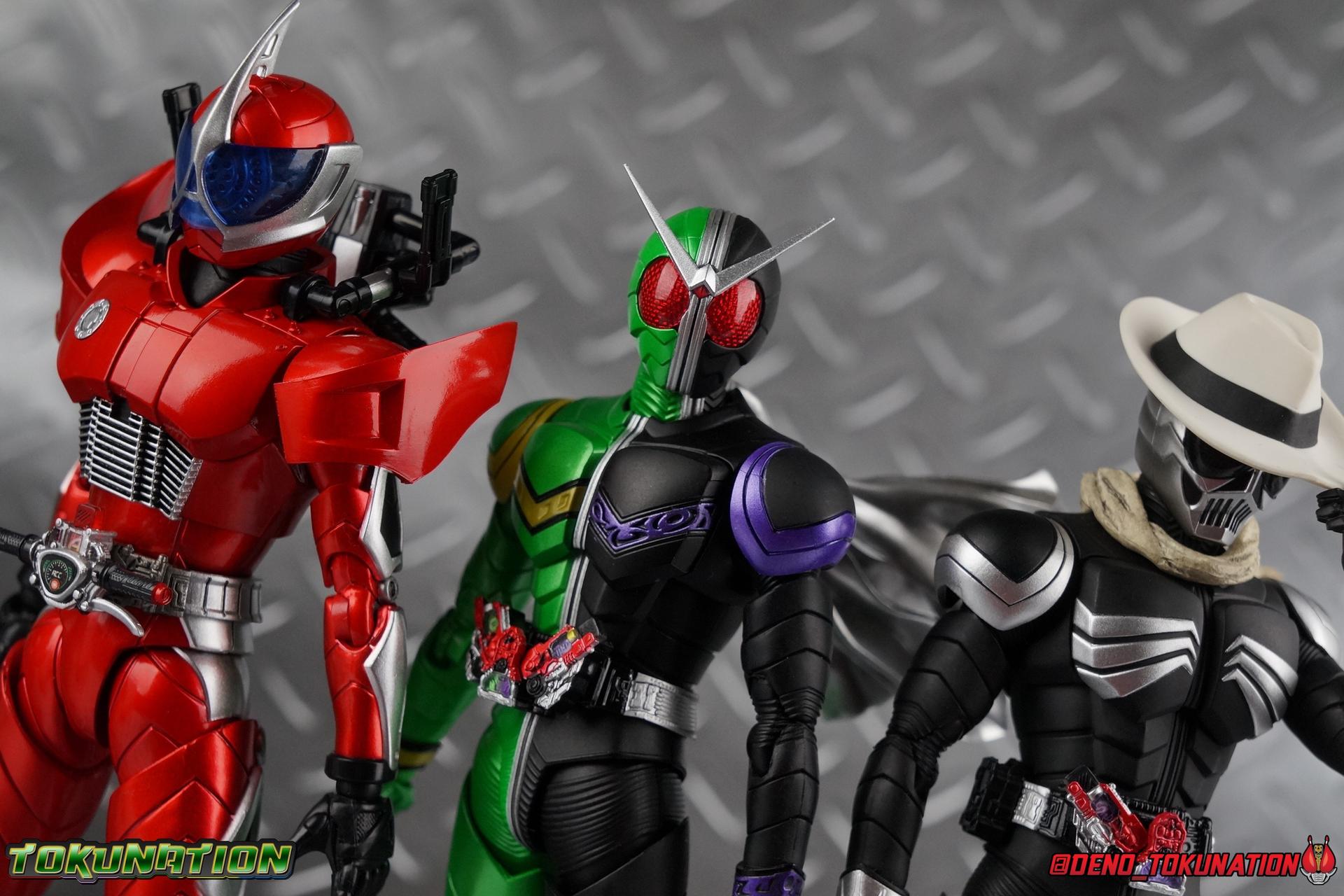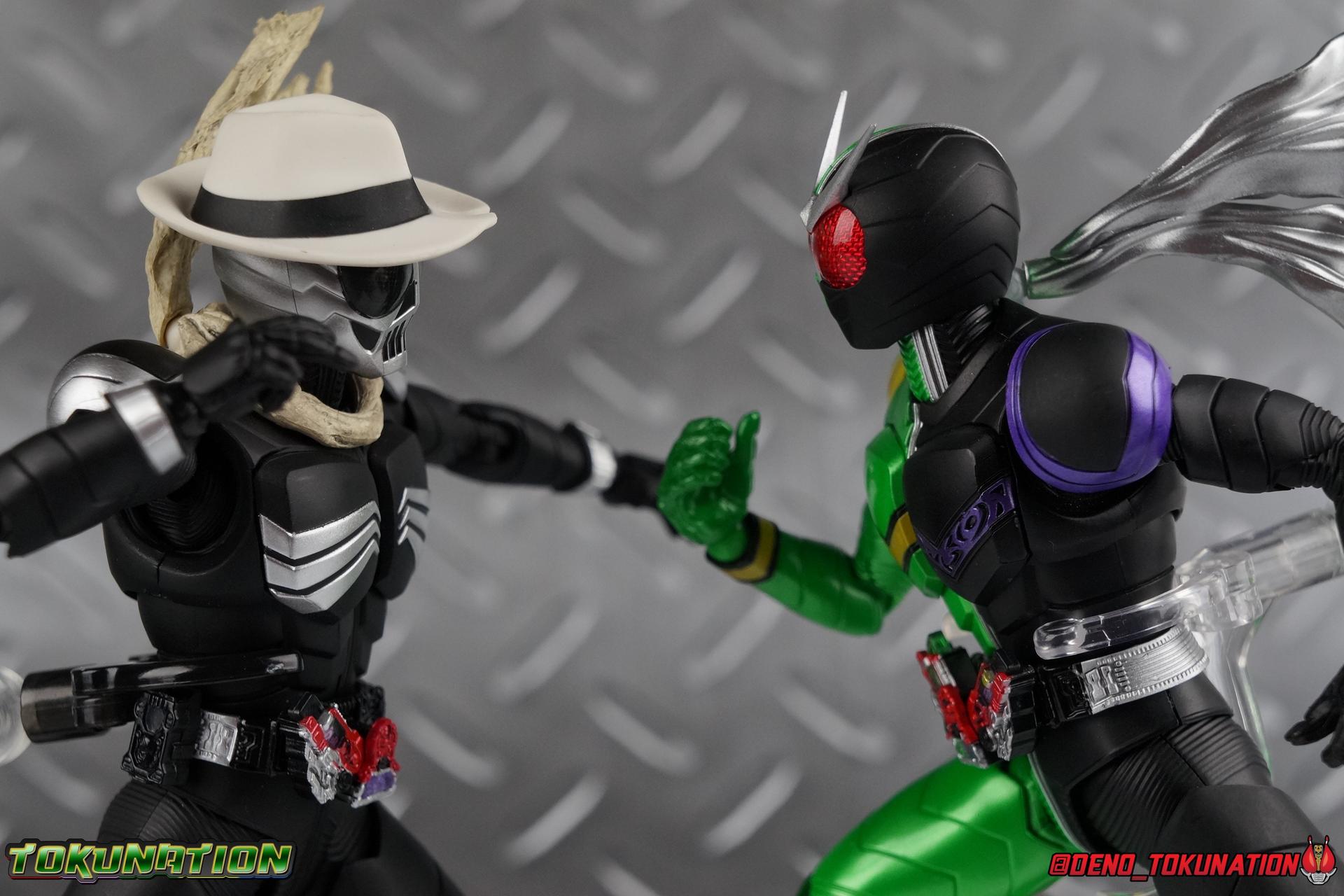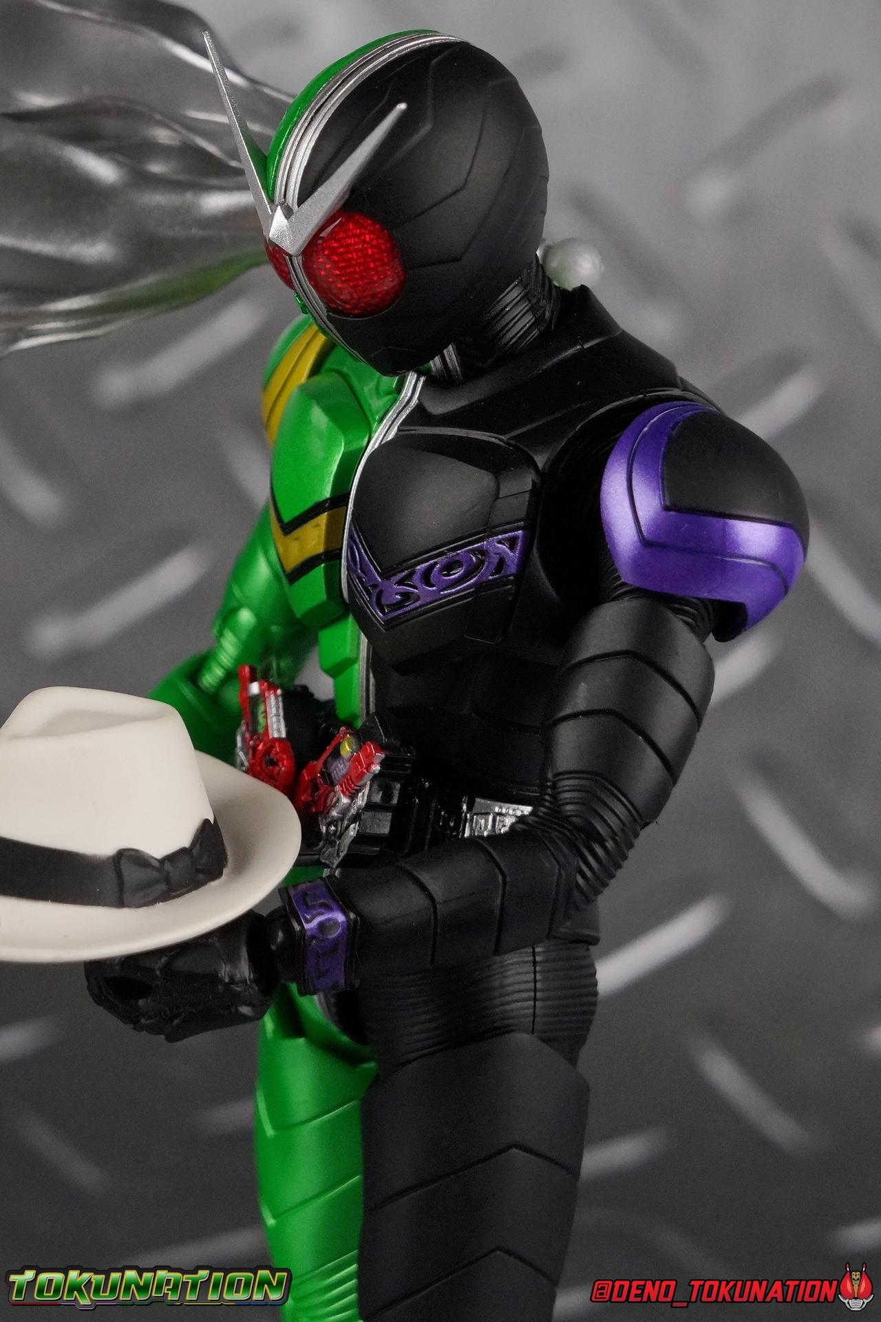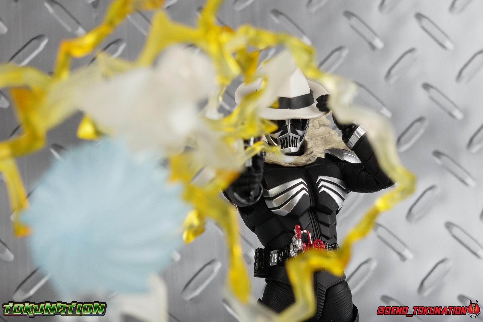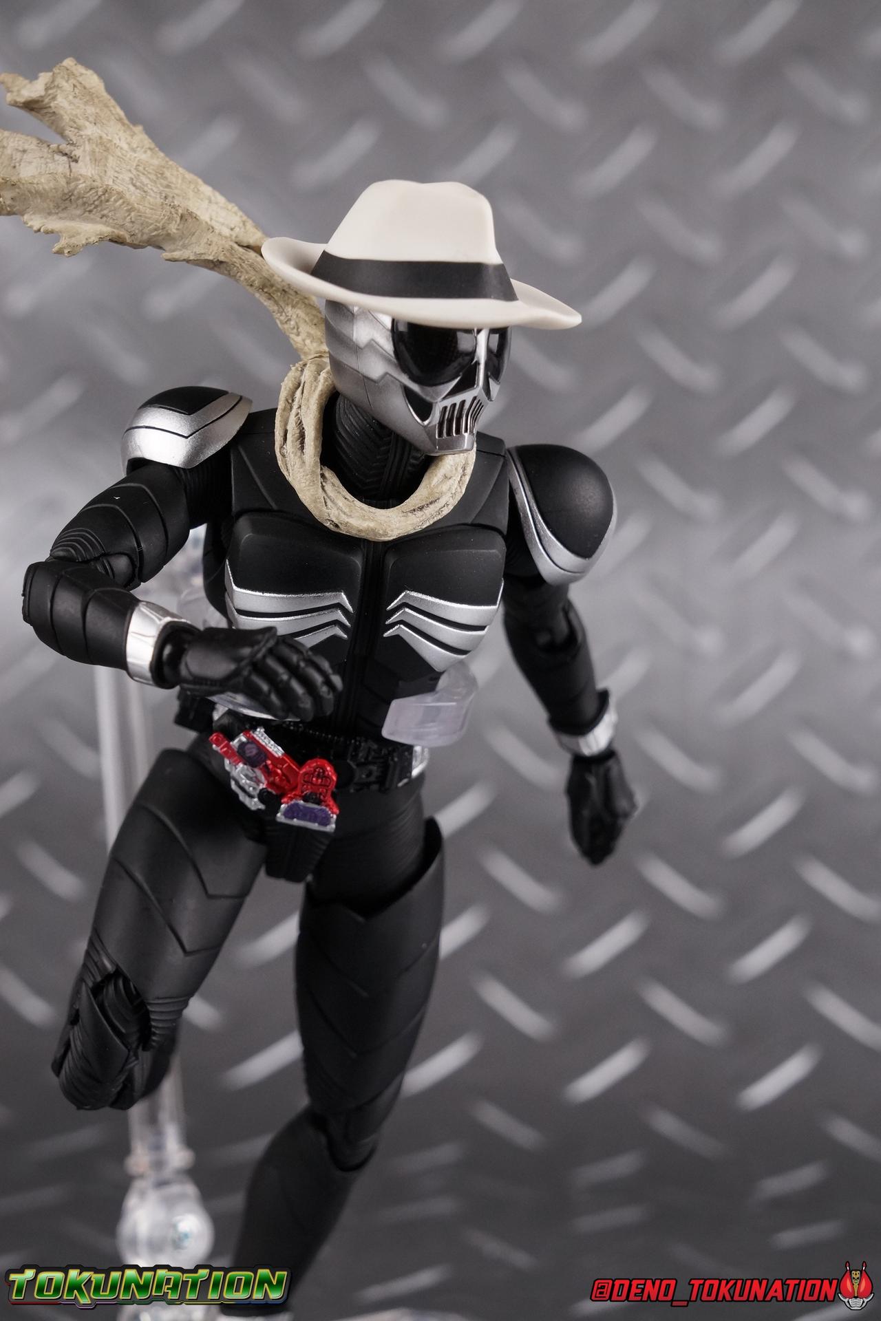 When the city of Fuuto faced it's darkest hour a hard boiled detective named Soukichi Narumi defended it as it's first hero, Kamen Rider Skull! Creating a legacy that would live on in his protege Kamen Rider W, Skull set the example for what it truly meant to be a hero in this city. Now Bandai have set a new standard for what it means to be a collector. Truly apologizing for the shortcomings of an older figure. The original Kamen Rider Skull & subsequent Skull Crystal release were made from the same flawed mold that the original Kamen Rider W and it's various repaints were. Plagued by QC issues, improper proportions, a non-functioning driver, and all the rest. Now all these years later Bandai have rectified all these issues and more with S.H. Figuarts Shinkocchou Seihou Kamen Rider Skull! Let's dive in to see just how much of an improvement it really is. ** This gallery is split across the first 3 posts of this thread. Part 1 is a basic breakdown of Skull, part 2 is the Skull Magnum & Skull Crystal, part 3 is group shots & further accessories. Pacakaging That standard slipcover packaging of Shinkocchou Seihou returns again. You've seen it numerous times before. Skull's colors and theme fit it very well. But ultimately it's still a rather bland type of packaging. Main Figure As with the previous line of Kamen Rider W figuarts, this new Seihou line relies heavily on repaints. Skull is basically W with a new head and accessories, and obviously a fresh coat of paint. But that means we know what to expect when it comes to this releases. As with W, that's excellence. Feel free to peruse my review below, but it will be very similar in wording to my W review. While I've never been the biggest fans of the Kamen Rider W TV Series and related films, I've been astonished thus far by this revitalized line of S.H. Figuarts. Shinkocchou Seihou W was the renewal fans deserved for years, Seihou Accel was likewise light years beyond the original figure. Now I'm happy to report that Kamen Rider Skull has similarly blown it's original counterpart out of the water. The W body type has easily been my favorite in the Seihou line, it just really checks off all the boxes for what collectors have demanded for years. It's taken a long time to get back to this point, but it's been worth the wait. At the end of it's lifespan my original Skull figuart was certainly showing it's age. Incredibly weak hip joints made it reliant on a Tamashii Stage, easily scratched black paint made damage very apparent and easy to happen. The imperfect match of the hat material with the heads paint resulted in horrendous defects. It was plagued by many problems. This go around however we have the excellent Seihou W body. For the majority of my review you'll see this figure in the configuration of accessories that to me, presents the perfect Skull, but you have 3 options really: Skull Crystal - Using the included Crystal head with the undamaged fedora recreate his appearance in Movie War Core. A film which documented Soukichi Narumi's earliest adventure as the incomplete Skull Crystal. I included a handful of shots with the crystal head during the mid section of the gallery, but it's honestly difficult to differentiate them from the others when he has the hat on so my apologies. Skull - The standard appearance Narumi uses. Most notably seen in flashbacks thanks to the Begins Night portion of Movie Wars 2010, and the Skull: Message for W sequence in Movie War Core. This standard appearance is how he is most often depicted in media though the damaged fedora is sometimes seen interchangeably as well. This look is also the standard appearance of the A.R. World Skull seen at the end of Movie Wars 2010. Most of this gallery displays this form. Imposter/Dopant Skull - seen in Movie Wars 2010, this impostor looks identical to the original Skull but is seen wearing the torn fedora. One which Shotaro has held dear since Skulls' death during the Begins Night incident. I saved shots of that for near the end of the gallery before reverting to the standard look. With all that out of the way I just want to touch a bit on the functionality of the figure. I won't spend a ton of time on it because the articulation is identical to Seihou W. Fantastic ankles and toe bends, really nice knees that look like a natural expansion of the costume akin to real fabric stretching, same for the hips. The legs are very tight on this release compared to What and in thinking it has something to do with the paint. Unsure of that though. As with W, Skull features an intricately detailed sculpt with appropriate paint apps for his Lost Driver, and it's entirely functional.We have an open slot for any to-scale Gaia Memory to be inserted. I find the fit very loose for the Skull Memory in the driver, but otherwise I still love it. Be careful not to lose it, it's very tiny. I'm still amazed at how well the torso is designed as well. When I initially handled Seihou W, I thought that figure's torso was all one piece until I realized the upper body could move. It just looks that good in hand. This figure can pull off most any pose you recall the character making, and looks absolutely perfect while doing so. Maybe my only gripe with the articulation is the scarf/muffler. The neck piece hit's skulls chin just the right way to nix movement in some cases. This is exacerbated by the fact that the actually poseable part of the scarf has to be inserted through a hole on the neck, effectively locking the other part of the scarf in place. But this is a minor concern. This is 100% a fantastic figure. W has so far been the absolute best of the best for the Shinkocchou Seihou sub-line. In the coming months we'll be getting Eternal, and I very much welcome that despite my distaste of the character. While it's not relevant now, when I bought my Seihou Skull I got very unlucky in that it had two standard left fists. I can safely say I've never gotten a figuart with an error like this before. So I