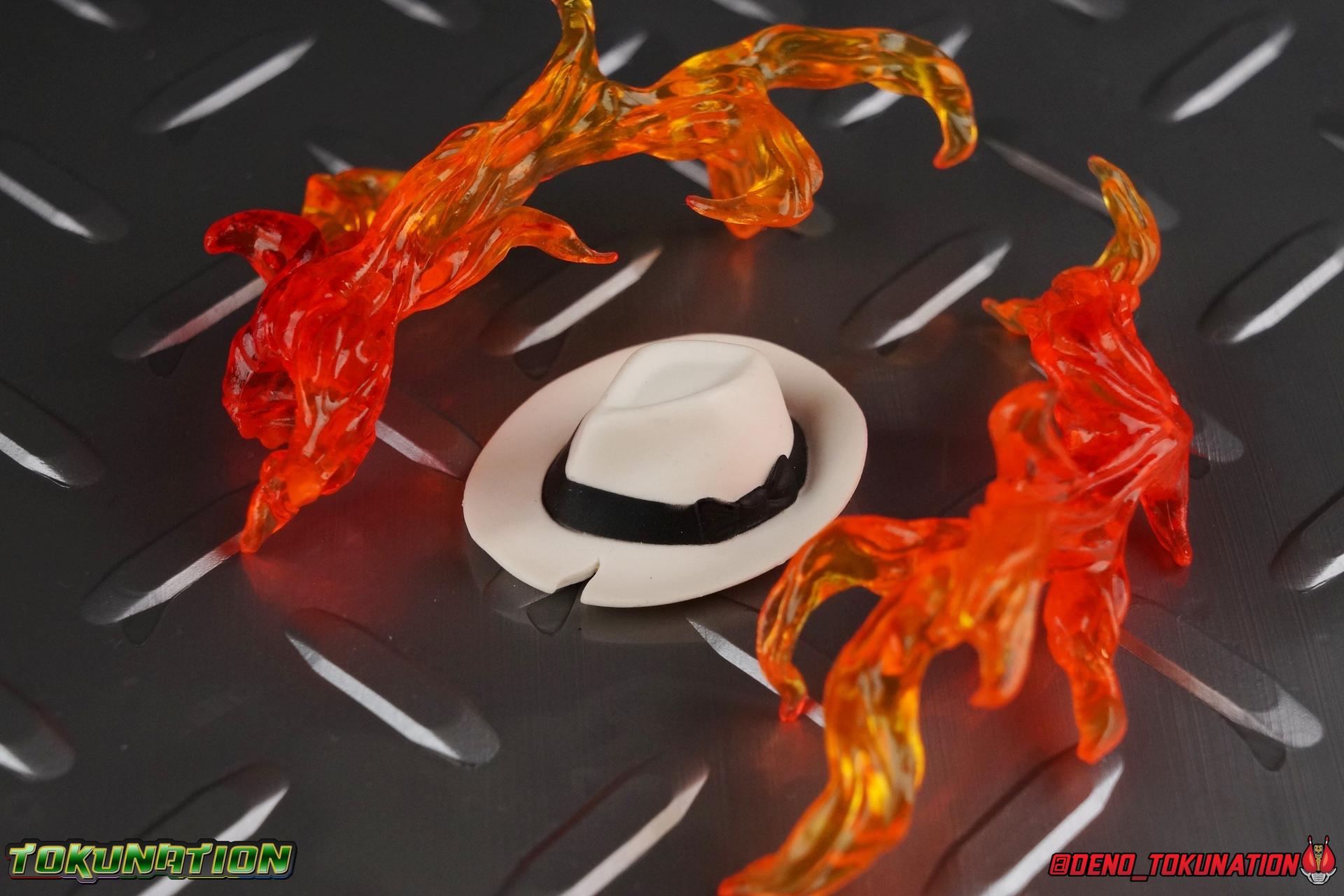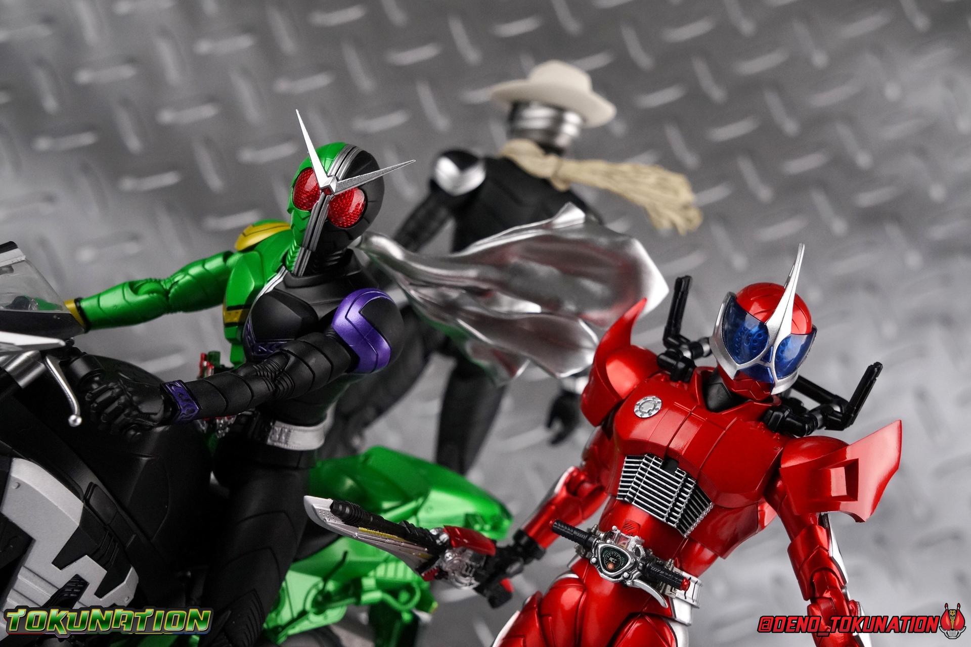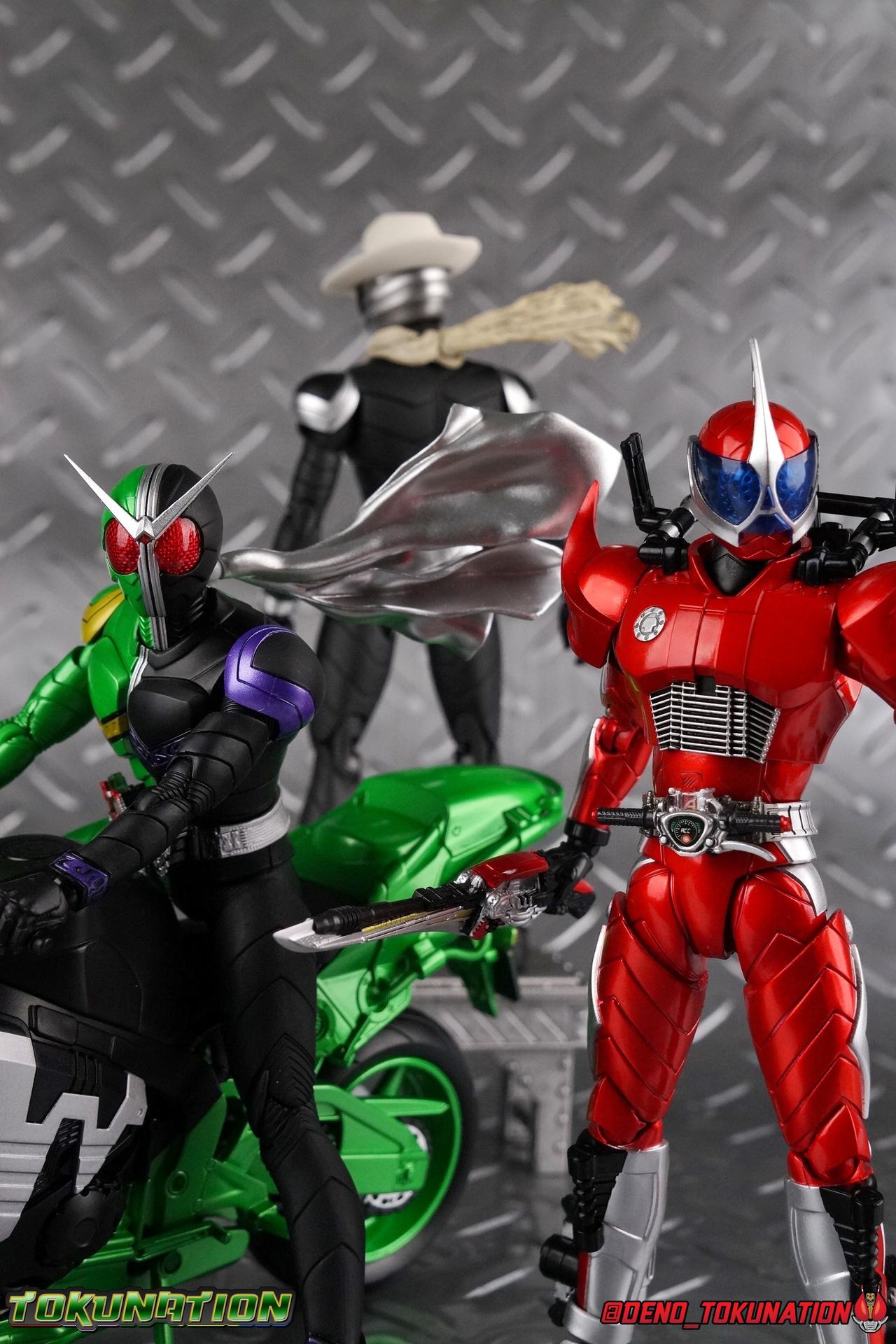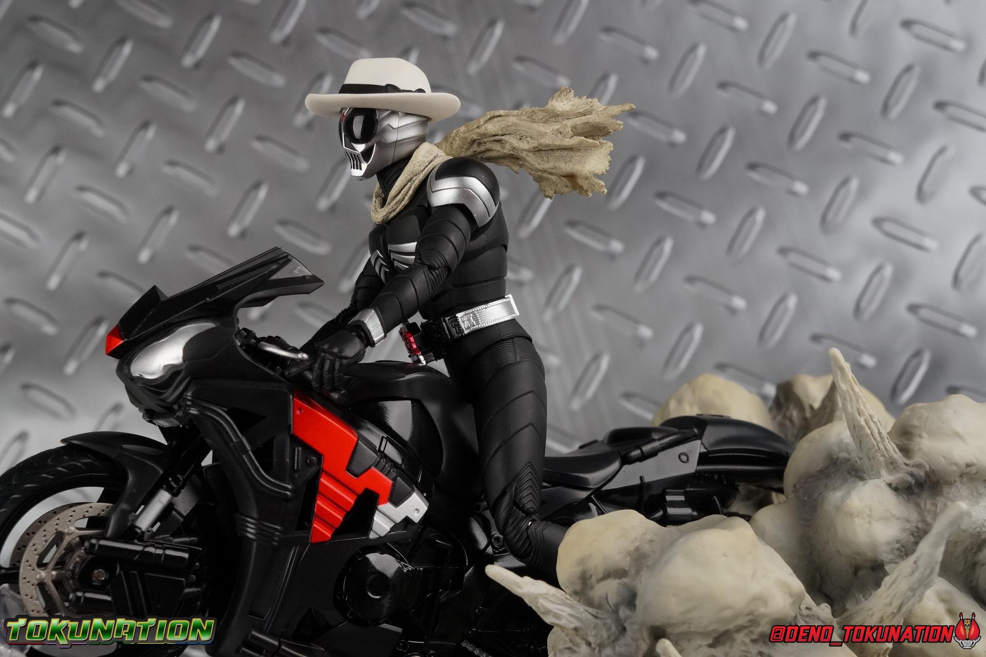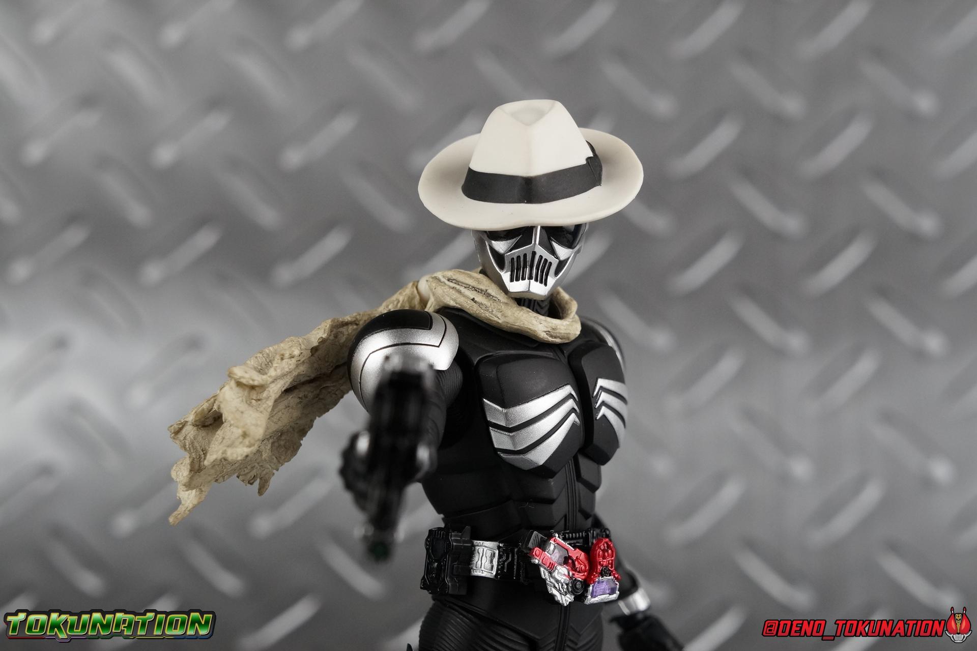 When the city of Fuuto faced it's darkest hour a hard boiled detective named Soukichi Narumi defended it as it's first hero, Kamen Rider Skull! Creating a legacy that would live on in his protege Kamen Rider W, Skull set the example for what it truly meant to be a hero in this city. Now Bandai have set a new standard for what it means to be a collector. Truly apologizing for the shortcomings of an older figure. The original Kamen Rider Skull & subsequent Skull Crystal release were made from the same flawed mold that the original Kamen Rider W and it's various repaints were. Plagued by QC issues, improper proportions, a non-functioning driver, and all the rest. Now all these years later Bandai have rectified all these issues and more with S.H. Figuarts Shinkocchou Seihou Kamen Rider Skull! Let's dive in to see just how much of an improvement it really is. ** This gallery is split across the first 3 posts of this thread. Part 1 is a basic breakdown of Skull, part 2 is the Skull Magnum & Skull Crystal, part 3 is group shots & further accessories. Pacakaging That standard slipcover packaging of Shinkocchou Seihou returns again. You've seen it numerous times before. Skull's colors and theme fit it very well. But ultimately it's still a rather bland type of packaging. Main Figure As with the previous line of Kamen Rider W figuarts, this new Seihou line relies heavily on repaints. Skull is basically W with a new head and accessories, and obviously a fresh coat of paint. But that means we know what to expect when it comes to this releases. As with W, that's excellence. Feel free to peruse my review below, but it will be very similar in wording to my W review. While I've never been the biggest fans of the Kamen Rider W TV Series and related films, I've been astonished thus far by this revitalized line of S.H. Figuarts. Shinkocchou Seihou W was the renewal fans deserved for years, Seihou Accel was likewise light years beyond the original figure. Now I'm happy to report that Kamen Rider Skull has similarly blown it's original counterpart out of the water. The W body type has easily been my favorite in the Seihou line, it just really checks off all the boxes for what collectors have demanded for years. It's taken a long time to get back to this point, but it's been worth the wait. At the end of it's lifespan my original Skull figuart was certainly showing it's age. Incredibly weak hip joints made it reliant on a Tamashii Stage, easily scratched black paint made damage very apparent and easy to happen. The imperfect match of the hat material with the heads paint resulted in horrendous defects. It was plagued by many problems. This go around however we have the excellent Seihou W body. For the majority of my review you'll see this figure in the configuration of accessories that to me, presents the perfect Skull, but you have 3 options really: Skull Crystal - Using the included Crystal head with the undamaged fedora recreate his appearance in Movie War Core. A film which documented Soukichi Narumi's earliest adventure as the incomplete Skull Crystal. I included a handful of shots with the crystal head during the mid section of the gallery, but it's honestly difficult to differentiate them from the others when he has the hat on so my apologies. Skull - The standard appearance Narumi uses. Most notably seen in flashbacks thanks to the Begins Night portion of Movie Wars 2010, and the Skull: Message for W sequence in Movie War Core. This standard appearance is how he is most often depicted in media though the damaged fedora is sometimes seen interchangeably as well. This look is also the standard appearance of the A.R. World Skull seen at the end of Movie Wars 2010. Most of this gallery displays this form. Imposter/Dopant Skull - seen in Movie Wars 2010, this impostor looks identical to the original Skull but is seen wearing the torn fedora. One which Shotaro has held dear since Skulls' death during the Begins Night incident. I saved shots of that for near the end of the gallery before reverting to the standard look. With all that out of the way I just want to touch a bit on the functionality of the figure. I won't spend a ton of time on it because the articulation is identical to Seihou W. Fantastic ankles and toe bends, really nice knees that look like a natural expansion of the costume akin to real fabric stretching, same for the hips. The legs are very tight on this release compared to What and in thinking it has something to do with the paint. Unsure of that though. As with W, Skull features an intricately detailed sculpt with appropriate paint apps for his Lost Driver, and it's entirely functional.We have an open slot for any to-scale Gaia Memory to be inserted. I find the fit very loose for the Skull Memory in the driver, but otherwise I still love it. Be careful not to lose it, it's very tiny. I'm still amazed at how well the torso is designed as well. When I initially handled Seihou W, I thought that figure's torso was all one piece until I realized the upper body could move. It just looks that good in hand. This figure can pull off most any pose you recall the character making, and looks absolutely perfect while doing so. Maybe my only gripe with the articulation is the scarf/muffler. The neck piece hit's skulls chin just the right way to nix movement in some cases. This is exacerbated by the fact that the actually poseable part of the scarf has to be inserted through a hole on the neck, effectively locking the other part of the scarf in place. But this is a minor concern. This is 100% a fantastic figure. W has so far been the absolute best of the best for the Shinkocchou Seihou sub-line. In the coming months we'll be getting Eternal, and I very much welcome that despite my distaste of the character. While it's not relevant now, when I bought my Seihou Skull I got very unlucky in that it had two standard left fists. I can safely say I've never gotten a figuart with an error like this before. So I