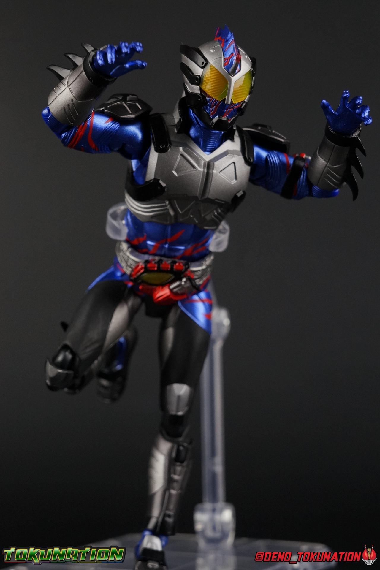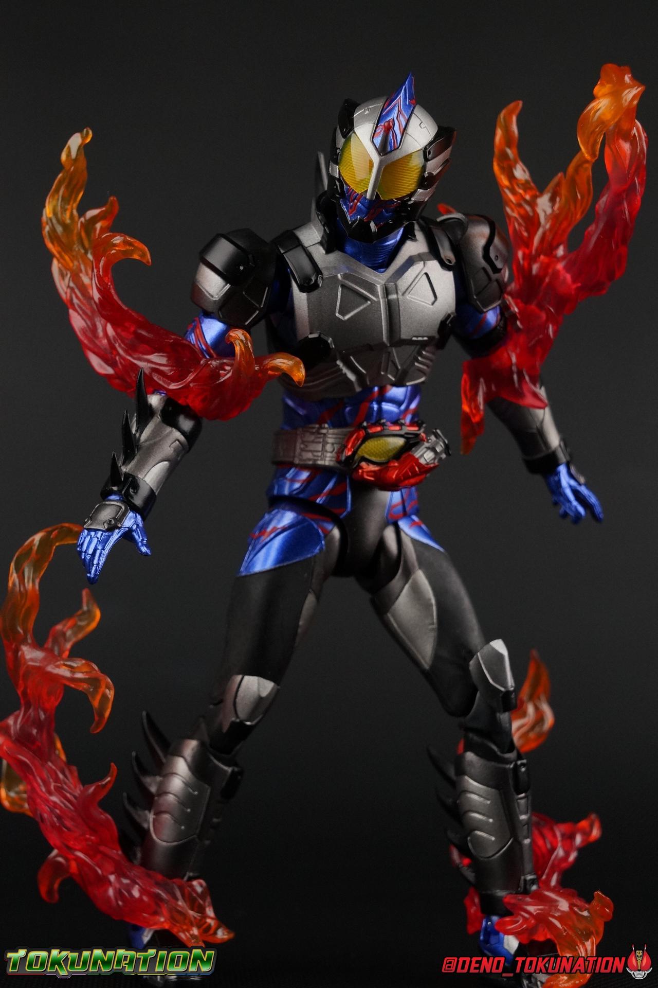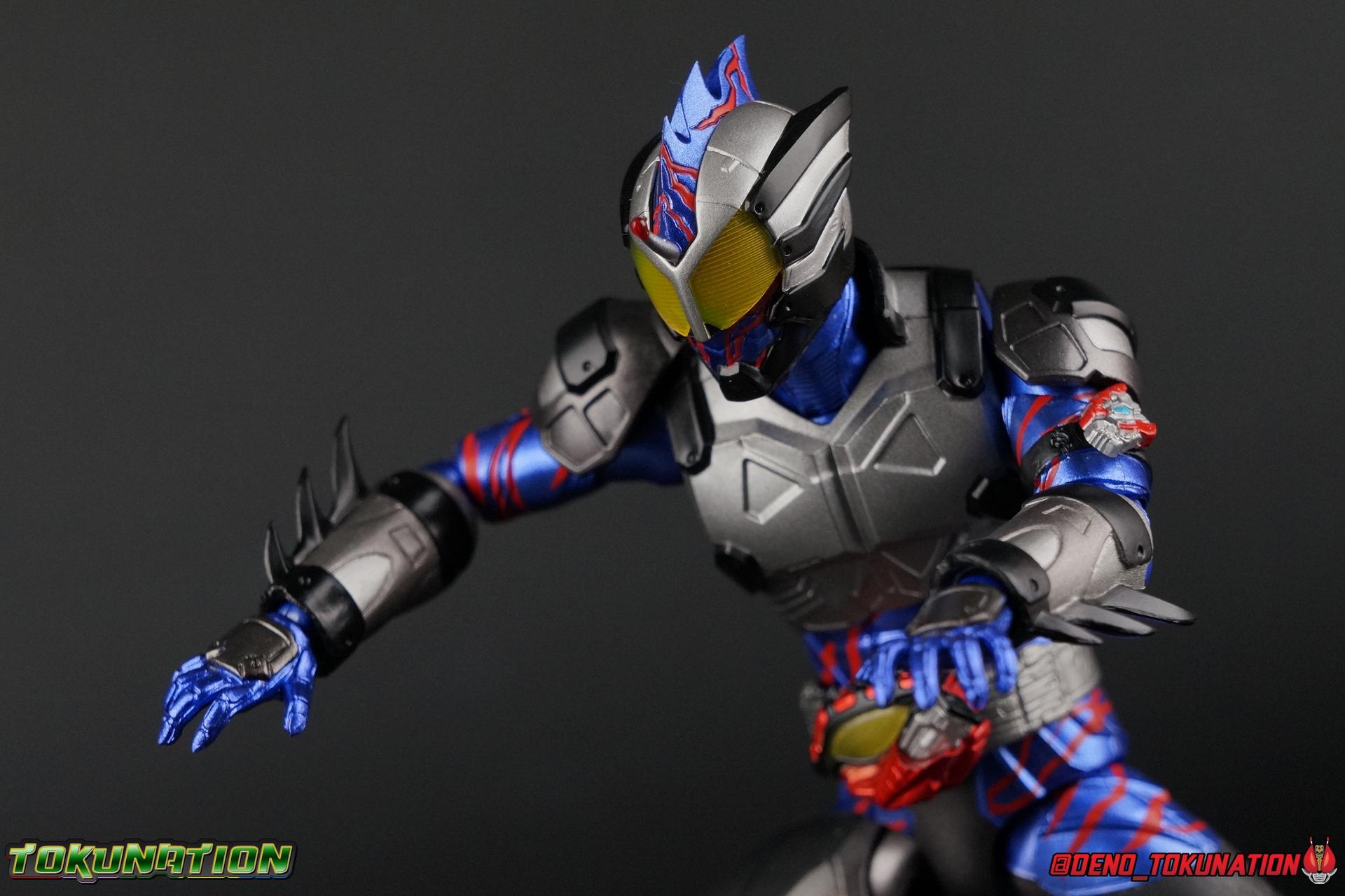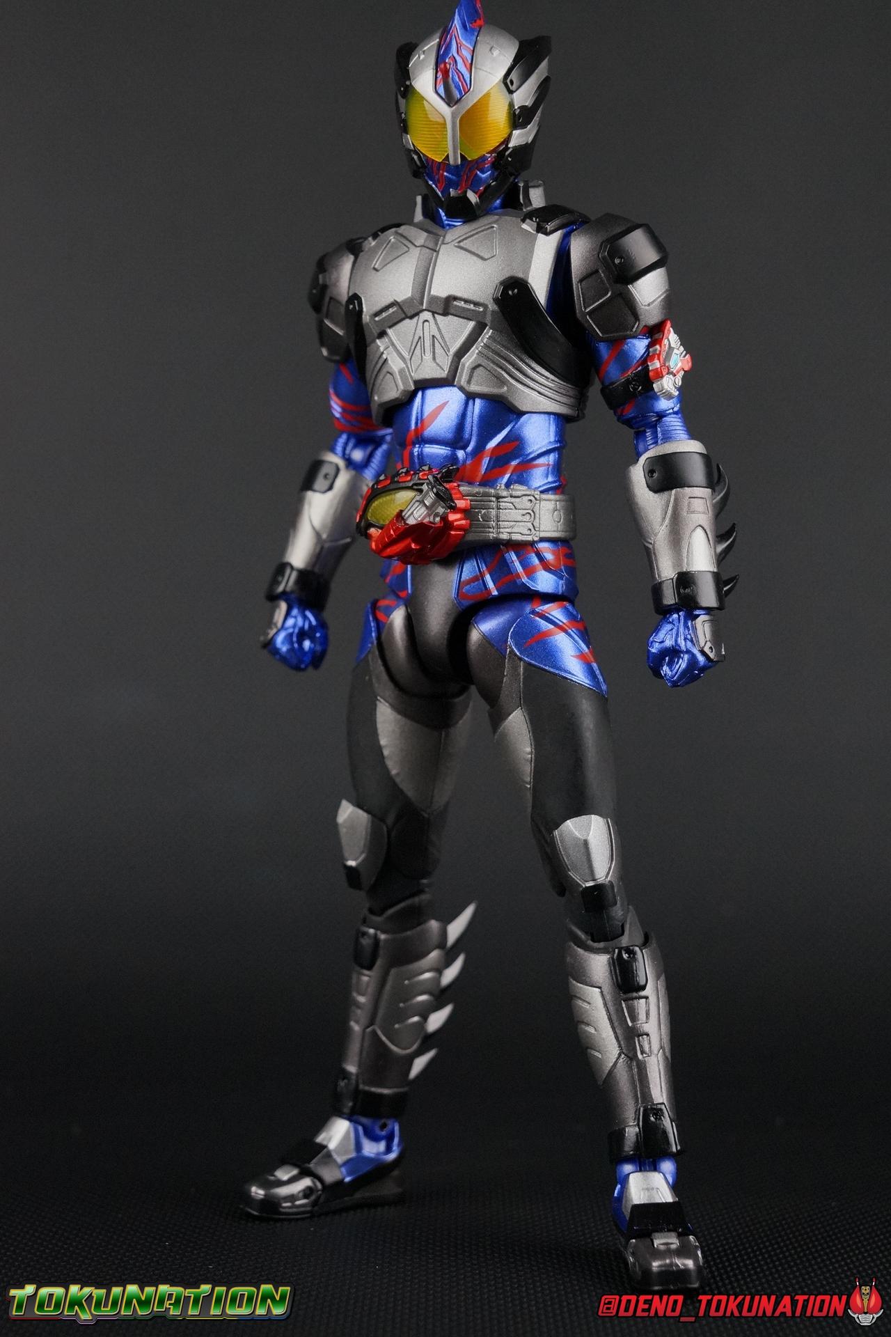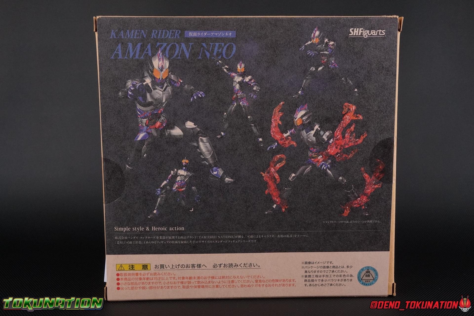 It took Chihiro most of his life to discover what he truly was, an Amazon. But not just any, he was the son of Jin Takayam, Amazon Alpha. He was also the Point of Origin for an entirely new generation of Amazons, the source of their Lysogenic Cells. A threat to all of humanity and other Amazons, Chihiro wanted to do the right thing, he also wanted to live as close to a normal life as possible with Iyu. But fate wouldn't allow that. Ultimately, Chihiro came to blows with his long lost father Jin as well as Amazon Omega Haruka Mizusawa. While it would seem the fates wouldn't allow Chihiro to live his days in peace, or even as the hero he thought he wanted to be, he at least went out a fighter standing his ground against the odds. Today we take a look at the first figuart based on this chaotic & torn character, S.H. Figuarts Kamen Rider Amazon Neo (Amazon JP Edition)! Packaging As with the previously released Amazon Japan Exclusive versions of Amazon Alpha, Amazon Omega, and even the original Showa Amazon, Neo comes in a brown corrugated style cardboard box that mimics an Amazon shipper. This box is also a bit larger than the standard retail release of Neo thanks to the included recolored flame effects. The nature of this material makes the stock photos quite hard to see, but I still like the gimmick of the packaging itself. Main Figures I want to preface this by saying I was not initially sold on this figuart. I just didn't wow me in official photos the same way the first Alpha & Omega figures did. Neo's design in show is great, but the colors were always washed out by the filter. But I'm happy to report that in figure form, Neo is exquisite. The metallic blue paint on the body seriously pops and the red accent lines are just the perfect shade of blood red. The matte gray and metallic silver parts are great compliments to one another as well. The paint work is really just fantastic on this figure. Now how functionality? Well, again, based on the official images I didn't expect much out of Neo. Both Alpha & Omega had things in their design that really bugged me. Things that neutered a bit of their articulation. And despite his bulky armored nature, Neo is a really free moving and well balanced figure. The ankles are unobstructed so you can get nice solid balance from them. Their forward motion is limited only by the bottom of the shin armor, but not terribly so. The knees are really perfect. Unlike with Omega where the leg fins limited the legs to 90 degree angles, Neo is free to move. Now I've never been a fan of the "old style" of drop down hips. I wasn't particularly excited for them with this figure because of how they break up the blue on the suit. But honestly they work really well here and don't detract from the figure nearly as much as I'd assumed they would. At the waist we have an exquisite sculpt and paint hob for the new Neo Amazons Driver. The compound eye on it is just gorgeous, it's my favorite part. I am disappointed that the Amazons Injector isn't removable or functional but that's a minor gripe. Now Neo's core body is way better than I'd anticipated. The upper body is engineered in such a way that it allows you to arch the back up and lean him forward for really savage and animal like poses, though it does expose a gap on his back side when done. The arms are free of most obstruction thanks to some great shoulder pad design, swivel biceps, and rotating forearm guards. My only real gripe with the arms is that the fist pegs are a little tight, and the left arm which features the Neo Amazons Register has difficulty keep a flame effect on because of said Register. My favorite part of the figure by far is the head. I always thought Neo's design was super interesting. As with all Amazons he's an organic creature, but his rider form encases him in technological armor. And if you seen the series it certainly plays into the inner demon part of his character. Suffice it to say the head communicates this better than any part of the figure as we can see his blood red compound eyes peeking out from behind the yellow visor, as well his jaw line. He looks like a caged beast, appropriately. I honestly can't get over how much better this figure is than I'd been expecting. It's just great all around. Accessories Neo comes with most everything in his repertoire: 2 - sets of extra hands. A bit on the lite side unfortunately. The included pairs give you two types of open hands, one set that looks a little more savage given Chihiro's nature. I am surprised not to see any "holding" hands for a future bike release or anything else. Most likely when Neo's Jungraider inevitably is released it will include the necessary hands. 1 - Amazon Injector. These seringe like items are used by Chihiro, and later Haruka, to activate their Neo Amazons Drivers. The one in the Driver is not removeable, and this accessory doesn't really serve much purpose to be perfectly honest. There isn't even a hand included that can hold it. 1 - Right Arm with Amazon Neo Blade. Rather than include the blade as a separate accessory that attaches to the arm itself, forgoing the difficulty of putting the grip in his hand. This forearm is actually pretty easy to replace and I appreciate this option rather than just a separate accessory. 1 - Set of Red Flame Effects. This set is a recolor of the popular Tamashii Flame Effects tailor made for Amazon Neo. Amazon JP versions of Alpha & Omega also included sets of flames. Alpha's were also red but with a white tint to them whereas Neo's have more of a pink tinge. Amazon Sigam as a Tamashii Web Exclusive also included flames colored purple. Not too shabby. These Amazon JP editions always please me because of the flames effects.I would have liked more hands, but the biggest miss here is that there is no Neo Hook included. It's a minor weapon compared to the blade, but I'd like to think it will be included with any extra hands, whenever Neo's Jungraider comes along. The same happened with