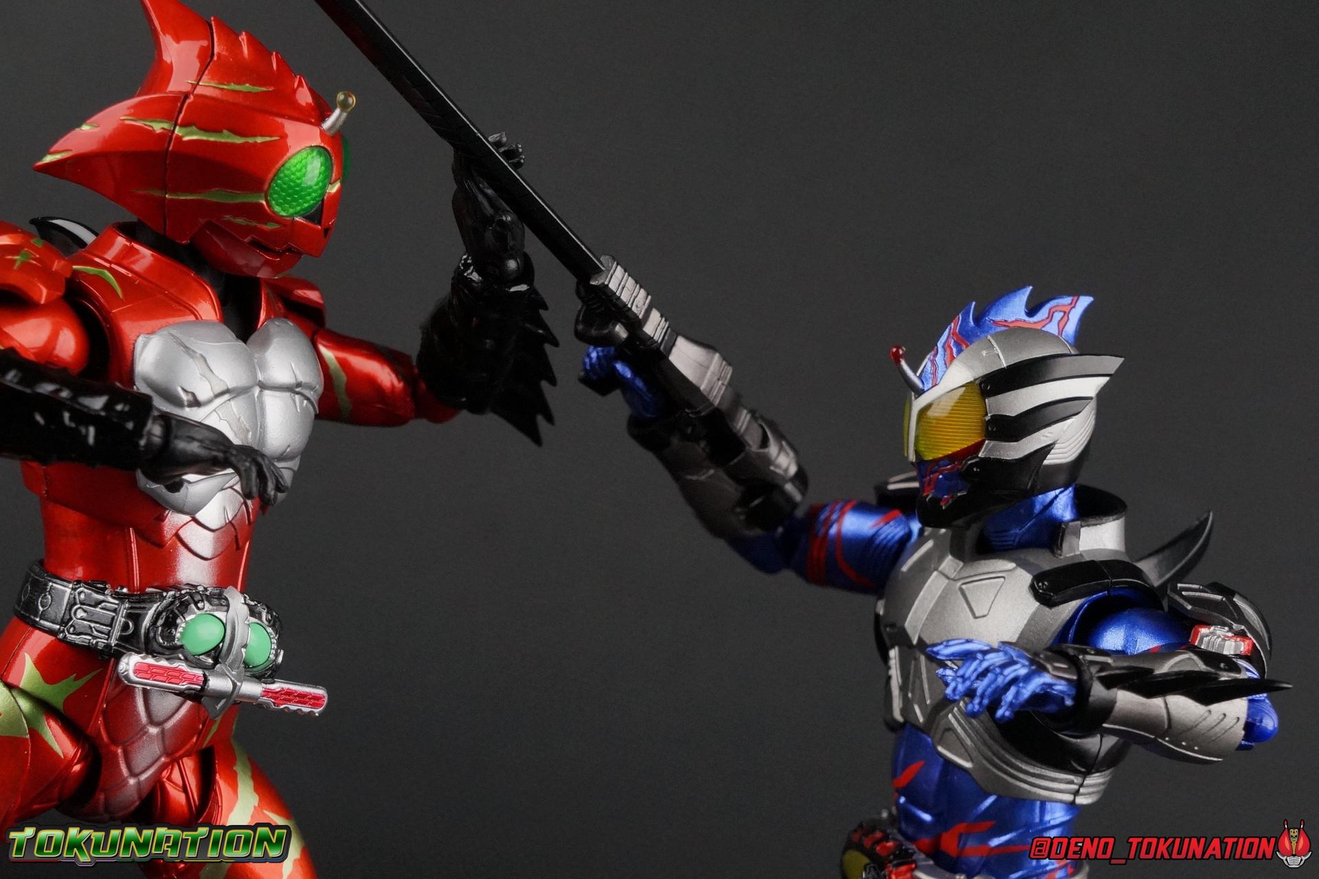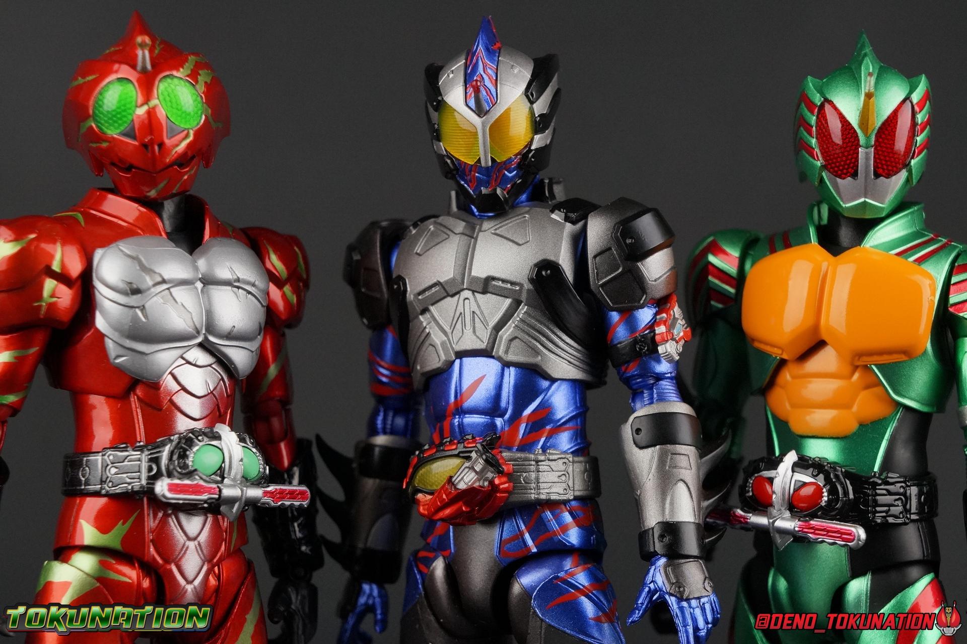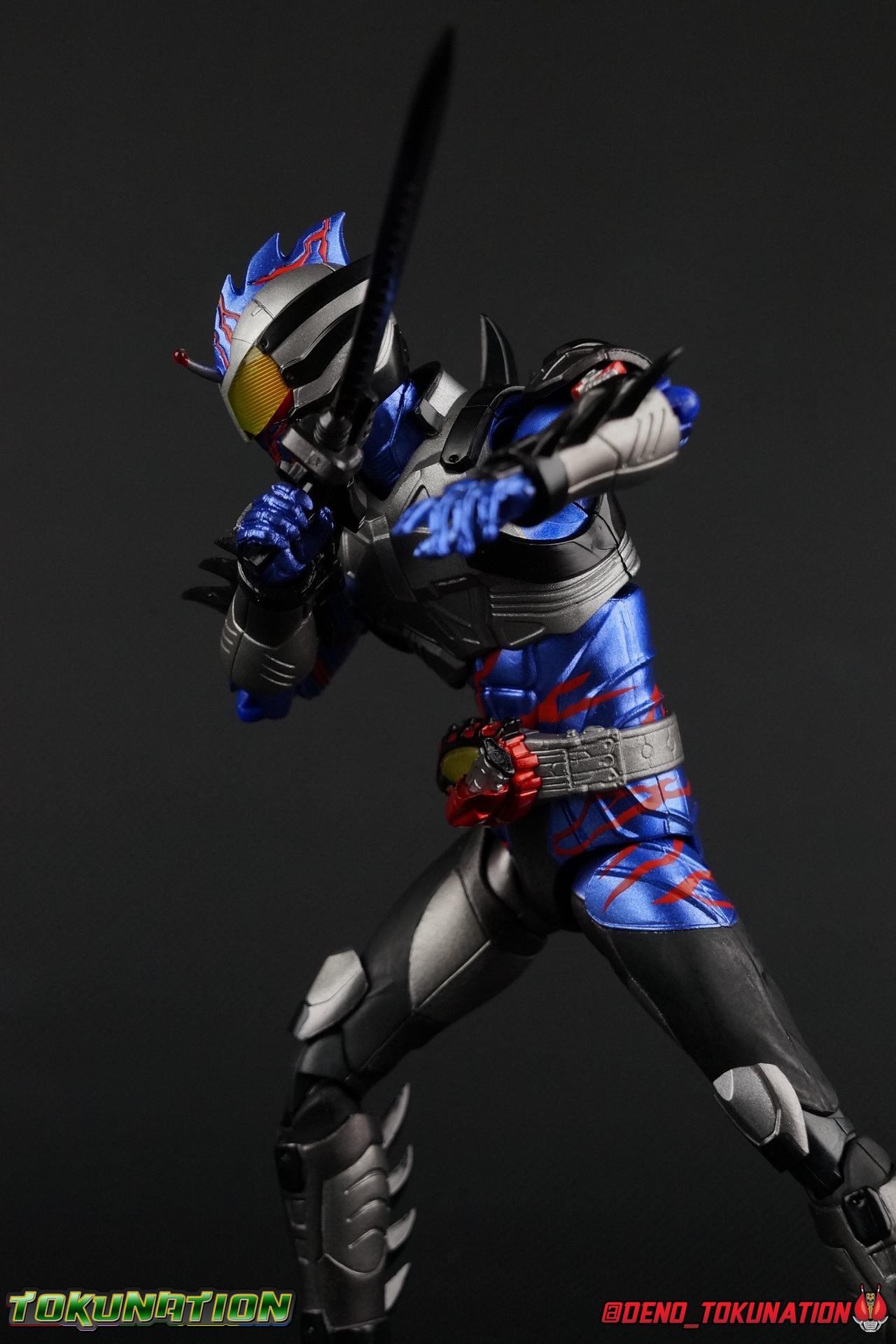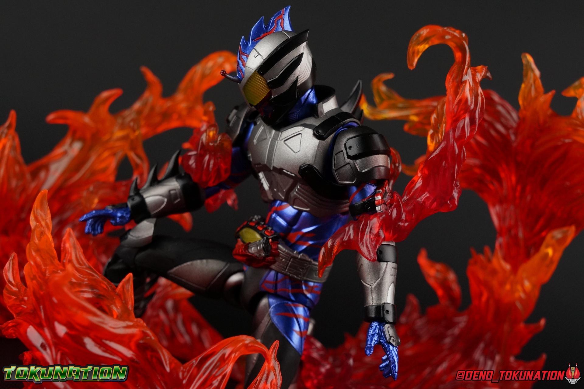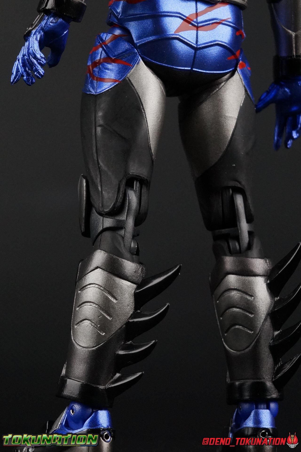It took Chihiro most of his life to discover what he truly was, an Amazon. But not just any, he was the son of Jin Takayam, Amazon Alpha. He was also the Point of Origin for an entirely new generation of Amazons, the source of their Lysogenic Cells. A threat to all of humanity and other Amazons, Chihiro wanted to do the right thing, he also wanted to live as close to a normal life as possible with Iyu. But fate wouldn't allow that. Ultimately, Chihiro came to blows with his long lost father Jin as well as Amazon Omega Haruka Mizusawa. While it would seem the fates wouldn't allow Chihiro to live his days in peace, or even as the hero he thought he wanted to be, he at least went out a fighter standing his ground against the odds. Today we take a look at the first figuart based on this chaotic & torn character, S.H. Figuarts Kamen Rider Amazon Neo (Amazon JP Edition)! Packaging As with the previously released Amazon Japan Exclusive versions of Amazon Alpha, Amazon Omega, and even the original Showa Amazon, Neo comes in a brown corrugated style cardboard box that mimics an Amazon shipper. This box is also a bit larger than the standard retail release of Neo thanks to the included recolored flame effects. The nature of this material makes the stock photos quite hard to see, but I still like the gimmick of the packaging itself. Main Figures I want to preface this by saying I was not initially sold on this figuart. I just didn't wow me in official photos the same way the first Alpha & Omega figures did. Neo's design in show is great, but the colors were always washed out by the filter. But I'm happy to report that in figure form, Neo is exquisite. The metallic blue paint on the body seriously pops and the red accent lines are just the perfect shade of blood red. The matte gray and metallic silver parts are great compliments to one another as well. The paint work is really just fantastic on this figure. Now how functionality? Well, again, based on the official images I didn't expect much out of Neo. Both Alpha & Omega had things in their design that really bugged me. Things that neutered a bit of their articulation. And despite his bulky armored nature, Neo is a really free moving and well balanced figure. The ankles are unobstructed so you can get nice solid balance from them. Their forward motion is limited only by the bottom of the shin armor, but not terribly so. The knees are really perfect. Unlike with Omega where the leg fins limited the legs to 90 degree angles, Neo is free to move. Now I've never been a fan of the "old style" of drop down hips. I wasn't particularly excited for them with this figure because of how they break up the blue on the suit. But honestly they work really well here and don't detract from the figure nearly as much as I'd assumed they would. At the waist we have an exquisite sculpt and paint hob for the new Neo Amazons Driver. The compound eye on it is just gorgeous, it's my favorite part. I am disappointed that the Amazons Injector isn't removable or functional but that's a minor gripe. Now Neo's core body is way better than I'd anticipated. The upper body is engineered in such a way that it allows you to arch the back up and lean him forward for really savage and animal like poses, though it does expose a gap on his back side when done. The arms are free of most obstruction thanks to some great shoulder pad design, swivel biceps, and rotating forearm guards. My only real gripe with the arms is that the fist pegs are a little tight, and the left arm which features the Neo Amazons Register has difficulty keep a flame effect on because of said Register. My favorite part of the figure by far is the head. I always thought Neo's design was super interesting. As with all Amazons he's an organic creature, but his rider form encases him in technological armor. And if you seen the series it certainly plays into the inner demon part of his character. Suffice it to say the head communicates this better than any part of the figure as we can see his blood red compound eyes peeking out from behind the yellow visor, as well his jaw line. He looks like a caged beast, appropriately. I honestly can't get over how much better this figure is than I'd been expecting. It's just great all around. Accessories Neo comes with most everything in his repertoire: 2 - sets of extra hands. A bit on the lite side unfortunately. The included pairs give you two types of open hands, one set that looks a little more savage given Chihiro's nature. I am surprised not to see any "holding" hands for a future bike release or anything else. Most likely when Neo's Jungraider inevitably is released it will include the necessary hands. 1 - Amazon Injector. These seringe like items are used by Chihiro, and later Haruka, to activate their Neo Amazons Drivers. The one in the Driver is not removeable, and this accessory doesn't really serve much purpose to be perfectly honest. There isn't even a hand included that can hold it. 1 - Right Arm with Amazon Neo Blade. Rather than include the blade as a separate accessory that attaches to the arm itself, forgoing the difficulty of putting the grip in his hand. This forearm is actually pretty easy to replace and I appreciate this option rather than just a separate accessory. 1 - Set of Red Flame Effects. This set is a recolor of the popular Tamashii Flame Effects tailor made for Amazon Neo. Amazon JP versions of Alpha & Omega also included sets of flames. Alpha's were also red but with a white tint to them whereas Neo's have more of a pink tinge. Amazon Sigam as a Tamashii Web Exclusive also included flames colored purple. Not too shabby. These Amazon JP editions always please me because of the flames effects.I would have liked more hands, but the biggest miss here is that there is no Neo Hook included. It's a minor weapon compared to the blade, but I'd like to think it will be included with any extra hands, whenever Neo's Jungraider comes along. The same happened with