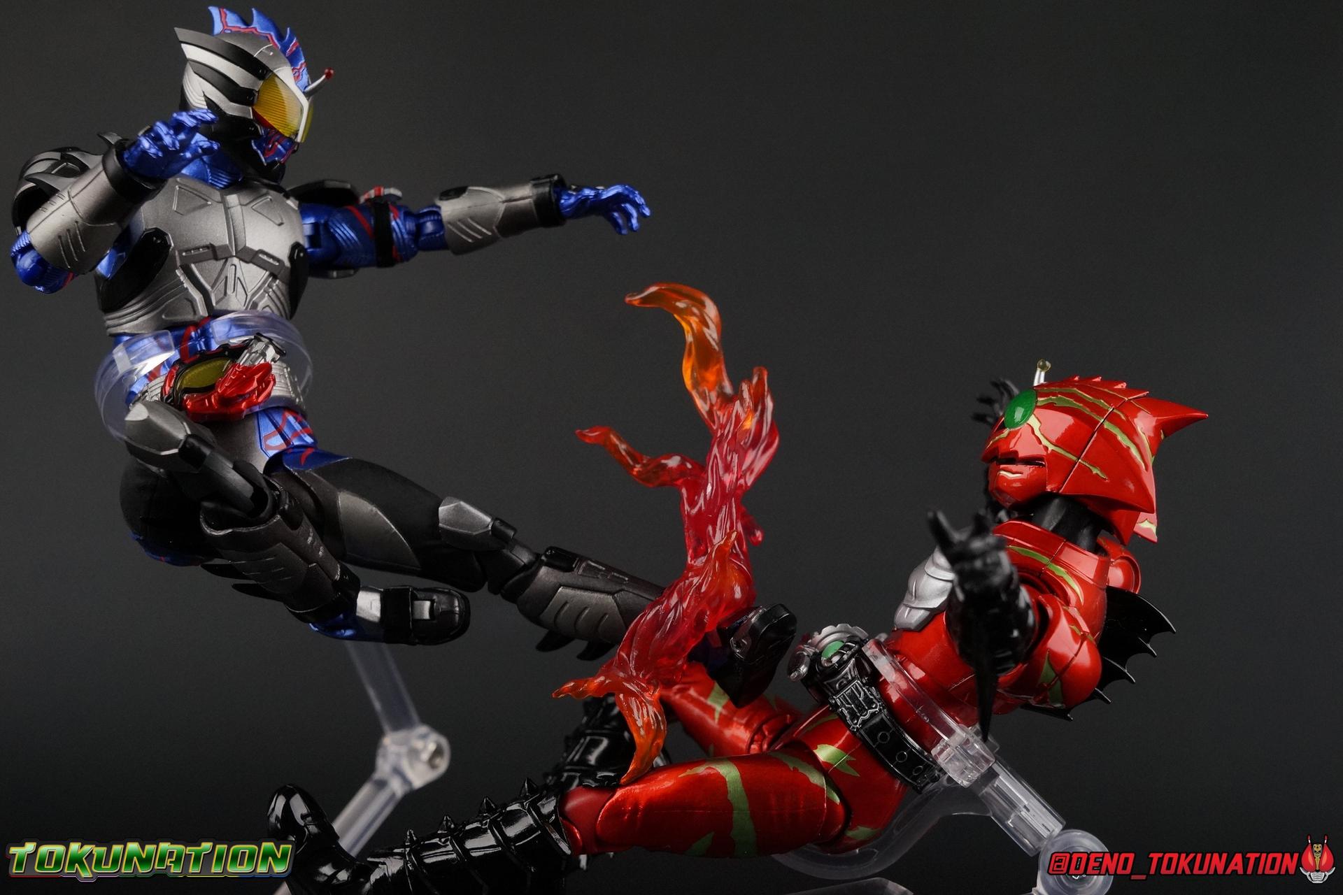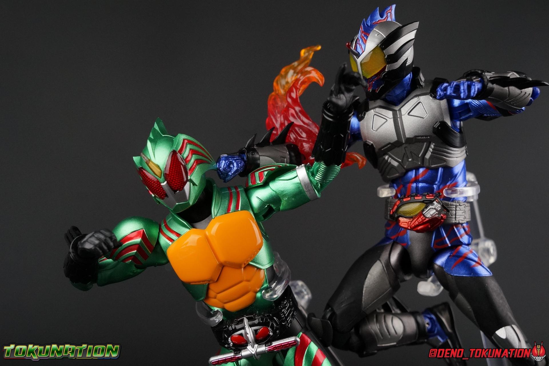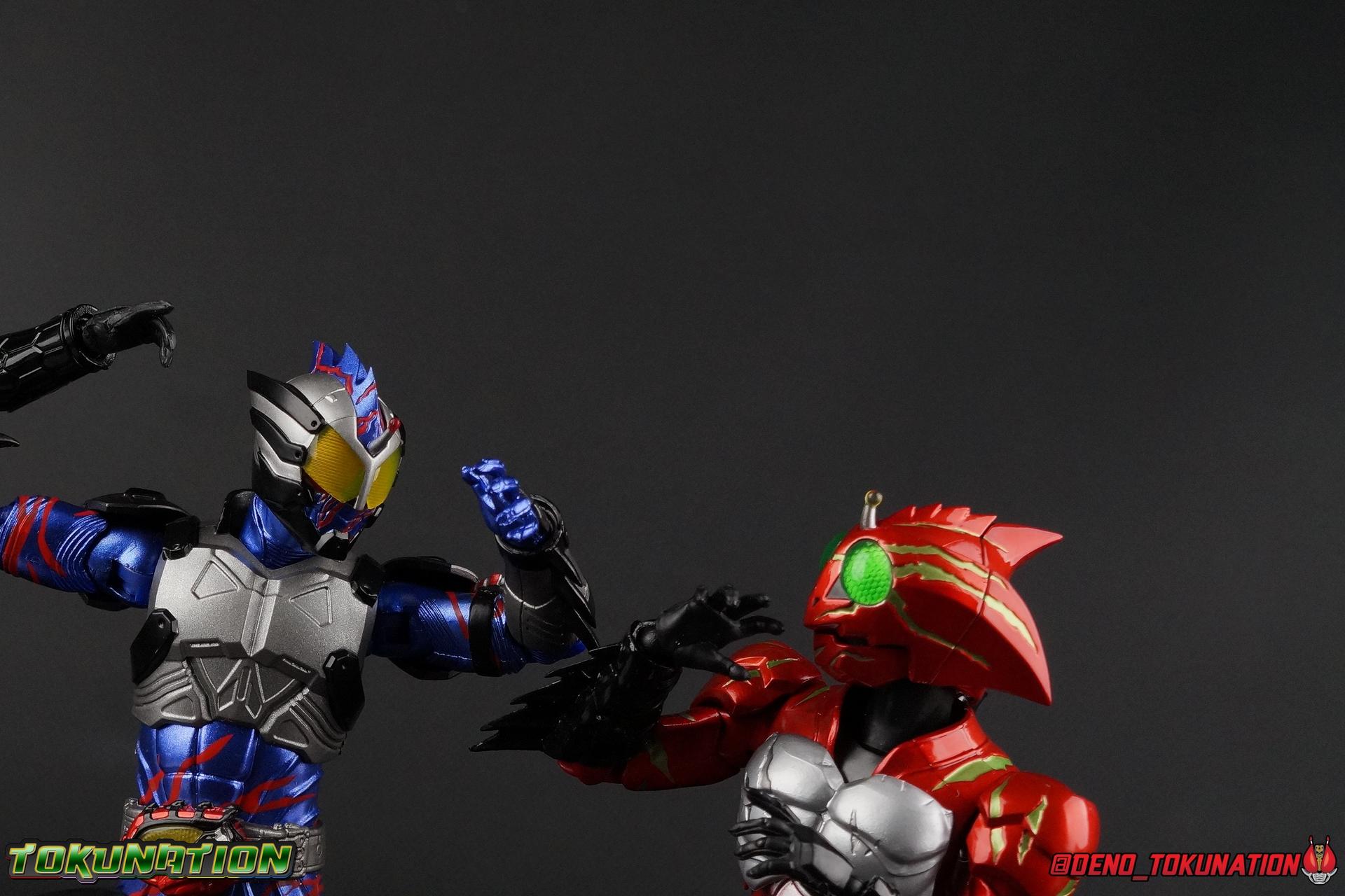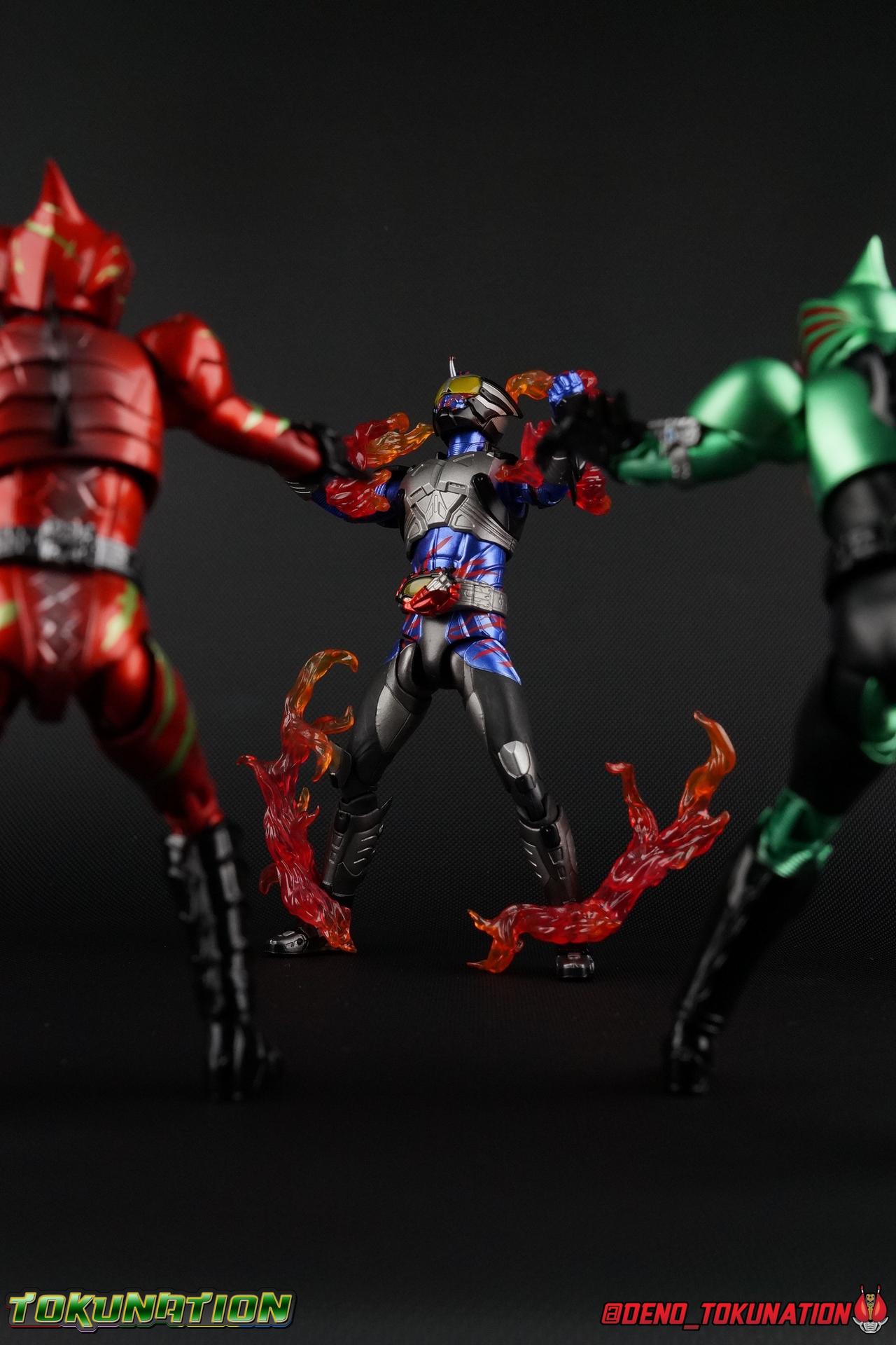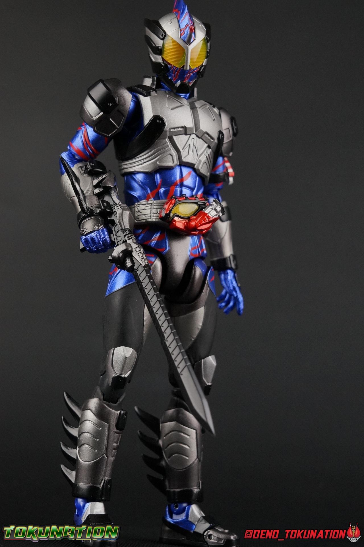 It took Chihiro most of his life to discover what he truly was, an Amazon. But not just any, he was the son of Jin Takayam, Amazon Alpha. He was also the Point of Origin for an entirely new generation of Amazons, the source of their Lysogenic Cells. A threat to all of humanity and other Amazons, Chihiro wanted to do the right thing, he also wanted to live as close to a normal life as possible with Iyu. But fate wouldn't allow that. Ultimately, Chihiro came to blows with his long lost father Jin as well as Amazon Omega Haruka Mizusawa. While it would seem the fates wouldn't allow Chihiro to live his days in peace, or even as the hero he thought he wanted to be, he at least went out a fighter standing his ground against the odds. Today we take a look at the first figuart based on this chaotic & torn character, S.H. Figuarts Kamen Rider Amazon Neo (Amazon JP Edition)! Packaging As with the previously released Amazon Japan Exclusive versions of Amazon Alpha, Amazon Omega, and even the original Showa Amazon, Neo comes in a brown corrugated style cardboard box that mimics an Amazon shipper. This box is also a bit larger than the standard retail release of Neo thanks to the included recolored flame effects. The nature of this material makes the stock photos quite hard to see, but I still like the gimmick of the packaging itself. Main Figures I want to preface this by saying I was not initially sold on this figuart. I just didn't wow me in official photos the same way the first Alpha & Omega figures did. Neo's design in show is great, but the colors were always washed out by the filter. But I'm happy to report that in figure form, Neo is exquisite. The metallic blue paint on the body seriously pops and the red accent lines are just the perfect shade of blood red. The matte gray and metallic silver parts are great compliments to one another as well. The paint work is really just fantastic on this figure. Now how functionality? Well, again, based on the official images I didn't expect much out of Neo. Both Alpha & Omega had things in their design that really bugged me. Things that neutered a bit of their articulation. And despite his bulky armored nature, Neo is a really free moving and well balanced figure. The ankles are unobstructed so you can get nice solid balance from them. Their forward motion is limited only by the bottom of the shin armor, but not terribly so. The knees are really perfect. Unlike with Omega where the leg fins limited the legs to 90 degree angles, Neo is free to move. Now I've never been a fan of the "old style" of drop down hips. I wasn't particularly excited for them with this figure because of how they break up the blue on the suit. But honestly they work really well here and don't detract from the figure nearly as much as I'd assumed they would. At the waist we have an exquisite sculpt and paint hob for the new Neo Amazons Driver. The compound eye on it is just gorgeous, it's my favorite part. I am disappointed that the Amazons Injector isn't removable or functional but that's a minor gripe. Now Neo's core body is way better than I'd anticipated. The upper body is engineered in such a way that it allows you to arch the back up and lean him forward for really savage and animal like poses, though it does expose a gap on his back side when done. The arms are free of most obstruction thanks to some great shoulder pad design, swivel biceps, and rotating forearm guards. My only real gripe with the arms is that the fist pegs are a little tight, and the left arm which features the Neo Amazons Register has difficulty keep a flame effect on because of said Register. My favorite part of the figure by far is the head. I always thought Neo's design was super interesting. As with all Amazons he's an organic creature, but his rider form encases him in technological armor. And if you seen the series it certainly plays into the inner demon part of his character. Suffice it to say the head communicates this better than any part of the figure as we can see his blood red compound eyes peeking out from behind the yellow visor, as well his jaw line. He looks like a caged beast, appropriately. I honestly can't get over how much better this figure is than I'd been expecting. It's just great all around. Accessories Neo comes with most everything in his repertoire: 2 - sets of extra hands. A bit on the lite side unfortunately. The included pairs give you two types of open hands, one set that looks a little more savage given Chihiro's nature. I am surprised not to see any "holding" hands for a future bike release or anything else. Most likely when Neo's Jungraider inevitably is released it will include the necessary hands. 1 - Amazon Injector. These seringe like items are used by Chihiro, and later Haruka, to activate their Neo Amazons Drivers. The one in the Driver is not removeable, and this accessory doesn't really serve much purpose to be perfectly honest. There isn't even a hand included that can hold it. 1 - Right Arm with Amazon Neo Blade. Rather than include the blade as a separate accessory that attaches to the arm itself, forgoing the difficulty of putting the grip in his hand. This forearm is actually pretty easy to replace and I appreciate this option rather than just a separate accessory. 1 - Set of Red Flame Effects. This set is a recolor of the popular Tamashii Flame Effects tailor made for Amazon Neo. Amazon JP versions of Alpha & Omega also included sets of flames. Alpha's were also red but with a white tint to them whereas Neo's have more of a pink tinge. Amazon Sigam as a Tamashii Web Exclusive also included flames colored purple. Not too shabby. These Amazon JP editions always please me because of the flames effects.I would have liked more hands, but the biggest miss here is that there is no Neo Hook included. It's a minor weapon compared to the blade, but I'd like to think it will be included with any extra hands, whenever Neo's Jungraider comes along. The same happened with