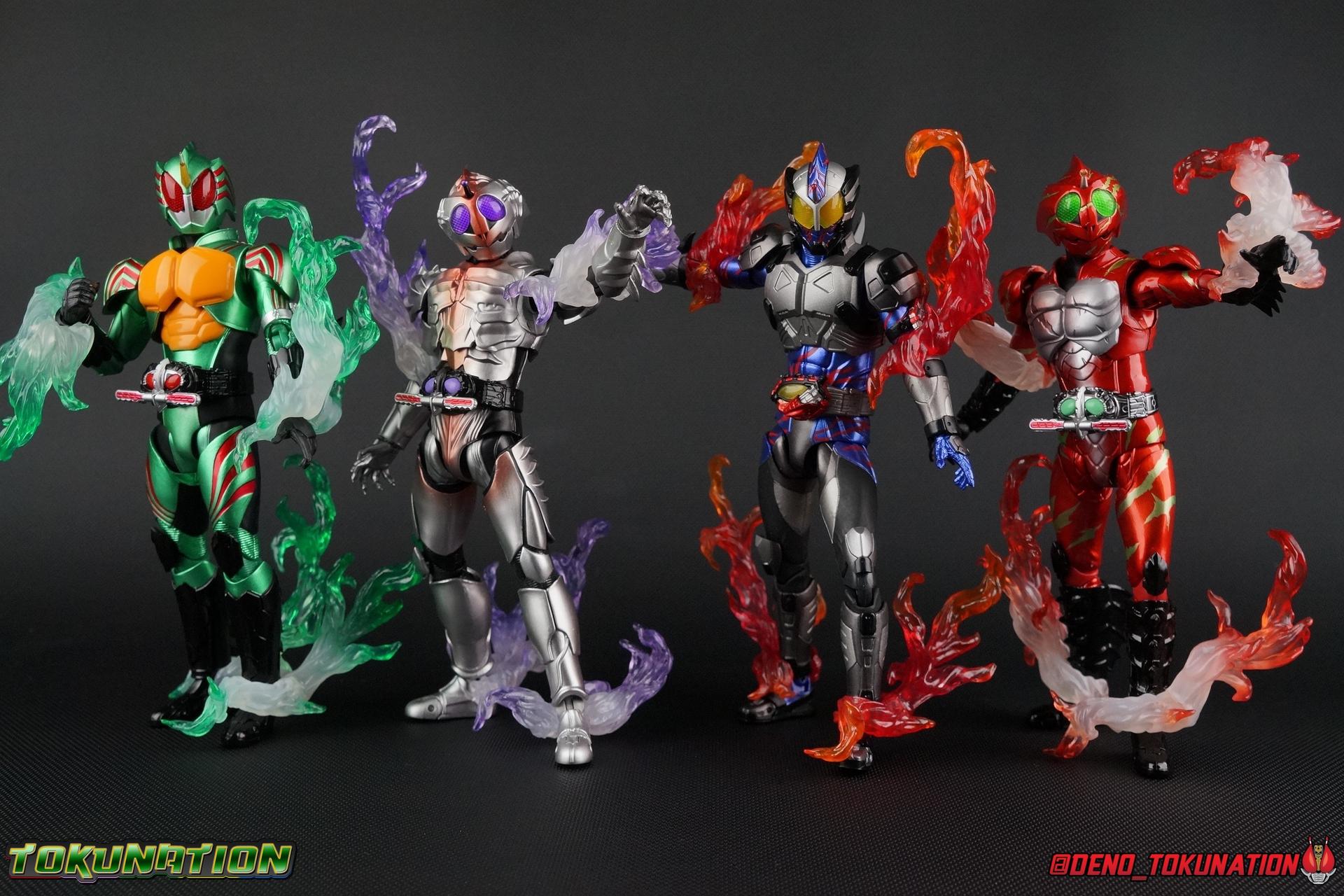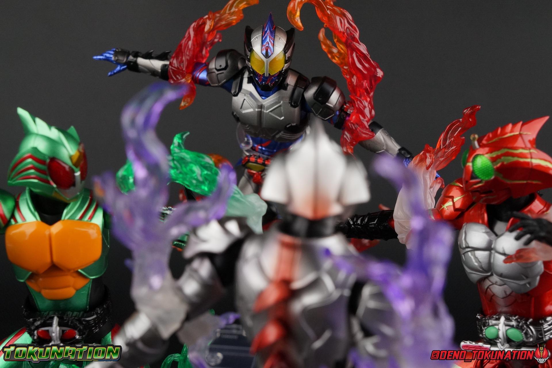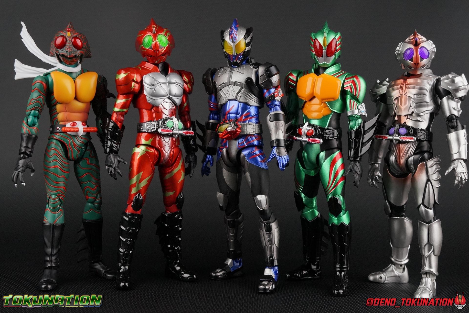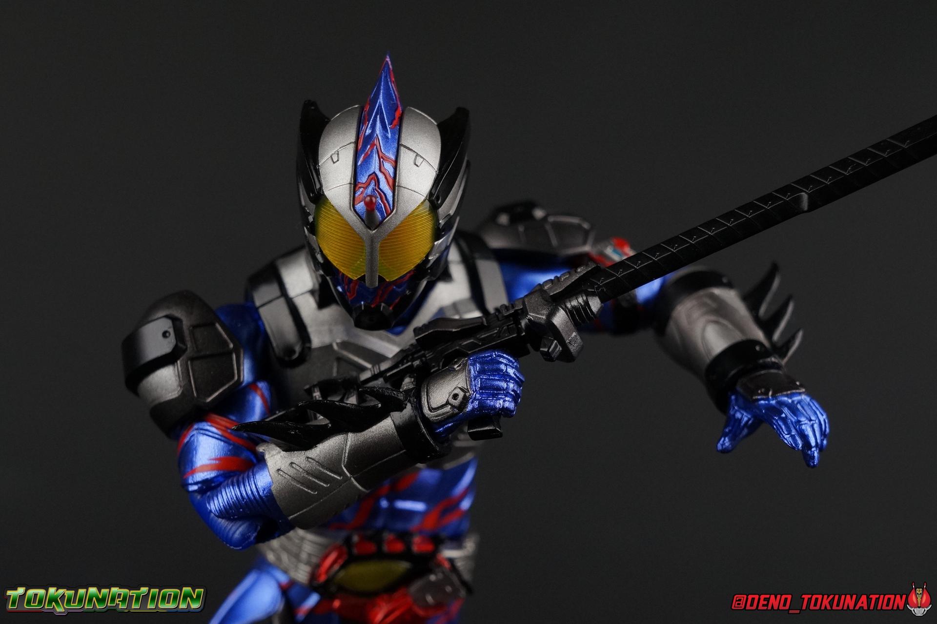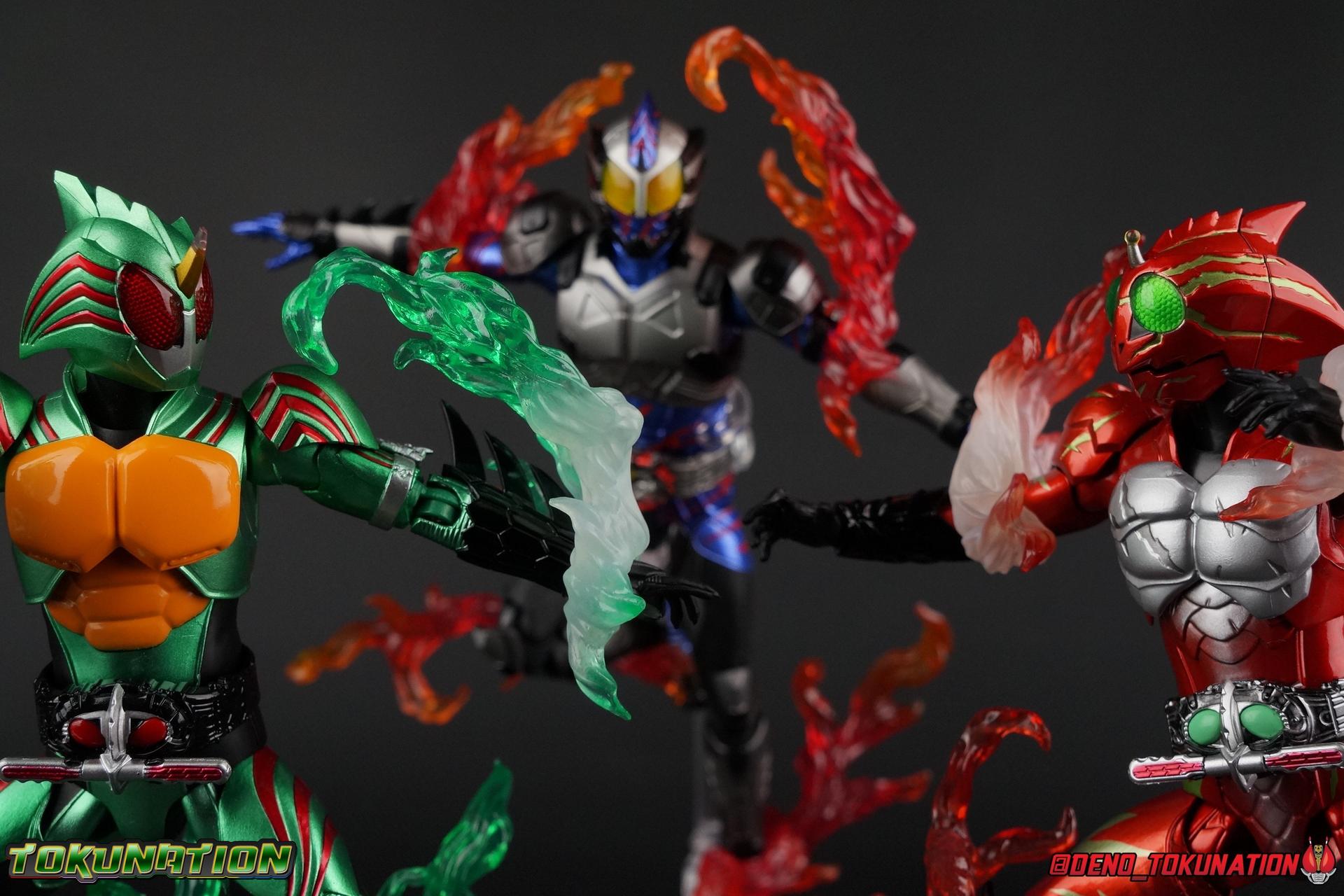 It took Chihiro most of his life to discover what he truly was, an Amazon. But not just any, he was the son of Jin Takayam, Amazon Alpha. He was also the Point of Origin for an entirely new generation of Amazons, the source of their Lysogenic Cells. A threat to all of humanity and other Amazons, Chihiro wanted to do the right thing, he also wanted to live as close to a normal life as possible with Iyu. But fate wouldn't allow that. Ultimately, Chihiro came to blows with his long lost father Jin as well as Amazon Omega Haruka Mizusawa. While it would seem the fates wouldn't allow Chihiro to live his days in peace, or even as the hero he thought he wanted to be, he at least went out a fighter standing his ground against the odds. Today we take a look at the first figuart based on this chaotic & torn character, S.H. Figuarts Kamen Rider Amazon Neo (Amazon JP Edition)! Packaging As with the previously released Amazon Japan Exclusive versions of Amazon Alpha, Amazon Omega, and even the original Showa Amazon, Neo comes in a brown corrugated style cardboard box that mimics an Amazon shipper. This box is also a bit larger than the standard retail release of Neo thanks to the included recolored flame effects. The nature of this material makes the stock photos quite hard to see, but I still like the gimmick of the packaging itself. Main Figures I want to preface this by saying I was not initially sold on this figuart. I just didn't wow me in official photos the same way the first Alpha & Omega figures did. Neo's design in show is great, but the colors were always washed out by the filter. But I'm happy to report that in figure form, Neo is exquisite. The metallic blue paint on the body seriously pops and the red accent lines are just the perfect shade of blood red. The matte gray and metallic silver parts are great compliments to one another as well. The paint work is really just fantastic on this figure. Now how functionality? Well, again, based on the official images I didn't expect much out of Neo. Both Alpha & Omega had things in their design that really bugged me. Things that neutered a bit of their articulation. And despite his bulky armored nature, Neo is a really free moving and well balanced figure. The ankles are unobstructed so you can get nice solid balance from them. Their forward motion is limited only by the bottom of the shin armor, but not terribly so. The knees are really perfect. Unlike with Omega where the leg fins limited the legs to 90 degree angles, Neo is free to move. Now I've never been a fan of the "old style" of drop down hips. I wasn't particularly excited for them with this figure because of how they break up the blue on the suit. But honestly they work really well here and don't detract from the figure nearly as much as I'd assumed they would. At the waist we have an exquisite sculpt and paint hob for the new Neo Amazons Driver. The compound eye on it is just gorgeous, it's my favorite part. I am disappointed that the Amazons Injector isn't removable or functional but that's a minor gripe. Now Neo's core body is way better than I'd anticipated. The upper body is engineered in such a way that it allows you to arch the back up and lean him forward for really savage and animal like poses, though it does expose a gap on his back side when done. The arms are free of most obstruction thanks to some great shoulder pad design, swivel biceps, and rotating forearm guards. My only real gripe with the arms is that the fist pegs are a little tight, and the left arm which features the Neo Amazons Register has difficulty keep a flame effect on because of said Register. My favorite part of the figure by far is the head. I always thought Neo's design was super interesting. As with all Amazons he's an organic creature, but his rider form encases him in technological armor. And if you seen the series it certainly plays into the inner demon part of his character. Suffice it to say the head communicates this better than any part of the figure as we can see his blood red compound eyes peeking out from behind the yellow visor, as well his jaw line. He looks like a caged beast, appropriately. I honestly can't get over how much better this figure is than I'd been expecting. It's just great all around. Accessories Neo comes with most everything in his repertoire: 2 - sets of extra hands. A bit on the lite side unfortunately. The included pairs give you two types of open hands, one set that looks a little more savage given Chihiro's nature. I am surprised not to see any "holding" hands for a future bike release or anything else. Most likely when Neo's Jungraider inevitably is released it will include the necessary hands. 1 - Amazon Injector. These seringe like items are used by Chihiro, and later Haruka, to activate their Neo Amazons Drivers. The one in the Driver is not removeable, and this accessory doesn't really serve much purpose to be perfectly honest. There isn't even a hand included that can hold it. 1 - Right Arm with Amazon Neo Blade. Rather than include the blade as a separate accessory that attaches to the arm itself, forgoing the difficulty of putting the grip in his hand. This forearm is actually pretty easy to replace and I appreciate this option rather than just a separate accessory. 1 - Set of Red Flame Effects. This set is a recolor of the popular Tamashii Flame Effects tailor made for Amazon Neo. Amazon JP versions of Alpha & Omega also included sets of flames. Alpha's were also red but with a white tint to them whereas Neo's have more of a pink tinge. Amazon Sigam as a Tamashii Web Exclusive also included flames colored purple. Not too shabby. These Amazon JP editions always please me because of the flames effects.I would have liked more hands, but the biggest miss here is that there is no Neo Hook included. It's a minor weapon compared to the blade, but I'd like to think it will be included with any extra hands, whenever Neo's Jungraider comes along. The same happened with