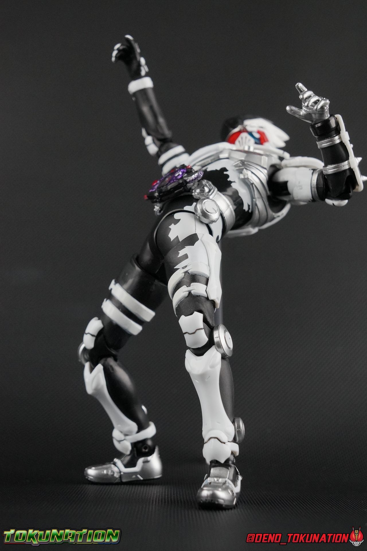 We've waited so very long for the one true hero to arrive. Finally, months after the end of Kamen Rider Ex-Aid, the first figuart of the one and only god himself Kuroto Dan has arrived! While Bandai has opted to go with (arguably) Kuroto's most popular and beloved form first, they did also just release his Level 2 Action Gamer form as a Tamashii Nations 2017 exclusive. Using the data of death, his own in fact, Kuroto Dan has become the Dangerous Zombie! This is our gallery of the excellent S.H. Figuarts Kamen Rider GenM Zombie Action Gamer Level X! Packaging GenM Level X comes in what is now standard packaging for Ex-Aid Web Exclusives. It's not nearly as right or loud, but it's a theme I still really dig. With no packaging window as all web exclusives are these days. As with the others the colors pop well and I like the character portrait on the front. That's about all there is to say on this one. Main Figure This figure was easily one of my most anticipated releases this year. The suit design for Level X is truly brilliant. It strikes the perfect balance of chaos and order as well as good an evil. Playing perfectly into Kuroto's nature and personality. This figure is an exquisite execution of the design. If you never immediately noticed this before, Zombie Gamer's design is very much based on a skeleton. It's easy to just see the black & white and not look at the finer details. But if you take a second glance, one of the most notable aspects of this is in the legs, where we begin. The shins themselves are actually bones. A majority of the rest of the design is more subtle, but I love how the shins look. I have a slight issue with how they protrude out just far enough at the bottom to mess with the forward motion of the ankles. I was able to get GenM into some very very precarious poses for this gallery. But it took an exorbitant amount of trial and error to do so. I will say I'm pretty disappointed in the quality of the paint work on the legs themselves though. The white bands around the hips and the black accenting them is very poorly applied on my copy, there almost appears to be a white haze over the black paint and several white flecks as well. GenM Level X marks the first instance of the Buggle Driver for Ex-Aid figuarts as well. It also marks a change in how Gashats are handled. The finer details of the Driver are a bit soft for my tastes, particuarly on the buttons on the front. But the paint work is really great, and the readout on the driver is very sharp.The Dangerous Zombie Gashat is very much like previous SHF Gashats, in that it is a dummy piece with just the handle and upper portion to plug into the Driver. However it is also substantially smaller than Gashats present in Gamer Drivers for reasons I don't understand. I tried recreating GenM Level 0X at the tail end of this gallery using Ex-Aids Drivers so you should be able to see the size difference. Of note, you can't just create Level 0X by doing this swap. Standard Level X's Rider Gauge is totally different. Speaking of the chest, the details on the Rider Gauage are actually really really nice. Bandai's label work has massively improved since the old Kiwami Arms debacle. Every Ex-Aid rider so far has had really crisp Rider Gauges and GenM Level X is no different. I particularly like the two bars just under the neck of the figure that simulate clavicle bones as well. These are actually hinged to move for some reason, but they never really get in the way of anything. On the flip side of the torso I am in LOVE with the details for GenM's spine. They just sell that skeletal nature of the design all that much more. GenM's arms are about as standard as you can get, Nothing too terribly special, the paint work is much nicer than the legs thankfully. The right shoulder pad bugs me just enough because it's easy to pop off the joint. But that's a minor gripe. Finally, that, head. That absolutely gorgeous sculpt. That broken visor and exposed eye. Bandai nailed that headsculpt perfectly. Being able to arch the head back or crane it over tot either side again helps sell the maniacal nature of this form. Overall GenM has very standard articulation as well, with just enough extra play in the joints to pull off some great menacing zombie poses very reminiscent of what we saw in the TV series. Accessories Kuroto comes with the perfect accessories to remind you of just how evil he was at an early point in the series: 5 - sets of additional hands. I love how the right hands have that skeletal paint work on the back of them. I honestly never noticed it til I had this figure in hand and I just LOVE little details like that. I think some of these sets could look a little more menacing and expressive but they do get the point across of who and what Dan was at this point in his (first) life. There's a few pairs of open hands in various poses as well as two pairs to hold the included weapons in either mode. 1 - Gashcaon Sparrow. The trademark weapon of Kamen Rider Lazer Level 3, and later his Lazer Turbo form. This was a trophy that Dan kept for himself after he killed Kiriya. The fact that this accessory is included with the GenM figuart instead of an actual Lazer one is just deliciously satisfying. The two halves can plug together in the middle by way of a small white tab. This hardly ever works on mine. It's a terrible part fit so the two halves constantly force each other apart, so that's frustrating. Alternatively the two can be held in the Sickle Modes instead. That's it for accessories but that's honestly perfect. The pipe dream would have been to include a Gamer Driver and Gashacon Breaker for GenM Level 0X. But the chest gauge would have had to be different as well. So that's understandable. I expect to see Level 0X released fully on it's own at some point as well. Final Thoughts I, like many collectors, heavily anticipated the release of this figure. Kuroto Dan is to many myself included, easily the most memorable and interesting ch