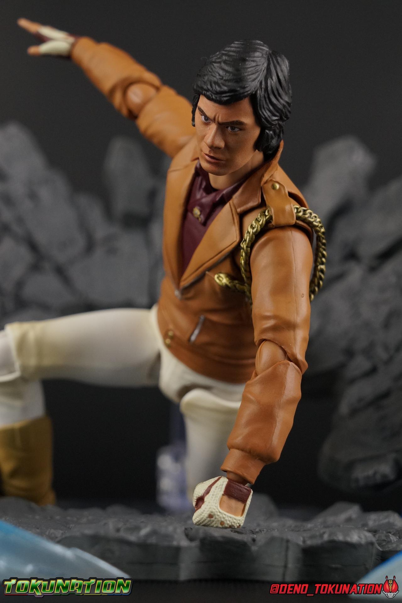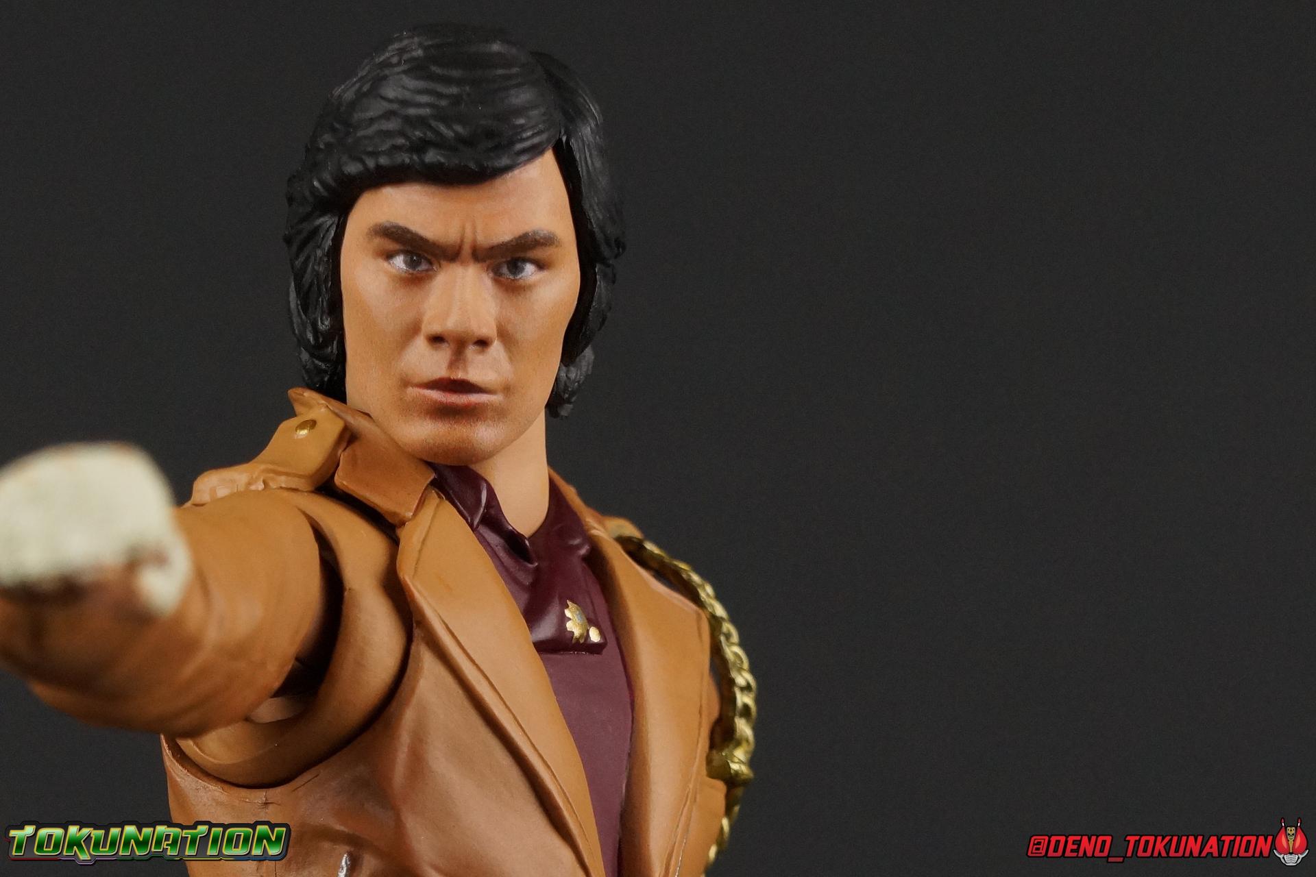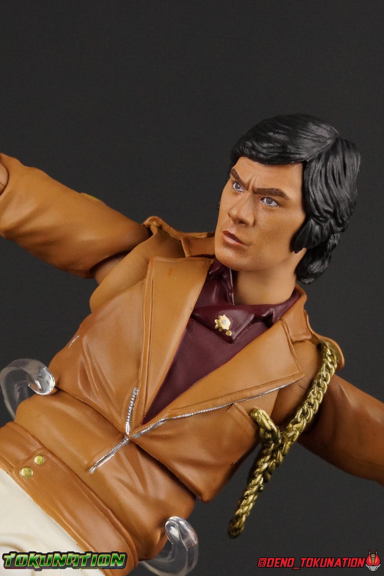 Retsu Ichijoji, when he first arrived on Earth, was a headstrong young member of the Galactic Union Police. Dispatched there to defend the planet against the evil criminal Makuu organization, Gavan gave his all to defend his mother's home world and restore peace. Flash forward over 30 years later, and this iconic hero still has plenty to teach the next generation of heroes too. Whether it was imparting lessons about justice to the Gokaigers, or passing on his legacy to Geki/Gavan Type G, Retsu has had a long life and will probably continue to until actor Kenji Ohba just can't do it anymore. Luckily there's no sign of that happening any time soon! Packaging Following the lead of the recent Gavan renewal releases, Retsu comes in a very similar type of box. It's got some glorious stock photos to it. Particularly the striking ones on the front and spine of the box. It's a bit more slim than the two Gavan's, more in line with most regular figuarts these days. Main Figure You'll recall that earlier this month we took a look at S.H. Figuarts Dan Moroboshi. The first in a new sub-line of civilian identity figuarts. My thoughts on that figure were quite mixed. While I loved the idea, the execution was a bit lacking in my opinion. This time however I'm happy to report that, outside of a few minor issues, I think Bandai has nailed it. As with Dan, this is a brand new mold. Thankfully, it feels like this time around, Bandai have learned a bit from their mistakes. I'm assuming Hongo will be even better in-hand. In any case, I wanna start by talking about the legs. I was really disappointed with the way Dan's leg's felt very limited. They were stiff and limited by the new split joints used in them (and the elbows). While Retsu still features these new style joints, I'm please to report they function much better this time around. Allowing the leg to bend much more naturally. Retu's hips are likewise improved, having much better clearance with the waist, you can basically get them in a near 90 degree angle thanks to this. The ankles leave a bit to be desired as they're somewhat limited, so sometimes you will have to play with the balance. The thing I appreciate most about the legs though? Weathering. Retsu's bright white pants feature some fantastic weathering thanks to subtle paint applications on the knees and hips, given them a worn and dirt covered feel. I love that level of realism in a toy. For me this really goes back to when Bandai began introducing fabric and rubber folds from shows into figure designs with the Kamen Rider Black Renewal. Now the upper body is really quite nice as well. While Retsu may not have as intricate a costume as Dan does, it's done really nicely still. The upper body is split into sections above the belt line. There's a smaller portion of the abdomen just above the belt that can rotate freely of the larger upper torso area. Since the two can move independently this can often mean that the design of the jacket (particularly) the zipper, is broken up, but it provides quite a bit of room for posing. The arms or at least the shoulders are a part of this as well. While the shoulders aren't perfect, they are of the similar "butterfly" type joints that Dan had. In Retsu's case the upward and outward movement however ,are greatly improved. The cuts into the torso for these joints don't feel nearly as obvious either. Retsu has the same split style elbow joints but the clearance around the elbows themselves is much better, and luckily doesn't make the jacket arms appear unnatural. I'm still disappointed that this figure, like Dan, doesn't have bicep swivels. I get it, it doesn't make sense for that joint to be there in certain designs, but it needs to be there to help the figure function correctly. For instance, because there's no swivel and because of the way the shoulders are designed, Retsu is incapable of crossing his arms. Thus being unable to replicate a least part of his transformation to Gavan. It's probably very minor to most collector's but it does bug me somewhat. And at last we have Retsu Ichijoji's head. Which features a pretty fantastic likeness of legendary actor Kenj Ohba from his younger days. At the time Gavan was being filmed Ohba was only 28, so this figure does a great job of recapturing his youthfulness. I wish the hair was a bit more curly and out there, but it still looks great. Bandai's face printing technology has a come a long way recently and I think this may be the best example of it yet. Accessories Unlike Dan, Retsu doesn't come with much: 1 - Electroplate Effect Sheet. This is probably the best new trend in figuarts of late. Takeshi Hongo comes with a similar sheet to replicate his Henshin pose. So of course Retsu includes his as well, and it works great. I'm reallly please with how good it looks, and that it's not opaque so you can clearly see Retsu through the sheet and he stays nice and in focus through it when taking pictures. 1 - Effect sheet stand. Just a basic stand with a small slit to hold the sheet. 2 - Sets of hands. Not much of a selection sadly. A pair of flat palms and a pair of open ones. I really like what Retsu does come with, but I would have liked more. Just a simple pair of hands to hold Gavan's Laser Blade or to hold the Saibarian's handlebars would have made it perfect. I do find myself wishing that an alternate head or two had been included as well. Many toku fans were first exposed to Retsu/Gavan when Kenji Ohba made his first return to the role since a 1984 cameo in Shaider. And his aged look in the film suited him very well. Just recently in 2017 he returned with a slightly different look, sporting platinum blonde hair in Space Squad. While his outfit was of course a bit different in each of those outings compared to the original, I think it would have been great to release this figure with those headsculpts as well. Oh well, an opportunity for Bandai to re-release this figure perhaps? (I hope they're reading this!) Final T