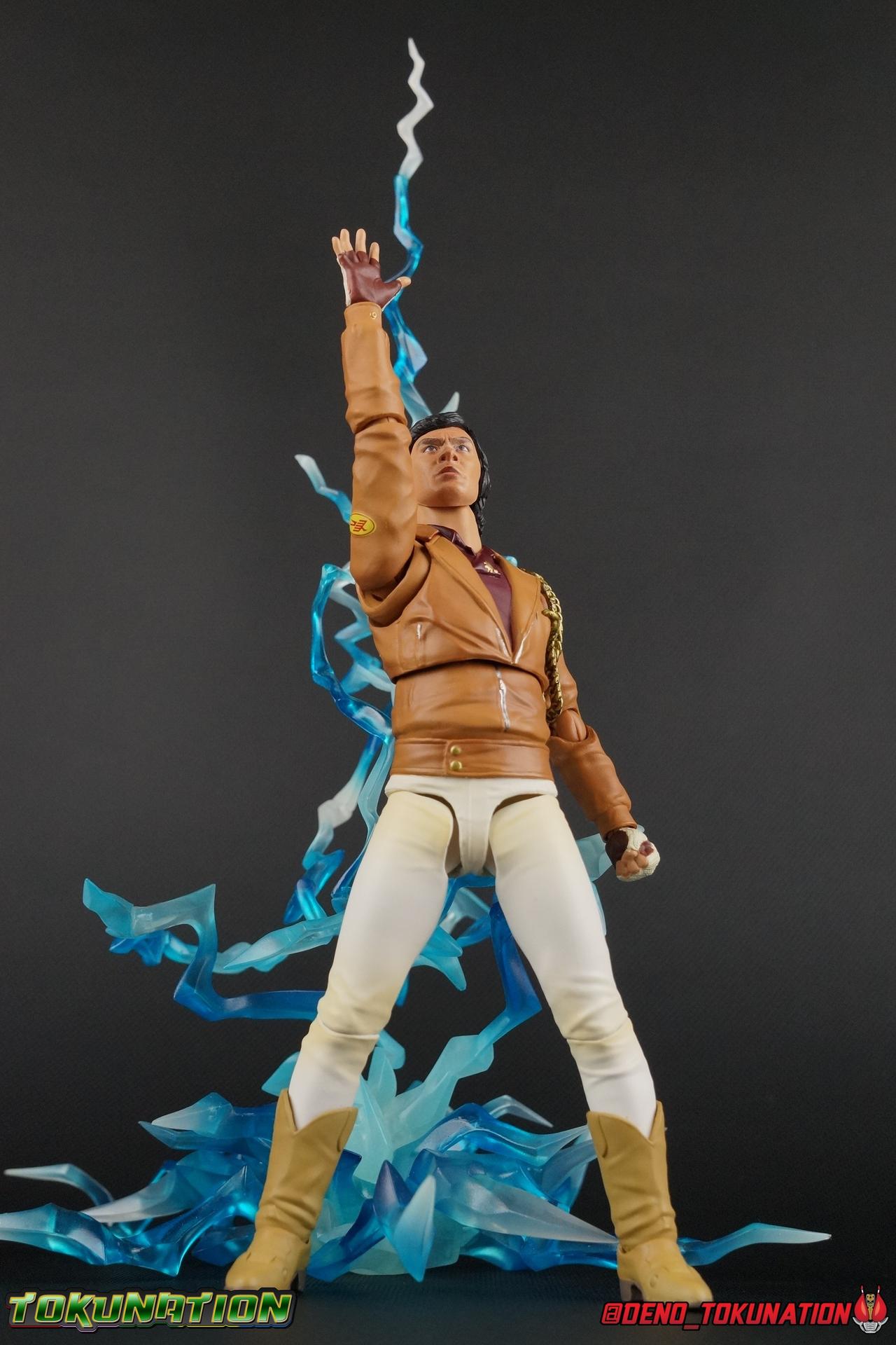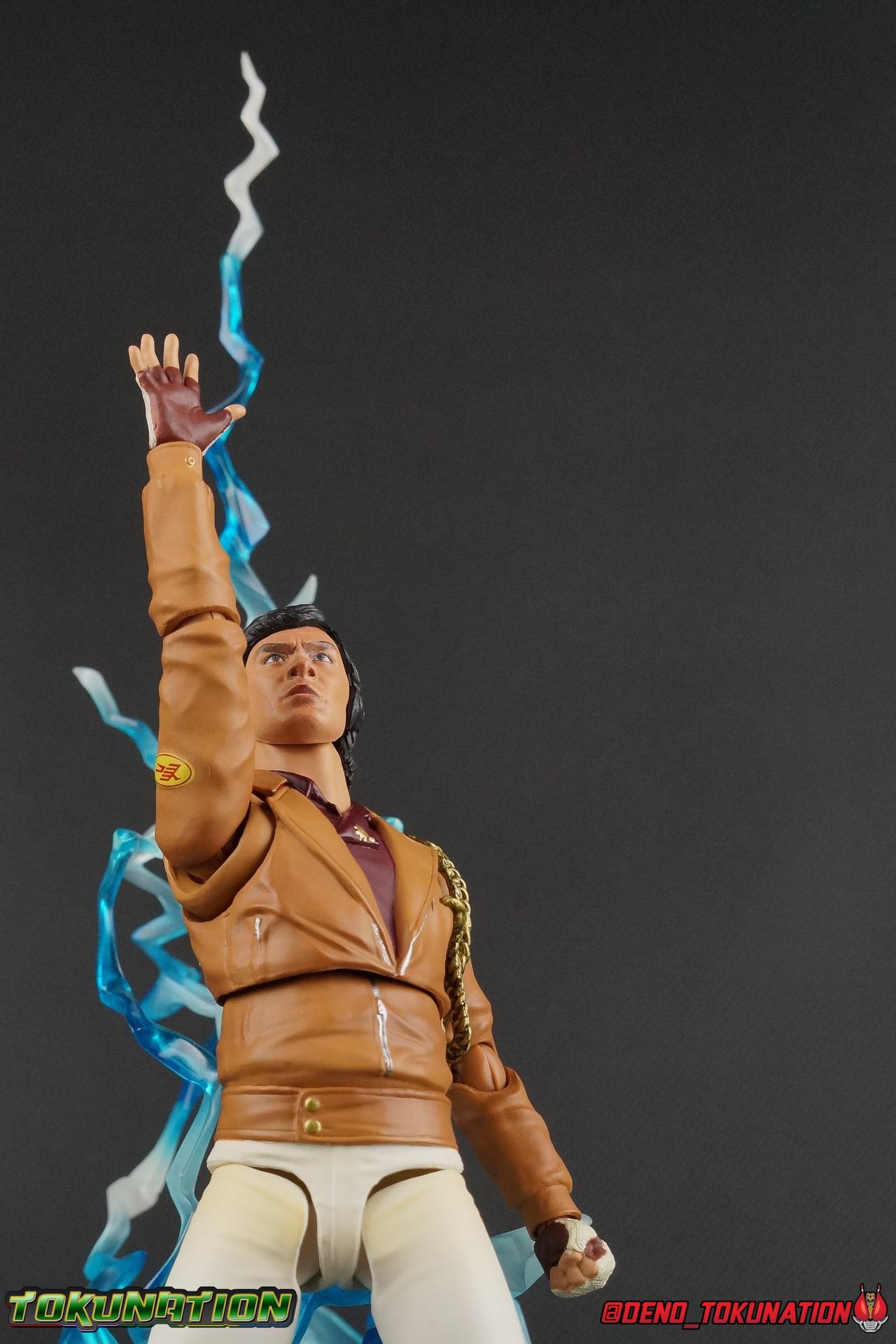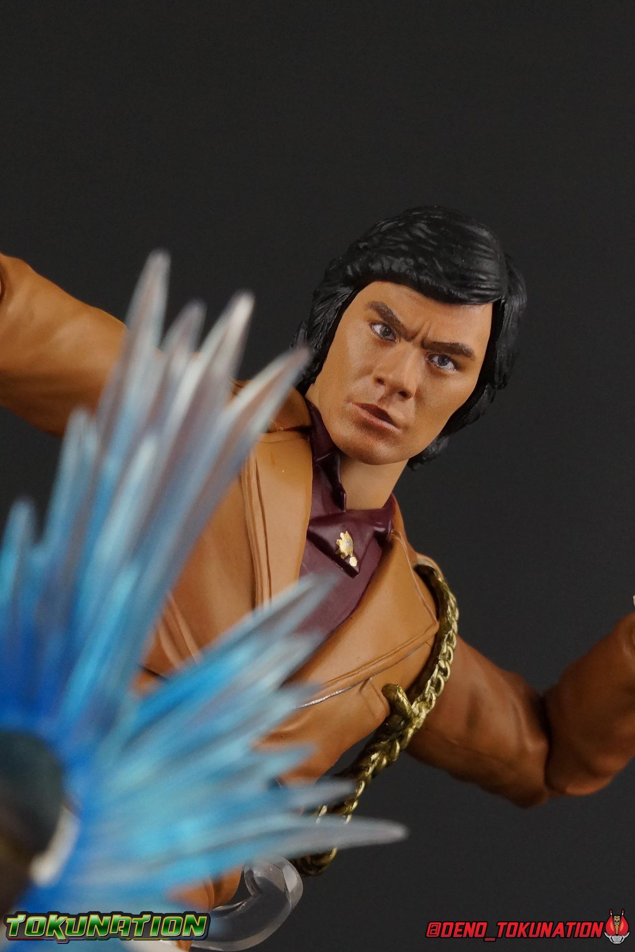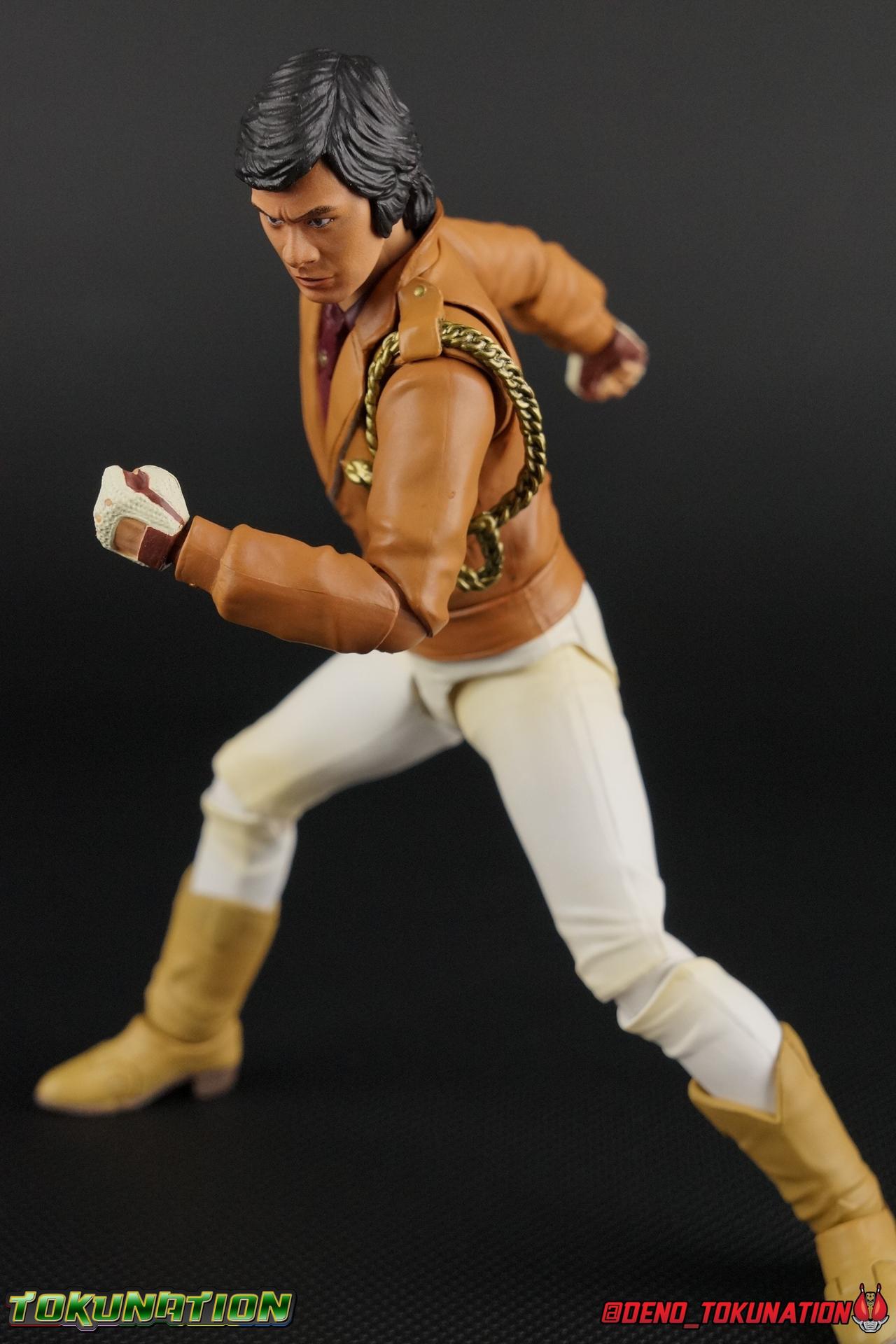 Retsu Ichijoji, when he first arrived on Earth, was a headstrong young member of the Galactic Union Police. Dispatched there to defend the planet against the evil criminal Makuu organization, Gavan gave his all to defend his mother's home world and restore peace. Flash forward over 30 years later, and this iconic hero still has plenty to teach the next generation of heroes too. Whether it was imparting lessons about justice to the Gokaigers, or passing on his legacy to Geki/Gavan Type G, Retsu has had a long life and will probably continue to until actor Kenji Ohba just can't do it anymore. Luckily there's no sign of that happening any time soon! Packaging Following the lead of the recent Gavan renewal releases, Retsu comes in a very similar type of box. It's got some glorious stock photos to it. Particularly the striking ones on the front and spine of the box. It's a bit more slim than the two Gavan's, more in line with most regular figuarts these days. Main Figure You'll recall that earlier this month we took a look at S.H. Figuarts Dan Moroboshi. The first in a new sub-line of civilian identity figuarts. My thoughts on that figure were quite mixed. While I loved the idea, the execution was a bit lacking in my opinion. This time however I'm happy to report that, outside of a few minor issues, I think Bandai has nailed it. As with Dan, this is a brand new mold. Thankfully, it feels like this time around, Bandai have learned a bit from their mistakes. I'm assuming Hongo will be even better in-hand. In any case, I wanna start by talking about the legs. I was really disappointed with the way Dan's leg's felt very limited. They were stiff and limited by the new split joints used in them (and the elbows). While Retsu still features these new style joints, I'm please to report they function much better this time around. Allowing the leg to bend much more naturally. Retu's hips are likewise improved, having much better clearance with the waist, you can basically get them in a near 90 degree angle thanks to this. The ankles leave a bit to be desired as they're somewhat limited, so sometimes you will have to play with the balance. The thing I appreciate most about the legs though? Weathering. Retsu's bright white pants feature some fantastic weathering thanks to subtle paint applications on the knees and hips, given them a worn and dirt covered feel. I love that level of realism in a toy. For me this really goes back to when Bandai began introducing fabric and rubber folds from shows into figure designs with the Kamen Rider Black Renewal. Now the upper body is really quite nice as well. While Retsu may not have as intricate a costume as Dan does, it's done really nicely still. The upper body is split into sections above the belt line. There's a smaller portion of the abdomen just above the belt that can rotate freely of the larger upper torso area. Since the two can move independently this can often mean that the design of the jacket (particularly) the zipper, is broken up, but it provides quite a bit of room for posing. The arms or at least the shoulders are a part of this as well. While the shoulders aren't perfect, they are of the similar "butterfly" type joints that Dan had. In Retsu's case the upward and outward movement however ,are greatly improved. The cuts into the torso for these joints don't feel nearly as obvious either. Retsu has the same split style elbow joints but the clearance around the elbows themselves is much better, and luckily doesn't make the jacket arms appear unnatural. I'm still disappointed that this figure, like Dan, doesn't have bicep swivels. I get it, it doesn't make sense for that joint to be there in certain designs, but it needs to be there to help the figure function correctly. For instance, because there's no swivel and because of the way the shoulders are designed, Retsu is incapable of crossing his arms. Thus being unable to replicate a least part of his transformation to Gavan. It's probably very minor to most collector's but it does bug me somewhat. And at last we have Retsu Ichijoji's head. Which features a pretty fantastic likeness of legendary actor Kenj Ohba from his younger days. At the time Gavan was being filmed Ohba was only 28, so this figure does a great job of recapturing his youthfulness. I wish the hair was a bit more curly and out there, but it still looks great. Bandai's face printing technology has a come a long way recently and I think this may be the best example of it yet. Accessories Unlike Dan, Retsu doesn't come with much: 1 - Electroplate Effect Sheet. This is probably the best new trend in figuarts of late. Takeshi Hongo comes with a similar sheet to replicate his Henshin pose. So of course Retsu includes his as well, and it works great. I'm reallly please with how good it looks, and that it's not opaque so you can clearly see Retsu through the sheet and he stays nice and in focus through it when taking pictures. 1 - Effect sheet stand. Just a basic stand with a small slit to hold the sheet. 2 - Sets of hands. Not much of a selection sadly. A pair of flat palms and a pair of open ones. I really like what Retsu does come with, but I would have liked more. Just a simple pair of hands to hold Gavan's Laser Blade or to hold the Saibarian's handlebars would have made it perfect. I do find myself wishing that an alternate head or two had been included as well. Many toku fans were first exposed to Retsu/Gavan when Kenji Ohba made his first return to the role since a 1984 cameo in Shaider. And his aged look in the film suited him very well. Just recently in 2017 he returned with a slightly different look, sporting platinum blonde hair in Space Squad. While his outfit was of course a bit different in each of those outings compared to the original, I think it would have been great to release this figure with those headsculpts as well. Oh well, an opportunity for Bandai to re-release this figure perhaps? (I hope they're reading this!) Final T