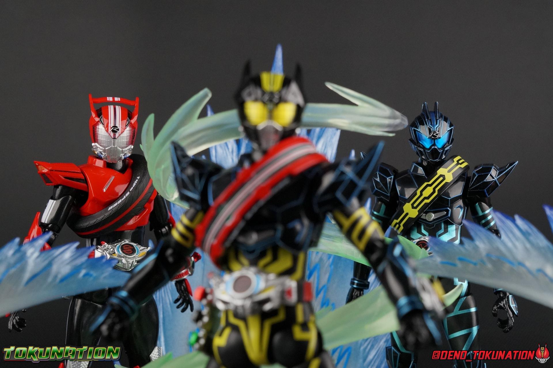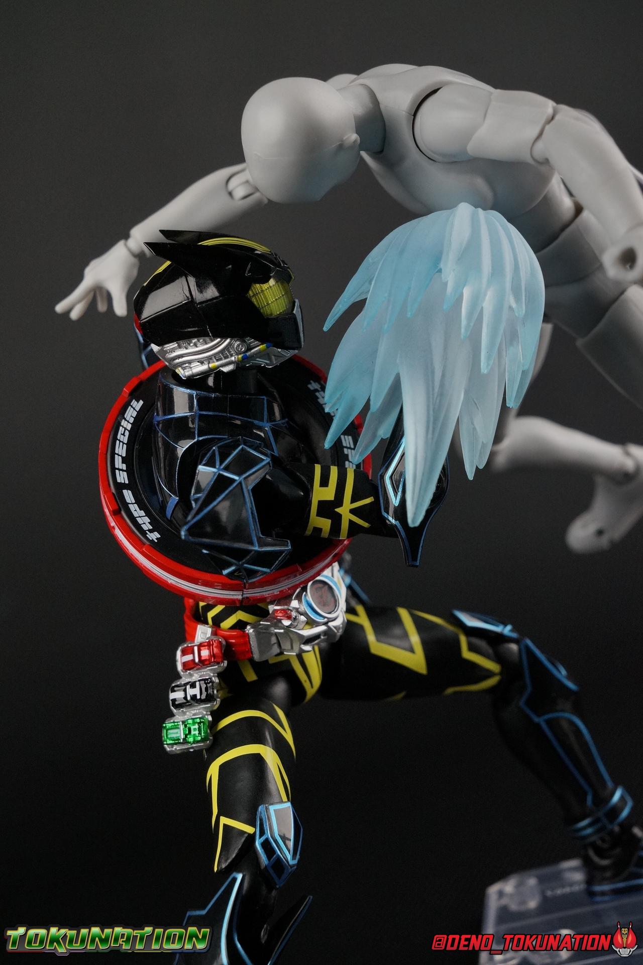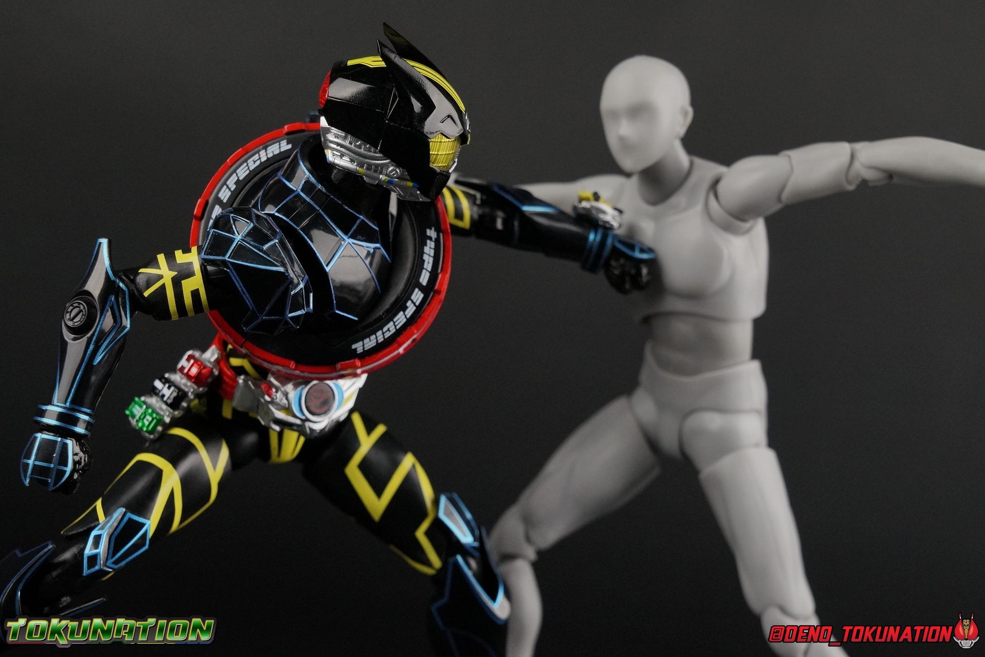 When facing off against the insurmountable Paradox Roidmude, a being who had even masqueraded as Shinnosuke Tomari's own son Eiji, a power from the future was needed. Modified to work for Shinnosuke, the Next/Special Shift Car would grant him the powers of the future Drive, his own son. Born out of necessity, in an attempt to stop Paradox from creating an eternal Global Freeze, Kamen Rider Drive Type Special arrives! A combination of Shinnosuke's own Type Speed and his sons un-corrupted Type Next, this form winds up being stronger than both. So let's take a look at how this powerful form works in figure form with S.H. Figuarts Kamen Rider Drive Type Special! Packaging Type Special comes in what you must know by now is totally standard packaing for Kamen Rider Drive releases. That slim style black box we've come to know and love over the last 3 years returns with stock photos of this new release to sell that sexy design even more. It also compliments Dark Drives' box very well. Main Figure I know what you're thinking. This figure is largely a repaint of a figure that was already largely a repaint itself. Dark Drive used the tried and true Drive Type Speed body as it's base, but applied several new parts including the Tire, Chest, head, and shoulders. Those differences along with it's new color scheme really made an eye-popping release. Drive Type Special is very much the same, even if like 90% of it is just Dark Drive. Like I said, at a base level this is Drive Type Speed, just with a few additions. When you look at this figure you can see that the thighs, Driver, and arms from the bicep down are essentially unchanged from the obvious paint apps. Overall the paint apps on Type Special to me are a bit sharper than Dark Drive's. I do still wish wish the blue bits were a tad bit brighter and more electric. But the yellow sections are really fantastic. The Drive Driver has one new application in the form of the 'Type Special' logo on the belt readout. And I have to mention the Shift Cars on the right hip holster: Shift Speed, Wild, & Technic! Shift Cars have never been painted with incredible details in this line, but they always manage to get the job done and in this case these 3 really pop. I really love that Drive's 3 base forms are represented in the holster this go around. Moving to the upper body, this torso is a total reuse of the parts created for Dark Drive, and it's painted the same way as well. The new addition here is the Type Special Tire. This tire is a bit more in line with a traditional Type Speed Tire, though it also reminds me a bit of Justice Hunter. Along with the torso come Dark Drive's shoulder pads and arms. The only difference with the arms being the new (again gorgeous) yellow accents as well as the Shift Car. While both Type Next & Type Special use the same Shift Car, it's flipped depending on which of them is using it. So the Next/Special Shift Car has been appropriately flipped over for this form. Lastly we come to the new head for this release. When I look at Type Special's head, I feel as though we're looking at Dark Drive, with a layer of evil peeled off. Remember, even though Dark Drive is evil, it's only because those powers were stolen by Paradox. That form is identical to what Eiji Tomari used as the future Kamen Rider Drive. The Dark in the name is purely there for show. With Type Special, the design almost makes it feel like the true form of the future Drive has been unlocked and released from within. After all the transformation to achieve this form shows Shinnosuke's Type Speed standing beside Eiji's Type Next as they fuse together. And that Type Speed influence is very apparent in the new mouthplate and compound eyes, which I love the shade of yellow used for these. While we don't get a traditional Drive spoiler for the helmet, the way it separates out to the sides in points, is much more visually pleasing that Dark Drive's helmet peak. Accessories Sadly Type Special comes with next to nothing despite terribly easy repack potential: 4 - sets of hands. one set for holding swords, one set for holding guns. And 2 open palms. As you'll read below, there are no weapons included with which to make use of the holding things hands. This form prominently uses, nearly immediately after it's debut, the Handle Sword. But as has become standard practice in such situations, one is not included with the figuart. These are just such simple and easy repacks of pre-exsting weapons. I just can't get over how Tamashii Nations won't include them. Due to this forms' special abilities it even has access to Chaser's Signal Axe, which is sadly also not included with the figure. I know I can just borrow the weapons from other figures, and this is nit-picky, but it bugs me he doesn't come with something. Final Thoughts Kamen Rider Drive has been a pretty wild ride of releases. At one time I never imagined Type Next or Type Special would be released. It's still quite shocking that 3 years after the release of the Surprise Future movie that both are featured in, both figuarts are in my collection. Drive is the ride that never really ends for figuarts. Though for now, it seems it has. Currently, there are no more future releases that have been teased or announced. Though admittedly, Tamashii Nations has done a fantastic job narrowing done what's missing to a select group of special forms and tangential riders. Honestly this is still one of the most complete lines of figuarts out there for a modern rider show. I will of course always hope for more. After all Super Dead Heat Mach, Jun, Lupin, Type Fruits, Type High Speed, Heart Speed/Wild/Tech, Kamen Rider 4, and a few more Roidmudes are really all we're missing now. Maybe one day. For now though, I guess it's time to say, "Nice Drive!"