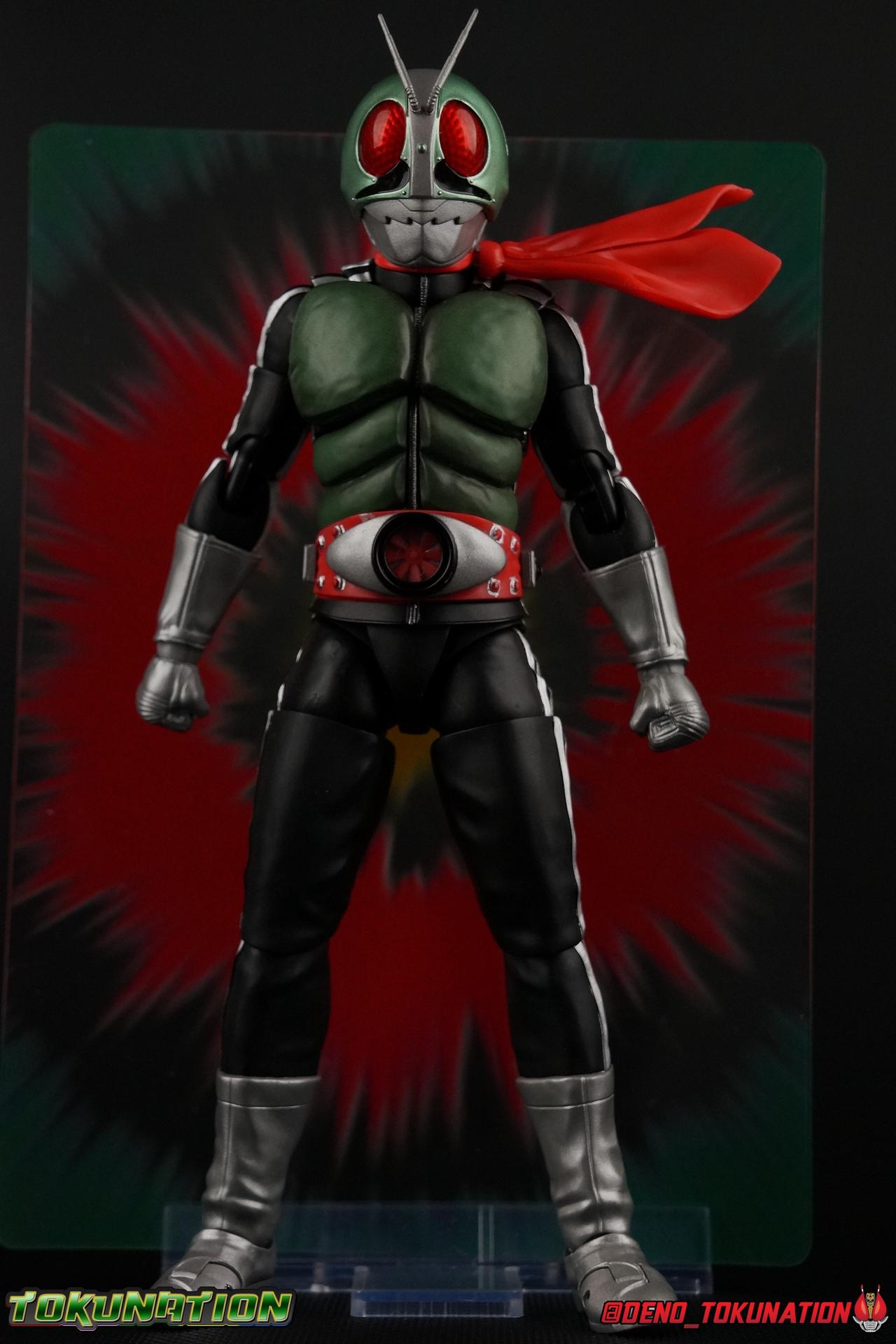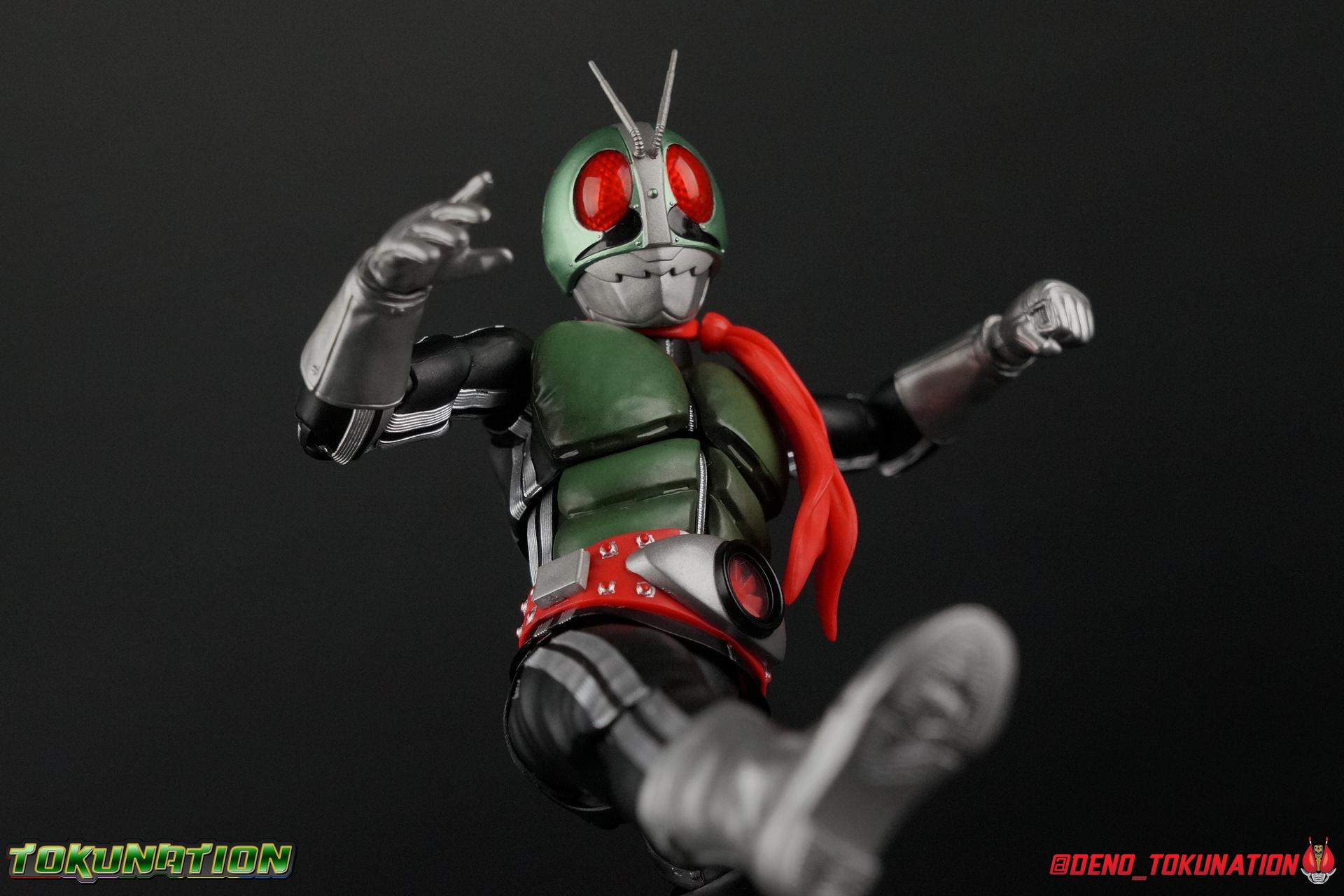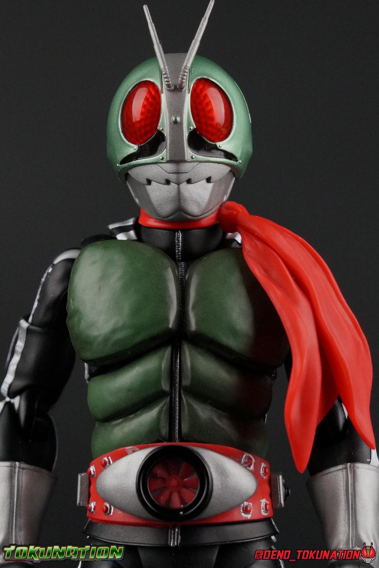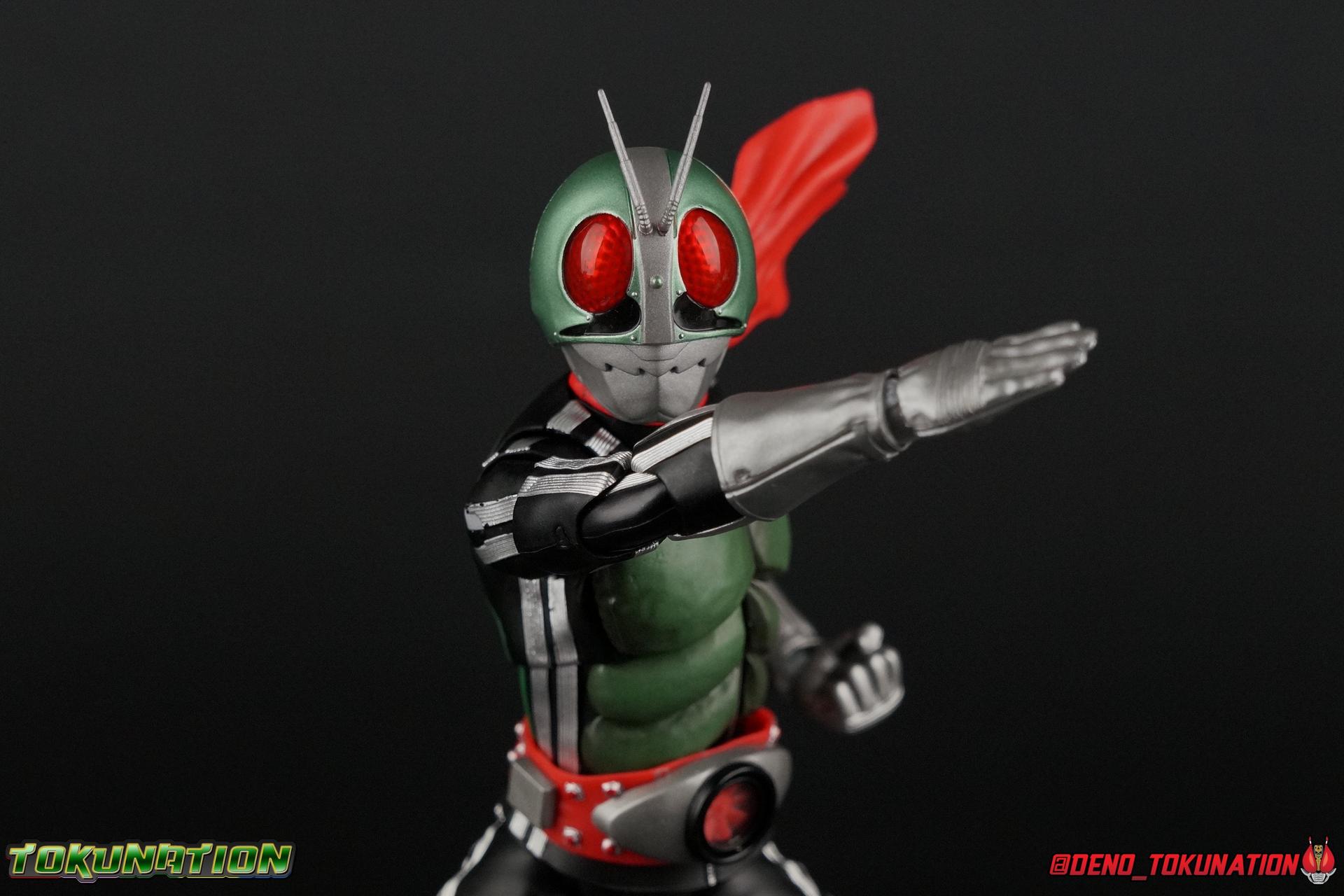 Following up from our recent look at S.H. Figuarts Takeshi Hongo, we have the most iconic riders' other new figure as well! Shinkocchou Seihou as a toyline has sought out the perfect balance of functional figures with as close to 100% screen accuracy as possible. The results frankly speak for themselves, from the first figure releases (Kabuto) to the most recent one before this (Skull), this line has continued to knock things out of the park. So how well has it worked for the original Kamen Rider? Very! Read below for our full review of S.H. Figuarts Shinkocchou Seihou Kamen Rider 1! ** This gallery is spread across the first 3 posts of this thread. Be sure to check them all out! Packaging That standard slipcover packaging of Shinkocchou Seihou returns again. You've seen it numerous times before. Rider 1's artwork looks really sharp on it. But of course there's nothing really new offered here. Business as usual. Main Figure What a time to be a collector! It's been just over 10 years since the S.H. figuarts toyline came into being. What began with figures based on the then current Kamen Rider The First film, has led us to this point. It's appropriate that 10 years later all the advances of this toyline are embodied in the releases we're looking at today. Those he's had numerous S.H. figuarts releases in one form or another over the last 10 years, finally the original Kamen Rider 1 gets the premium renewal Shinkocchou Seihou treatment! Released at the very end of 2017, Seihou Rider 1 is easily one of the best releases of last year. It's also easily the best figure form representation of this character we've ever had. This brand new mold works to as closely as possible recreate the original suit it's based on, right down to the most minute of details. This figure is of course based on the "Shin" Rider 1 design introduced later into the original TV series run. Avid fans will of course remember the classic green and pink eyes look of the original suit as well as the darker Sakurajima Rider 1 suits used later on. But the Shin design is the one most often associated with Takeshi Hongo, and it's become his easily most iconic look. It's the form he's taken in every single appearance he's made since it's debut in the original series for the last 40+ years save for the 2016 Movie design. So it's only appropriate that this design be the one to receive the Seihou treatment first. Similarly the upcoming Seihou Rider 2 release is based on his equally iconic & standard Shin Rider 2 design. Now, what's so special about this release? Well if you've handled any of the multiple prior Rider 1 figuarts you've undoubtedly noticed by now that those figures don't stack up to many modern releases now. They tend to be short, disproportionate, and use outdated articulation design. Seihou Rider 1 tosses all that out the window. Starting with the legs, we have a really remarkable design choice even just for the feet. A nice free balljoint is used for the ankle so you don't have much obstructing it, but it also has one of the best toe bends I've ever seen on a figuarts. That's going both directions! It just provides really stable balance. Similarly to other Seihous the legs are also expertly crafted. Akin to W or Skull, Rider 1 has a sort of receding knee joint that's hidden under the knee itself and expands as you move it. Making things look really natural and proportionate. The hips are a really interesting combinations of new ideas. Some of which I can see were borrowed from recent renewals of Super Saiyan Vegeta & Super Saiyan 3 Goku. Both of these figures featured a new hip "mesh" design. An overlay of parts that move over the hip to keep the design unbroken while posing. Rider 1 has a very similar system in place, though it can look odd from extreme angles. They aren't really impacted by his waist section at all either which is a huge relief. This figure needs to be every bit as dynamic as the real character. The legs as a whole also feature great molded in fabric style details to really sell how accurate the figure is to the actual suit. It's been a hallmark of this toyline and I love it. Moving up, we have the latest version of the Typhoon rider belt. This is probably the best detailed and most accurate version of it done at this scale so far. Mine has a few silver paint splotches that you really only notice upon a close inspection though. Now the torso is by far the thing that sets this release apart most. Modern Rider 1 figures have very often taken his classic design and streamlined bits of it to be more modern, as in they look less like painted styrofoam and rubber. Thankfully Seihou Rider 1 embraces the original design. This couldn't be more evident than with the green padding on his chest and stomach. Right down to every rough imperfection, concave are, and ripple, the suit has been properly recreated for the first time. And it manages to look better than the actual suit still. I will warn you to be careful as on my copy the waist joint and floating torso joints are both very very tight and require a bit of force to move. But the design of the upper body is just so visually pleasing that I'm willing to forgo that criticism. The arms are likewise greatly improved. Thankfully to a sunken in shoulder joint that doesn't protrude from the body, the shoulders are free to fully rotate 180 degrees, be fully outstretched and arched back, hell you can even completely invert the joint and turn the arm around backwards. It's an absolutely killer design. The wonderful bicep swivels return as well! Something that should be standard on every last figuart in my opinion. The elbows work perfectly and the balljoints for the hands are extended just far enough away from the wrist to free them up for dynamic posing as well. My only gripe with the arms is that they do impact the torso somewhat, and can't lay totally flat against his ribs. But that's a small price to pay for this level of functionality. Before we tackle the he