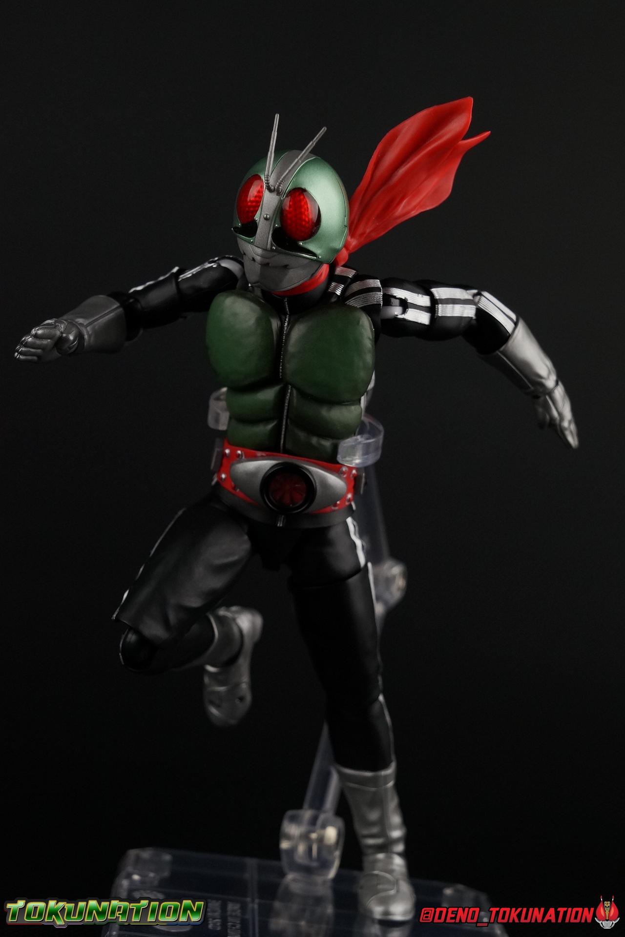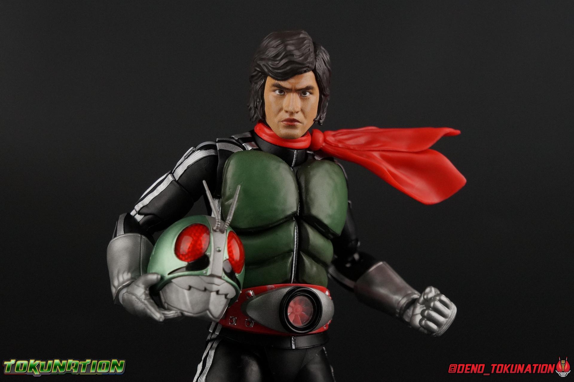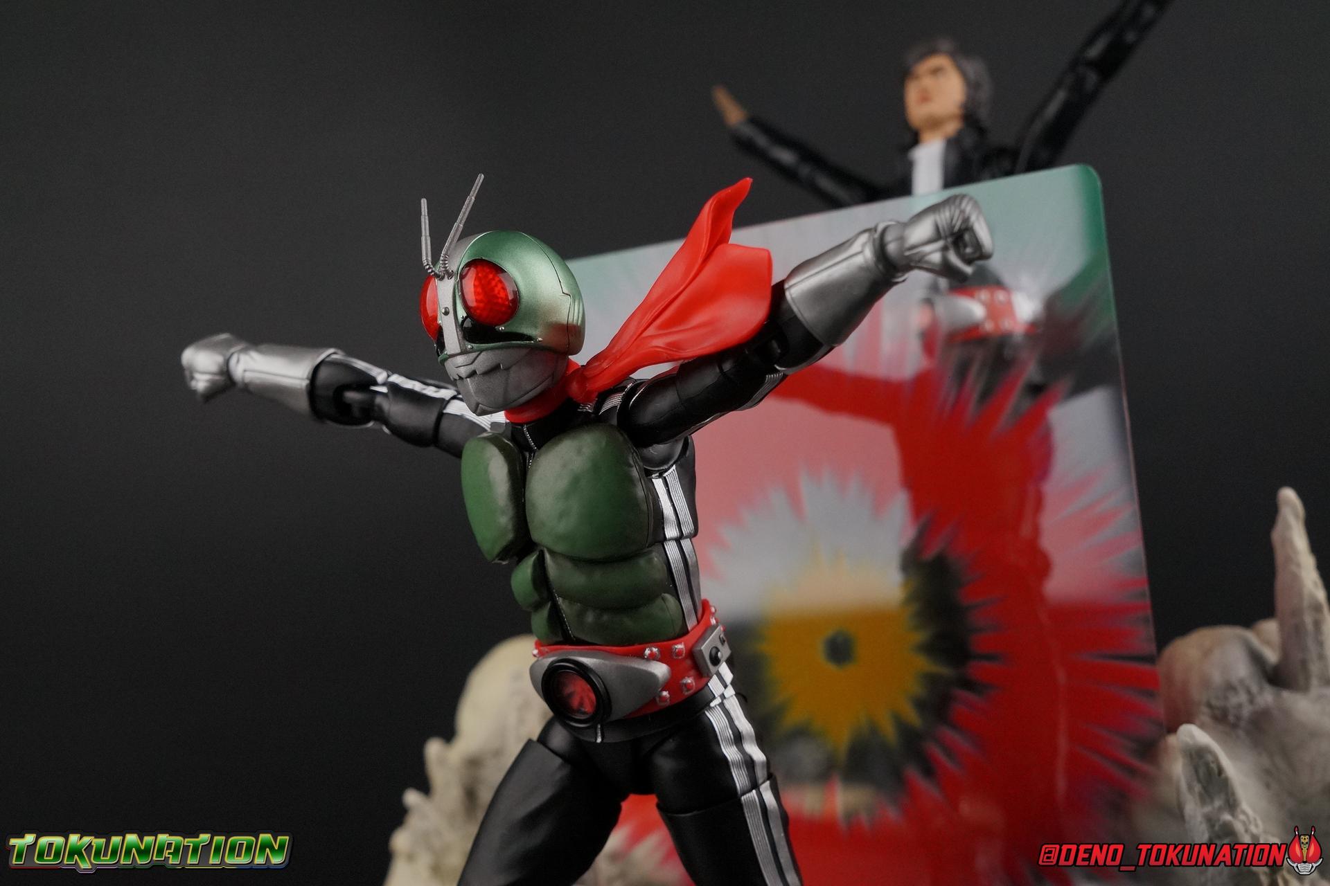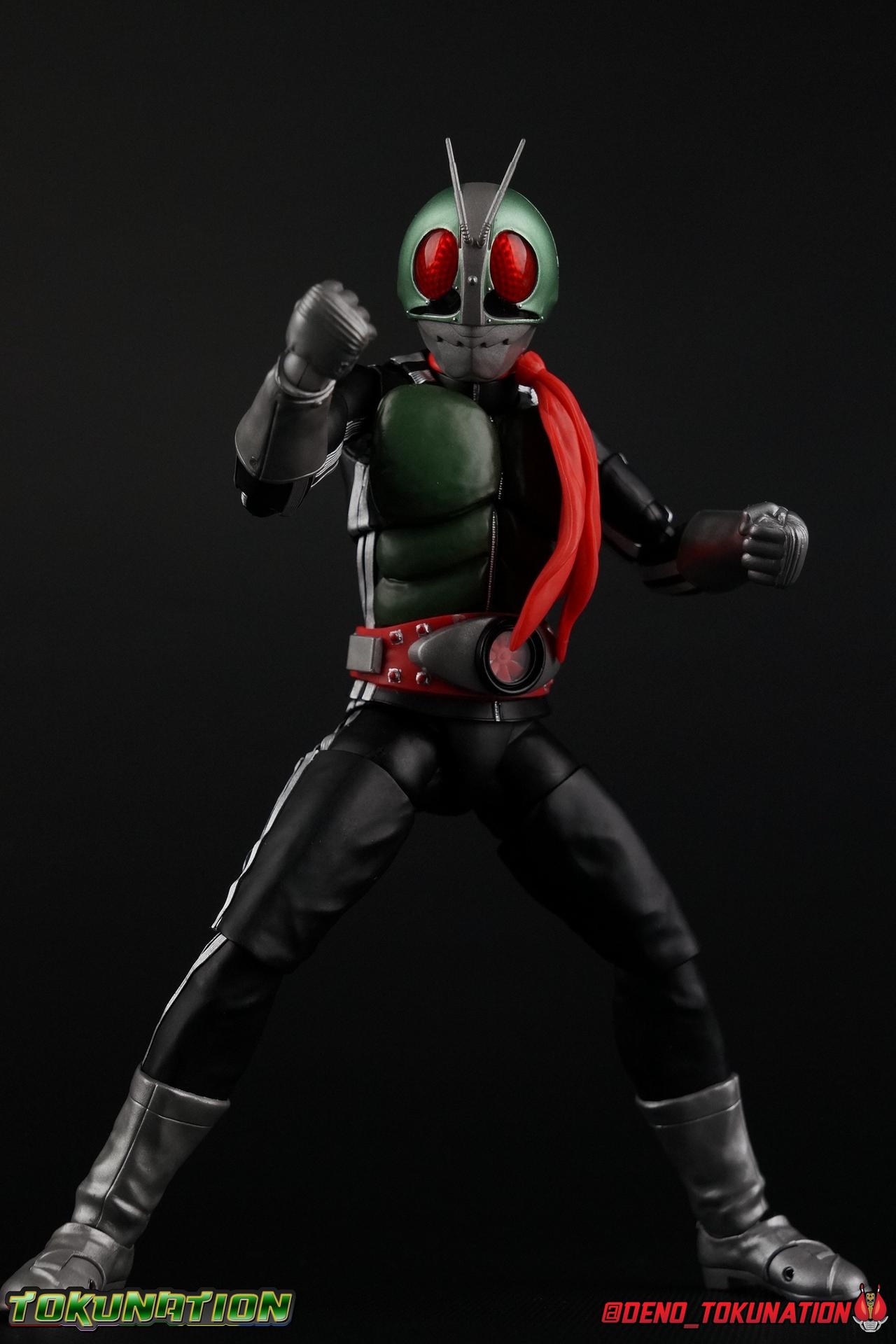 Following up from our recent look at S.H. Figuarts Takeshi Hongo, we have the most iconic riders' other new figure as well! Shinkocchou Seihou as a toyline has sought out the perfect balance of functional figures with as close to 100% screen accuracy as possible. The results frankly speak for themselves, from the first figure releases (Kabuto) to the most recent one before this (Skull), this line has continued to knock things out of the park. So how well has it worked for the original Kamen Rider? Very! Read below for our full review of S.H. Figuarts Shinkocchou Seihou Kamen Rider 1! ** This gallery is spread across the first 3 posts of this thread. Be sure to check them all out! Packaging That standard slipcover packaging of Shinkocchou Seihou returns again. You've seen it numerous times before. Rider 1's artwork looks really sharp on it. But of course there's nothing really new offered here. Business as usual. Main Figure What a time to be a collector! It's been just over 10 years since the S.H. figuarts toyline came into being. What began with figures based on the then current Kamen Rider The First film, has led us to this point. It's appropriate that 10 years later all the advances of this toyline are embodied in the releases we're looking at today. Those he's had numerous S.H. figuarts releases in one form or another over the last 10 years, finally the original Kamen Rider 1 gets the premium renewal Shinkocchou Seihou treatment! Released at the very end of 2017, Seihou Rider 1 is easily one of the best releases of last year. It's also easily the best figure form representation of this character we've ever had. This brand new mold works to as closely as possible recreate the original suit it's based on, right down to the most minute of details. This figure is of course based on the "Shin" Rider 1 design introduced later into the original TV series run. Avid fans will of course remember the classic green and pink eyes look of the original suit as well as the darker Sakurajima Rider 1 suits used later on. But the Shin design is the one most often associated with Takeshi Hongo, and it's become his easily most iconic look. It's the form he's taken in every single appearance he's made since it's debut in the original series for the last 40+ years save for the 2016 Movie design. So it's only appropriate that this design be the one to receive the Seihou treatment first. Similarly the upcoming Seihou Rider 2 release is based on his equally iconic & standard Shin Rider 2 design. Now, what's so special about this release? Well if you've handled any of the multiple prior Rider 1 figuarts you've undoubtedly noticed by now that those figures don't stack up to many modern releases now. They tend to be short, disproportionate, and use outdated articulation design. Seihou Rider 1 tosses all that out the window. Starting with the legs, we have a really remarkable design choice even just for the feet. A nice free balljoint is used for the ankle so you don't have much obstructing it, but it also has one of the best toe bends I've ever seen on a figuarts. That's going both directions! It just provides really stable balance. Similarly to other Seihous the legs are also expertly crafted. Akin to W or Skull, Rider 1 has a sort of receding knee joint that's hidden under the knee itself and expands as you move it. Making things look really natural and proportionate. The hips are a really interesting combinations of new ideas. Some of which I can see were borrowed from recent renewals of Super Saiyan Vegeta & Super Saiyan 3 Goku. Both of these figures featured a new hip "mesh" design. An overlay of parts that move over the hip to keep the design unbroken while posing. Rider 1 has a very similar system in place, though it can look odd from extreme angles. They aren't really impacted by his waist section at all either which is a huge relief. This figure needs to be every bit as dynamic as the real character. The legs as a whole also feature great molded in fabric style details to really sell how accurate the figure is to the actual suit. It's been a hallmark of this toyline and I love it. Moving up, we have the latest version of the Typhoon rider belt. This is probably the best detailed and most accurate version of it done at this scale so far. Mine has a few silver paint splotches that you really only notice upon a close inspection though. Now the torso is by far the thing that sets this release apart most. Modern Rider 1 figures have very often taken his classic design and streamlined bits of it to be more modern, as in they look less like painted styrofoam and rubber. Thankfully Seihou Rider 1 embraces the original design. This couldn't be more evident than with the green padding on his chest and stomach. Right down to every rough imperfection, concave are, and ripple, the suit has been properly recreated for the first time. And it manages to look better than the actual suit still. I will warn you to be careful as on my copy the waist joint and floating torso joints are both very very tight and require a bit of force to move. But the design of the upper body is just so visually pleasing that I'm willing to forgo that criticism. The arms are likewise greatly improved. Thankfully to a sunken in shoulder joint that doesn't protrude from the body, the shoulders are free to fully rotate 180 degrees, be fully outstretched and arched back, hell you can even completely invert the joint and turn the arm around backwards. It's an absolutely killer design. The wonderful bicep swivels return as well! Something that should be standard on every last figuart in my opinion. The elbows work perfectly and the balljoints for the hands are extended just far enough away from the wrist to free them up for dynamic posing as well. My only gripe with the arms is that they do impact the torso somewhat, and can't lay totally flat against his ribs. But that's a small price to pay for this level of functionality. Before we tackle the he