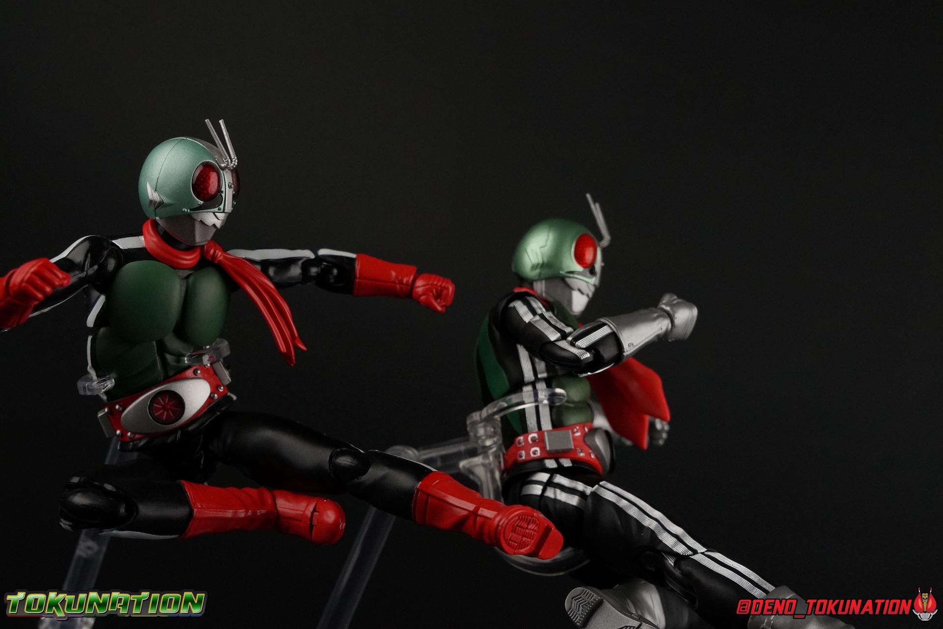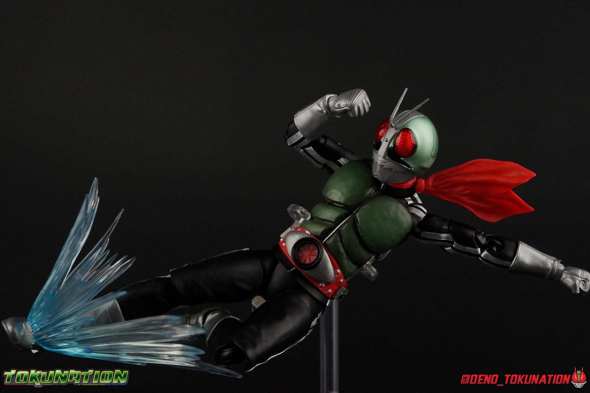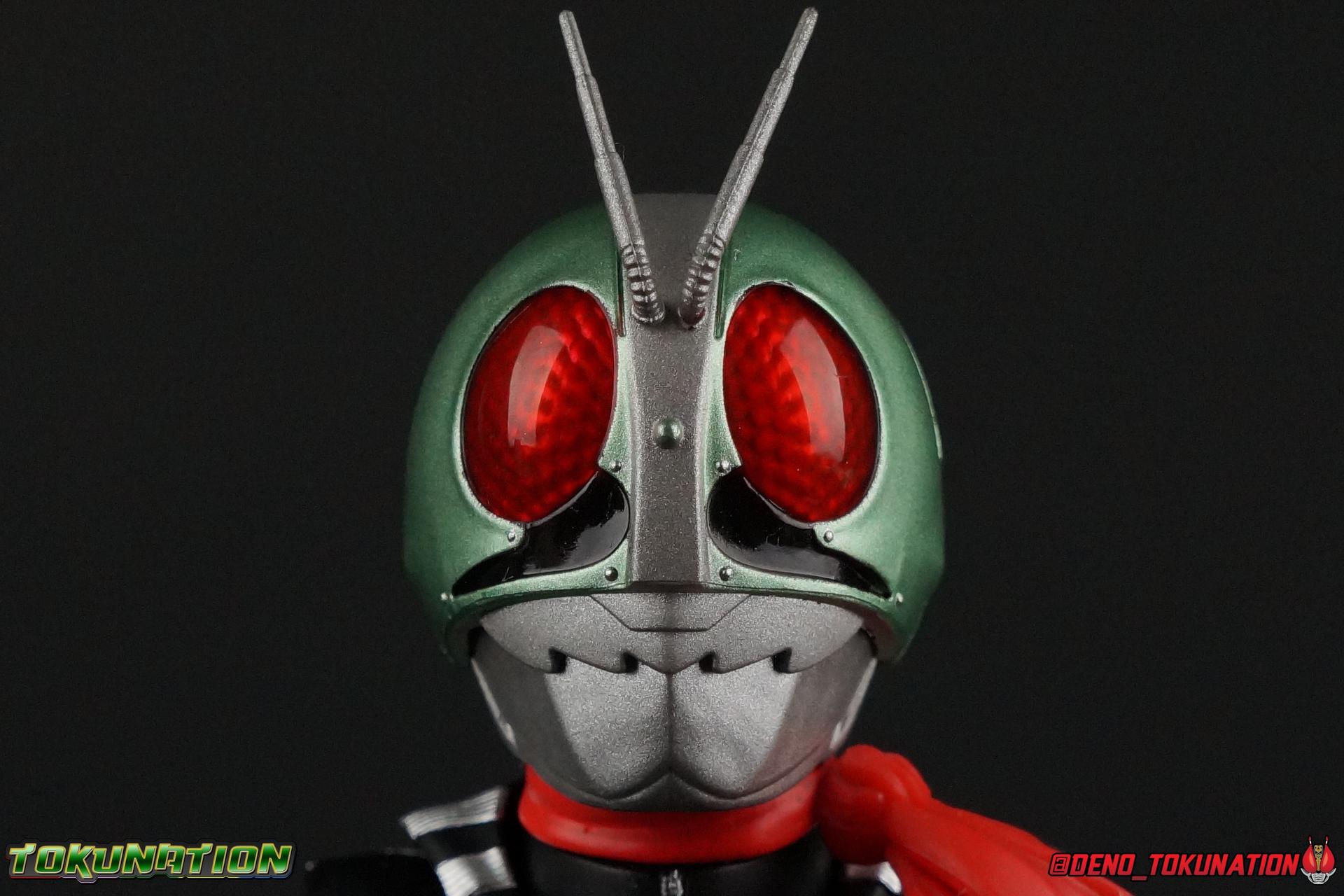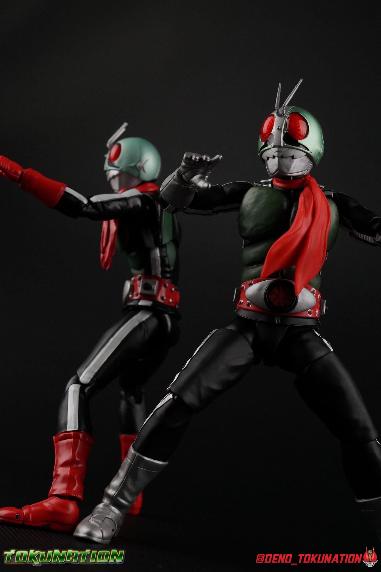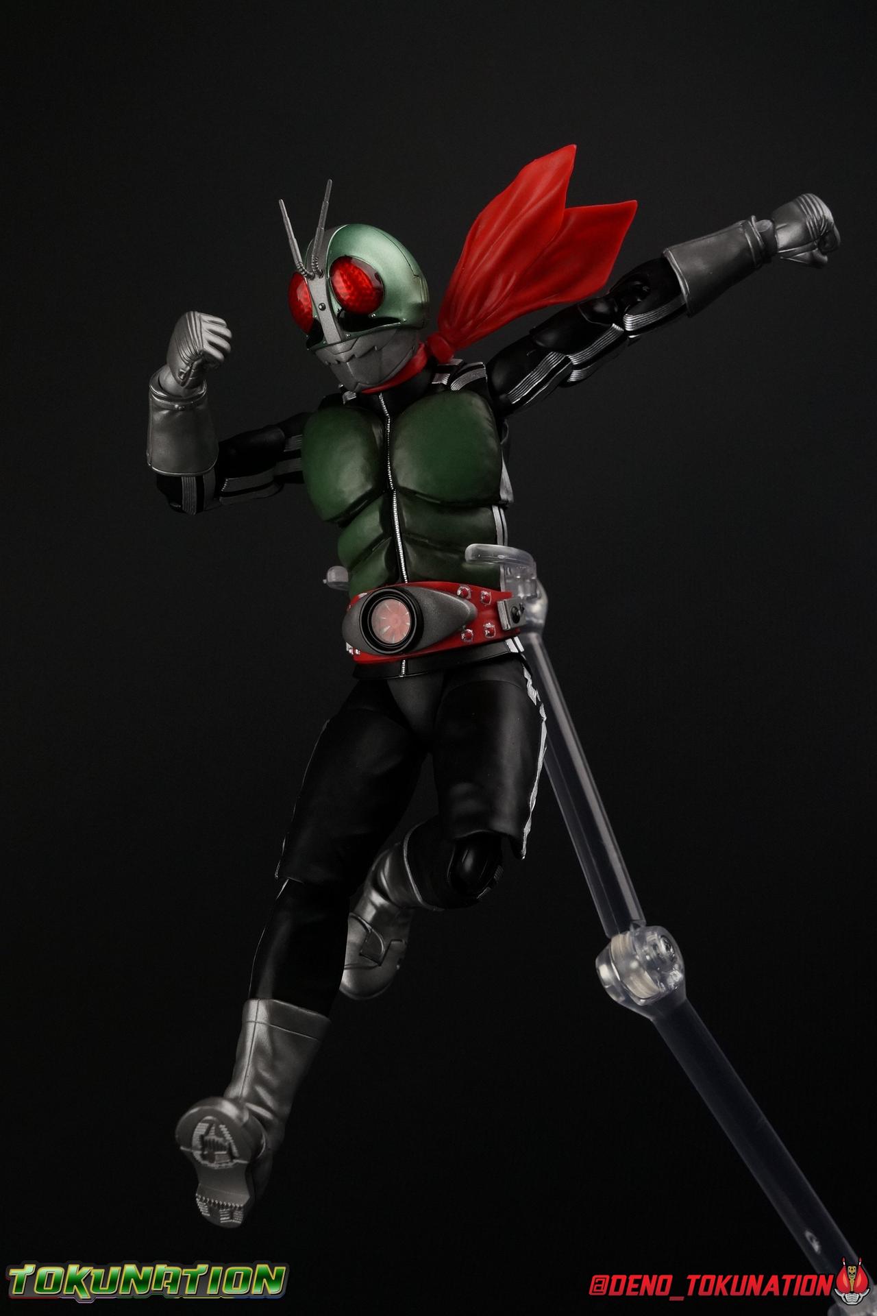 Following up from our recent look at S.H. Figuarts Takeshi Hongo, we have the most iconic riders' other new figure as well! Shinkocchou Seihou as a toyline has sought out the perfect balance of functional figures with as close to 100% screen accuracy as possible. The results frankly speak for themselves, from the first figure releases (Kabuto) to the most recent one before this (Skull), this line has continued to knock things out of the park. So how well has it worked for the original Kamen Rider? Very! Read below for our full review of S.H. Figuarts Shinkocchou Seihou Kamen Rider 1! ** This gallery is spread across the first 3 posts of this thread. Be sure to check them all out! Packaging That standard slipcover packaging of Shinkocchou Seihou returns again. You've seen it numerous times before. Rider 1's artwork looks really sharp on it. But of course there's nothing really new offered here. Business as usual. Main Figure What a time to be a collector! It's been just over 10 years since the S.H. figuarts toyline came into being. What began with figures based on the then current Kamen Rider The First film, has led us to this point. It's appropriate that 10 years later all the advances of this toyline are embodied in the releases we're looking at today. Those he's had numerous S.H. figuarts releases in one form or another over the last 10 years, finally the original Kamen Rider 1 gets the premium renewal Shinkocchou Seihou treatment! Released at the very end of 2017, Seihou Rider 1 is easily one of the best releases of last year. It's also easily the best figure form representation of this character we've ever had. This brand new mold works to as closely as possible recreate the original suit it's based on, right down to the most minute of details. This figure is of course based on the "Shin" Rider 1 design introduced later into the original TV series run. Avid fans will of course remember the classic green and pink eyes look of the original suit as well as the darker Sakurajima Rider 1 suits used later on. But the Shin design is the one most often associated with Takeshi Hongo, and it's become his easily most iconic look. It's the form he's taken in every single appearance he's made since it's debut in the original series for the last 40+ years save for the 2016 Movie design. So it's only appropriate that this design be the one to receive the Seihou treatment first. Similarly the upcoming Seihou Rider 2 release is based on his equally iconic & standard Shin Rider 2 design. Now, what's so special about this release? Well if you've handled any of the multiple prior Rider 1 figuarts you've undoubtedly noticed by now that those figures don't stack up to many modern releases now. They tend to be short, disproportionate, and use outdated articulation design. Seihou Rider 1 tosses all that out the window. Starting with the legs, we have a really remarkable design choice even just for the feet. A nice free balljoint is used for the ankle so you don't have much obstructing it, but it also has one of the best toe bends I've ever seen on a figuarts. That's going both directions! It just provides really stable balance. Similarly to other Seihous the legs are also expertly crafted. Akin to W or Skull, Rider 1 has a sort of receding knee joint that's hidden under the knee itself and expands as you move it. Making things look really natural and proportionate. The hips are a really interesting combinations of new ideas. Some of which I can see were borrowed from recent renewals of Super Saiyan Vegeta & Super Saiyan 3 Goku. Both of these figures featured a new hip "mesh" design. An overlay of parts that move over the hip to keep the design unbroken while posing. Rider 1 has a very similar system in place, though it can look odd from extreme angles. They aren't really impacted by his waist section at all either which is a huge relief. This figure needs to be every bit as dynamic as the real character. The legs as a whole also feature great molded in fabric style details to really sell how accurate the figure is to the actual suit. It's been a hallmark of this toyline and I love it. Moving up, we have the latest version of the Typhoon rider belt. This is probably the best detailed and most accurate version of it done at this scale so far. Mine has a few silver paint splotches that you really only notice upon a close inspection though. Now the torso is by far the thing that sets this release apart most. Modern Rider 1 figures have very often taken his classic design and streamlined bits of it to be more modern, as in they look less like painted styrofoam and rubber. Thankfully Seihou Rider 1 embraces the original design. This couldn't be more evident than with the green padding on his chest and stomach. Right down to every rough imperfection, concave are, and ripple, the suit has been properly recreated for the first time. And it manages to look better than the actual suit still. I will warn you to be careful as on my copy the waist joint and floating torso joints are both very very tight and require a bit of force to move. But the design of the upper body is just so visually pleasing that I'm willing to forgo that criticism. The arms are likewise greatly improved. Thankfully to a sunken in shoulder joint that doesn't protrude from the body, the shoulders are free to fully rotate 180 degrees, be fully outstretched and arched back, hell you can even completely invert the joint and turn the arm around backwards. It's an absolutely killer design. The wonderful bicep swivels return as well! Something that should be standard on every last figuart in my opinion. The elbows work perfectly and the balljoints for the hands are extended just far enough away from the wrist to free them up for dynamic posing as well. My only gripe with the arms is that they do impact the torso somewhat, and can't lay totally flat against his ribs. But that's a small price to pay for this level of functionality. Before we tackle the he