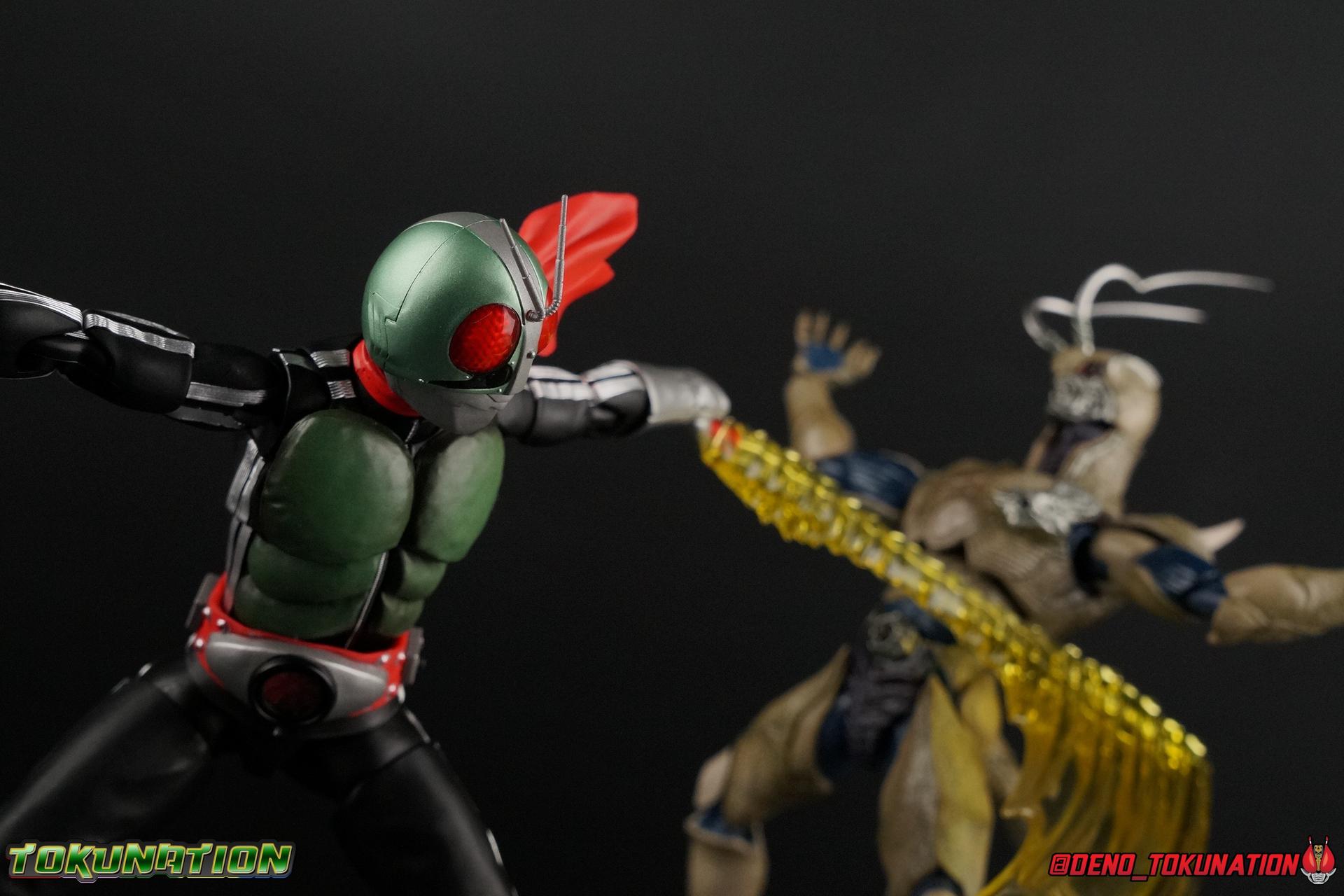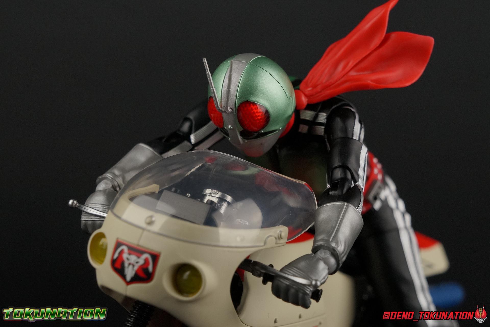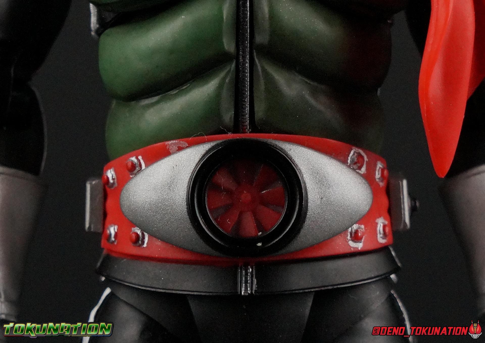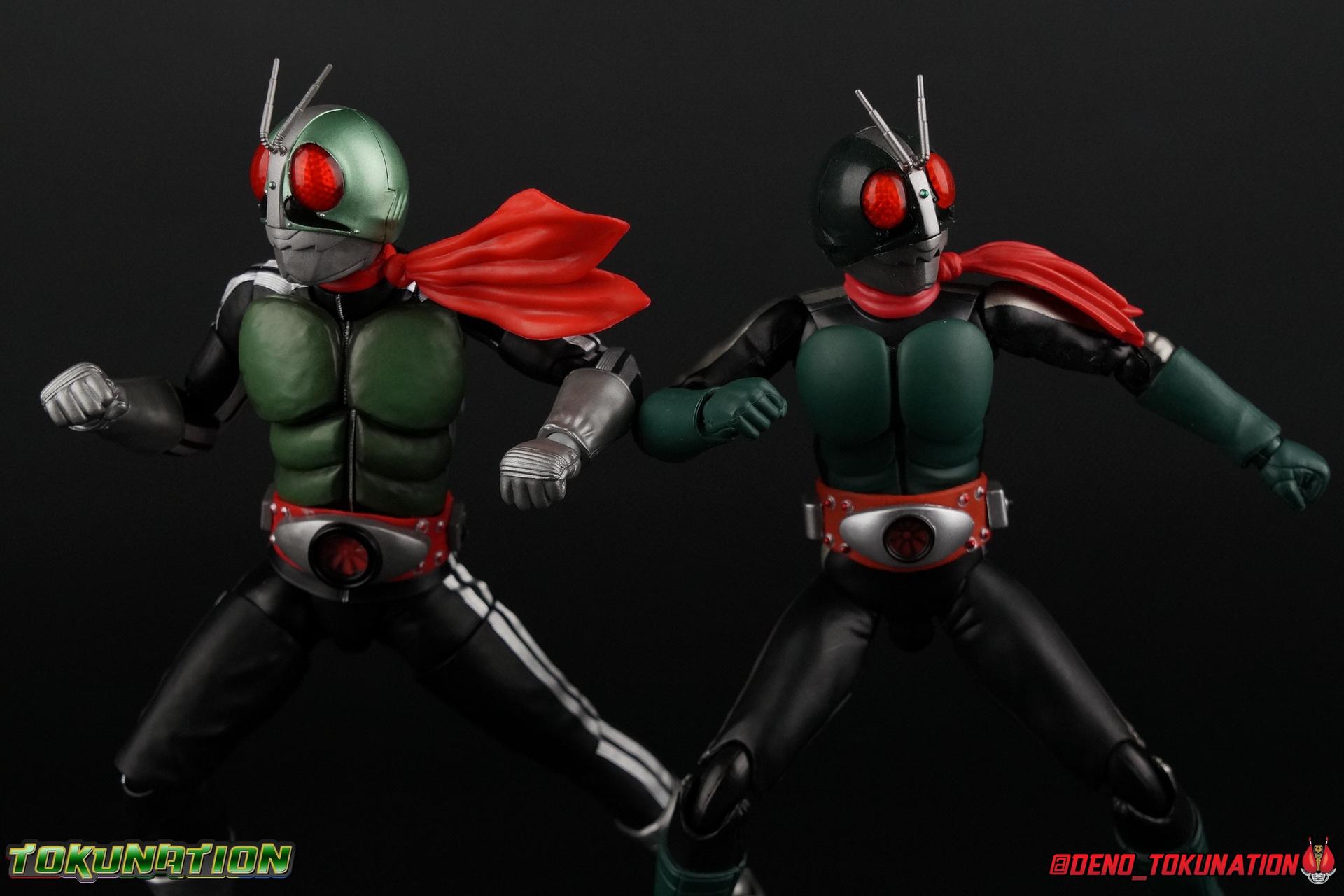Following up from our recent look at S.H. Figuarts Takeshi Hongo, we have the most iconic riders' other new figure as well! Shinkocchou Seihou as a toyline has sought out the perfect balance of functional figures with as close to 100% screen accuracy as possible. The results frankly speak for themselves, from the first figure releases (Kabuto) to the most recent one before this (Skull), this line has continued to knock things out of the park. So how well has it worked for the original Kamen Rider? Very! Read below for our full review of S.H. Figuarts Shinkocchou Seihou Kamen Rider 1! ** This gallery is spread across the first 3 posts of this thread. Be sure to check them all out! Packaging That standard slipcover packaging of Shinkocchou Seihou returns again. You've seen it numerous times before. Rider 1's artwork looks really sharp on it. But of course there's nothing really new offered here. Business as usual. Main Figure What a time to be a collector! It's been just over 10 years since the S.H. figuarts toyline came into being. What began with figures based on the then current Kamen Rider The First film, has led us to this point. It's appropriate that 10 years later all the advances of this toyline are embodied in the releases we're looking at today. Those he's had numerous S.H. figuarts releases in one form or another over the last 10 years, finally the original Kamen Rider 1 gets the premium renewal Shinkocchou Seihou treatment! Released at the very end of 2017, Seihou Rider 1 is easily one of the best releases of last year. It's also easily the best figure form representation of this character we've ever had. This brand new mold works to as closely as possible recreate the original suit it's based on, right down to the most minute of details. This figure is of course based on the "Shin" Rider 1 design introduced later into the original TV series run. Avid fans will of course remember the classic green and pink eyes look of the original suit as well as the darker Sakurajima Rider 1 suits used later on. But the Shin design is the one most often associated with Takeshi Hongo, and it's become his easily most iconic look. It's the form he's taken in every single appearance he's made since it's debut in the original series for the last 40+ years save for the 2016 Movie design. So it's only appropriate that this design be the one to receive the Seihou treatment first. Similarly the upcoming Seihou Rider 2 release is based on his equally iconic & standard Shin Rider 2 design. Now, what's so special about this release? Well if you've handled any of the multiple prior Rider 1 figuarts you've undoubtedly noticed by now that those figures don't stack up to many modern releases now. They tend to be short, disproportionate, and use outdated articulation design. Seihou Rider 1 tosses all that out the window. Starting with the legs, we have a really remarkable design choice even just for the feet. A nice free balljoint is used for the ankle so you don't have much obstructing it, but it also has one of the best toe bends I've ever seen on a figuarts. That's going both directions! It just provides really stable balance. Similarly to other Seihous the legs are also expertly crafted. Akin to W or Skull, Rider 1 has a sort of receding knee joint that's hidden under the knee itself and expands as you move it. Making things look really natural and proportionate. The hips are a really interesting combinations of new ideas. Some of which I can see were borrowed from recent renewals of Super Saiyan Vegeta & Super Saiyan 3 Goku. Both of these figures featured a new hip "mesh" design. An overlay of parts that move over the hip to keep the design unbroken while posing. Rider 1 has a very similar system in place, though it can look odd from extreme angles. They aren't really impacted by his waist section at all either which is a huge relief. This figure needs to be every bit as dynamic as the real character. The legs as a whole also feature great molded in fabric style details to really sell how accurate the figure is to the actual suit. It's been a hallmark of this toyline and I love it. Moving up, we have the latest version of the Typhoon rider belt. This is probably the best detailed and most accurate version of it done at this scale so far. Mine has a few silver paint splotches that you really only notice upon a close inspection though. Now the torso is by far the thing that sets this release apart most. Modern Rider 1 figures have very often taken his classic design and streamlined bits of it to be more modern, as in they look less like painted styrofoam and rubber. Thankfully Seihou Rider 1 embraces the original design. This couldn't be more evident than with the green padding on his chest and stomach. Right down to every rough imperfection, concave are, and ripple, the suit has been properly recreated for the first time. And it manages to look better than the actual suit still. I will warn you to be careful as on my copy the waist joint and floating torso joints are both very very tight and require a bit of force to move. But the design of the upper body is just so visually pleasing that I'm willing to forgo that criticism. The arms are likewise greatly improved. Thankfully to a sunken in shoulder joint that doesn't protrude from the body, the shoulders are free to fully rotate 180 degrees, be fully outstretched and arched back, hell you can even completely invert the joint and turn the arm around backwards. It's an absolutely killer design. The wonderful bicep swivels return as well! Something that should be standard on every last figuart in my opinion. The elbows work perfectly and the balljoints for the hands are extended just far enough away from the wrist to free them up for dynamic posing as well. My only gripe with the arms is that they do impact the torso somewhat, and can't lay totally flat against his ribs. But that's a small price to pay for this level of functionality. Before we tackle the he
