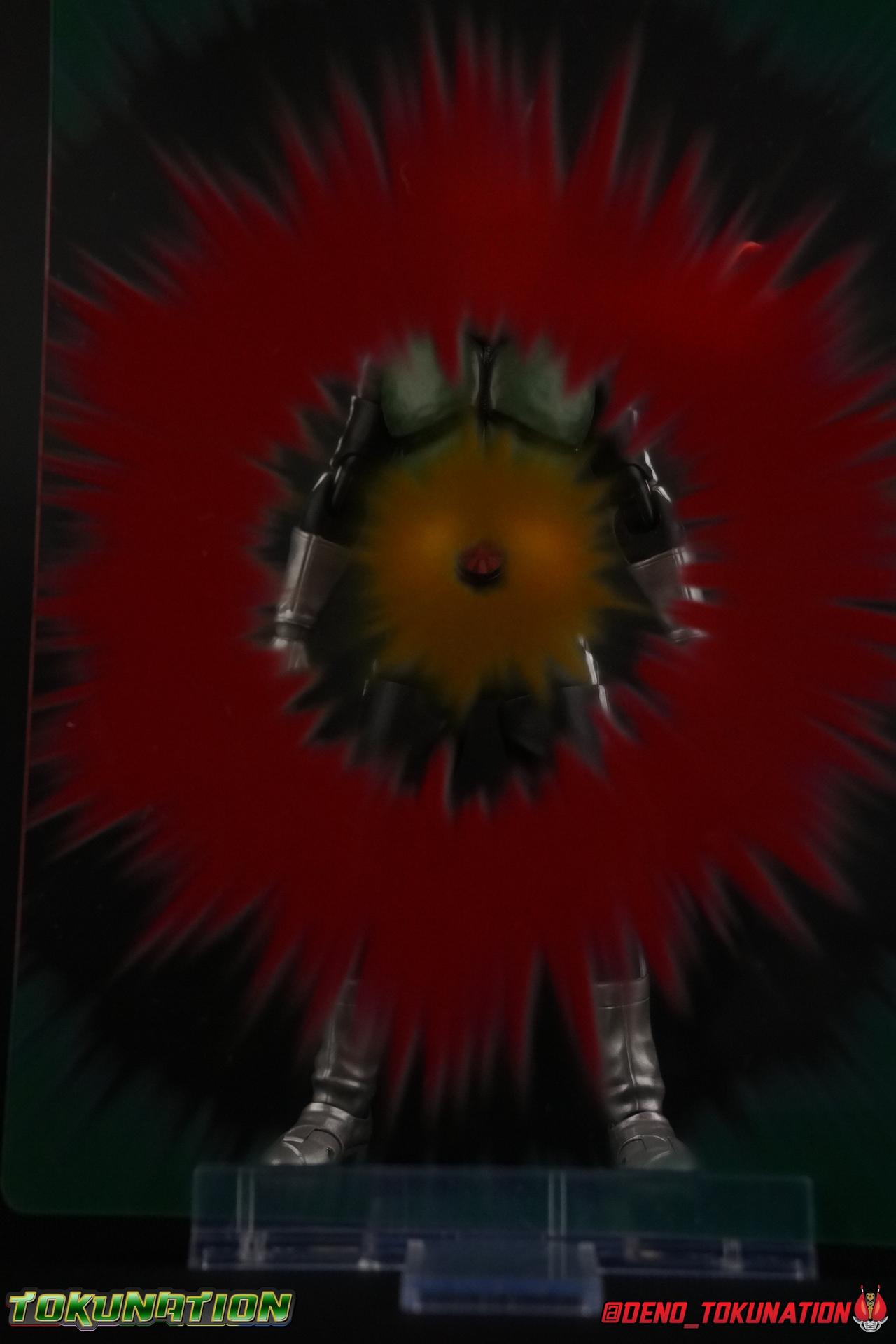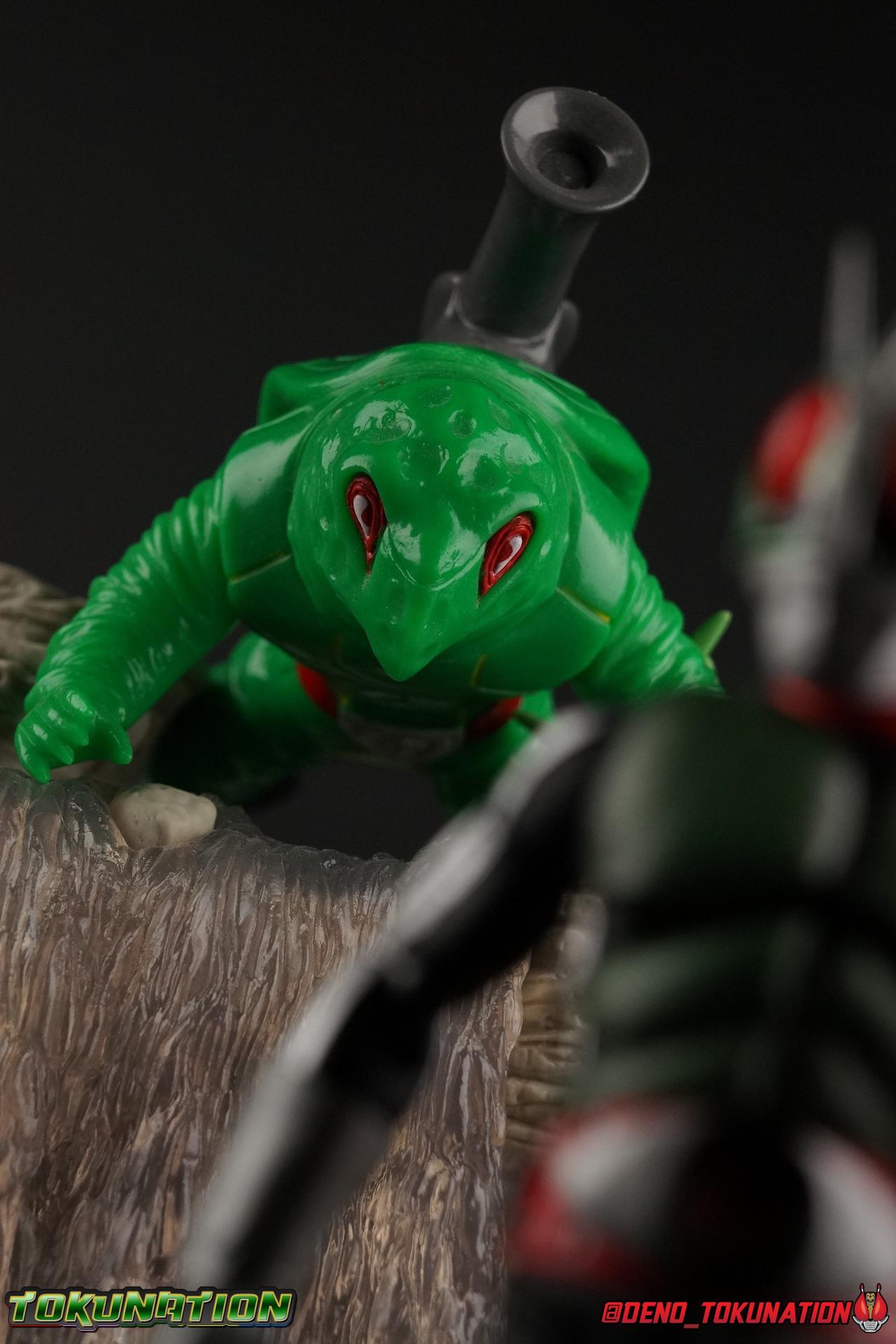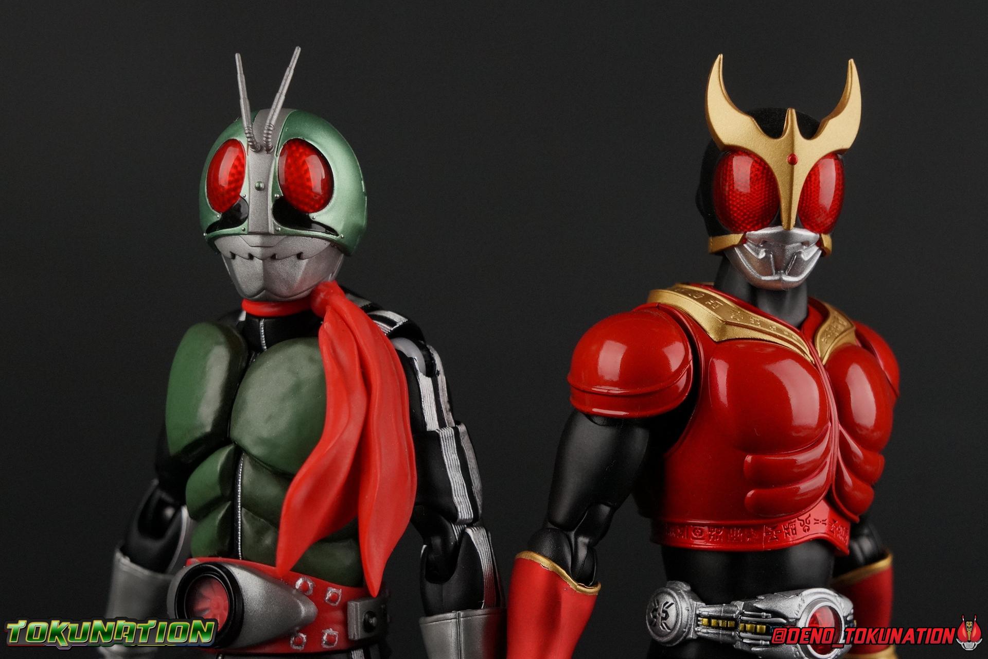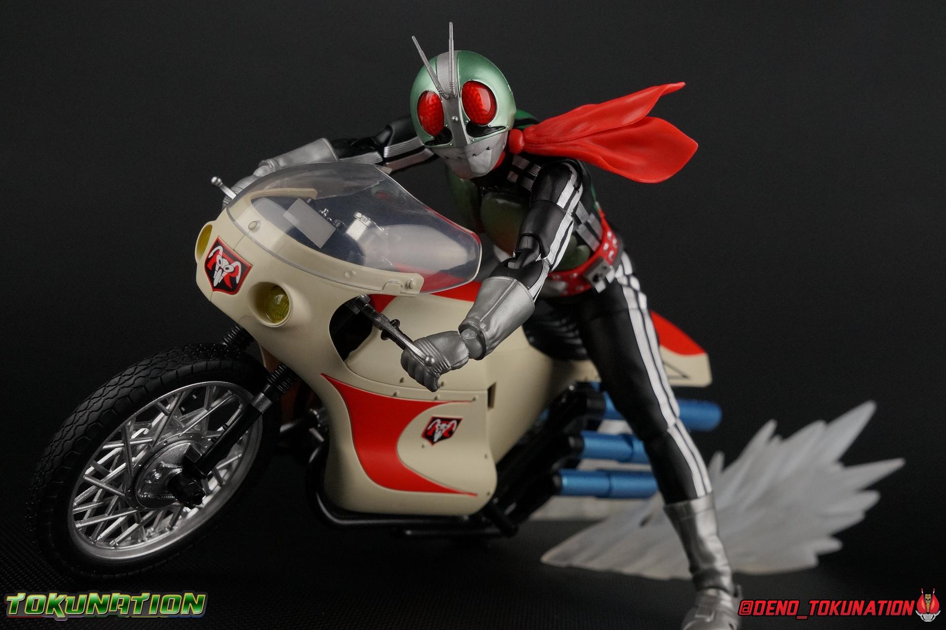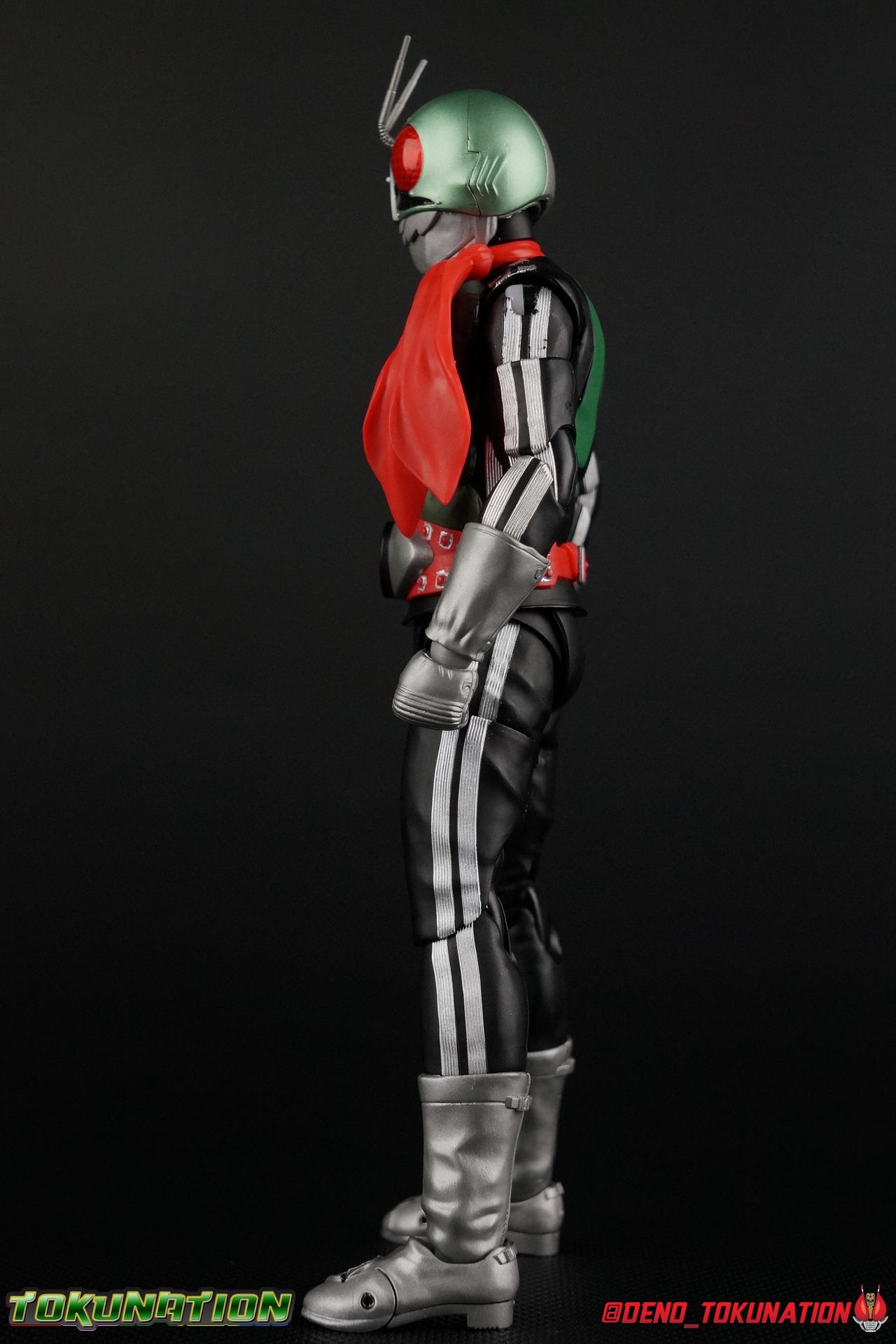 Following up from our recent look at S.H. Figuarts Takeshi Hongo, we have the most iconic riders' other new figure as well! Shinkocchou Seihou as a toyline has sought out the perfect balance of functional figures with as close to 100% screen accuracy as possible. The results frankly speak for themselves, from the first figure releases (Kabuto) to the most recent one before this (Skull), this line has continued to knock things out of the park. So how well has it worked for the original Kamen Rider? Very! Read below for our full review of S.H. Figuarts Shinkocchou Seihou Kamen Rider 1! ** This gallery is spread across the first 3 posts of this thread. Be sure to check them all out! Packaging That standard slipcover packaging of Shinkocchou Seihou returns again. You've seen it numerous times before. Rider 1's artwork looks really sharp on it. But of course there's nothing really new offered here. Business as usual. Main Figure What a time to be a collector! It's been just over 10 years since the S.H. figuarts toyline came into being. What began with figures based on the then current Kamen Rider The First film, has led us to this point. It's appropriate that 10 years later all the advances of this toyline are embodied in the releases we're looking at today. Those he's had numerous S.H. figuarts releases in one form or another over the last 10 years, finally the original Kamen Rider 1 gets the premium renewal Shinkocchou Seihou treatment! Released at the very end of 2017, Seihou Rider 1 is easily one of the best releases of last year. It's also easily the best figure form representation of this character we've ever had. This brand new mold works to as closely as possible recreate the original suit it's based on, right down to the most minute of details. This figure is of course based on the "Shin" Rider 1 design introduced later into the original TV series run. Avid fans will of course remember the classic green and pink eyes look of the original suit as well as the darker Sakurajima Rider 1 suits used later on. But the Shin design is the one most often associated with Takeshi Hongo, and it's become his easily most iconic look. It's the form he's taken in every single appearance he's made since it's debut in the original series for the last 40+ years save for the 2016 Movie design. So it's only appropriate that this design be the one to receive the Seihou treatment first. Similarly the upcoming Seihou Rider 2 release is based on his equally iconic & standard Shin Rider 2 design. Now, what's so special about this release? Well if you've handled any of the multiple prior Rider 1 figuarts you've undoubtedly noticed by now that those figures don't stack up to many modern releases now. They tend to be short, disproportionate, and use outdated articulation design. Seihou Rider 1 tosses all that out the window. Starting with the legs, we have a really remarkable design choice even just for the feet. A nice free balljoint is used for the ankle so you don't have much obstructing it, but it also has one of the best toe bends I've ever seen on a figuarts. That's going both directions! It just provides really stable balance. Similarly to other Seihous the legs are also expertly crafted. Akin to W or Skull, Rider 1 has a sort of receding knee joint that's hidden under the knee itself and expands as you move it. Making things look really natural and proportionate. The hips are a really interesting combinations of new ideas. Some of which I can see were borrowed from recent renewals of Super Saiyan Vegeta & Super Saiyan 3 Goku. Both of these figures featured a new hip "mesh" design. An overlay of parts that move over the hip to keep the design unbroken while posing. Rider 1 has a very similar system in place, though it can look odd from extreme angles. They aren't really impacted by his waist section at all either which is a huge relief. This figure needs to be every bit as dynamic as the real character. The legs as a whole also feature great molded in fabric style details to really sell how accurate the figure is to the actual suit. It's been a hallmark of this toyline and I love it. Moving up, we have the latest version of the Typhoon rider belt. This is probably the best detailed and most accurate version of it done at this scale so far. Mine has a few silver paint splotches that you really only notice upon a close inspection though. Now the torso is by far the thing that sets this release apart most. Modern Rider 1 figures have very often taken his classic design and streamlined bits of it to be more modern, as in they look less like painted styrofoam and rubber. Thankfully Seihou Rider 1 embraces the original design. This couldn't be more evident than with the green padding on his chest and stomach. Right down to every rough imperfection, concave are, and ripple, the suit has been properly recreated for the first time. And it manages to look better than the actual suit still. I will warn you to be careful as on my copy the waist joint and floating torso joints are both very very tight and require a bit of force to move. But the design of the upper body is just so visually pleasing that I'm willing to forgo that criticism. The arms are likewise greatly improved. Thankfully to a sunken in shoulder joint that doesn't protrude from the body, the shoulders are free to fully rotate 180 degrees, be fully outstretched and arched back, hell you can even completely invert the joint and turn the arm around backwards. It's an absolutely killer design. The wonderful bicep swivels return as well! Something that should be standard on every last figuart in my opinion. The elbows work perfectly and the balljoints for the hands are extended just far enough away from the wrist to free them up for dynamic posing as well. My only gripe with the arms is that they do impact the torso somewhat, and can't lay totally flat against his ribs. But that's a small price to pay for this level of functionality. Before we tackle the he