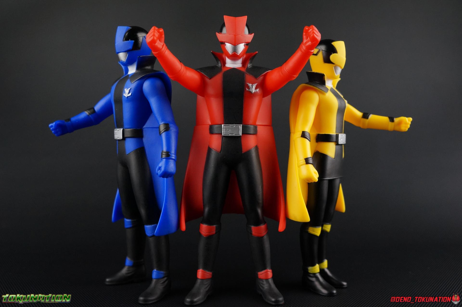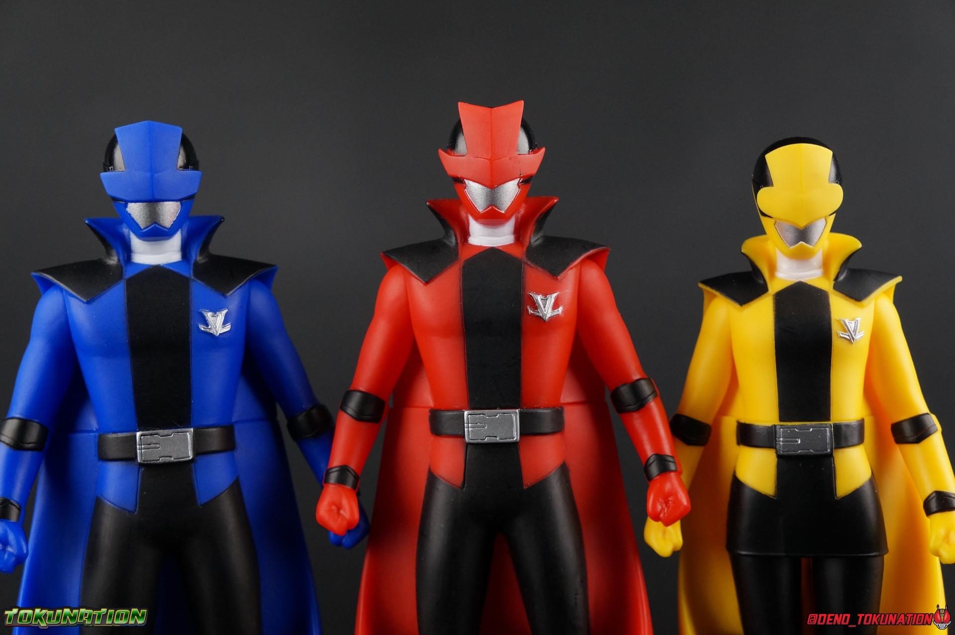 Kaitou Sentai Lupinrager VS Keisatsu Sentai Patranger has only just begun! Straight off, this show is already shaping up to be great action, good fun, and pure stylish. Particularly in the case of our three favorite Phantom Thieves! The last two weeks have left us all wanting more. And so following up from our review of the Patranger vinyls, it's time to take a look at the Sentai Hero Collection vinyls for the Lupinrangers! Packaging The packaging for releases like this boils down to a mere tag hanging out of their back. Each features a nice portrait of the characters, the plastic holding them to the figures goes through a very tiny hole just below the neck line. You can either yank it right out of the back, no harm, or cut it and get the piece left on the inside back out by taking the figure apart. As soft vinyl this is very easy to do. Main Figures Using their own VS Changers, the successors to the legacy of Arsene Lupin transform into Kaitou Sentai Lupinranger in their quest to reunite the Lupin Collection and along the way maybe defeat the Gangler. Along the way they'll be constantly pursued by the heroic Patrangers as well! Kicking off the toyline for this series we took a look at the Sentai Hero Collection Vinyls for Patranger. Today we'll be looking at the thieving Lupinrangers! For starters though, I don't typically review vinyls much, but as with the Patrangers I was very won over by the designs from this show. And seeing as poseable figures of these teams (other than Yu-Do Candy Toys) won't likely be made, I wanted to have some representation of them. So, where to start? Well in short there's not a lot to this review. Hero Collection Vinyls, Sofubis, Soft Vinyls in general are either non-articulated or sparsely articulated. These 3 are the same as well. Each of the Lupinrangers has a waist joint that would normally rotate side to side, thanks to design, but because of the nature of their capes the upper and lower halves of the body are actually fused together. Soft Vinyls like this are hollow and molded in two separate pieces of course. Each vinyl does still retain shoulder joints to allow you to rotate the arms up into roughly 90 degree angles on each figure. That's the extent of the moving parts but that's only a little under the norm. Lupin Red & Lupin Blue are the exact same mold. It's always ideal to be able to reuse a mold as many times as possible with few to no alterations in this line. Bandai Japan makes great money like this. So Red & Blue being nigh identical works to their advantage. The only real difference between the two is a 'slight' alteration to their visors. Lupin Yellow however is a totally different mold. Unless another female member of the team is added at a later date I don't think we'll be seeing it used again. Basically this vinyl is about a head shorter than the other two and obviously has a bit smaller body overall. The skirt piece is molded into the thighs themselves so the leg separation ends at that point as well, just as with Patren 3. Each of these vinyls is molded in their primary ranger color so everything else is additional paint work. So there are a number of small paint errors on each of them. Over spray, missed applications, what have you, but at this price point (900 yen list price) it's hard to split hairs on it. I am a bit disappointed that the bands on the legs and arms are only painted on the front side of each though, but so were the Patrangers. Even the loss of a rotating waist isn't a huge deal because these things aren't really meant for posing as is. The designs are executed about as well as they can be for vinyls under $10 and feature a fair bit of molded detail I wouldn't have expected. Ankle & knee cuffs, belts, Lupinranger emblems, helmets. The molded details are great, the paint just misses the mark. Given what I paid plus shipping I'm fairly happy though. I'd recommend you go with SAL shipping for these though. Fnal Thoughts I get it, vinyls are not terribly exciting to everyone. But in some cases I'm willing to jump on them when there won't be another alternative. These things are static display pieces plain and simple. Liking the Patranger designs is what propelled me to get them, and even though it's only marginally different, I also have Patren Ugo on order. Sentai Hero Collection vinyls hit that sweet spot of affordability and representation. Obviously they don't scale with figuarts or anything like that, but they get the job done on a budget.