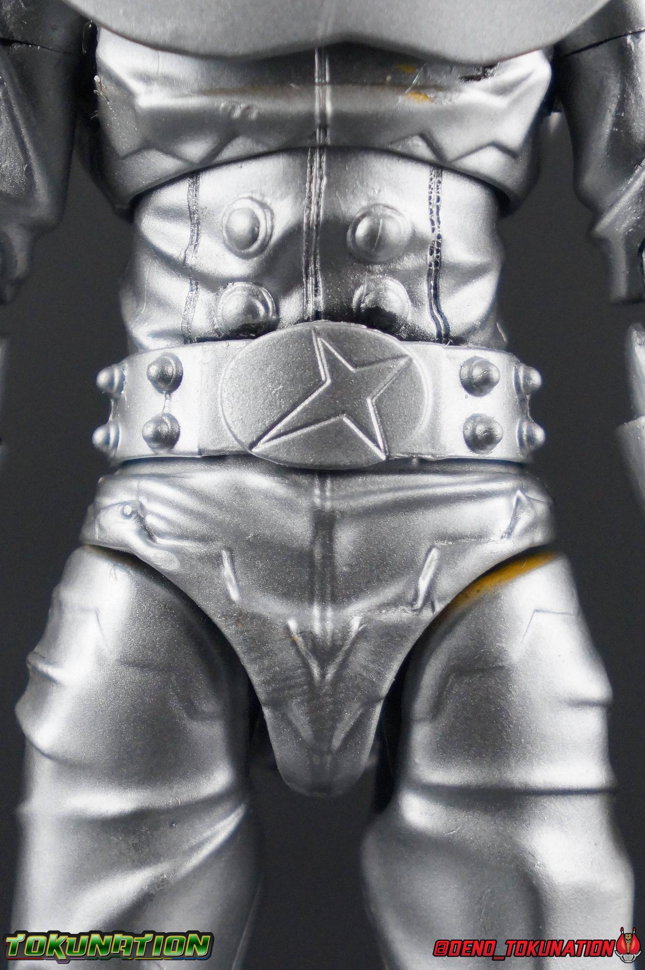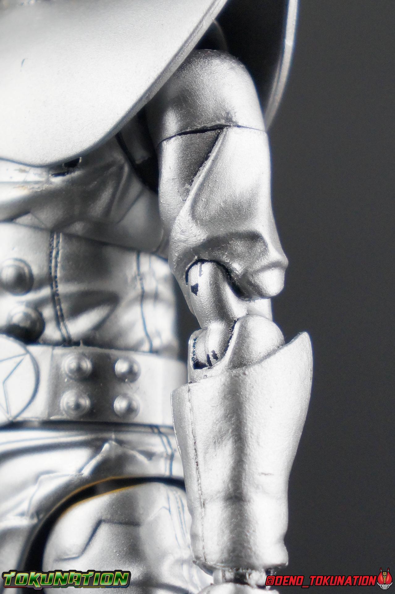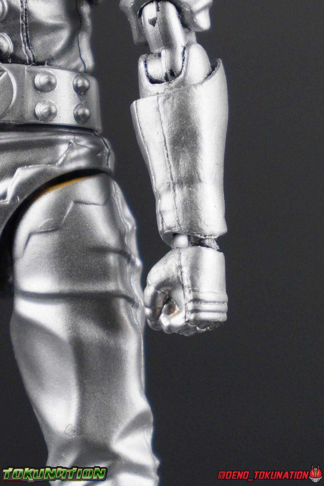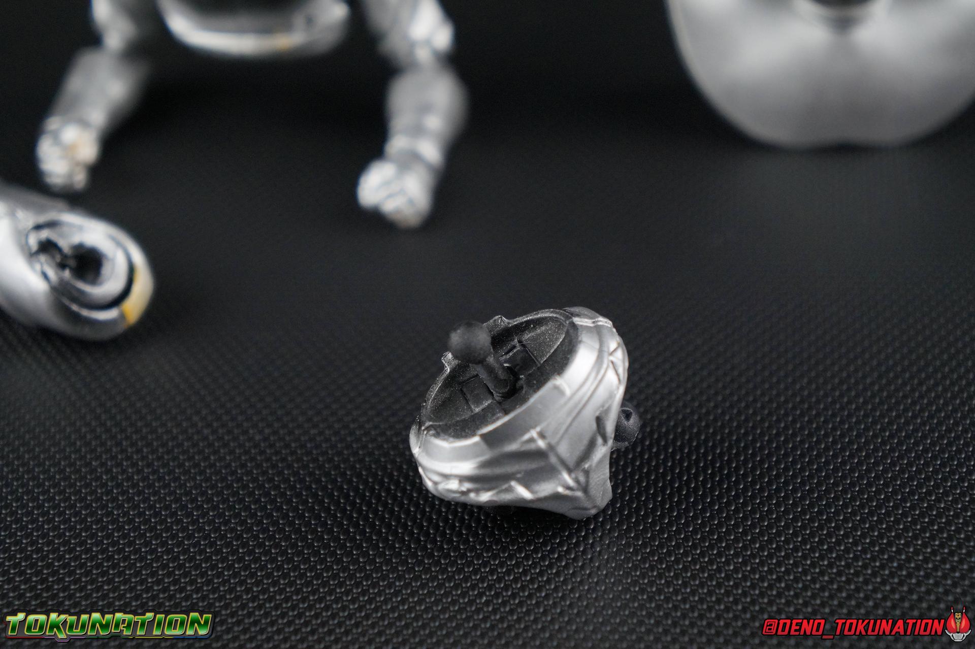 I've had the opportunity to own and review some really rare and unique pieces for this site over the last 7 years. Conventions exclusives, unique limited run releases, even special Lucky Draws. This time though, I have the incredible opportunity to share with you all a look inside the production process that results in a retail product. I've recently come into possession of a Pre-Production Factory Sample of the S.H. Figuarts Hakaider Squad! And I'm here to share a full breakdown of what this figure is and how you can tell. For starters, here's a refresher on the 5 uses of the Hakaider mold we've seen before: - Hakaider - Gill Hakaider - Hakaider Squad (Red, Blue, Silver) With that out of the way, what exactly do I mean when using the terms Pre-Production Sample or Test Shot? The terms Prototype & Mock-Up also get tossed around for things like this, and are probably applicable here. Essentially in this case what we're talking about is a figure that's nearly finalized. It's something that's gone nearly entirely through the production cycle and is very close to going into full scale production at a factory level. Thanks to the Hakaider figuarts that came before them though, most of the pre-production was complete for the Hakaider Squad already. The original S.H. Figuarts Hakaider & subsequent Gill Hakaider release had already gone through this process. To create the three Squad members meant minor revisions to the mold, mostly paint operations, but yes a few small molded details as well. Basically this figure is the original Hakaider version of the mold, without the additions made for the Gill release. And I already know what you're thinking, "someone just painted an old Hakaider silver". At first glance, I would have agreed with you. But upon breaking this figure down to it's components and examining the paint in hand. This simply isn't the case. Here's why. Yes, the entire figure has been painted silver. And while it seems scattershot and lazy at first, this isn't a case where someone just took a can of paint and sprayed this figure. This is a factory quality application of paint, even if it is inconsistent. Compared to the actual Silver Hakaider of the Hakaider Squad the paint has the same finish to it. Now you ask, "why paint it all silver then?" Also a great question. I'm sure by now you've noticed the exposed black plastic underneath some of the paint, on the joints that are exposed when posing, or even yellow paint apps on the thighs and torso breaking through. Well, this silver paint was used (obviously unsuccessfully) as a theft deterrent. It's common practice for samples of this nature to be painted in a similar way to discourage theft. The entire figure has been painted that way, even on top of it's joints. When you disassemble the figure to it's base parts you can see quite clearly the areas where the factory application didn't reach. But the paint is applied in a smooth even way that shows it was done with some intention at the very least. The yellow paint apps you see peeking through indeed come from this being a standard Hakaider used for mock-up purposes for the Squad release. Any new parts crafted for the 3-pack would have been fitted to the original figure first to test comparability. So the yellow from the hips and even fists comes through still. Interestingly you can even see on his abs where black plastic is coming through thanks to how the belt covered those parts during the paint process. This is really telling because the studs on his ab section would normally have silver paint in the final product anyway. In this case though this pre-production sample has these studs in unpainted black plastic. Showing there was likely a small revision to that section at this point. It's quite common for pre-production samples to have finalized factory paint operations applied, or even be hand painted as we often see at Tamashii Nations events. Discerning which of these is the case for the yellow paint apps on this figure isn't possible. But it's clear this figure was mocked up with the intention of showing what the Hakaider Squad would look like, before it was painted silver. The biggest tell as to it's proto/mock-up nature is the small hole drilled through the left section of the chest, just under his chest armor. This is a common feature of Tamashii Nations display prototypes whether they be at actual show events or even in the Akiba Showroom. We see them quite often. This is yet another theft deterrence tactic. It immediately marks a figure in a recognizable way that would usually keep it from exchanging hands. Think of it as the "not for sale" marking of a Figuart. Now as to how you can determine it's a later Hakaider Squad test shot, and not one for the original Hakaider or Gill. That's something you really have to look for and know what you're looking for to determine. In this case the initial giveaway is the arms. An area you likely wouldn't have noticed before now. The upper arm just above the bicep swivel on Hakaider & Gill features a yellow band marking that goes around the arm. This area is molded in and painted over. On this test shot however, what we have is a perfectly smooth surface. Something which is only shared by the three Hakaider Squad figuarts. Pointing to this being an original Hakaider with newly molded Squad biceps for mock-up purposes. While I'm on the arms it also appears as though Tamashii was possibly going to revise the fist size from the previous Hakaiders for the 3-pack release. The left fist is actually smaller than the right, both have partially exposed yellow paint apps on the fingers as well as the exact same design. It's an interesting quirk I didn't note until very far into my work with this figure. Finally, the aspect that really shows the true nature of this figure is the head. You'll undoubtedly notice that it's missing the brain cap. When I came into possession of this figure, no brain cap or any of the other accessories that would normall