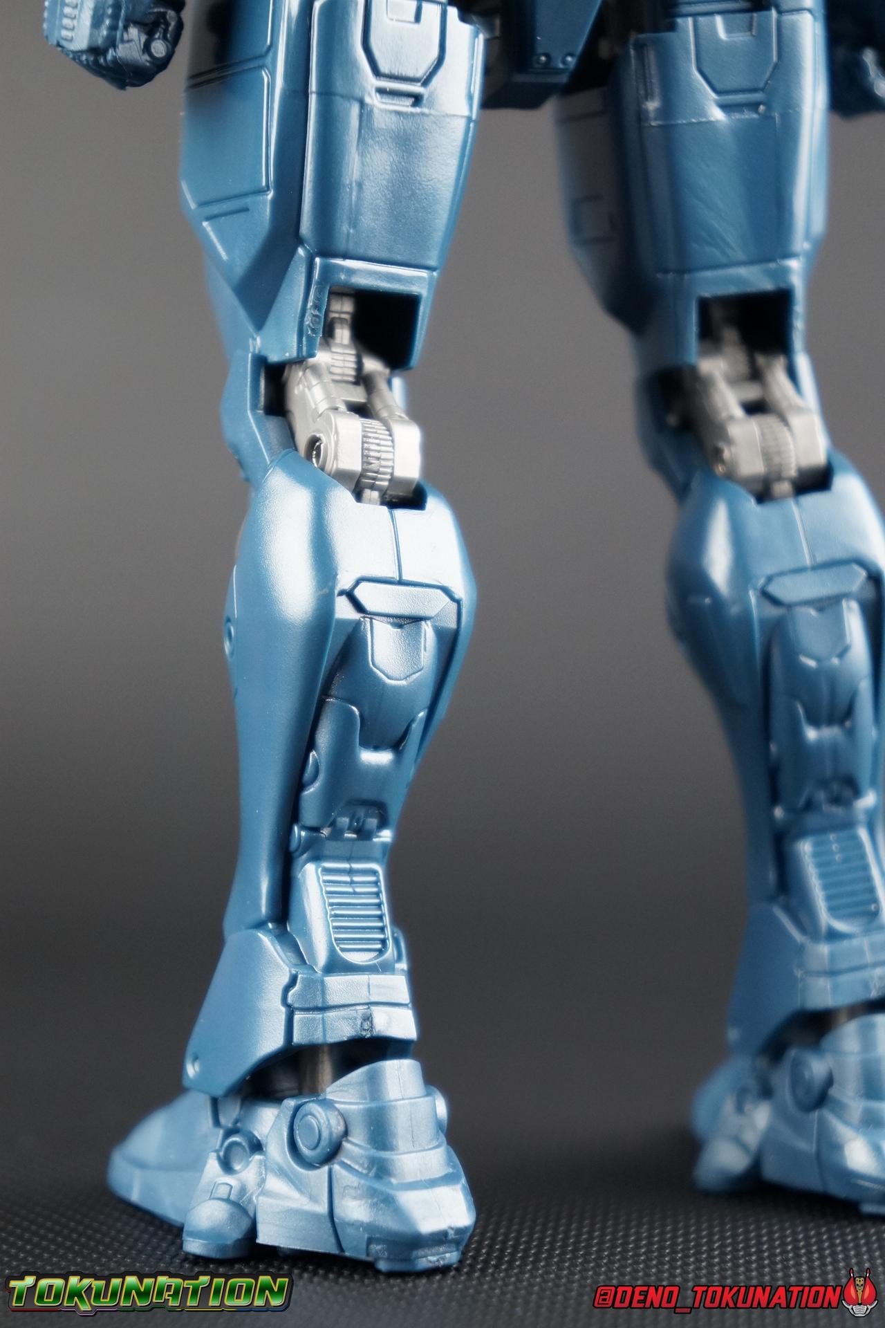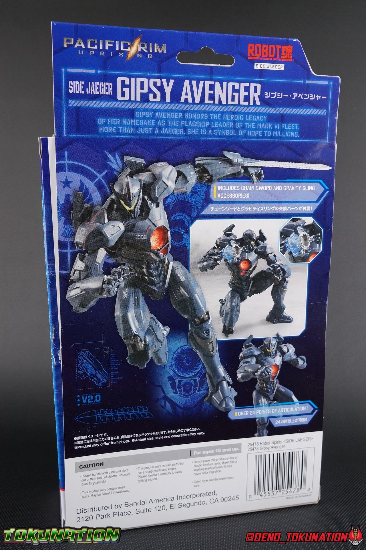Packaging Pacific Rim Robot Spirits are actually going in a totally new direction this toyline hasn't really done before in terms of packaging. Each figure comes in a box with a punched tag to hang it on a retail store hook. It's definitely a new thing for Robot Spirits/Damashii to so openly market these figure at mass market retail. But perhaps their appeal and simultaneous release in both Western & Asian markets contributed to this decision? In either case these boxes are very unique and totally their own thing within the line. Even in regards to how slim and tall they are. I really like this new direction. Main Figure Let me just start by saying, are you kidding me? $20? That's it?! Affordability & playability have always been relative terms for collectors. Typically the more cash you drop, the more functional of a toy you're getting. This is one of those rare instances where an insanely functional toy has been made available at an incredibly affordable price. With that preface out of the way, I think you know my thoughts are going to be very positive. So where to begin? Gypsy Avenger is the first release in the Uprising line from Tamashii Nations and thankfully it's set a high bar. Robot Spirit's aren't something I typically collect anymore but I'm certainly glad to have picked this one up. Gypsy is a very flexible robot with a few caveats that leave it just short of perfect. The way I often see it described (and Uprising in general) is Pacific Rim with more Evangelion. A descriptor that irks me to no end. What I see in Gypsy Avenger, is a much needed streamlining of the over-bulked stereotypical design we saw in Gypsy Danger. This is a sleek and dynamic looking robot for a new generation of heroes. And much of it's dynamism is owed to the implementation of it's leg articulation. For starters, Gypsy has balljointed ankles with a ton of open range thanks to the way the ankle armor is designed around them. You'll find this mech can pull off very wide and stable poses thanks to these ankles and balances very nicely. Another one in the win column is Gypsy's knees which are very flexible, allowing you to bend the leg back far enough that the calf touches the back of the thigh. The hips & waist though are quite an oddity. Each thigh has a rotating section within it attached to the hip ball joint. These rotating sections let you turn the leg in or out, but they themselves are also attached to another balljoint down within the thigh meaning they have even more play to them. Double jointed thighs are not a thing I was expecting. Stranger still is the way the hip balljoints are attached to the interior of the waist on a shared gray panel. One which move's independently of the blue waist/crotch itself. This entire assembly can swing in and out of both sides of the waist allowing for maximum movement. Lining things back up perfectly can be a pain, but I will never complain about excellent articulation. All of these features add up to some incredible legs as whole. The upper body, while not as dynamic, is sculpted beautifully. We get the traditional upper and lower torso pieces, the upper body on a "floating" joint Allowing you to rotate it within about a 90 degree range. You can basically get Gypsy looking directly sideways thanks to this joint. The reactor in Gypsys chest is also cast from a really nice clear orange plastic that can capture light very well, giving it a sort of glow. The ab section is attached to the waist so it won't move independently, but still looks great. On Gypsys' back there are some peg holes that you can plug his shoulder wings/binders into, to complete the basic look out of box just go ahead and throw them on. I actually really appreciate this upgrade to the design over the Danger. No more big dumb bulky shoulder and back armor, just nice streamlined shoulder blade protrusions. These remind me of many a super & real robot from the 80's. Gypsy's arms to leave a little bit to be desired. In a similar fashion to the thighs, the shoulder joints are double jointed. There's a ball joint in the shoulder and one within the upper arm giving you an exceptional range of motion up and down. The issue lies in the way the shoulder pads have to maneuver between the torso armor and wing binders on the back. Depending on how far up or down the arms are positioned and where the shoulder plate is at the time, it can be a little difficult to give the arm proper clearance. Because of this armor you do lose the potential to extend the arms straight out to Gypsy's sides which is a shame to me. To the side you're limited to about 45 degrees, pointing forward the arms only get about 30 degrees of movement. Luckily a swiveling bicep helps alleviate some issues with posing. We also thankfully get a double jointed elbow, which is a by-product of the toys ability to swap forearm weapons. I should mentioned removing the forearms is quite easy to do. The wrists are the only other real letdown of the arms. The wrist guards block the hands just enough to impact the fists and keep them from getting in a few standard poses. "And I'll form the head!" Gypsy Avengers head is the last component to touch on. As with the rest of the design, I find the sleeker version of Gypsy Danger's head very preferable. Avenger has a very super robot-esque looking head that puts me in mind of the occasional frame of Ginrai from Masterforce because of the small antennae protrusions on the side. Like the arms and legs, the neck is on a double ball joint. So you get movement within the chest and at the neck joint. And there's only minimal impact with any of the armor around the head to worry about. Overall this is a very well balanced (in more than one sense) figure. Excellent articulation, combined with a fantastic design, and solid paint apps, and an unbelievable $20 price point makes this one hell of a great figure. The dark ages of NECA are finally over for Pacific Rim. I've included a shot with NECA's battle damaged Gyps
