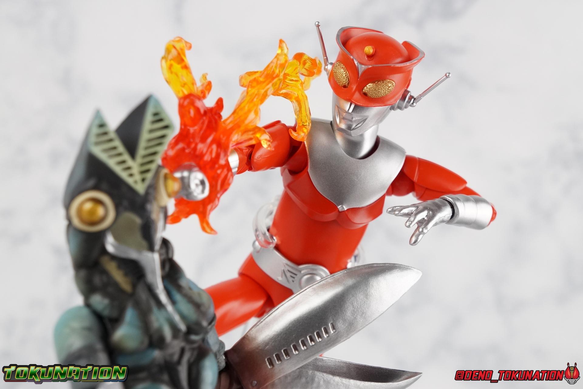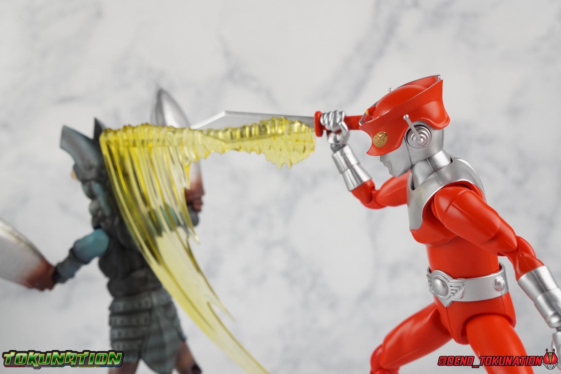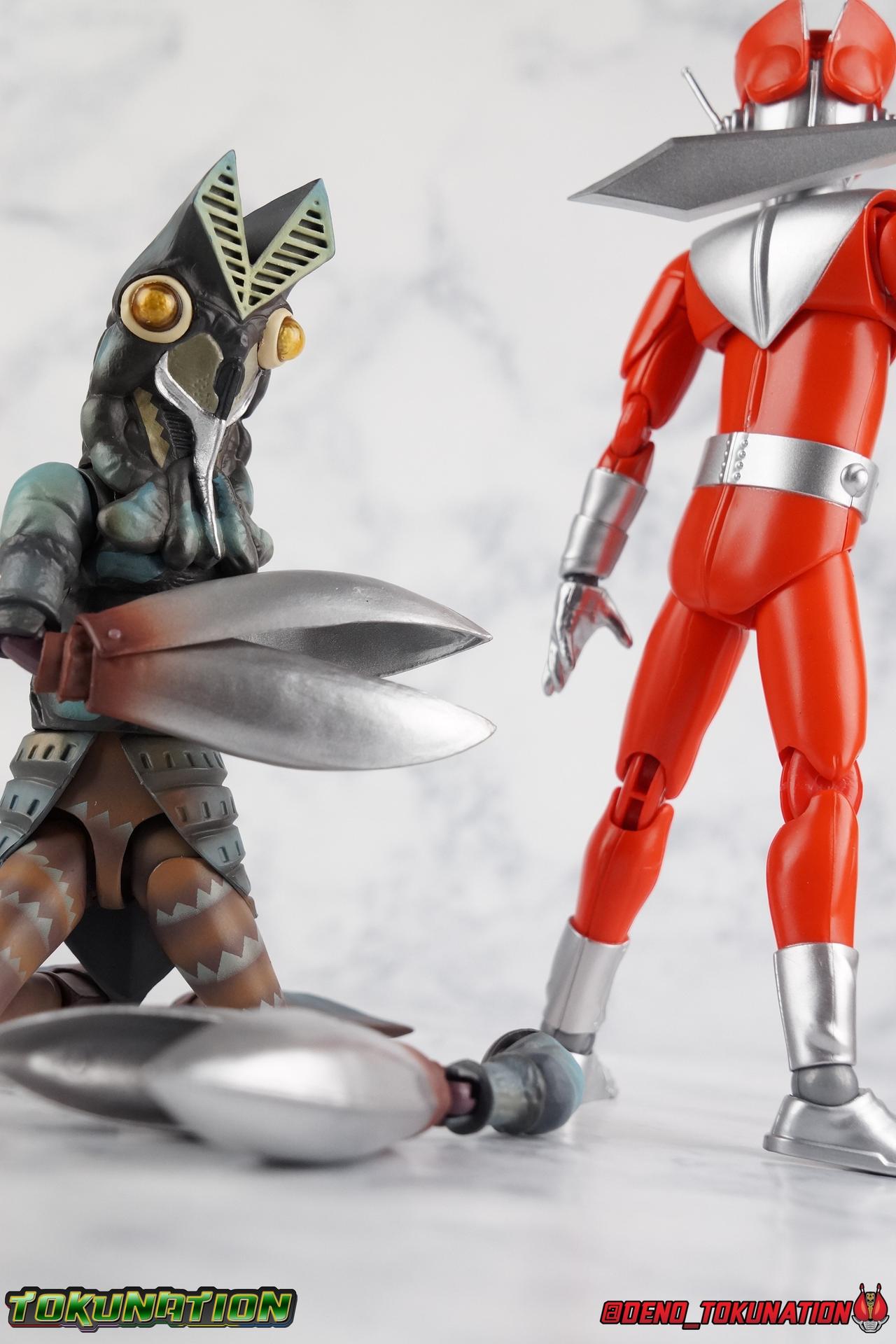 One of the most violent and obscure heroes in history, Redman hails from his own short lived 1972 micro-series. Consisting of 138 5-minute "Battles", Redman would nearly always face off against re-used Kaiju suits from the Ultraman franchise. A few other odd monsters from other Tsuburaya productions would occasionally appear as well. But what Redman is so well known for, is the unceremoniously violent way in which he would attack, beat, and destroy these Kaiju. Each episode sees him viciously attack and ultimately kill his enemies, sometimes even just with the brute force of his kicks & punches alone. The series regained notoriety in 2016 thanks to Tsuburaya streaming it in it's entirety one episode at a time on their youtube page. Since then, Tamashii Nations expressed interest in producing a figure of the character back in October 2016, but more recently Evolution Toy has finally done so. Revitalizing their own defunct tokusatsu heroes collector line, Evolution has begun the Hero Action Figure (HAF) line. Though many figure prototypes have already been seen, and several been made available for pre-order, the first release in the line only came out about a week ago. So without further adieu we present this (brutally honest) gallery & review, of HAF Redman. Main Figure Alright. So this is not only the first figure in a brand new line, but also, the very first fully poseable figure of Redman ever. This obscure old psycho has never had this kind of collector treatment before. Vinyls are the primary extent of any Redman toys that existed prior to this release. So in one sense this figure needed to set the bar high to set a precedent for this new toyline. In another sense it needed to set the bar high because it's the first poseable/collector oriented figure this character has ever received. Sadly, and somewhat expectedly, this figure fails in most any sense. First, a brief history of Evolution Toy. This company has been around for quite some time, technically. A large chunk of their history comes from their time as the long gone company CM's Corp, which filed for bankruptcy in 2014. The company as it is now is mostly known for it's long running Dynamite Action line, which has made use of a system of magnet's allowing for fluid posing and interchangeability. In the waning days of CM's, quality control had already become somewhat suspect. One would think that a new company rising from this like Evolution Toy would potentially improve on this. However in recent years Evolution has also produced sub-standard figures. Macross collectors have experienced this with their lackluster VF-2SS release. Their recent Mospeada Legioss is similarly plagued with issues. Their older toku hero figures that predate HAF, like Zone Fighter & Iron King were some of the most disappointing 6" scale collector figures on the market for their time as well. My point is this company has had many many misses in it's time. My point in going over the troubled production history of this company has hopefully prepared you for what's to come. The HAF line is essentially an attempt to copy Bandai's now defunct Ultra-Act series of Ultraman releases, but instead focusing on the obscure Tsuburaya heroes that are largely (except Gridman) forgotten these days. Redman is a unique choice because of his cult status. And boy the figure itself is sure unique alright. The overall plastic quality of this release feels very, old? When I say Evolution was specifically going for Ultra-Act and not the newer S.H. Figuarts Ultras I meant it. The plastic feels like the same hard inflexible material old Ultra-Acts were made of, and the joints are the same kind of mixed bag. For starters, Redman actually has some really wide flat feet that can be useful for posing. Honestly they're too big though, looking more like clown shoes than anything. The ankles are actually on pretty free moving balljoints that allow the foot to move pretty far up and forward and back. This combined with tight toe bends give Redman a decent bit of stability, though the ankles are quite loose. The knees are where big problems begin. The can't even quite make a 90 degree angle. While jointed on both ends of the knee, there just isn't much room before the back of the leg impacts itself. So that's bad right? Well, the hip is in the exact same situation. You can pull the hip down and out ever so slightly, but even this part can barely hit 90 degrees. And the hips can't move out very widely either. This is a real detriment to getting Redman into any great dynamic poses that don't just look terrible. Redman was a crazy dynamic fighter. Because of the shows low budget, the titular character had to do a ton of hand to hand combat and got very active. The figures' inability to replicate even a fraction of that energy is saddening. While the legs are a mixed back, the torso is more disappointing. While clearly two pieces, the lower & upper torso hardly move. They may as well be one giant part. The lower half can't move at all, the upper body actually can, but it's on a dangerously tight joint. I'm fairly certain if I apply any more force it'll break. And even when you can get it to move, rather than staying where you put it, the whole thing just snaps back in place. Moving it makes a really nasty plastic scraping/squeaking noise as well, and plastic shavings have been falling out of the torso on mine after moving it. The takeaway here is that it's a poorly designed joint and using it will likely cause damage. If there was just some room to lean the upper body left or right and give him a more natural bend, then you could get some decent poses out of Redman. These are real issues this figure has, but by far the biggest let down of it is the arms. LITERALLY, as soon as I opened my Redman, his left arm fell apart entirely. Essentially the arm is held together with one peg in the bicep. It's supposed to plug into the bicep with a piece of shoulder armor around it from the shoulder joint.