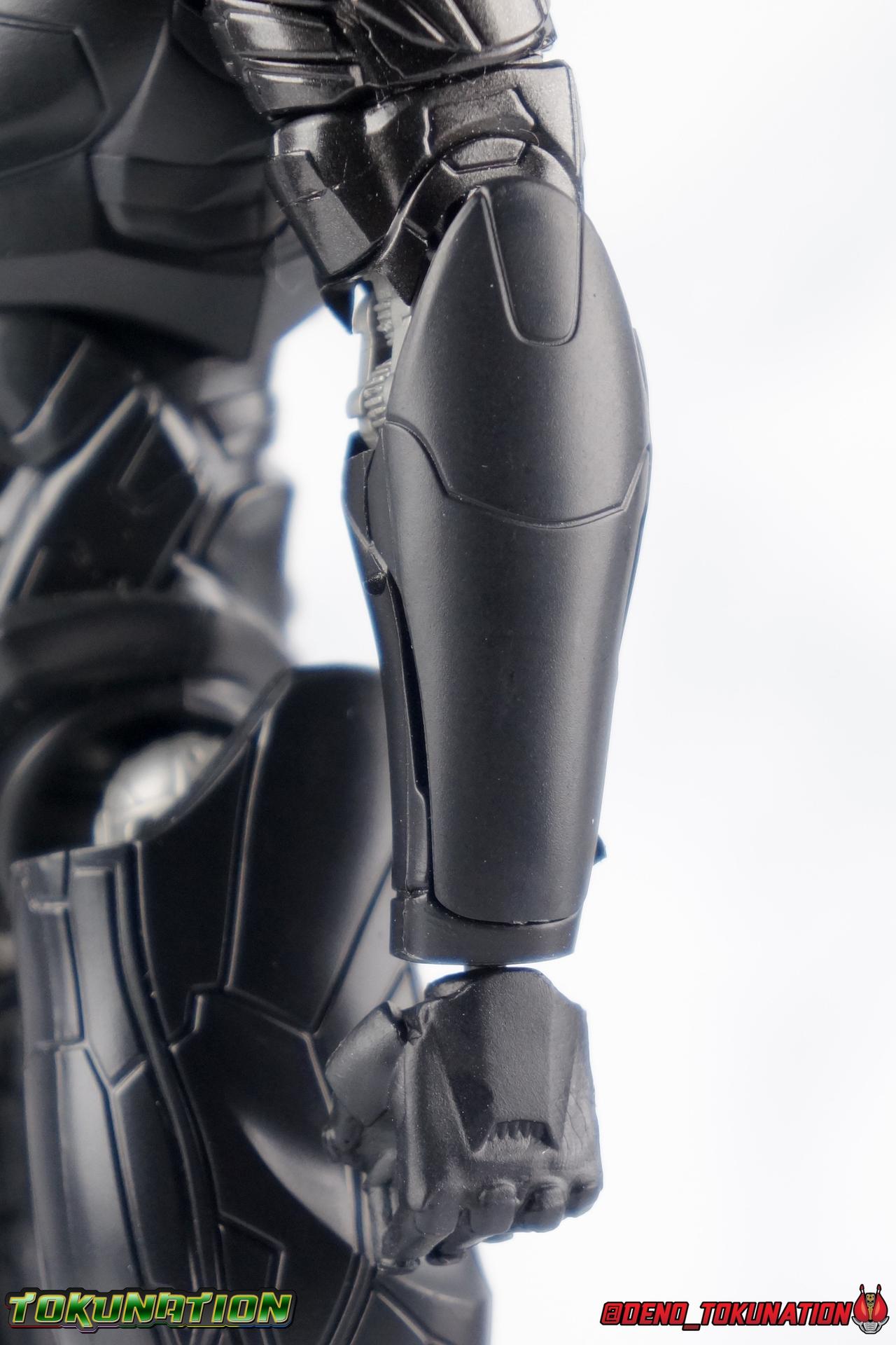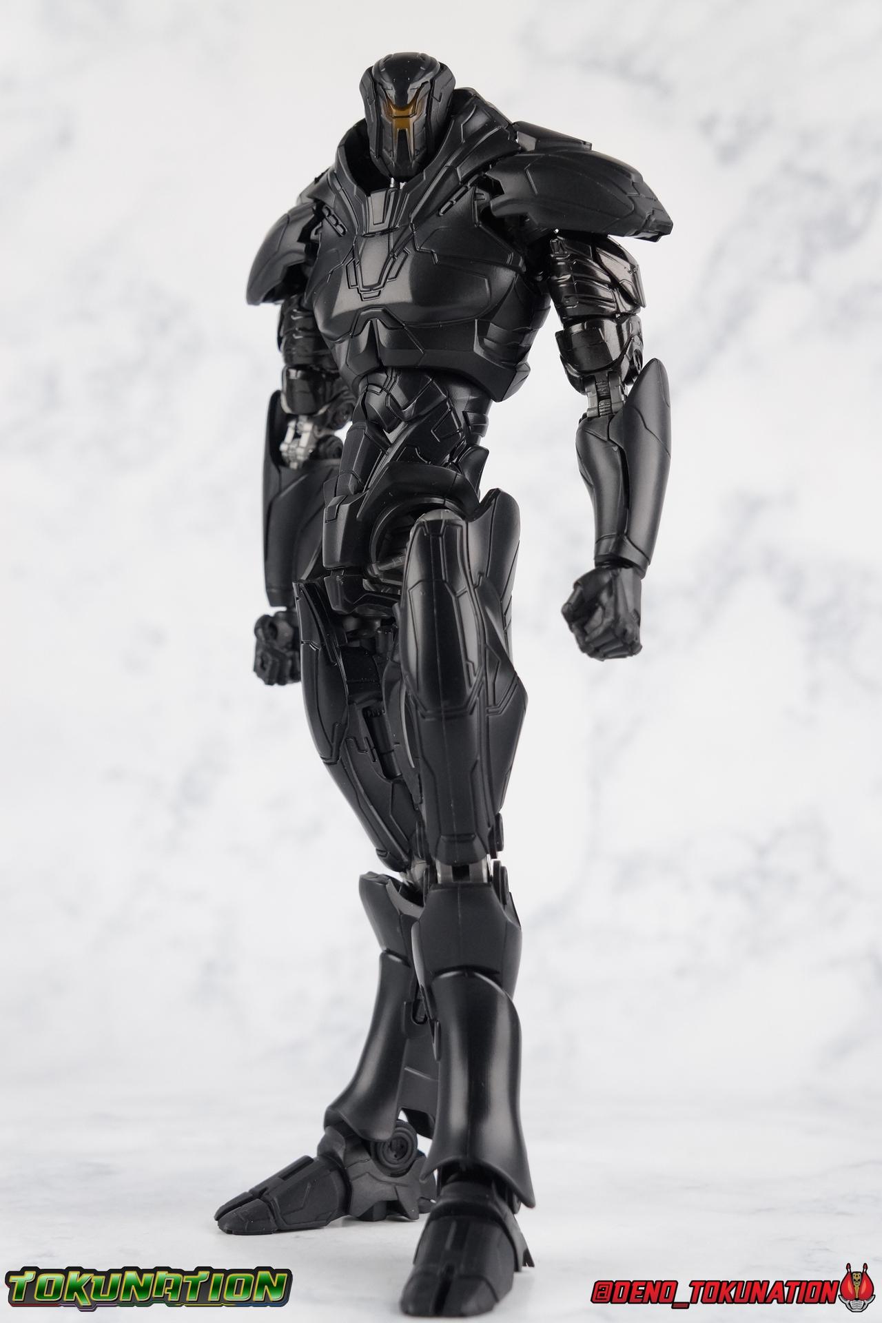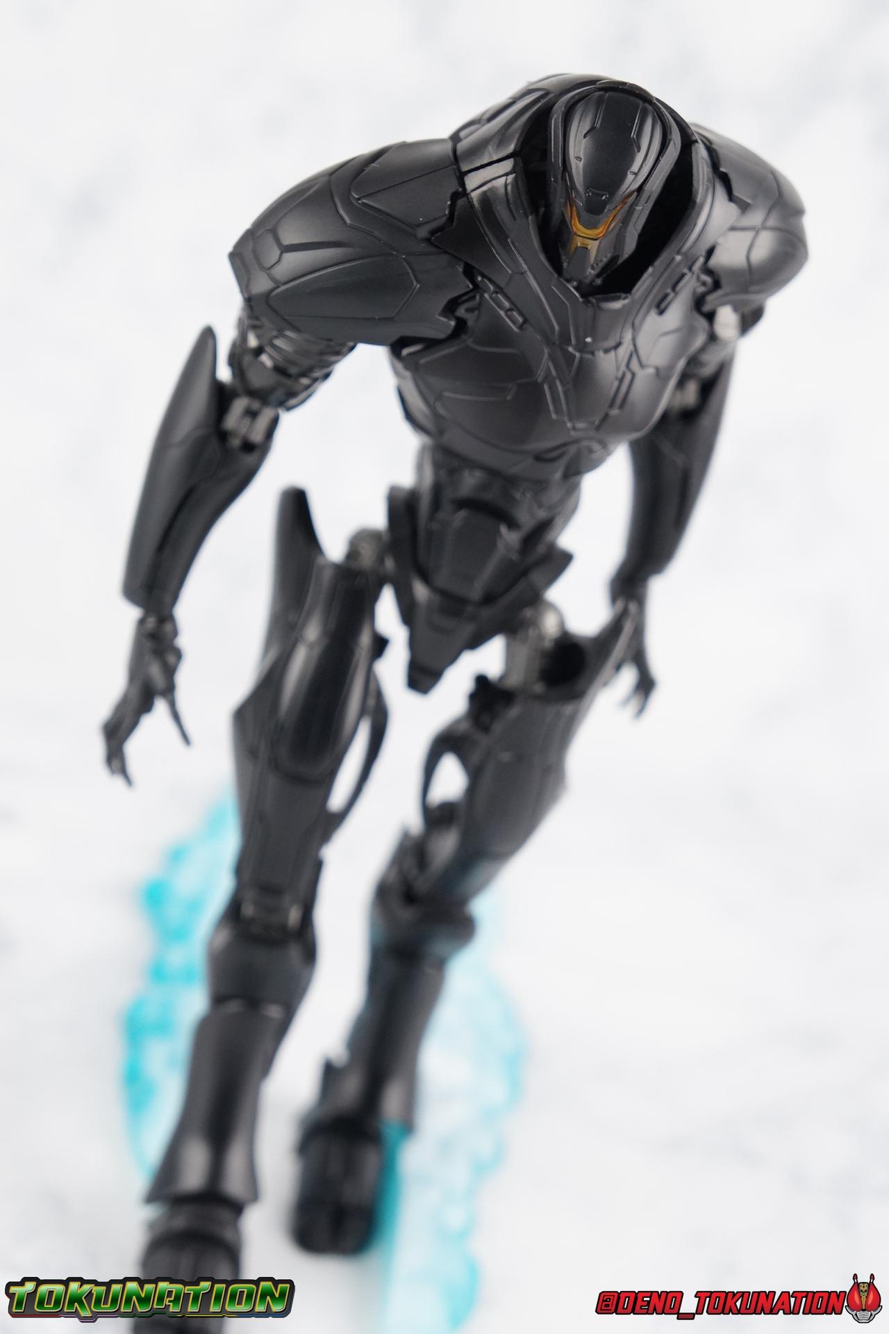 In the years' long war against the Precursors & their weapons of mass destruction, the Kaiju, the Pan Pacific Defense Corps has continued to develop newer and better Jaegers. And while a Drone program is also under development by Shao Industries to eventually replace the PPDC & it's pilots, the occasional rogue element does arise. Enter: Obsidian Fury. A mysterious Jaeger which rose from the ocean to battle Gipsy Avenger. Equipped with advanced weaponry and capable of entirely inhuman movement, this monstrous mech is a force for our heroes to reckon with. Can Jake & Nate uncover the secret truth of Obsidian Fury? You'll have to watch Pacific Rim Uprising to find out! ** Beware, there be spoilers ahead! If you'd rather not be spoiled on some minor elements of Pacific Rim Uprising then I wouldn't read my review too thoroughly. Packaging As I mentioned with Gipsy Avenger, Pacific Rim Robot Spirits have gone in a totally new direction this toyline hasn't really done before in terms of packaging. Each figure comes in a box with a punched tag to hang it on a retail store hook. It's definitely a new thing for Robot Spirits/Damashii to so openly market these figure at mass market retail. But perhaps their appeal and simultaneous release in both Western & Asian markets contributed to this decision? In either case these boxes are very unique and totally their own thing within the line. Even in regards to how slim and tall they are. I really like this new direction. Obsidian Fury is also the first, and so far only, evil Jaeger in the line so his packaging get's some extra red accenting that the others don't. Main Figure Literally and figuratively, Obsidian Fury is an entirely different beast from Gipsy Avenger. Gipsy served as a modernized update, a streamlined version, of the Gipsy Danger. Obsidian Fury isn't really bound by any such nostalgia and is therefore a bit more free to embrace it's alien nature. As a figure, this means that Obsidian is incredibly poseable and has very few of the limitations the other figures in the line have had. Like I said, Obsidian Fury is quite alien, and a lot of the design choices for the figure reflect it's inhuman nature. Much like Gipsy, Obsidian has really nice ball jointed ankles with plenty of range in all directions. They can even spin a full 360 degrees. I really really like the small details on this guy that set him apart from the more human like Jaegers, like his two-toed feet that remind me of like a mechanoid ninja. By far the thing that sells the alien-ness of Fury the most is the knee joint. It's designed in such a way that you can purposefully hyper extend it back, so far that the calfs wind up in an entirely different line of sight from the rest of the body when you look from the side. This kind of free movement makes for some insane posing potential. This guy cans trike a pose, and hold it. The waist & hip area is designed in much the same way as Gipsy. Each thigh has a rotating section within it attached to the hip ball joint. These rotating sections let you turn the leg in or out, but they themselves are also attached to another balljoint down within the thigh meaning they have even more play to them. Double jointed thighs are a welcome feature. The hip balljoints are aslo attached to the interior of the waist on a shared gray panel. One which move's independently of the black waist/crotch itself. This entire assembly can swing in and out of both sides of the waist allowing for maximum movement. Lining things back up perfectly can be a pain, but all of these features add up to some incredible legs as whole. The torso is also similarly designed to Gipsy. The lower half is one piece connected to the waist so there's no joint to make it move. Only the upper body floats on a ball joint. But thanks to how slender the lower half is, you can literally spin the upper body completely around, a full 360 degrees. The forward & back movement leaves a bit to be desired, but I'm not terribly displeased. As with Gipsy, Fury has some pretty poorly designed shoulders. In this case much more poorly. Underneath those giant shoulder pads is a very spindly looking balljoint that sticks out and attaches to the bicep. Weirdly enough, there's no true bicep swivel in the arm, but rather right above the bicep where it attaches to the balljoint, is a swivel. This can make using the arms a bit more awkward than I'd like. I'm assuming the joint was placed there because the giant shoulder pads make it look like there's more mass to the upper arm than actually exists. The movie's CG model could certainly make this work, but in physical toy form it's a bit more difficult to cheat that. The elbows are fairly standard like Gipsy, and the wrist joints are just the same. Though Obsidian's end to pull the joint completely out every time you change hands. And those big shoulder pads I keep mentioning? They're on some weird peg joint that lies on the tip of the shoulder blade. You would think this means they could rotate up and back to free up the arms some, but they actually don't function very well at all. This brings us to that beady little head of Obsidian Fury's. Set down a bit more into the shoulders of the figure it actually has a bit more range than I'd thought. Double jointed like Gipsy, Obsidian can angle his out to the sides quite nicely and stick his head out and forward menacingly as well. The only issue being backward movement where you always run into the neck cuff. Overall this is an exceptionally well articulated figure. But the lack of the neon orange light details that the movie model has can make this guy just blend together visually. There's a ton of uniquely sculpted detail everywhere that hasn't been painted properly and thus makes the figure seem really bland. Accessories Like Gipsy Avenger, Obsidian Fury comes with the bare minimum of what he needs, but thanks to the higher price point, it feels a bit less like a good deal. 2 - additional hands. Just a pair of