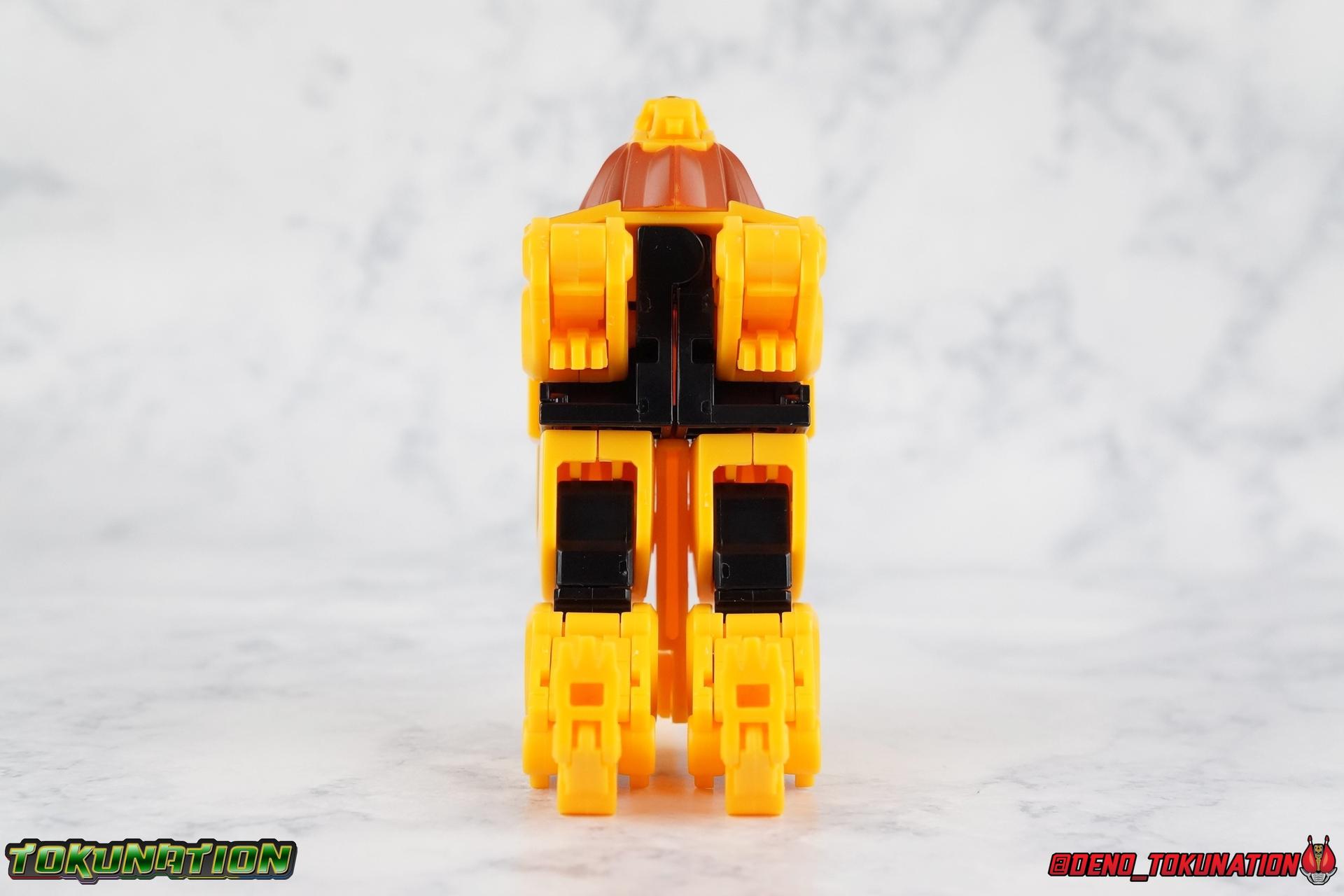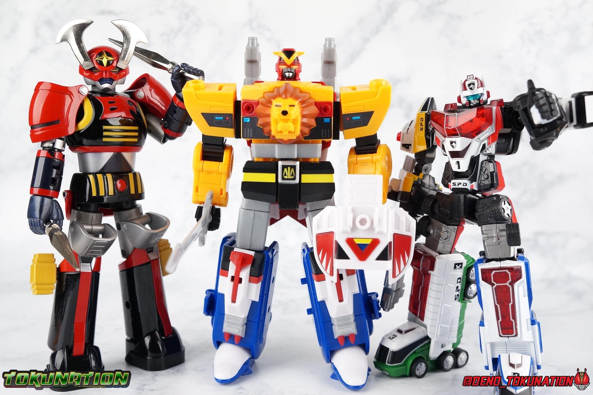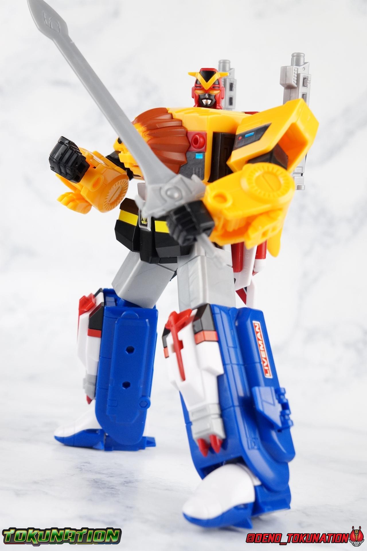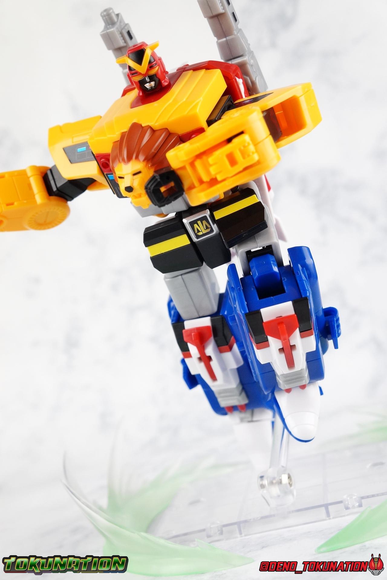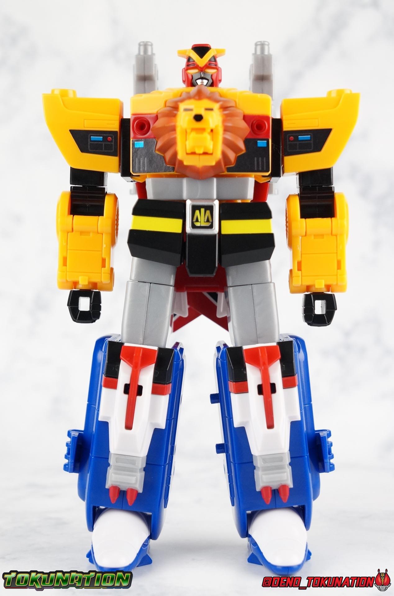 Now for the main event, Live Dimension! By far the greatest strength of the Super Minipla line is it's ability to recreate combined robots so excellently. You get a great functional toy with some fantastic proportions and accessories. Unlike many minipla of the past, you can also get around most part swapping for the transformations. In Live Robo's case, a mere 3 parts are removed and totally set aside for this transformation. Only the plugs that cover the knee plugs on Sky Machine and the tail from Land Machine are left over in the end. I've included step by step photos to show you how to get from each individual machine into the parts you need. While I think those images can speak for themselves I do want to mention a couple of fascinating things about the combination that I love. First, the way the lower half of Sky Machine slides down to accommodate the Land Machine chest, then slides back up to lock it in place and hide Land Machine's front legs just blows my mind. Likewise the way in which Land Machine's legs rotate out on that shared black joint within the chest is just incredible to me. The way it moves is just so fluid it's hard to believe this is a minipla. Once you've assembled Live Robo, you have one hell of a fun little figure. Without getting into the weapons yet, Live Robo is a great and poseable action figure in it's own right. The feet have side tilting joints thanks to how the feet are built, while the ankles can tilt forward and back too. Because of the nature of joints in the thighs we also get a nice knee joint connected to Aqua Machine that extends out it's main body. Then there's a mid-thigh swivel as well as a rotating hip joint. Now the hips are TIGHT, scary forceful on my Live Robo. Just be wary. All of this adds up to some extraordinary articulation in the lower body. This thing can stand on one leg with the other wrapped around it's back even. Despite it's complicated assembly even the torso can rotate pretty freely. The shoulders are each on a sort of butterfly joint that allows them to move very high up (at the cost of looking a bit inaccurate) but the arms can also swing out quite wide. Now for my one big complaint, the elbows have almost no range. Mostly because they have to accommodate the way the lion legs transform, they can only rotate forward about a quarter turn before they impact the opening forearm panel. The rotating biceps and fists can help alleviate some of this but it's still imperfect. Finally the head is on a small but useful balljoint that allows it to move a lot more than it appears at first glance. Able to spin around completely and angle up or down just a bit goes a long way to helping create personality for this mecha. Now for weapons. Live Robo comes with a shield formed from Sky Machine called the Live Shield. A square peg on the handle allows it to fit snugly into either hand of the Live Robo and it's hinged to pose it out of the way. We also get the mighty Chojuken or Super Beast Sword. Oddly this accessory isn't painted nor are there stickers included for it so the hilt remains in accurate. I don't paint or panel line or do anything outside of what the stock instructions give me for model kits. I like to straight build everything, that's just the way I am and I'll always be. If you've ever seen Gundam Build Fighters, think of me like Straight Build Shimon. I don't feel like I should have to recreate missing details they should simply be there, and I'm not particularly good at it either. So these little inaccuracies are frustrating, but not deal breaking. Final Thoughts Super Minipla is a revolutionary toyline for Super Sentai. As someone who typically collects DX toys, Robot Damashii, S.H. Figuarts, and Chogokin type figures, I was not prepared to be up for another toyline. But the chance to own a classic design like the Live Robo in an affordable way was something I couldn't pass up on. And I'm glad I didn't. If Bandai keeps it up and does more pre-Zyuranger mecha then I may actually be all in on this line. For now, I'm extremely please with how Super Minipla Live Robo has turned out.