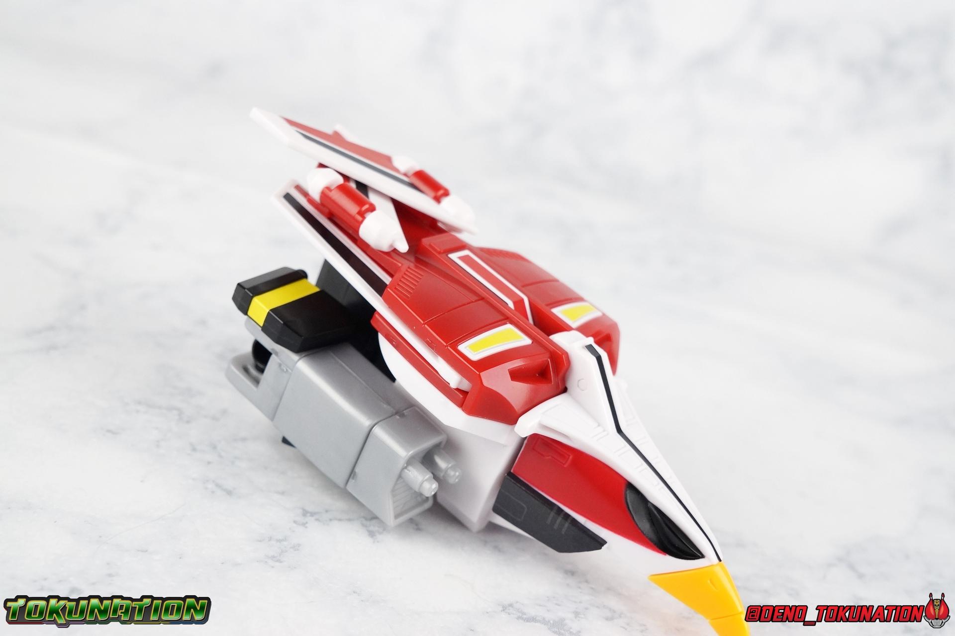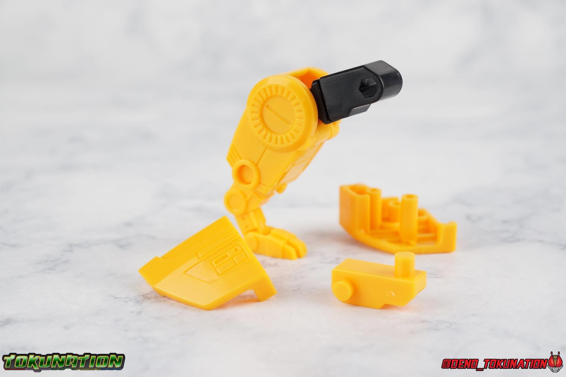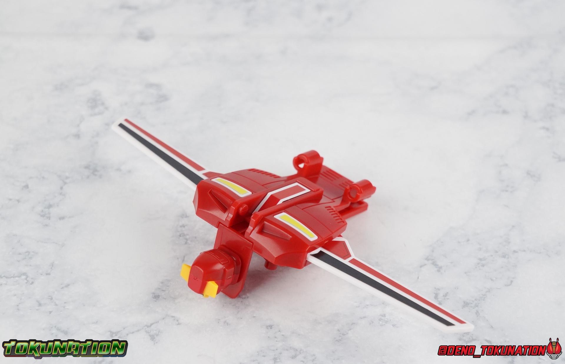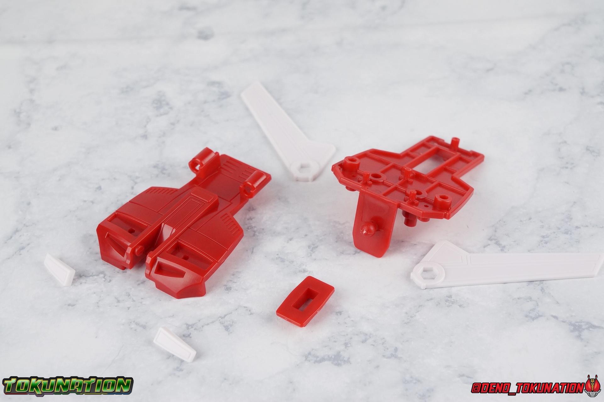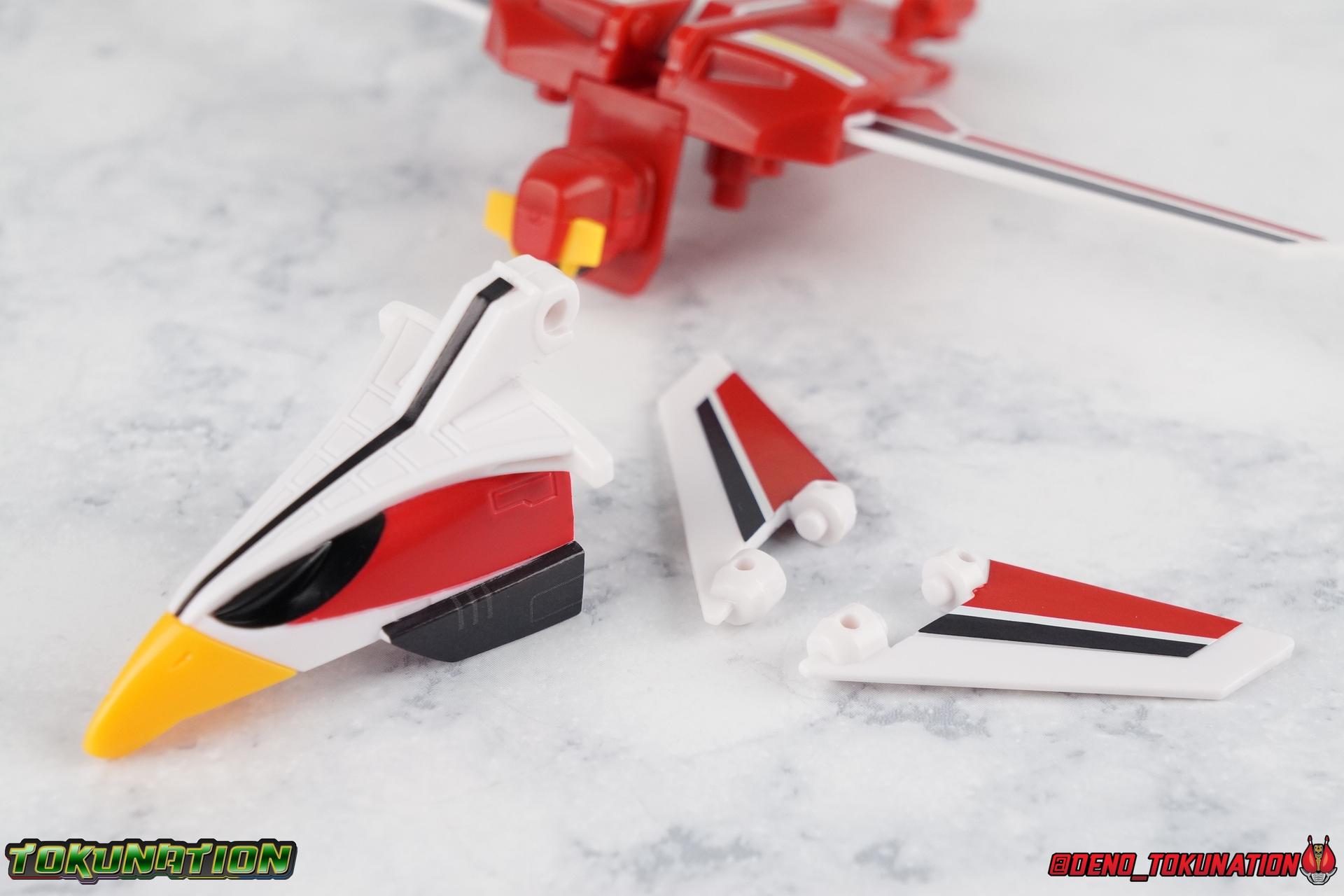 Now for the main event, Live Dimension! By far the greatest strength of the Super Minipla line is it's ability to recreate combined robots so excellently. You get a great functional toy with some fantastic proportions and accessories. Unlike many minipla of the past, you can also get around most part swapping for the transformations. In Live Robo's case, a mere 3 parts are removed and totally set aside for this transformation. Only the plugs that cover the knee plugs on Sky Machine and the tail from Land Machine are left over in the end. I've included step by step photos to show you how to get from each individual machine into the parts you need. While I think those images can speak for themselves I do want to mention a couple of fascinating things about the combination that I love. First, the way the lower half of Sky Machine slides down to accommodate the Land Machine chest, then slides back up to lock it in place and hide Land Machine's front legs just blows my mind. Likewise the way in which Land Machine's legs rotate out on that shared black joint within the chest is just incredible to me. The way it moves is just so fluid it's hard to believe this is a minipla. Once you've assembled Live Robo, you have one hell of a fun little figure. Without getting into the weapons yet, Live Robo is a great and poseable action figure in it's own right. The feet have side tilting joints thanks to how the feet are built, while the ankles can tilt forward and back too. Because of the nature of joints in the thighs we also get a nice knee joint connected to Aqua Machine that extends out it's main body. Then there's a mid-thigh swivel as well as a rotating hip joint. Now the hips are TIGHT, scary forceful on my Live Robo. Just be wary. All of this adds up to some extraordinary articulation in the lower body. This thing can stand on one leg with the other wrapped around it's back even. Despite it's complicated assembly even the torso can rotate pretty freely. The shoulders are each on a sort of butterfly joint that allows them to move very high up (at the cost of looking a bit inaccurate) but the arms can also swing out quite wide. Now for my one big complaint, the elbows have almost no range. Mostly because they have to accommodate the way the lion legs transform, they can only rotate forward about a quarter turn before they impact the opening forearm panel. The rotating biceps and fists can help alleviate some of this but it's still imperfect. Finally the head is on a small but useful balljoint that allows it to move a lot more than it appears at first glance. Able to spin around completely and angle up or down just a bit goes a long way to helping create personality for this mecha. Now for weapons. Live Robo comes with a shield formed from Sky Machine called the Live Shield. A square peg on the handle allows it to fit snugly into either hand of the Live Robo and it's hinged to pose it out of the way. We also get the mighty Chojuken or Super Beast Sword. Oddly this accessory isn't painted nor are there stickers included for it so the hilt remains in accurate. I don't paint or panel line or do anything outside of what the stock instructions give me for model kits. I like to straight build everything, that's just the way I am and I'll always be. If you've ever seen Gundam Build Fighters, think of me like Straight Build Shimon. I don't feel like I should have to recreate missing details they should simply be there, and I'm not particularly good at it either. So these little inaccuracies are frustrating, but not deal breaking. Final Thoughts Super Minipla is a revolutionary toyline for Super Sentai. As someone who typically collects DX toys, Robot Damashii, S.H. Figuarts, and Chogokin type figures, I was not prepared to be up for another toyline. But the chance to own a classic design like the Live Robo in an affordable way was something I couldn't pass up on. And I'm glad I didn't. If Bandai keeps it up and does more pre-Zyuranger mecha then I may actually be all in on this line. For now, I'm extremely please with how Super Minipla Live Robo has turned out.