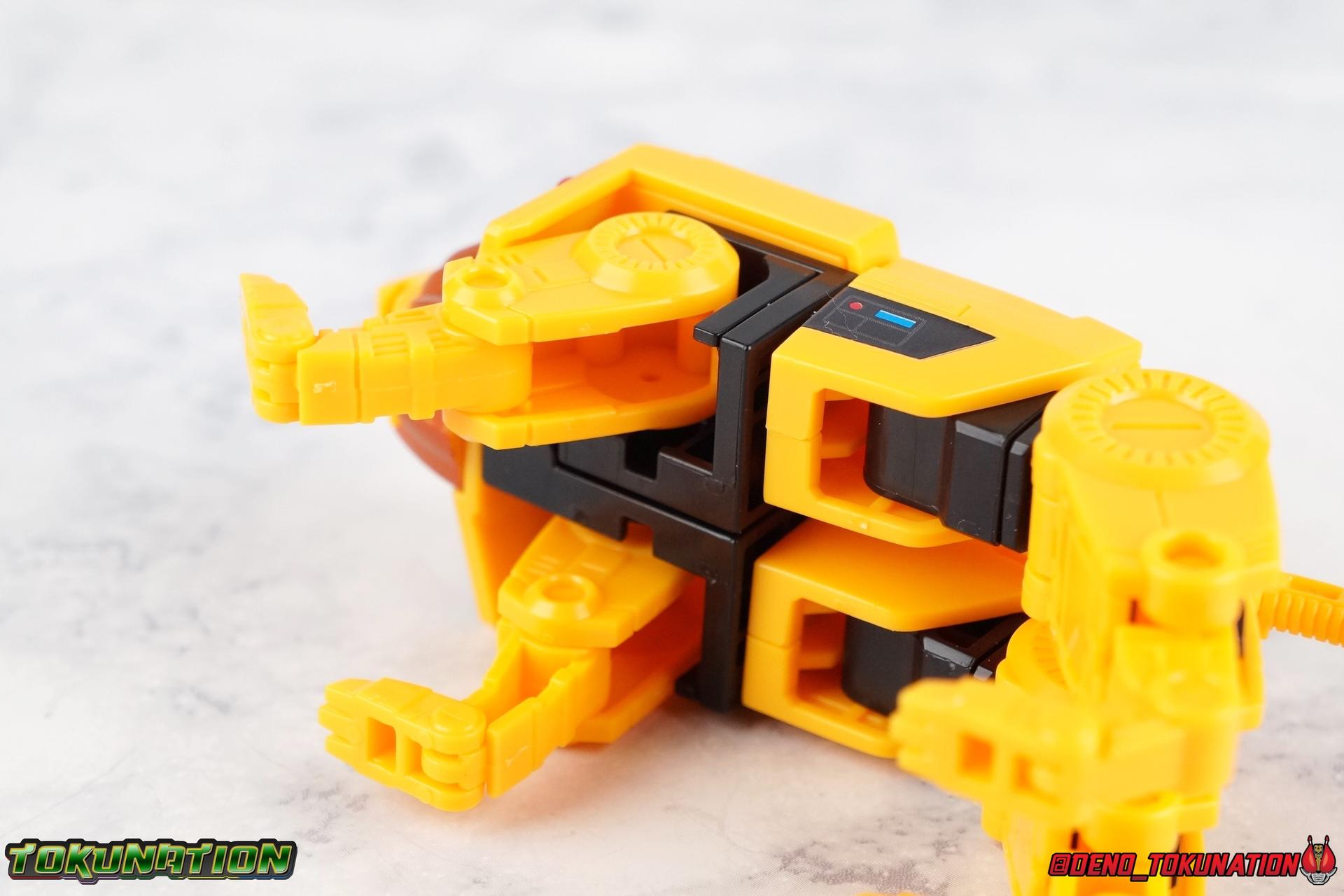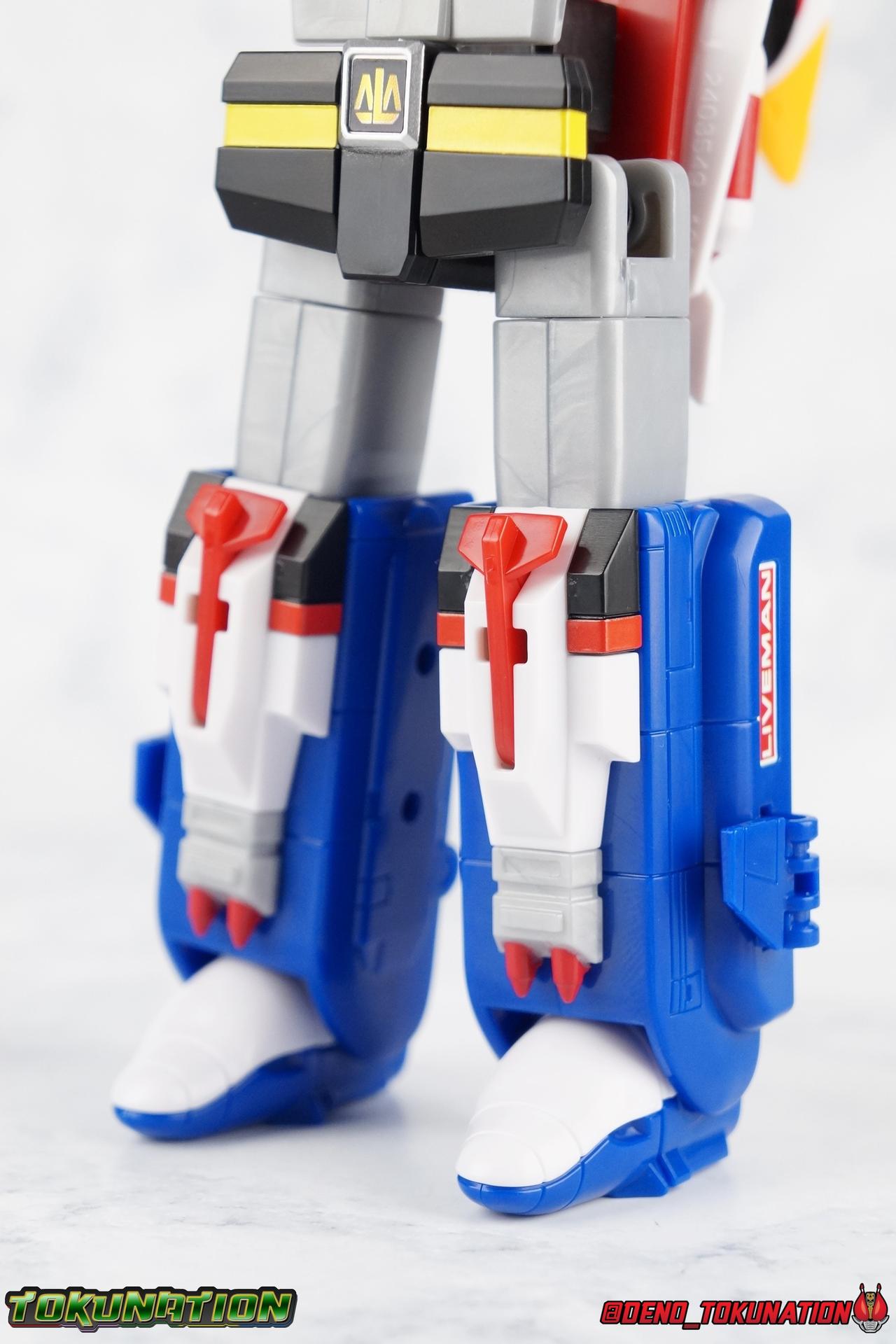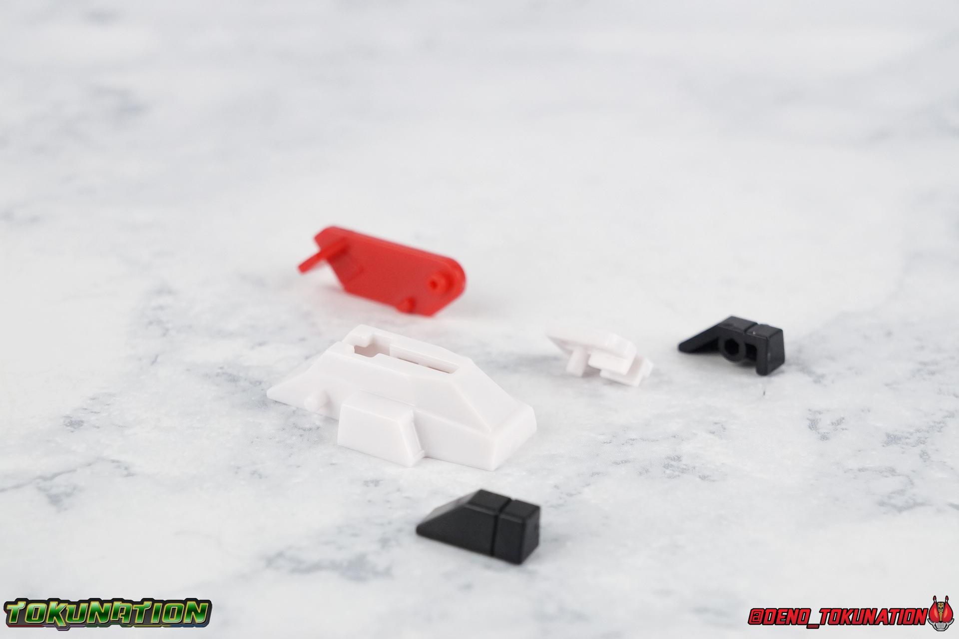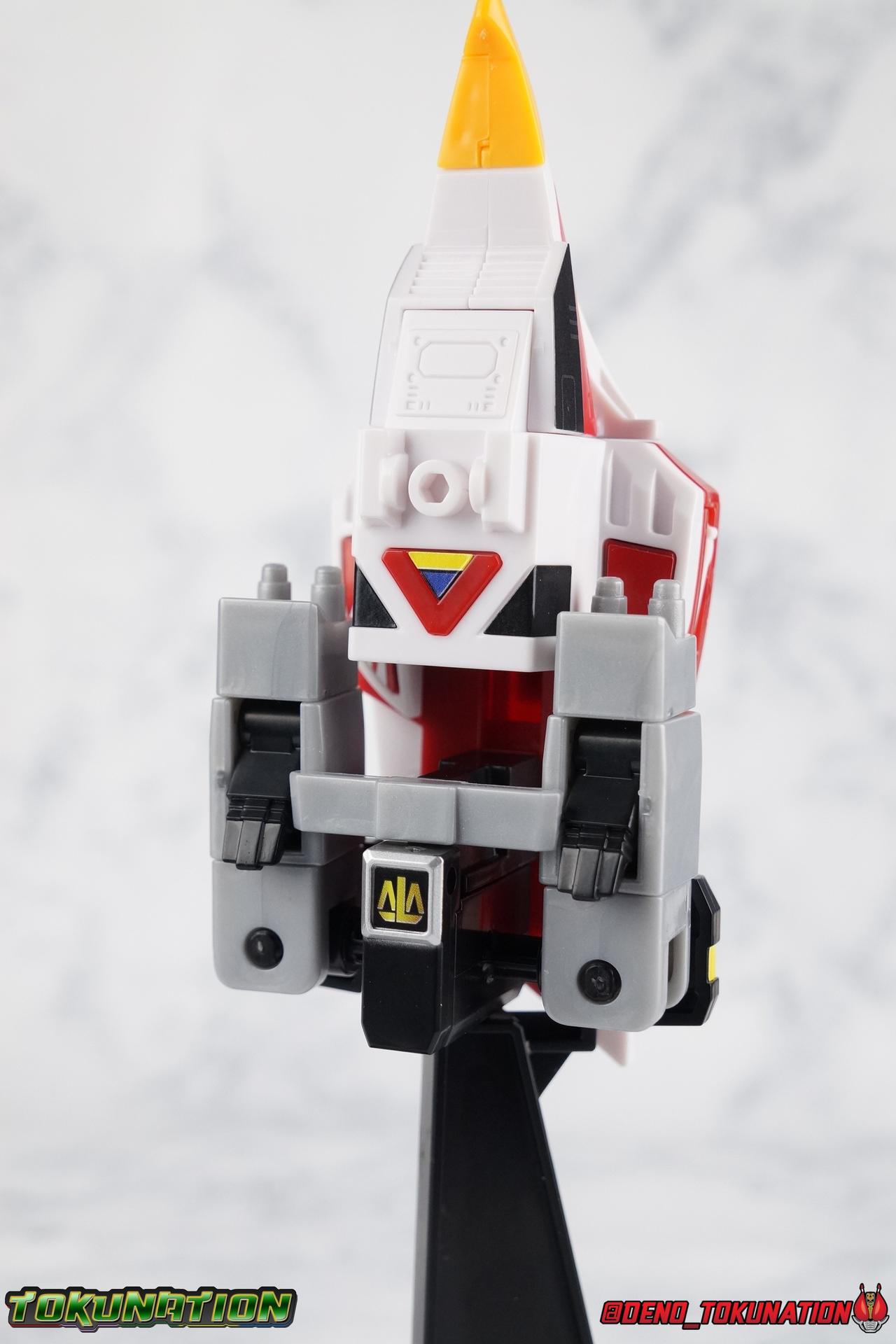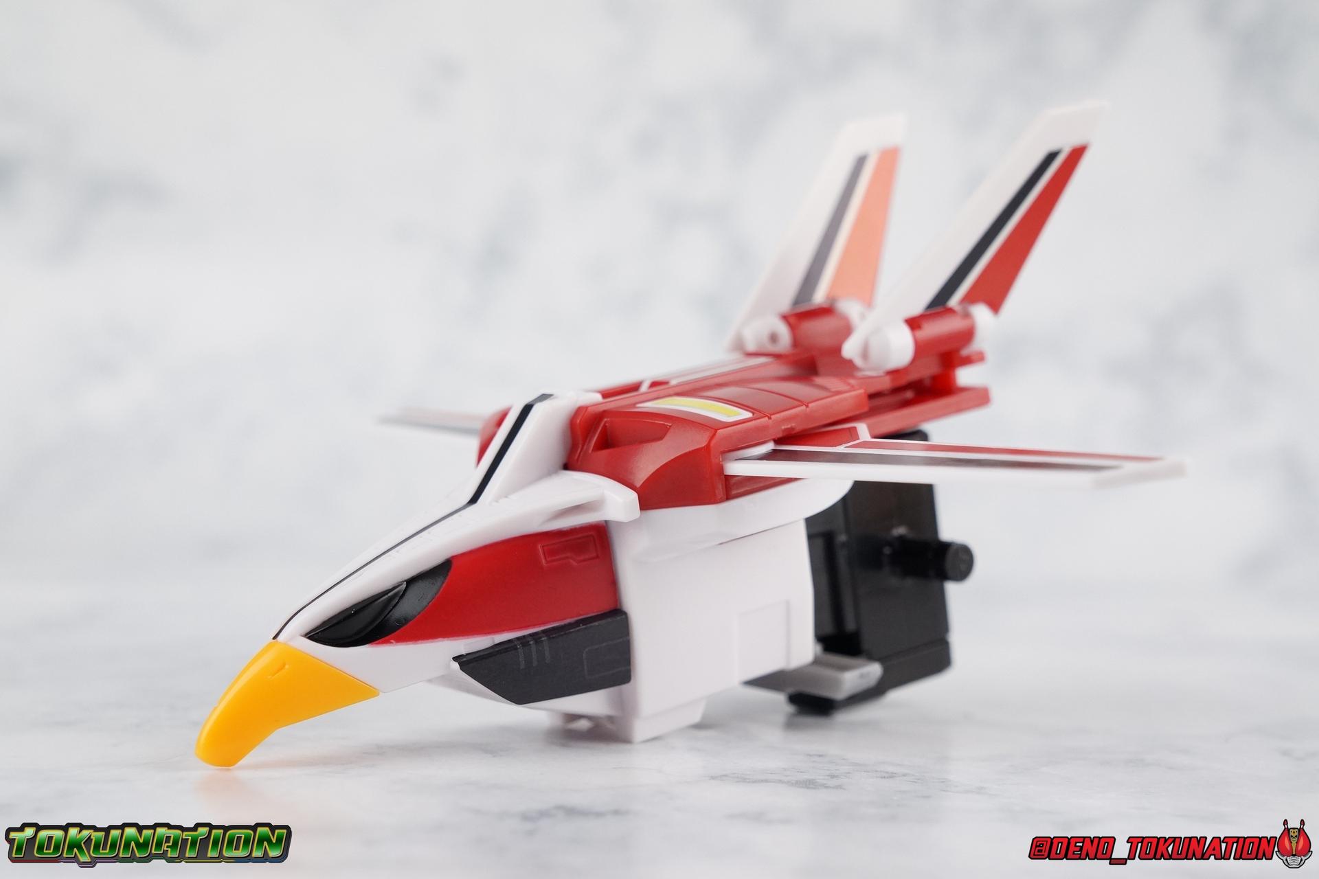 Now for the main event, Live Dimension! By far the greatest strength of the Super Minipla line is it's ability to recreate combined robots so excellently. You get a great functional toy with some fantastic proportions and accessories. Unlike many minipla of the past, you can also get around most part swapping for the transformations. In Live Robo's case, a mere 3 parts are removed and totally set aside for this transformation. Only the plugs that cover the knee plugs on Sky Machine and the tail from Land Machine are left over in the end. I've included step by step photos to show you how to get from each individual machine into the parts you need. While I think those images can speak for themselves I do want to mention a couple of fascinating things about the combination that I love. First, the way the lower half of Sky Machine slides down to accommodate the Land Machine chest, then slides back up to lock it in place and hide Land Machine's front legs just blows my mind. Likewise the way in which Land Machine's legs rotate out on that shared black joint within the chest is just incredible to me. The way it moves is just so fluid it's hard to believe this is a minipla. Once you've assembled Live Robo, you have one hell of a fun little figure. Without getting into the weapons yet, Live Robo is a great and poseable action figure in it's own right. The feet have side tilting joints thanks to how the feet are built, while the ankles can tilt forward and back too. Because of the nature of joints in the thighs we also get a nice knee joint connected to Aqua Machine that extends out it's main body. Then there's a mid-thigh swivel as well as a rotating hip joint. Now the hips are TIGHT, scary forceful on my Live Robo. Just be wary. All of this adds up to some extraordinary articulation in the lower body. This thing can stand on one leg with the other wrapped around it's back even. Despite it's complicated assembly even the torso can rotate pretty freely. The shoulders are each on a sort of butterfly joint that allows them to move very high up (at the cost of looking a bit inaccurate) but the arms can also swing out quite wide. Now for my one big complaint, the elbows have almost no range. Mostly because they have to accommodate the way the lion legs transform, they can only rotate forward about a quarter turn before they impact the opening forearm panel. The rotating biceps and fists can help alleviate some of this but it's still imperfect. Finally the head is on a small but useful balljoint that allows it to move a lot more than it appears at first glance. Able to spin around completely and angle up or down just a bit goes a long way to helping create personality for this mecha. Now for weapons. Live Robo comes with a shield formed from Sky Machine called the Live Shield. A square peg on the handle allows it to fit snugly into either hand of the Live Robo and it's hinged to pose it out of the way. We also get the mighty Chojuken or Super Beast Sword. Oddly this accessory isn't painted nor are there stickers included for it so the hilt remains in accurate. I don't paint or panel line or do anything outside of what the stock instructions give me for model kits. I like to straight build everything, that's just the way I am and I'll always be. If you've ever seen Gundam Build Fighters, think of me like Straight Build Shimon. I don't feel like I should have to recreate missing details they should simply be there, and I'm not particularly good at it either. So these little inaccuracies are frustrating, but not deal breaking. Final Thoughts Super Minipla is a revolutionary toyline for Super Sentai. As someone who typically collects DX toys, Robot Damashii, S.H. Figuarts, and Chogokin type figures, I was not prepared to be up for another toyline. But the chance to own a classic design like the Live Robo in an affordable way was something I couldn't pass up on. And I'm glad I didn't. If Bandai keeps it up and does more pre-Zyuranger mecha then I may actually be all in on this line. For now, I'm extremely please with how Super Minipla Live Robo has turned out.