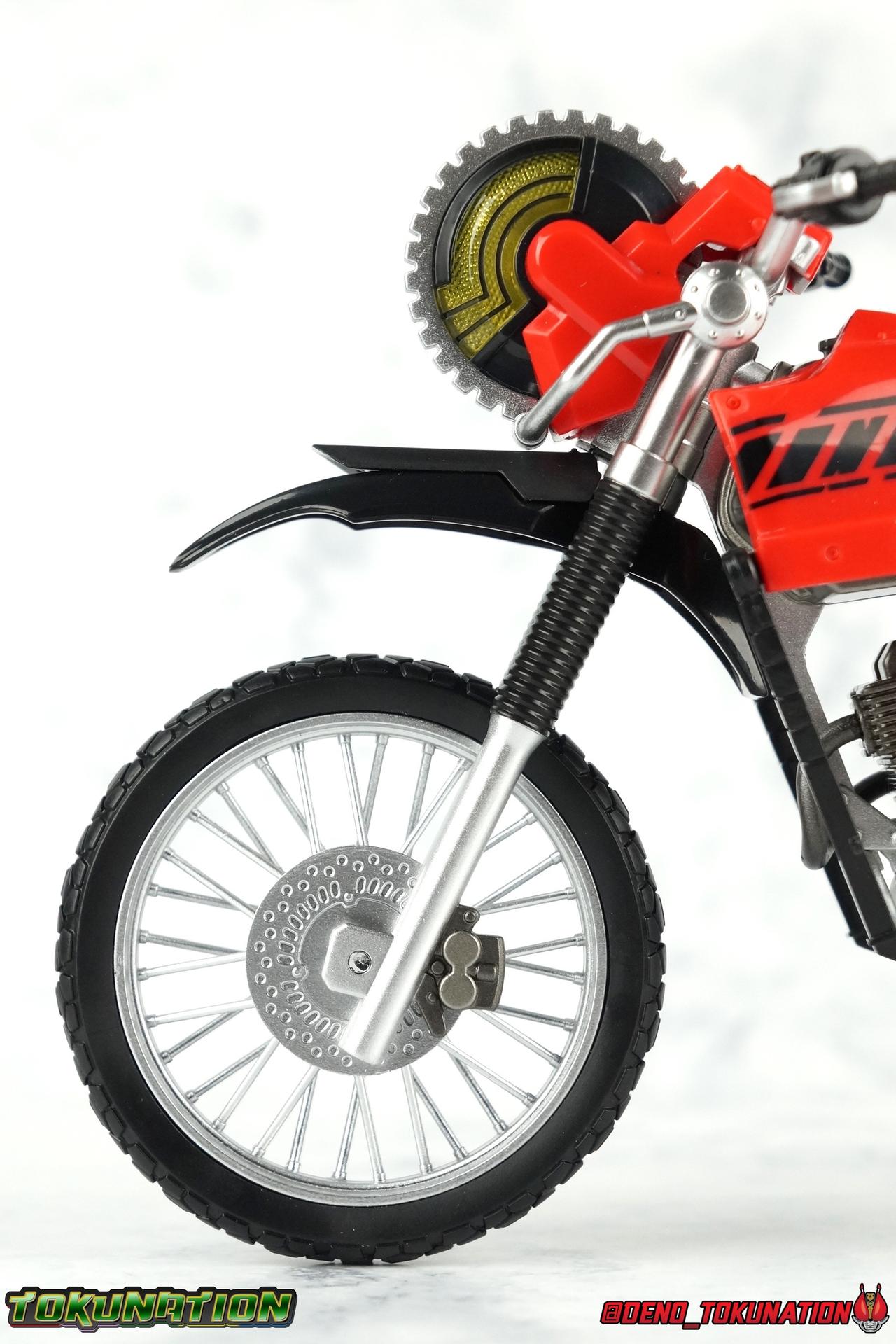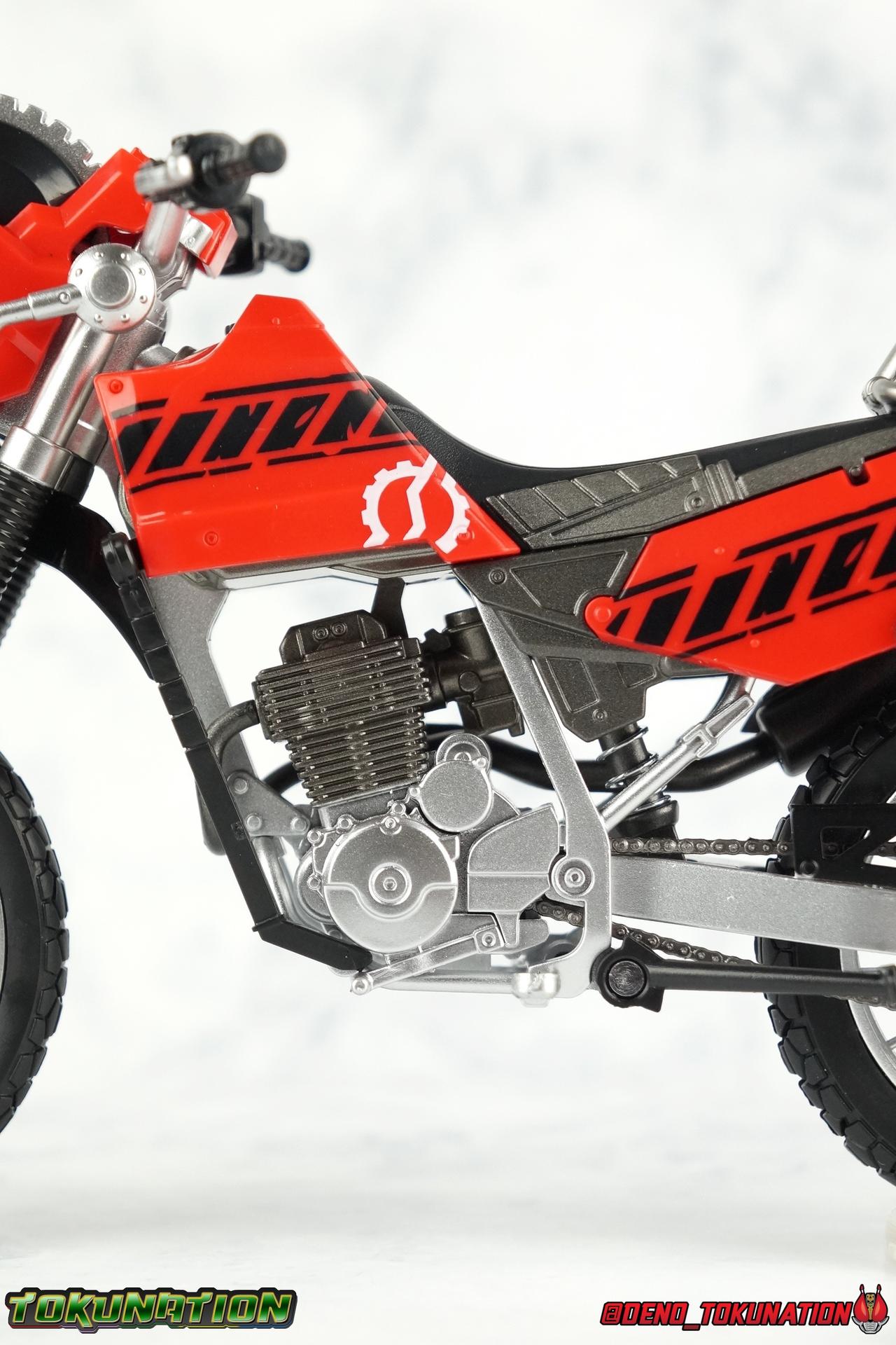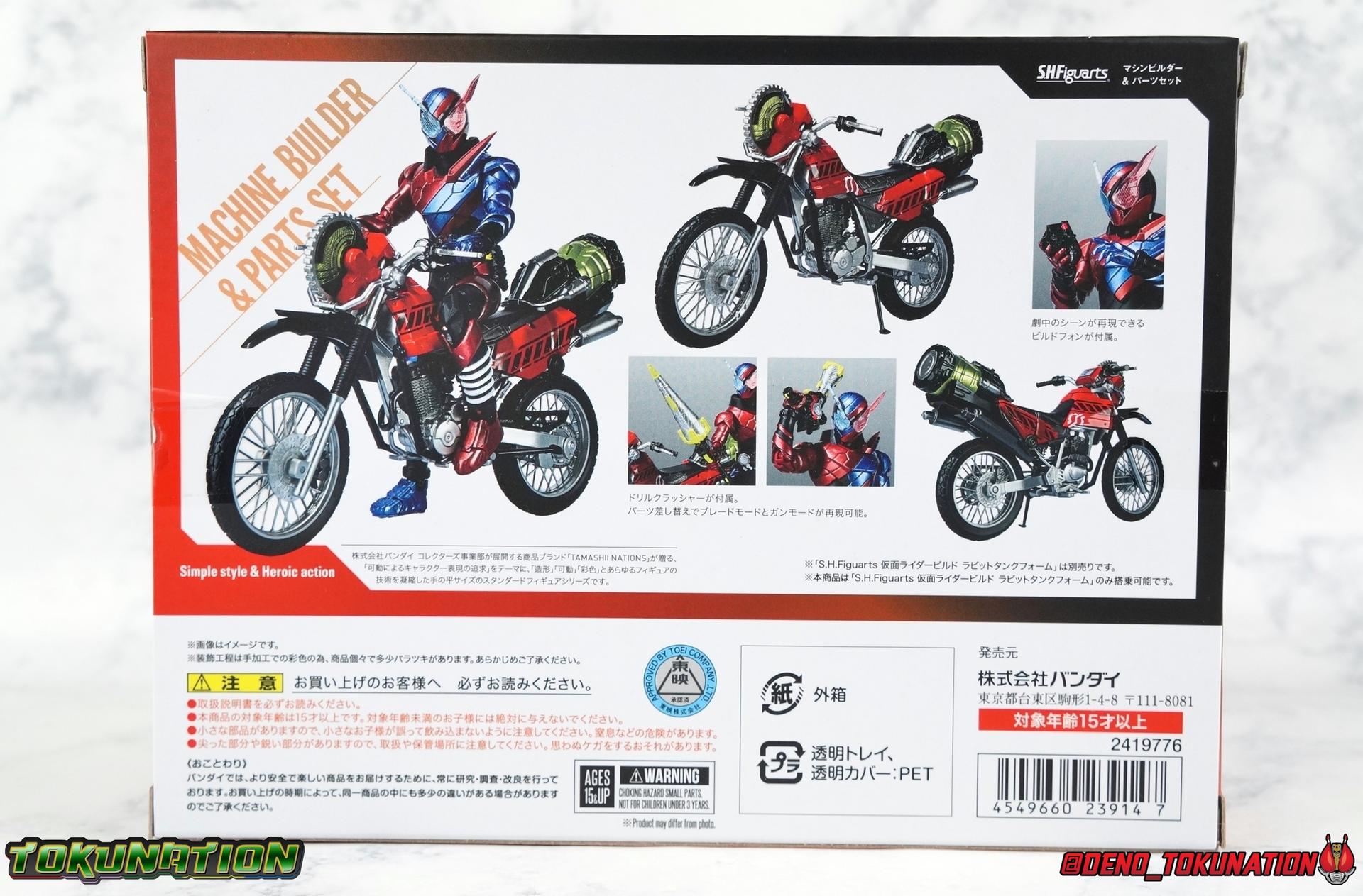 What's a Kamen Rider without his ride? Well in the case of most shows, still a Kamen Rider. Rider Machines come and go quite quickly in most cases. Rarely being seen regularly anymore these days. Since about the middle of the Heisei Era, their appearances have decreased quite a bit over time. Machine Builder has made only a handful of appearances since it's initial debut in Build. But it's still quite an interesting ride. In the last 4 years we've had the massive talking car Tridoron, the ghost/horse hybrid Ghost Striker, the literal Kamen Rider bike man Lazer Level 2, and now a tiny cell phone that mass shifts into a full on bike. Now, S.H. Figuarts Machine Builder (and Parts Set) is here to compliment your S.H. Figuarts Build with a full range of much needed accessories! See it all below! Packaging I mentioned this in my Cross-Z review, but I really have been digging the boxes on all the Build releases. But I can't help but be underwhelmed by Machine Builder's. The black & orange is a little dull. But we're not here for that, on to toys! Main Figure As with just about any Rider Machine released by Tamashii Nations, there's just not a lot going on here. In terms of functionality, the Machine Builder is as basic as it gets. Trasnformation gimmicks never make the jumpe to S.H. Figuarts bikes anymore. The Survive bikes Dragranzer & Darkraider from Kamen Rider Ryuki, and the Auto Vaijin from Kamen Rider Faiz are some of the only ones actually. So it's not surprising that Machine Builder doesn't feature it's transformation from phone to bike. But then again, this bikes features would be nearly impossible to replicate like that. Most of the phone kibble just fades away in the CG transformation. What we can talk about is the sculpting and paint work that went into this vehicle. The basic form of the body comes from the design of the Honda XR 230 dirt bike. The only real physical alterations to the XR body are the on the rear end and handlebars. Starting on the back of the seat is a sculpted in Lion Full Bottle. Which is for some reason the only Bottle ever shown to interact with the Build Phone to create Machine Builder. Here, it's roughly just under the size of the actual toy Full Bottles. The sculpt is well defined and paint work quite good. It comes out looking a bit more like a jet engine than a bottle. Another item of note is the Front Gear Light, the literal gear sticking out of the handlebars. At a head on view, I've always said this thing reminded me of Den-O. As a sort of headlamp/wind-vane stand in, it's a pretty weird component for a bike, but something that set's this vehicle apart quite nicely from other Rider Machine. Situated on the other side of the handlebars, is a small screen that essentially looks like the Build Phone mode of the bike. Interestingly, there's also a port on the underside of the engine to plug Tamashii Stage Arms into. Generally bikes have been coming with clear stage adapters that clip on over this part of the bike and plug on a stage. Machine Builder is the first I can recall to cut out the middleman so to speak. All in all, it's a crisp and well executed bike. It doesn't do anything particularly special, but neither have the last two rider machines (Lazer Level 2, and Ghostriker). But the real meat of this release so to speak, is the inlcuded accessories. Accessories So the obvious selling point of this bike is what it comes with. Build Rabbit/Tank was intentionally pretty bare bones so that those accessories could come with Machine Builder: 1 - wheel base. The now standard base that clips on over either wheel of the bike to stabilize it for display. 2.5 - sets of hands. One thing that Build himself certainly lacked was a variety of hands. Thankfully this time we get everything he could possibly need. These new hands give us a pair for holding the included weapons, a pair for riding his bike, and a single hand for holding the included phone. 1 - Build Phone. Machine Builder's natural state. This to scale accessory is every bit as bulky in Build's hands as the show prop is in Atsuhiro Inukai (Sento's) hands on the show. Only one hand is designed to hold it in this set. And it does that quite poorly, so be careful or you may lose it easily. For what it is it gets the broad details right, and the decal for a phone screen actually is quite sharply printed. 1 - Drill Crusher (Gun Mode). Packaged by default in Gun Mode, the Drill Crusher is another accessory the figure has some trouble holding properly with the included hands. They just aren't tight enough to have a solid grip on the handle. The Gun Mode actually does look quite nice however. 1 - set of Drill Crusher Sword Mode Parts. You get the Sword mode spear as well as the new handle for it. Just unplug the gun mode barrel and handle and plug these new parts on. Be cautious as the sword mode grip only goes in one way and is quite thin so it could be easily broken. Luckily the included hands for holding the bike handlebars are a perfect fit for this weapon so it works very well with Build. So that gets you several sets of hands, both versions of Build's primary weapon, and his wonderfully clunky phone. That's pretty great. I know plenty of people are irked that these accessories were pushed off to come with the bike rather than Build himself, but I completely understand it from their perspective. To ensure production of and sales of the bike, they did this as a necessity. Rider Machines do not sell well on average. That's why the last two have been web exclusives. They almost always hit deep discounts at online retailers and rarely fetch anything near or above retail on the secondary market (Lazer is an aberration). So from a purely business perspective, I understand the reasoning behind this. Final Thoughts I've said it before and I'll say it again, Rider Machines are pretty basic toy releases these days. Luckily this one goes the extra mile by including some much needed accessories for it's rider. I just c