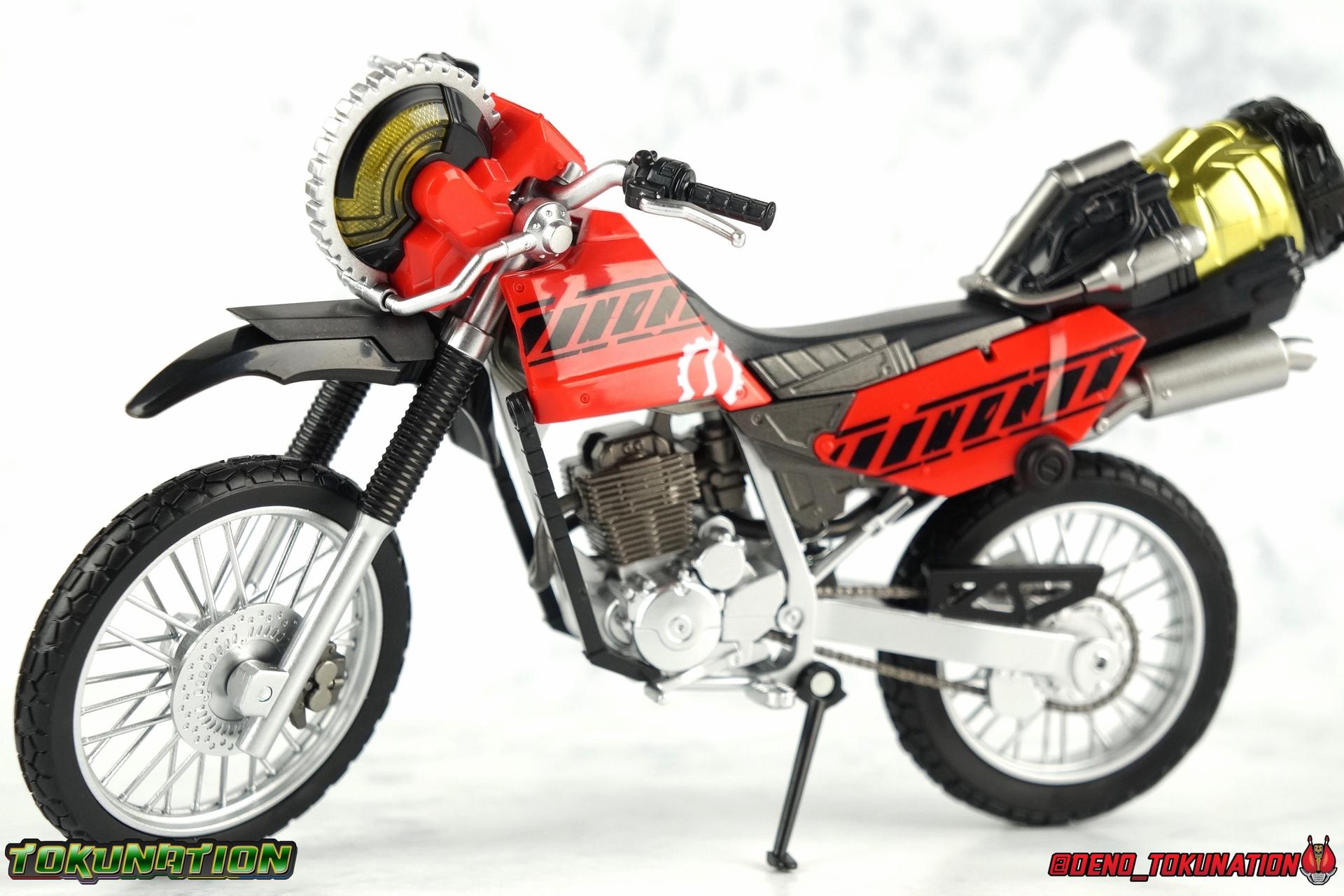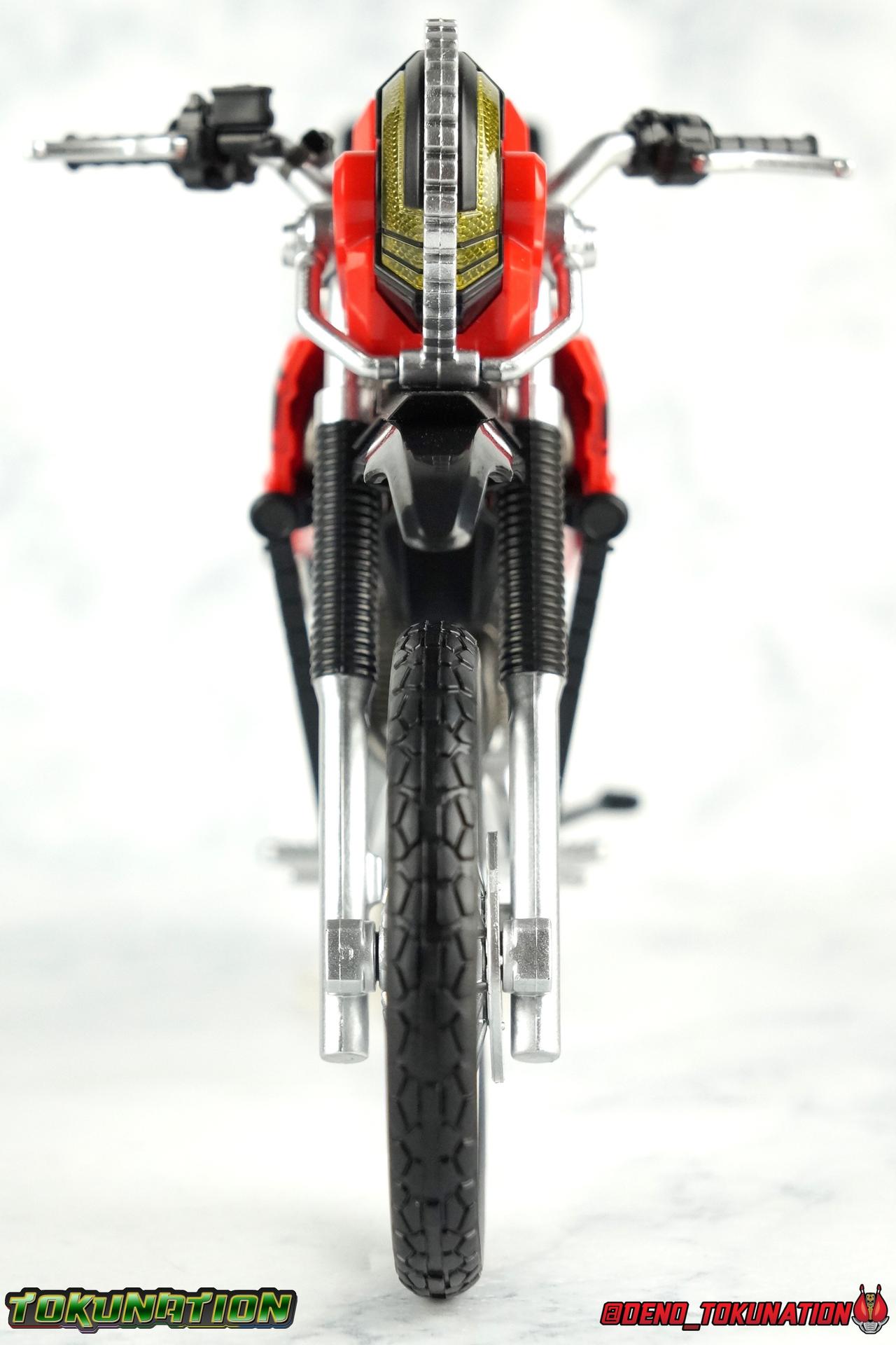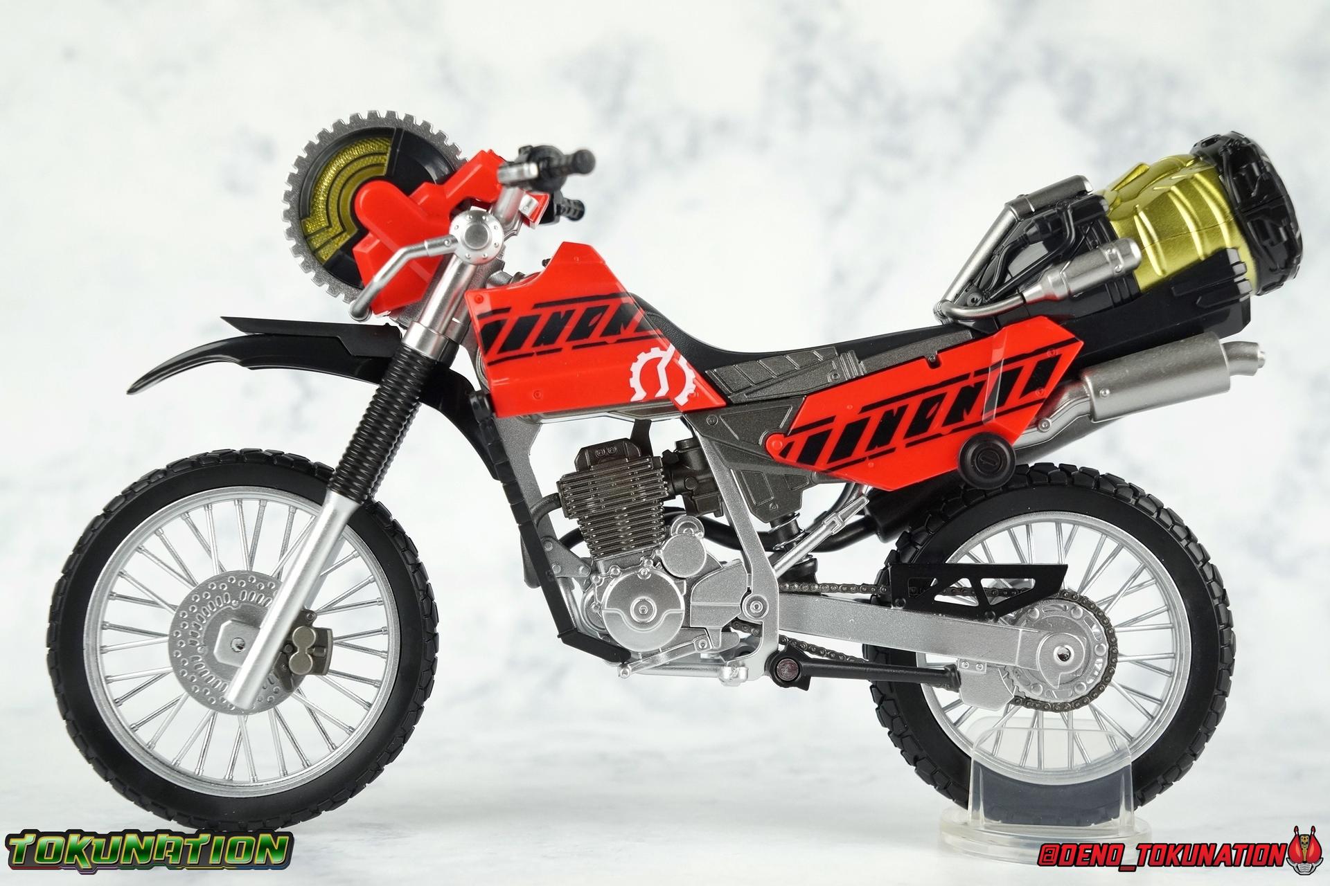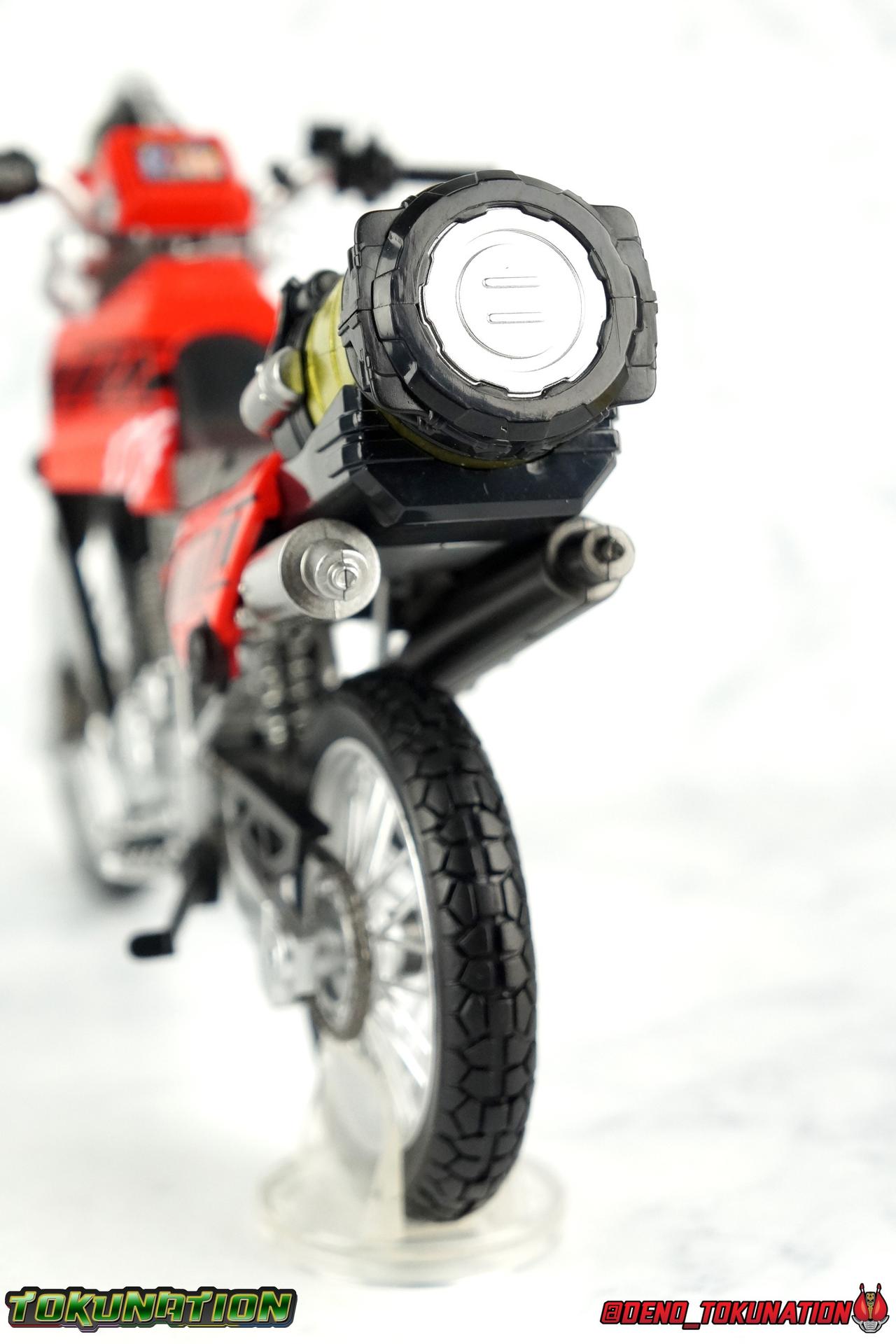 What's a Kamen Rider without his ride? Well in the case of most shows, still a Kamen Rider. Rider Machines come and go quite quickly in most cases. Rarely being seen regularly anymore these days. Since about the middle of the Heisei Era, their appearances have decreased quite a bit over time. Machine Builder has made only a handful of appearances since it's initial debut in Build. But it's still quite an interesting ride. In the last 4 years we've had the massive talking car Tridoron, the ghost/horse hybrid Ghost Striker, the literal Kamen Rider bike man Lazer Level 2, and now a tiny cell phone that mass shifts into a full on bike. Now, S.H. Figuarts Machine Builder (and Parts Set) is here to compliment your S.H. Figuarts Build with a full range of much needed accessories! See it all below! Packaging I mentioned this in my Cross-Z review, but I really have been digging the boxes on all the Build releases. But I can't help but be underwhelmed by Machine Builder's. The black & orange is a little dull. But we're not here for that, on to toys! Main Figure As with just about any Rider Machine released by Tamashii Nations, there's just not a lot going on here. In terms of functionality, the Machine Builder is as basic as it gets. Trasnformation gimmicks never make the jumpe to S.H. Figuarts bikes anymore. The Survive bikes Dragranzer & Darkraider from Kamen Rider Ryuki, and the Auto Vaijin from Kamen Rider Faiz are some of the only ones actually. So it's not surprising that Machine Builder doesn't feature it's transformation from phone to bike. But then again, this bikes features would be nearly impossible to replicate like that. Most of the phone kibble just fades away in the CG transformation. What we can talk about is the sculpting and paint work that went into this vehicle. The basic form of the body comes from the design of the Honda XR 230 dirt bike. The only real physical alterations to the XR body are the on the rear end and handlebars. Starting on the back of the seat is a sculpted in Lion Full Bottle. Which is for some reason the only Bottle ever shown to interact with the Build Phone to create Machine Builder. Here, it's roughly just under the size of the actual toy Full Bottles. The sculpt is well defined and paint work quite good. It comes out looking a bit more like a jet engine than a bottle. Another item of note is the Front Gear Light, the literal gear sticking out of the handlebars. At a head on view, I've always said this thing reminded me of Den-O. As a sort of headlamp/wind-vane stand in, it's a pretty weird component for a bike, but something that set's this vehicle apart quite nicely from other Rider Machine. Situated on the other side of the handlebars, is a small screen that essentially looks like the Build Phone mode of the bike. Interestingly, there's also a port on the underside of the engine to plug Tamashii Stage Arms into. Generally bikes have been coming with clear stage adapters that clip on over this part of the bike and plug on a stage. Machine Builder is the first I can recall to cut out the middleman so to speak. All in all, it's a crisp and well executed bike. It doesn't do anything particularly special, but neither have the last two rider machines (Lazer Level 2, and Ghostriker). But the real meat of this release so to speak, is the inlcuded accessories. Accessories So the obvious selling point of this bike is what it comes with. Build Rabbit/Tank was intentionally pretty bare bones so that those accessories could come with Machine Builder: 1 - wheel base. The now standard base that clips on over either wheel of the bike to stabilize it for display. 2.5 - sets of hands. One thing that Build himself certainly lacked was a variety of hands. Thankfully this time we get everything he could possibly need. These new hands give us a pair for holding the included weapons, a pair for riding his bike, and a single hand for holding the included phone. 1 - Build Phone. Machine Builder's natural state. This to scale accessory is every bit as bulky in Build's hands as the show prop is in Atsuhiro Inukai (Sento's) hands on the show. Only one hand is designed to hold it in this set. And it does that quite poorly, so be careful or you may lose it easily. For what it is it gets the broad details right, and the decal for a phone screen actually is quite sharply printed. 1 - Drill Crusher (Gun Mode). Packaged by default in Gun Mode, the Drill Crusher is another accessory the figure has some trouble holding properly with the included hands. They just aren't tight enough to have a solid grip on the handle. The Gun Mode actually does look quite nice however. 1 - set of Drill Crusher Sword Mode Parts. You get the Sword mode spear as well as the new handle for it. Just unplug the gun mode barrel and handle and plug these new parts on. Be cautious as the sword mode grip only goes in one way and is quite thin so it could be easily broken. Luckily the included hands for holding the bike handlebars are a perfect fit for this weapon so it works very well with Build. So that gets you several sets of hands, both versions of Build's primary weapon, and his wonderfully clunky phone. That's pretty great. I know plenty of people are irked that these accessories were pushed off to come with the bike rather than Build himself, but I completely understand it from their perspective. To ensure production of and sales of the bike, they did this as a necessity. Rider Machines do not sell well on average. That's why the last two have been web exclusives. They almost always hit deep discounts at online retailers and rarely fetch anything near or above retail on the secondary market (Lazer is an aberration). So from a purely business perspective, I understand the reasoning behind this. Final Thoughts I've said it before and I'll say it again, Rider Machines are pretty basic toy releases these days. Luckily this one goes the extra mile by including some much needed accessories for it's rider. I just c