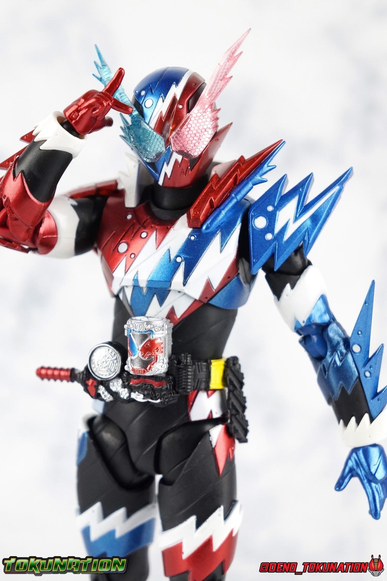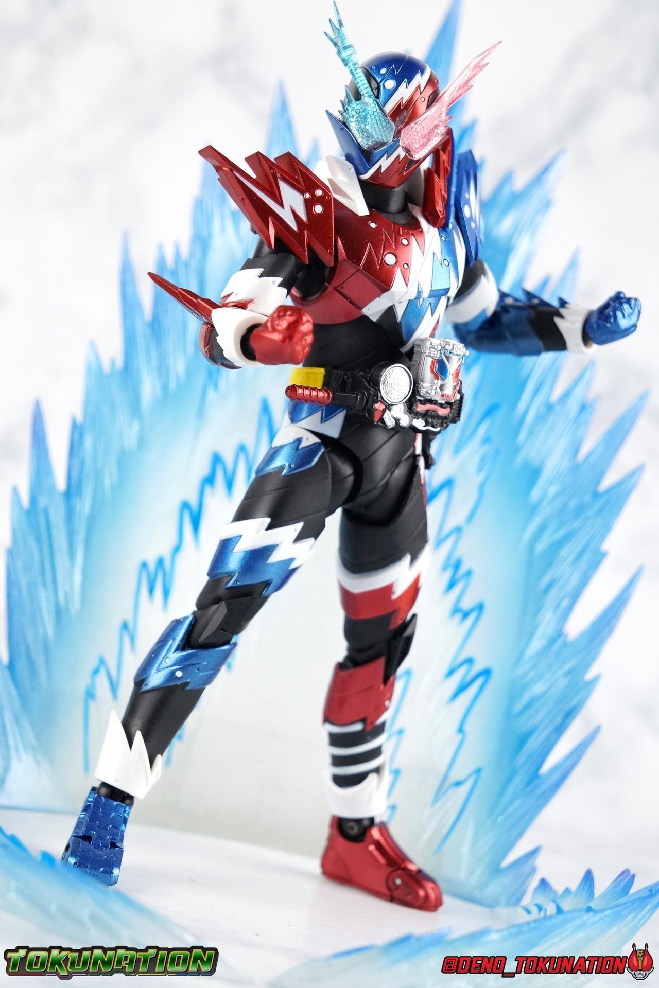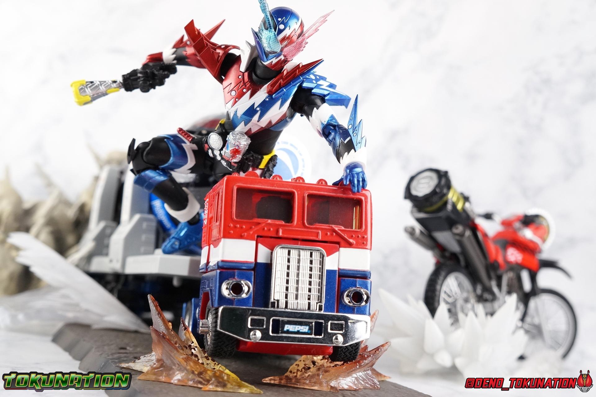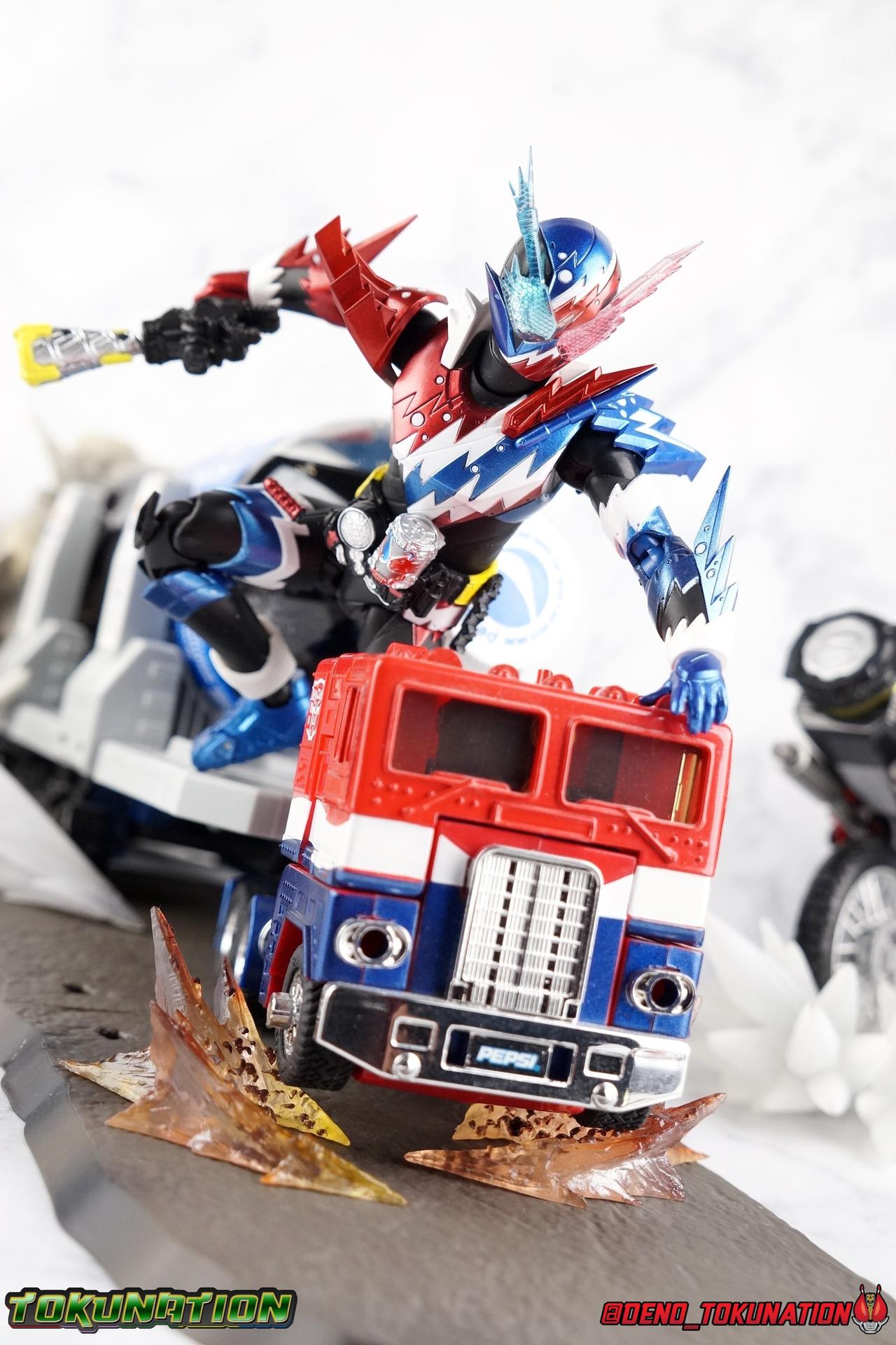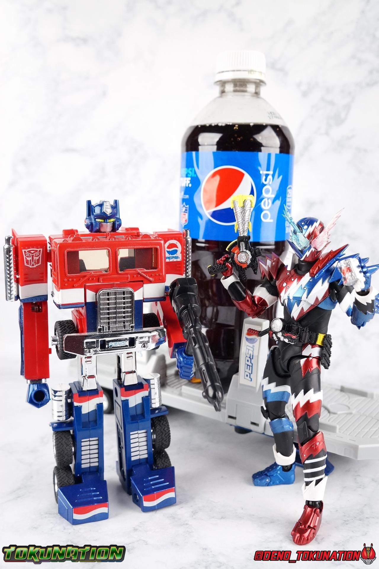 Faced with the truth about Souichi Isurugi & Blood Stalk, Sento has one last ditch plan to stop him. Distill the power of Pandora's Box into a new power up item! Now that he knows the truth about Souichi, and himself, can Sento really wield this power? Find out in our gallery of S.H. Figuarts Kamen Rider Build Rabbit Tank Sparkling Form! Packaging Sparkling continues the trend of two-tone boxes for Build releases and much like the solid color Ex-Aid boxes, this style has gotten a bit stale rather quickly. Honestly it's not terribly important to me how boxes look anymore anyway. Main Figure Build Sparkling builds (HA HA HA) off of what we've seen from the line already, and I mean that literally. The main Build mold has only made 2 outings in the line so far as Rabbit/Tank and modified as Cross-Z. Sparkling sees it for a third time. If you've had experience with either of those releases then you know all the essentials of this mold and what it can do. Here's a brief refresher. With the lower body, the legs are largely identical to Build aside from the new electrical white strips. Like Cross-Z, Sparkling seems to have some tolerance issues with the legs. The knees creak on mine the same way Cross-Z's hips did. The hips are quite tight as well. So just be careful handling him, it seems like a recipe for disaster. Apply heat and shock oil where necessary. For articuation, these legs function identically to the last two uses of the mold. The Build Driver is once again carried over and identical to it's previous outings. The new feature here is of course the Rabbit Tank Sparkling Full Bottle which is modeled on a typical can of soda. The Bottle is removable, there's no functionality to it though, the pegs can't recede into the can form like the DX toy. Weirdly, because of the way it's designed to slot into the holes on the Driver, it can also fit nicely into the Bottle holster on the hip. For the upper body, the primary change is the new electrical burst pattern that stretches over the chest and up to the left shoulder. You can see the original diagonal lines from base Build's chest under the paint but the new sculpted detail obscures that somewhat. It's basically the same chest, just with these new details and paint on top. I also really dig thew little electric additions to the rabbit/tank protrusions on the shoulder. A new collar part has been added around the neck as well, continuing the electrical theme. With the arms we again see what are essentially identical parts to base Build just with new detailing, each forearm also now has a new protrusion on top of the detailing. The biggest change comes in the new shoulder pads which can look a little awkward depending on the angle you move them to. I tended to pop them off by accident a number of time while shooting this gallery. While keeping in line with the original Build's theme, Sparkling's head is by the far the best new addition. It's very much the super powered version of the Rabbit/Tank head, right down to the new electrified look of the compound eyes. I gotta say Sparkling has never been a favorite form of mine, but this head sells it so hard. It's just spot on. The new collar around the neck can get in the way of posing the head somewhat, but that's about the only drawback. Quite often, people have made the joke of "Sparkling is Pepsiman" which totally makes sense given this form's color scheme. I took that a bit further with some bonus shots attached in the second post. I hope you enjoy Target: Pepsi Prime! Accessories Sadly, Sparkling follows the standard Rabbit/Tank form's lead and comes with minimal accessories: 10 - additional hands. Weirdly not all in matching pairs either. 3 left hands, and 7 right hands of various posers. Which include multiple to hold weapons he doesn't actually come with and ride a motorcycle that was a previous web exclusive and included said weapons. The hand variety is fantastic. Honestly, I wish regular Rabbit/Tank had come this sort of variety. But these go a long way to helping Sparkilng feel like it has more than it does since it can utilize things from the rest of the line. If you're like me and had already picked up Machine Builder with the parts set then this figure is a perfect compliment. If not, then you'll likely be quite disappointed with the accessory selection here. Final thoughts Overall this is a really solid remold of a base figure that I quite like. I didn't really expect to like Sparkling that much, but it's succeeded in being a really great little addition to my Build collection. I usually tend to go completionist on shows I love and I'm really happy I did in this case. Build Sparkling Form is a really unexpectedly fun addition to any Build collection.