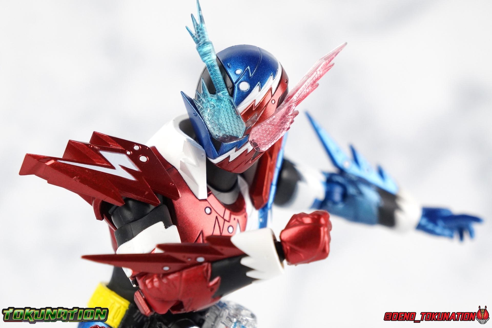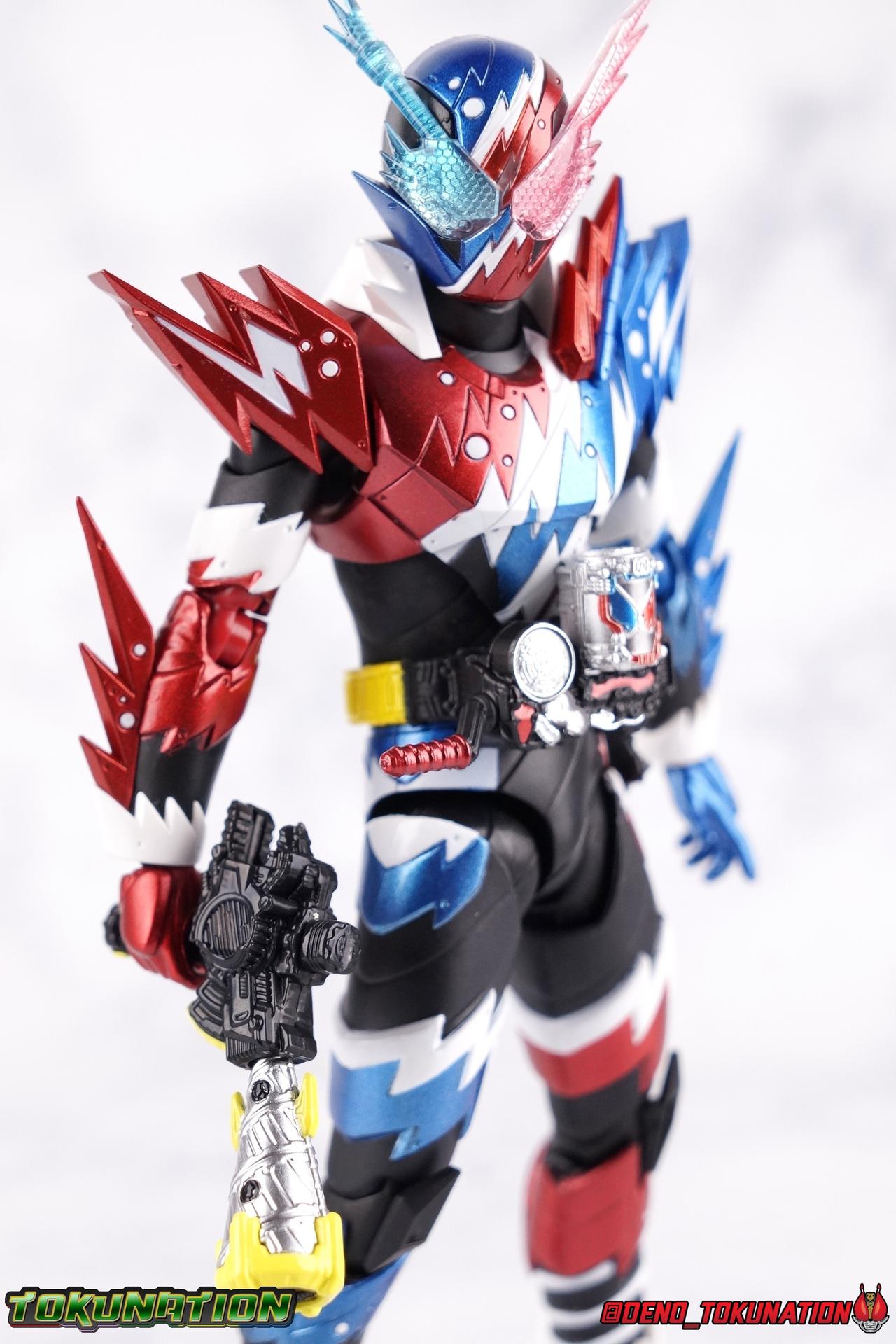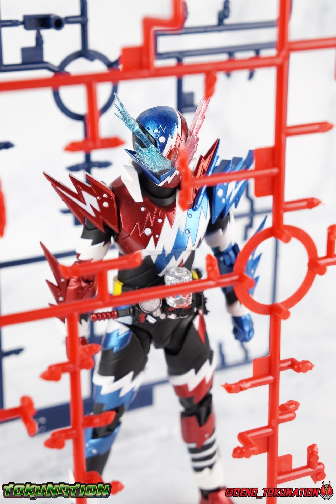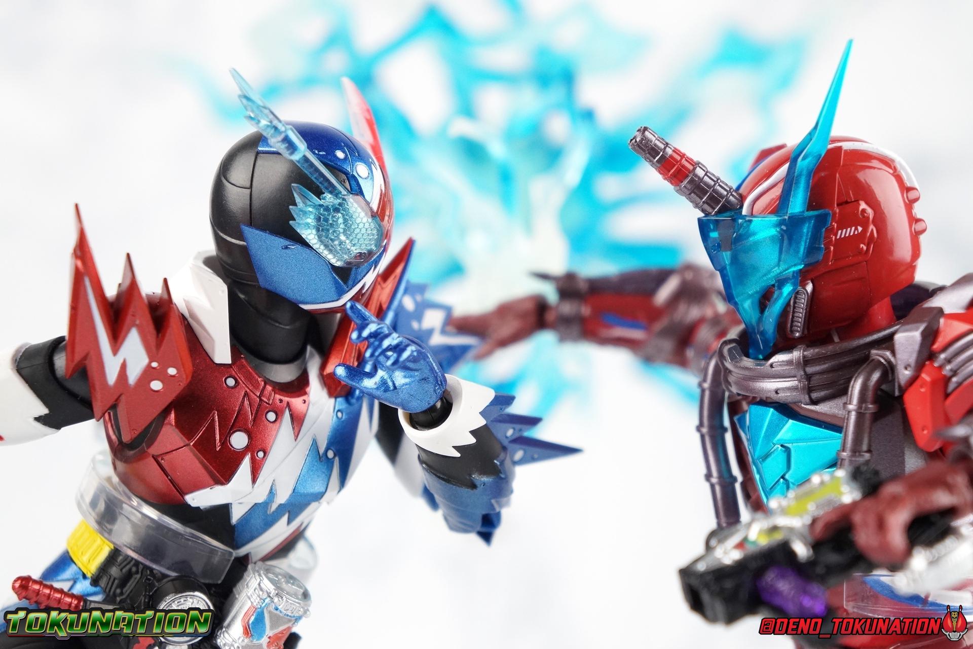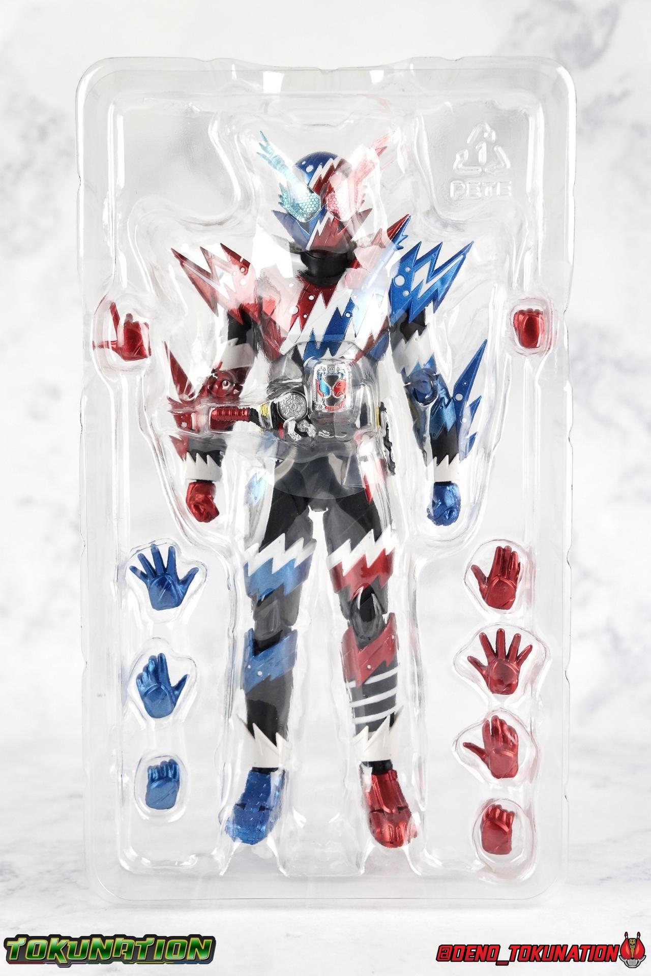 Faced with the truth about Souichi Isurugi & Blood Stalk, Sento has one last ditch plan to stop him. Distill the power of Pandora's Box into a new power up item! Now that he knows the truth about Souichi, and himself, can Sento really wield this power? Find out in our gallery of S.H. Figuarts Kamen Rider Build Rabbit Tank Sparkling Form! Packaging Sparkling continues the trend of two-tone boxes for Build releases and much like the solid color Ex-Aid boxes, this style has gotten a bit stale rather quickly. Honestly it's not terribly important to me how boxes look anymore anyway. Main Figure Build Sparkling builds (HA HA HA) off of what we've seen from the line already, and I mean that literally. The main Build mold has only made 2 outings in the line so far as Rabbit/Tank and modified as Cross-Z. Sparkling sees it for a third time. If you've had experience with either of those releases then you know all the essentials of this mold and what it can do. Here's a brief refresher. With the lower body, the legs are largely identical to Build aside from the new electrical white strips. Like Cross-Z, Sparkling seems to have some tolerance issues with the legs. The knees creak on mine the same way Cross-Z's hips did. The hips are quite tight as well. So just be careful handling him, it seems like a recipe for disaster. Apply heat and shock oil where necessary. For articuation, these legs function identically to the last two uses of the mold. The Build Driver is once again carried over and identical to it's previous outings. The new feature here is of course the Rabbit Tank Sparkling Full Bottle which is modeled on a typical can of soda. The Bottle is removable, there's no functionality to it though, the pegs can't recede into the can form like the DX toy. Weirdly, because of the way it's designed to slot into the holes on the Driver, it can also fit nicely into the Bottle holster on the hip. For the upper body, the primary change is the new electrical burst pattern that stretches over the chest and up to the left shoulder. You can see the original diagonal lines from base Build's chest under the paint but the new sculpted detail obscures that somewhat. It's basically the same chest, just with these new details and paint on top. I also really dig thew little electric additions to the rabbit/tank protrusions on the shoulder. A new collar part has been added around the neck as well, continuing the electrical theme. With the arms we again see what are essentially identical parts to base Build just with new detailing, each forearm also now has a new protrusion on top of the detailing. The biggest change comes in the new shoulder pads which can look a little awkward depending on the angle you move them to. I tended to pop them off by accident a number of time while shooting this gallery. While keeping in line with the original Build's theme, Sparkling's head is by the far the best new addition. It's very much the super powered version of the Rabbit/Tank head, right down to the new electrified look of the compound eyes. I gotta say Sparkling has never been a favorite form of mine, but this head sells it so hard. It's just spot on. The new collar around the neck can get in the way of posing the head somewhat, but that's about the only drawback. Quite often, people have made the joke of "Sparkling is Pepsiman" which totally makes sense given this form's color scheme. I took that a bit further with some bonus shots attached in the second post. I hope you enjoy Target: Pepsi Prime! Accessories Sadly, Sparkling follows the standard Rabbit/Tank form's lead and comes with minimal accessories: 10 - additional hands. Weirdly not all in matching pairs either. 3 left hands, and 7 right hands of various posers. Which include multiple to hold weapons he doesn't actually come with and ride a motorcycle that was a previous web exclusive and included said weapons. The hand variety is fantastic. Honestly, I wish regular Rabbit/Tank had come this sort of variety. But these go a long way to helping Sparkilng feel like it has more than it does since it can utilize things from the rest of the line. If you're like me and had already picked up Machine Builder with the parts set then this figure is a perfect compliment. If not, then you'll likely be quite disappointed with the accessory selection here. Final thoughts Overall this is a really solid remold of a base figure that I quite like. I didn't really expect to like Sparkling that much, but it's succeeded in being a really great little addition to my Build collection. I usually tend to go completionist on shows I love and I'm really happy I did in this case. Build Sparkling Form is a really unexpectedly fun addition to any Build collection.