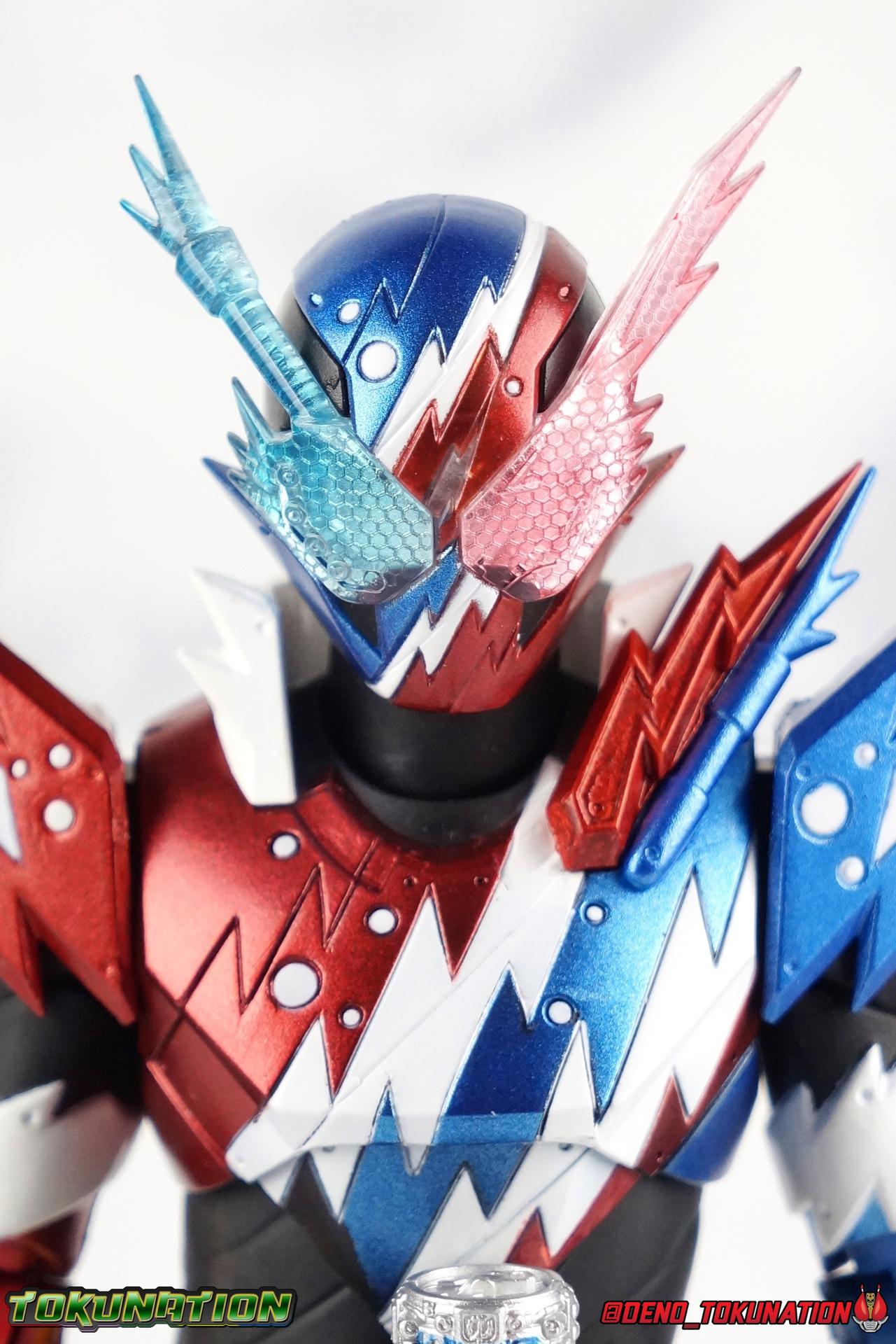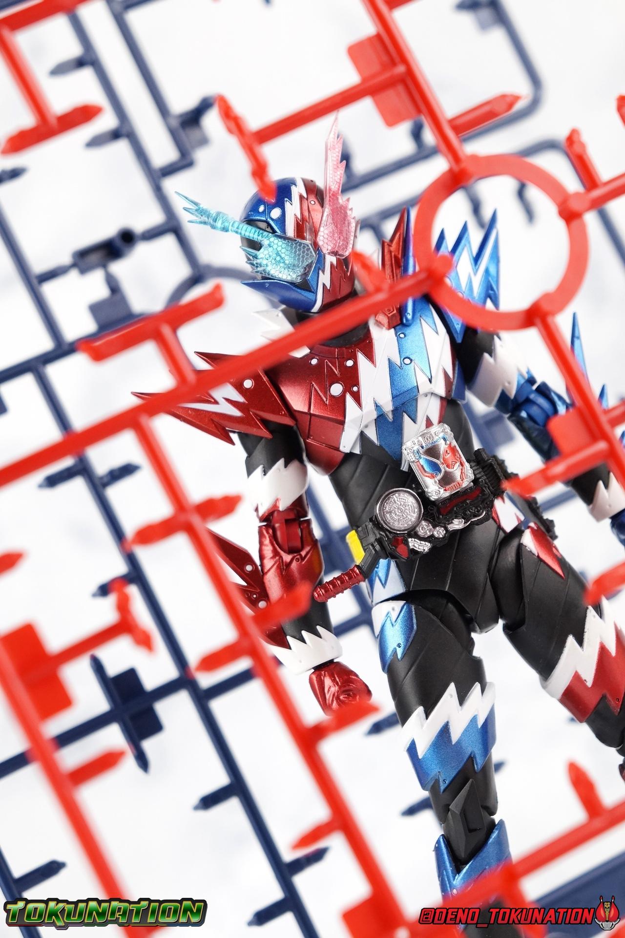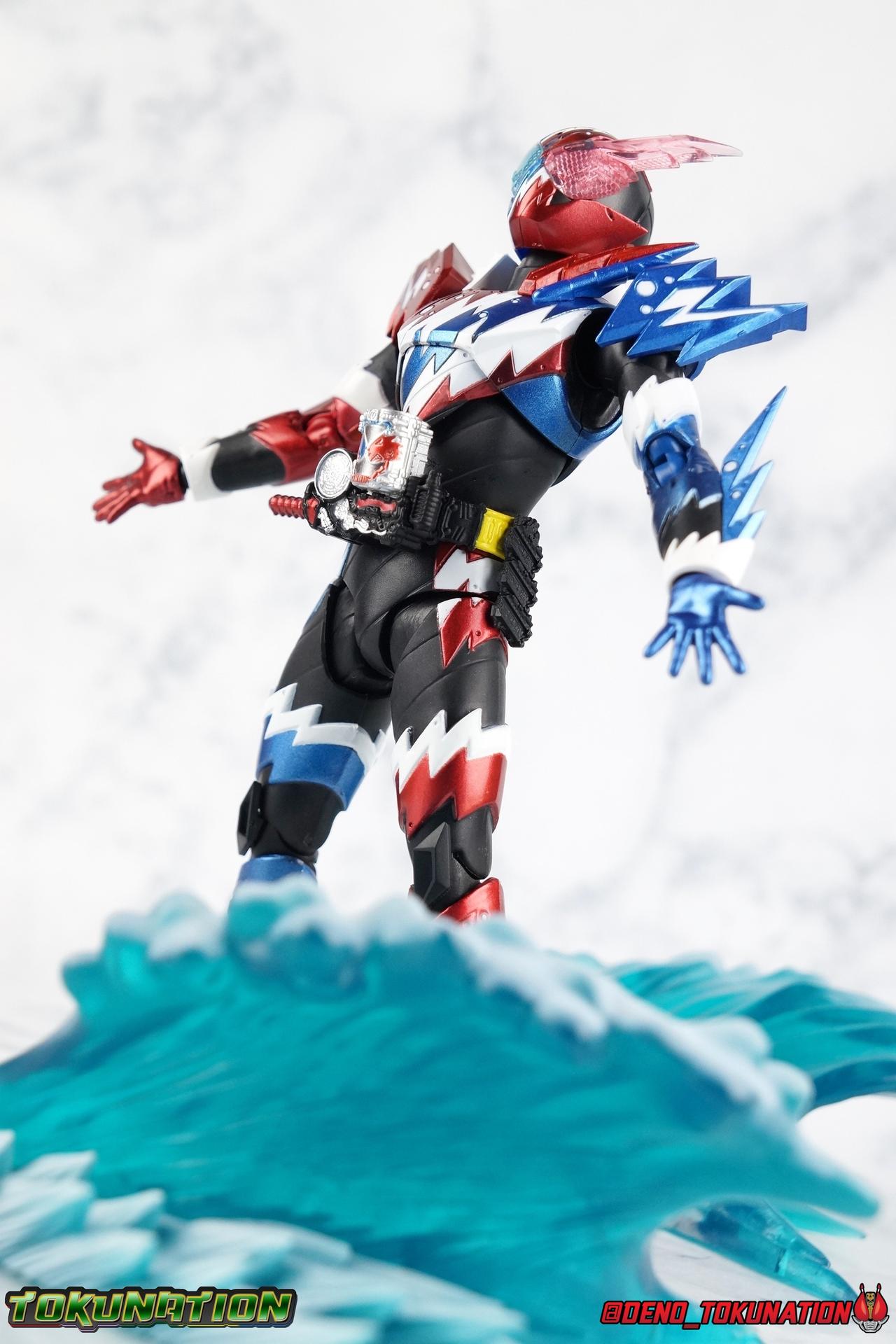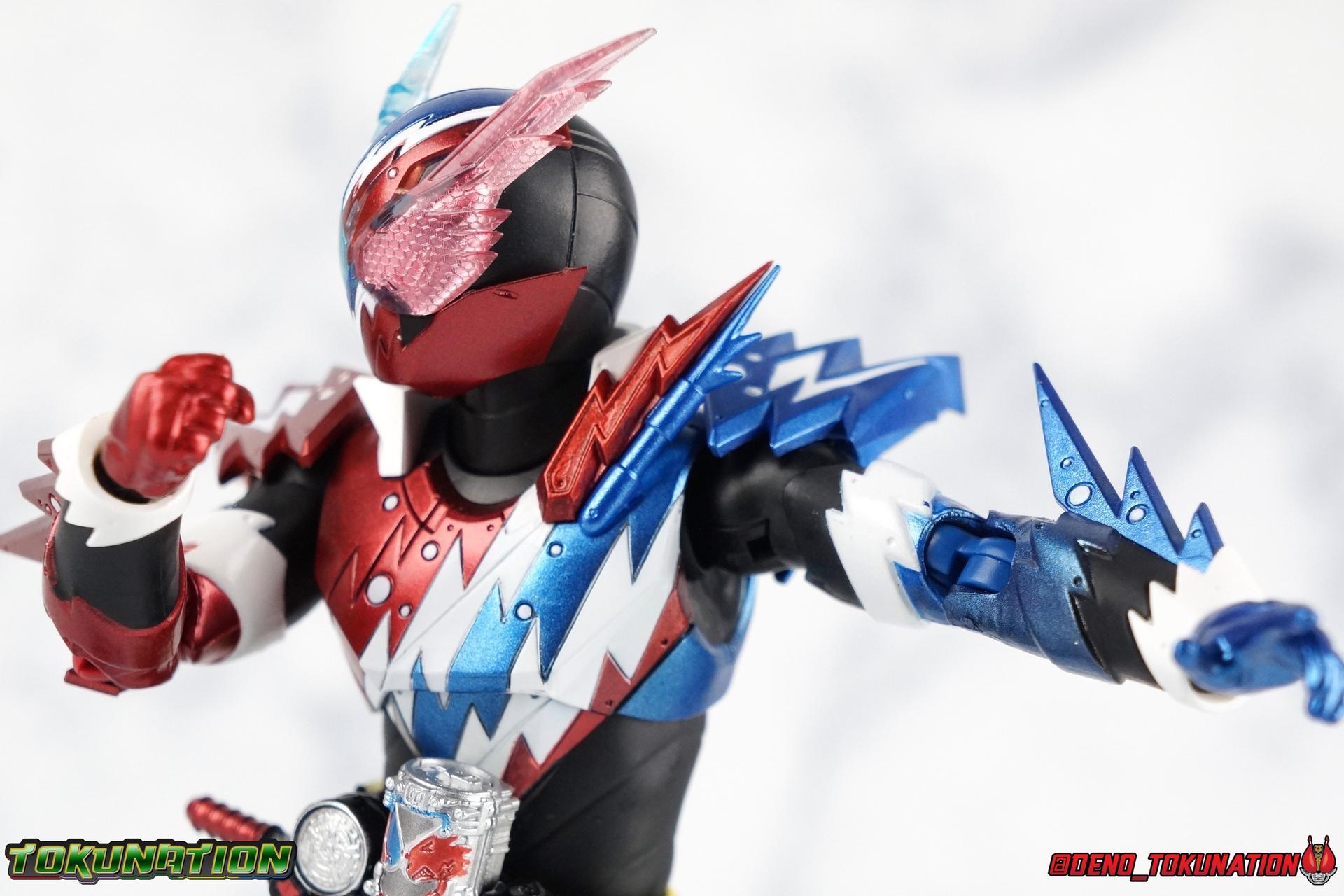 Faced with the truth about Souichi Isurugi & Blood Stalk, Sento has one last ditch plan to stop him. Distill the power of Pandora's Box into a new power up item! Now that he knows the truth about Souichi, and himself, can Sento really wield this power? Find out in our gallery of S.H. Figuarts Kamen Rider Build Rabbit Tank Sparkling Form! Packaging Sparkling continues the trend of two-tone boxes for Build releases and much like the solid color Ex-Aid boxes, this style has gotten a bit stale rather quickly. Honestly it's not terribly important to me how boxes look anymore anyway. Main Figure Build Sparkling builds (HA HA HA) off of what we've seen from the line already, and I mean that literally. The main Build mold has only made 2 outings in the line so far as Rabbit/Tank and modified as Cross-Z. Sparkling sees it for a third time. If you've had experience with either of those releases then you know all the essentials of this mold and what it can do. Here's a brief refresher. With the lower body, the legs are largely identical to Build aside from the new electrical white strips. Like Cross-Z, Sparkling seems to have some tolerance issues with the legs. The knees creak on mine the same way Cross-Z's hips did. The hips are quite tight as well. So just be careful handling him, it seems like a recipe for disaster. Apply heat and shock oil where necessary. For articuation, these legs function identically to the last two uses of the mold. The Build Driver is once again carried over and identical to it's previous outings. The new feature here is of course the Rabbit Tank Sparkling Full Bottle which is modeled on a typical can of soda. The Bottle is removable, there's no functionality to it though, the pegs can't recede into the can form like the DX toy. Weirdly, because of the way it's designed to slot into the holes on the Driver, it can also fit nicely into the Bottle holster on the hip. For the upper body, the primary change is the new electrical burst pattern that stretches over the chest and up to the left shoulder. You can see the original diagonal lines from base Build's chest under the paint but the new sculpted detail obscures that somewhat. It's basically the same chest, just with these new details and paint on top. I also really dig thew little electric additions to the rabbit/tank protrusions on the shoulder. A new collar part has been added around the neck as well, continuing the electrical theme. With the arms we again see what are essentially identical parts to base Build just with new detailing, each forearm also now has a new protrusion on top of the detailing. The biggest change comes in the new shoulder pads which can look a little awkward depending on the angle you move them to. I tended to pop them off by accident a number of time while shooting this gallery. While keeping in line with the original Build's theme, Sparkling's head is by the far the best new addition. It's very much the super powered version of the Rabbit/Tank head, right down to the new electrified look of the compound eyes. I gotta say Sparkling has never been a favorite form of mine, but this head sells it so hard. It's just spot on. The new collar around the neck can get in the way of posing the head somewhat, but that's about the only drawback. Quite often, people have made the joke of "Sparkling is Pepsiman" which totally makes sense given this form's color scheme. I took that a bit further with some bonus shots attached in the second post. I hope you enjoy Target: Pepsi Prime! Accessories Sadly, Sparkling follows the standard Rabbit/Tank form's lead and comes with minimal accessories: 10 - additional hands. Weirdly not all in matching pairs either. 3 left hands, and 7 right hands of various posers. Which include multiple to hold weapons he doesn't actually come with and ride a motorcycle that was a previous web exclusive and included said weapons. The hand variety is fantastic. Honestly, I wish regular Rabbit/Tank had come this sort of variety. But these go a long way to helping Sparkilng feel like it has more than it does since it can utilize things from the rest of the line. If you're like me and had already picked up Machine Builder with the parts set then this figure is a perfect compliment. If not, then you'll likely be quite disappointed with the accessory selection here. Final thoughts Overall this is a really solid remold of a base figure that I quite like. I didn't really expect to like Sparkling that much, but it's succeeded in being a really great little addition to my Build collection. I usually tend to go completionist on shows I love and I'm really happy I did in this case. Build Sparkling Form is a really unexpectedly fun addition to any Build collection.