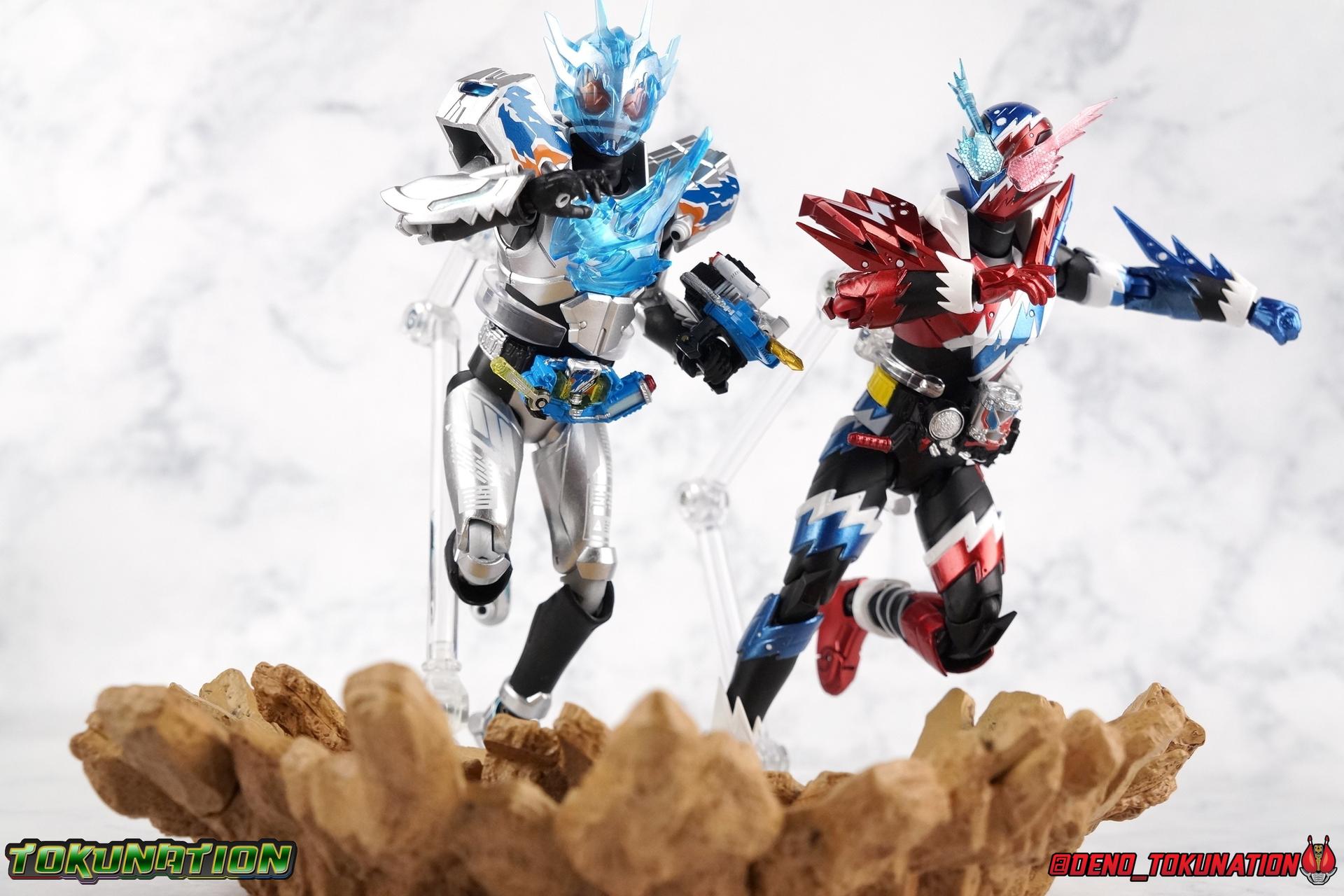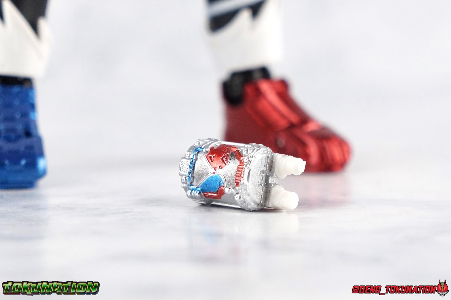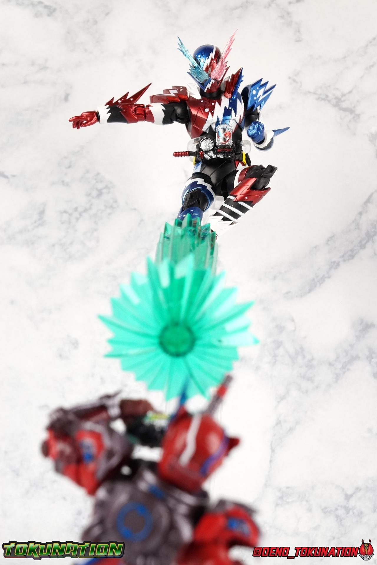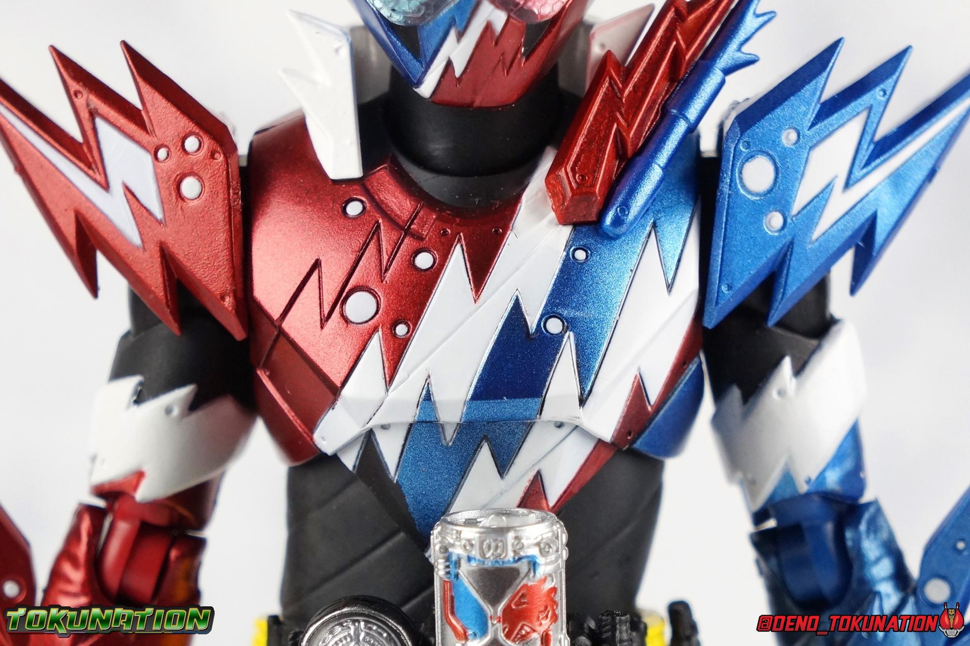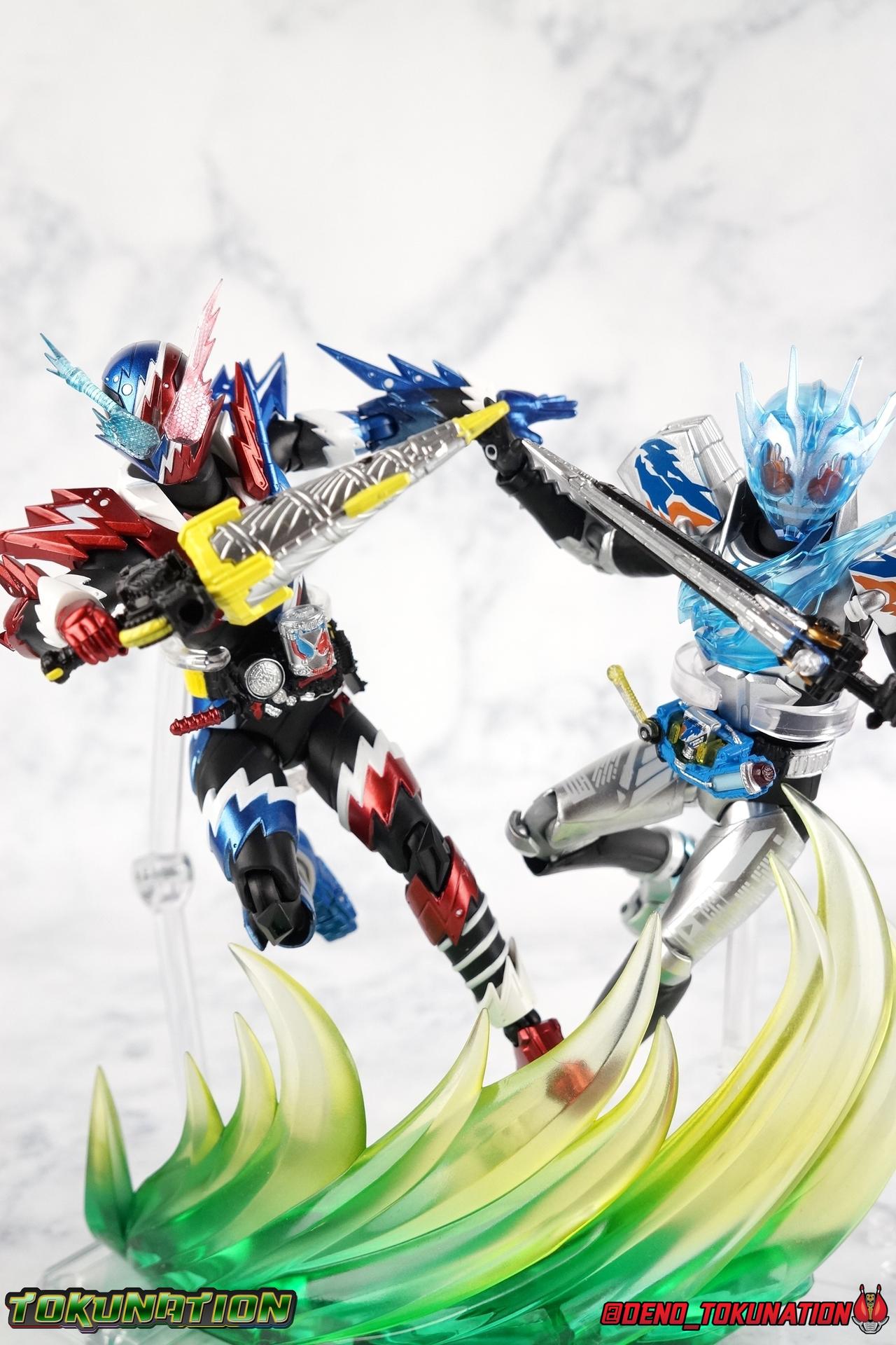 Faced with the truth about Souichi Isurugi & Blood Stalk, Sento has one last ditch plan to stop him. Distill the power of Pandora's Box into a new power up item! Now that he knows the truth about Souichi, and himself, can Sento really wield this power? Find out in our gallery of S.H. Figuarts Kamen Rider Build Rabbit Tank Sparkling Form! Packaging Sparkling continues the trend of two-tone boxes for Build releases and much like the solid color Ex-Aid boxes, this style has gotten a bit stale rather quickly. Honestly it's not terribly important to me how boxes look anymore anyway. Main Figure Build Sparkling builds (HA HA HA) off of what we've seen from the line already, and I mean that literally. The main Build mold has only made 2 outings in the line so far as Rabbit/Tank and modified as Cross-Z. Sparkling sees it for a third time. If you've had experience with either of those releases then you know all the essentials of this mold and what it can do. Here's a brief refresher. With the lower body, the legs are largely identical to Build aside from the new electrical white strips. Like Cross-Z, Sparkling seems to have some tolerance issues with the legs. The knees creak on mine the same way Cross-Z's hips did. The hips are quite tight as well. So just be careful handling him, it seems like a recipe for disaster. Apply heat and shock oil where necessary. For articuation, these legs function identically to the last two uses of the mold. The Build Driver is once again carried over and identical to it's previous outings. The new feature here is of course the Rabbit Tank Sparkling Full Bottle which is modeled on a typical can of soda. The Bottle is removable, there's no functionality to it though, the pegs can't recede into the can form like the DX toy. Weirdly, because of the way it's designed to slot into the holes on the Driver, it can also fit nicely into the Bottle holster on the hip. For the upper body, the primary change is the new electrical burst pattern that stretches over the chest and up to the left shoulder. You can see the original diagonal lines from base Build's chest under the paint but the new sculpted detail obscures that somewhat. It's basically the same chest, just with these new details and paint on top. I also really dig thew little electric additions to the rabbit/tank protrusions on the shoulder. A new collar part has been added around the neck as well, continuing the electrical theme. With the arms we again see what are essentially identical parts to base Build just with new detailing, each forearm also now has a new protrusion on top of the detailing. The biggest change comes in the new shoulder pads which can look a little awkward depending on the angle you move them to. I tended to pop them off by accident a number of time while shooting this gallery. While keeping in line with the original Build's theme, Sparkling's head is by the far the best new addition. It's very much the super powered version of the Rabbit/Tank head, right down to the new electrified look of the compound eyes. I gotta say Sparkling has never been a favorite form of mine, but this head sells it so hard. It's just spot on. The new collar around the neck can get in the way of posing the head somewhat, but that's about the only drawback. Quite often, people have made the joke of "Sparkling is Pepsiman" which totally makes sense given this form's color scheme. I took that a bit further with some bonus shots attached in the second post. I hope you enjoy Target: Pepsi Prime! Accessories Sadly, Sparkling follows the standard Rabbit/Tank form's lead and comes with minimal accessories: 10 - additional hands. Weirdly not all in matching pairs either. 3 left hands, and 7 right hands of various posers. Which include multiple to hold weapons he doesn't actually come with and ride a motorcycle that was a previous web exclusive and included said weapons. The hand variety is fantastic. Honestly, I wish regular Rabbit/Tank had come this sort of variety. But these go a long way to helping Sparkilng feel like it has more than it does since it can utilize things from the rest of the line. If you're like me and had already picked up Machine Builder with the parts set then this figure is a perfect compliment. If not, then you'll likely be quite disappointed with the accessory selection here. Final thoughts Overall this is a really solid remold of a base figure that I quite like. I didn't really expect to like Sparkling that much, but it's succeeded in being a really great little addition to my Build collection. I usually tend to go completionist on shows I love and I'm really happy I did in this case. Build Sparkling Form is a really unexpectedly fun addition to any Build collection.