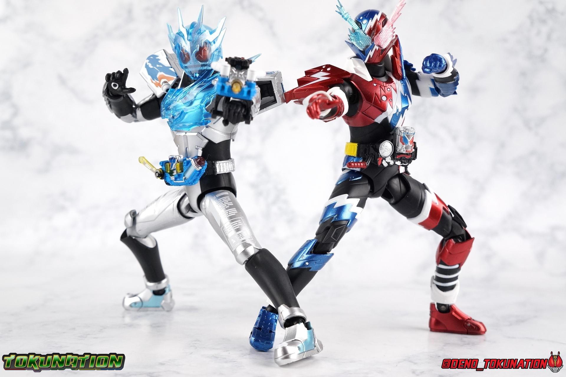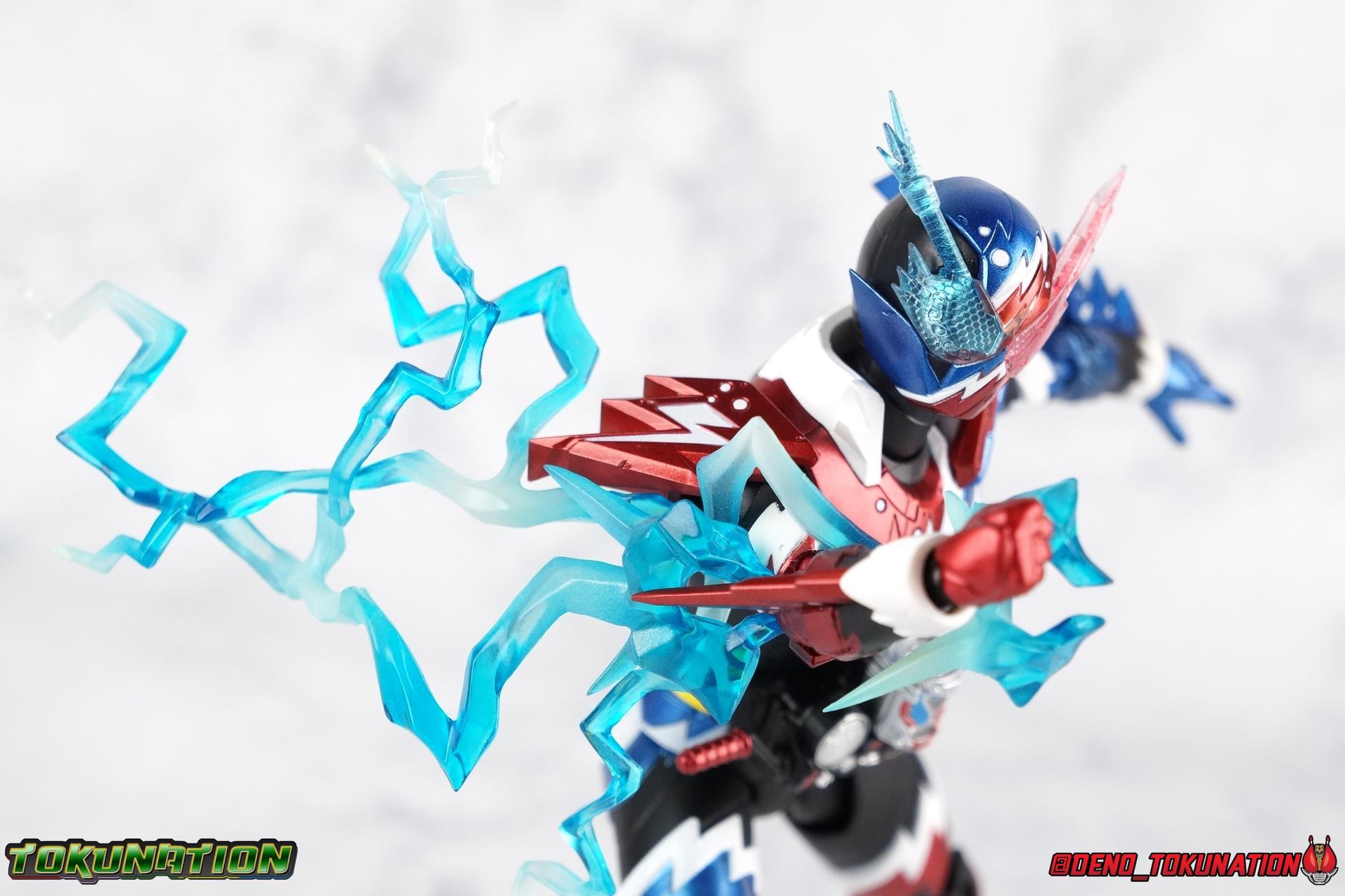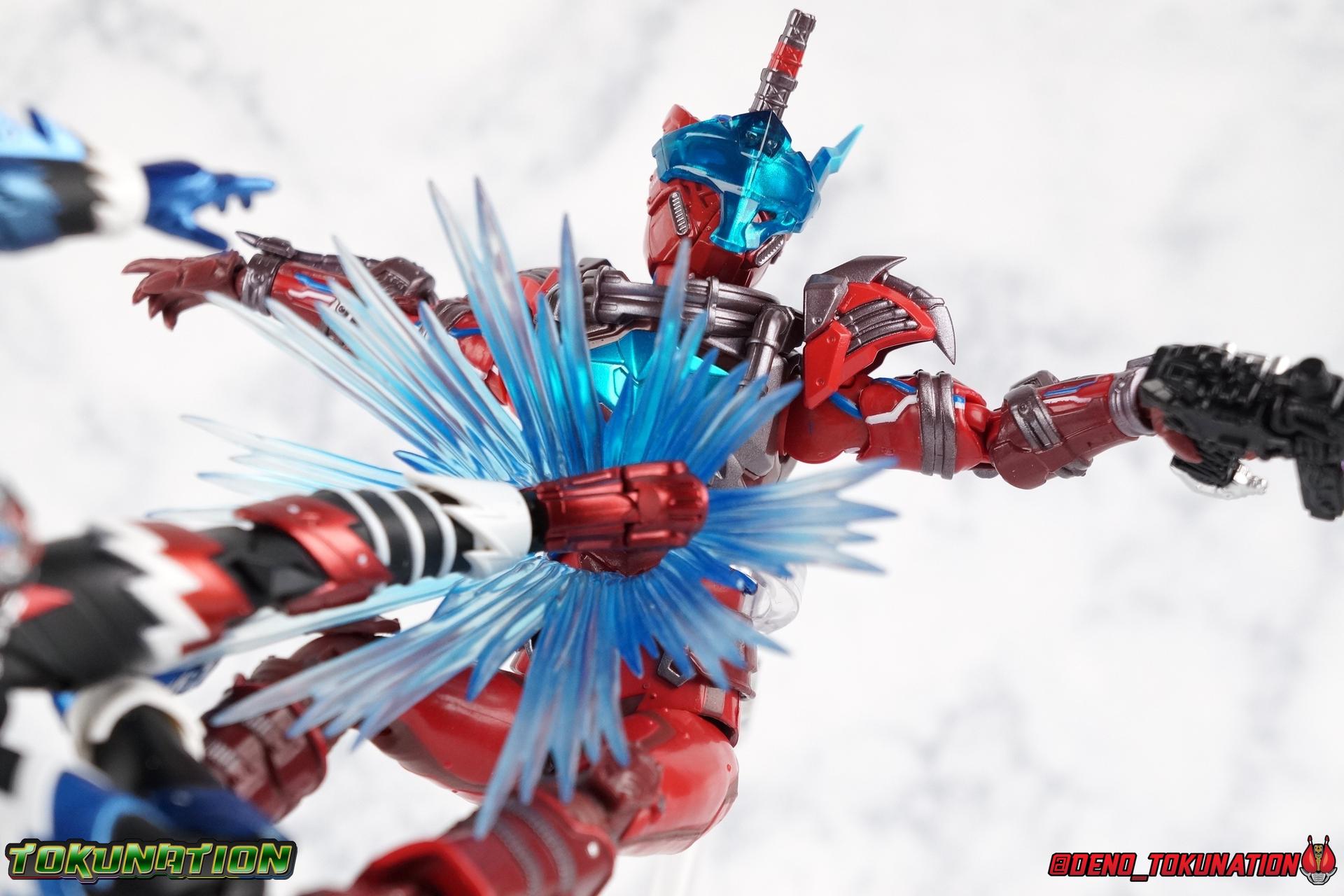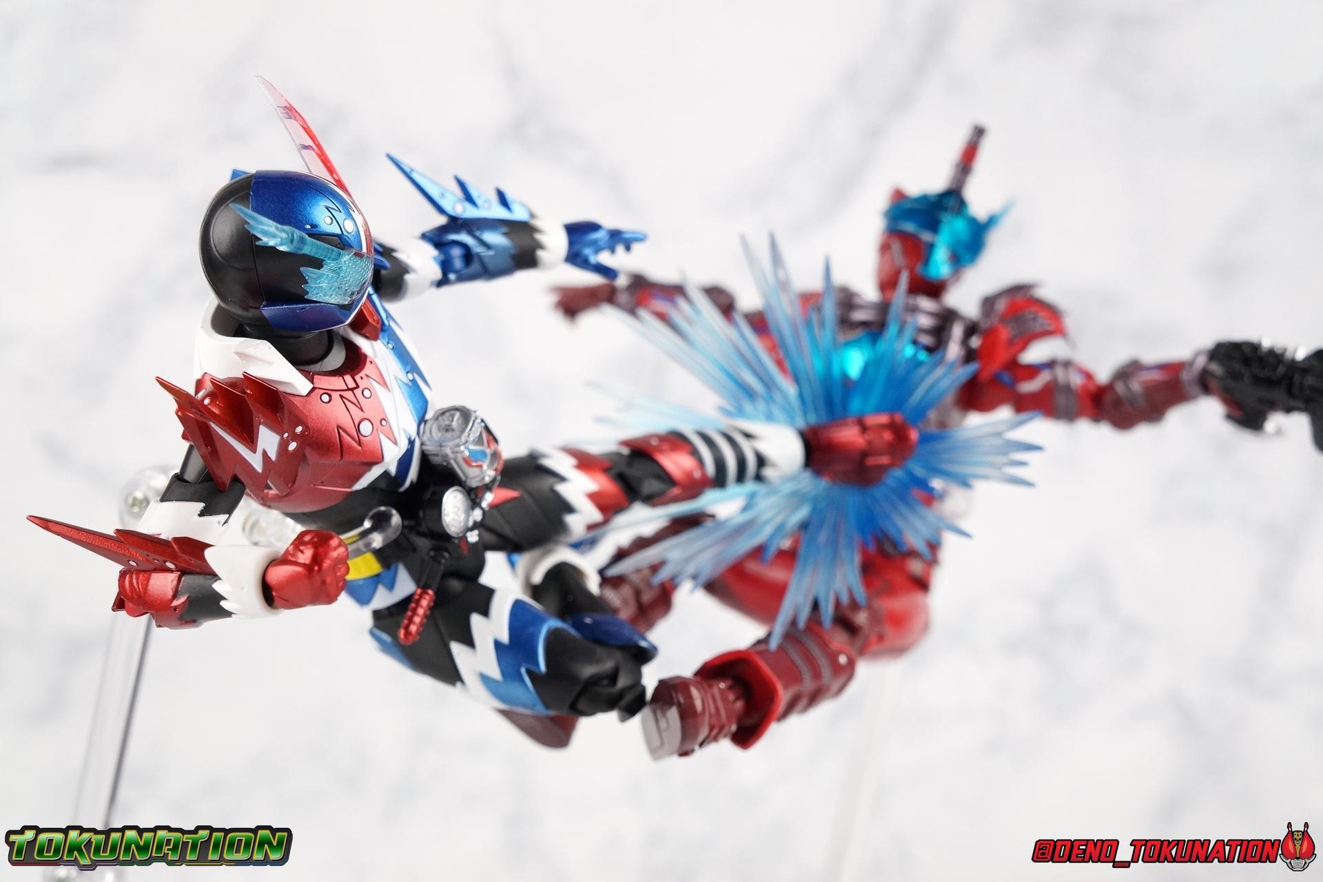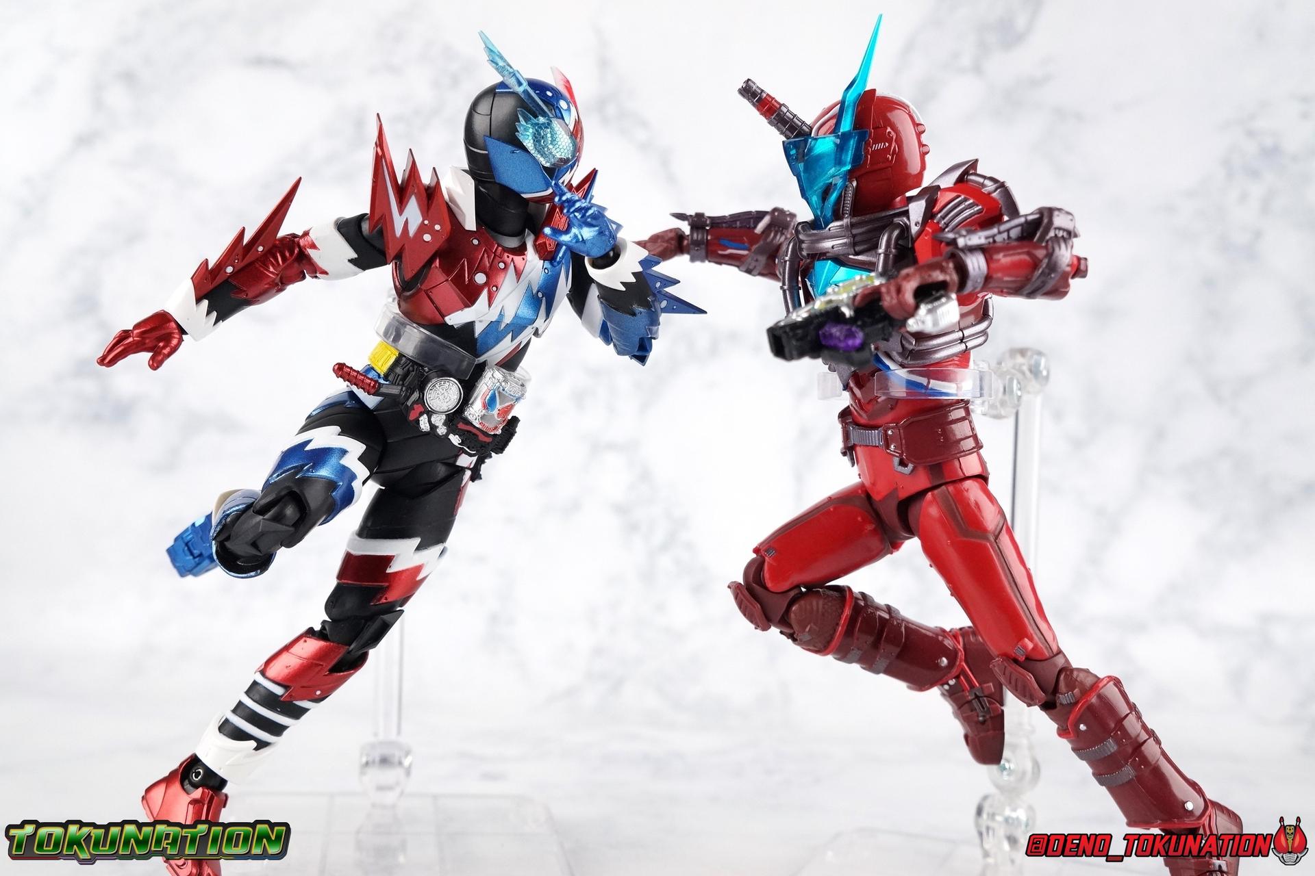 Faced with the truth about Souichi Isurugi & Blood Stalk, Sento has one last ditch plan to stop him. Distill the power of Pandora's Box into a new power up item! Now that he knows the truth about Souichi, and himself, can Sento really wield this power? Find out in our gallery of S.H. Figuarts Kamen Rider Build Rabbit Tank Sparkling Form! Packaging Sparkling continues the trend of two-tone boxes for Build releases and much like the solid color Ex-Aid boxes, this style has gotten a bit stale rather quickly. Honestly it's not terribly important to me how boxes look anymore anyway. Main Figure Build Sparkling builds (HA HA HA) off of what we've seen from the line already, and I mean that literally. The main Build mold has only made 2 outings in the line so far as Rabbit/Tank and modified as Cross-Z. Sparkling sees it for a third time. If you've had experience with either of those releases then you know all the essentials of this mold and what it can do. Here's a brief refresher. With the lower body, the legs are largely identical to Build aside from the new electrical white strips. Like Cross-Z, Sparkling seems to have some tolerance issues with the legs. The knees creak on mine the same way Cross-Z's hips did. The hips are quite tight as well. So just be careful handling him, it seems like a recipe for disaster. Apply heat and shock oil where necessary. For articuation, these legs function identically to the last two uses of the mold. The Build Driver is once again carried over and identical to it's previous outings. The new feature here is of course the Rabbit Tank Sparkling Full Bottle which is modeled on a typical can of soda. The Bottle is removable, there's no functionality to it though, the pegs can't recede into the can form like the DX toy. Weirdly, because of the way it's designed to slot into the holes on the Driver, it can also fit nicely into the Bottle holster on the hip. For the upper body, the primary change is the new electrical burst pattern that stretches over the chest and up to the left shoulder. You can see the original diagonal lines from base Build's chest under the paint but the new sculpted detail obscures that somewhat. It's basically the same chest, just with these new details and paint on top. I also really dig thew little electric additions to the rabbit/tank protrusions on the shoulder. A new collar part has been added around the neck as well, continuing the electrical theme. With the arms we again see what are essentially identical parts to base Build just with new detailing, each forearm also now has a new protrusion on top of the detailing. The biggest change comes in the new shoulder pads which can look a little awkward depending on the angle you move them to. I tended to pop them off by accident a number of time while shooting this gallery. While keeping in line with the original Build's theme, Sparkling's head is by the far the best new addition. It's very much the super powered version of the Rabbit/Tank head, right down to the new electrified look of the compound eyes. I gotta say Sparkling has never been a favorite form of mine, but this head sells it so hard. It's just spot on. The new collar around the neck can get in the way of posing the head somewhat, but that's about the only drawback. Quite often, people have made the joke of "Sparkling is Pepsiman" which totally makes sense given this form's color scheme. I took that a bit further with some bonus shots attached in the second post. I hope you enjoy Target: Pepsi Prime! Accessories Sadly, Sparkling follows the standard Rabbit/Tank form's lead and comes with minimal accessories: 10 - additional hands. Weirdly not all in matching pairs either. 3 left hands, and 7 right hands of various posers. Which include multiple to hold weapons he doesn't actually come with and ride a motorcycle that was a previous web exclusive and included said weapons. The hand variety is fantastic. Honestly, I wish regular Rabbit/Tank had come this sort of variety. But these go a long way to helping Sparkilng feel like it has more than it does since it can utilize things from the rest of the line. If you're like me and had already picked up Machine Builder with the parts set then this figure is a perfect compliment. If not, then you'll likely be quite disappointed with the accessory selection here. Final thoughts Overall this is a really solid remold of a base figure that I quite like. I didn't really expect to like Sparkling that much, but it's succeeded in being a really great little addition to my Build collection. I usually tend to go completionist on shows I love and I'm really happy I did in this case. Build Sparkling Form is a really unexpectedly fun addition to any Build collection.