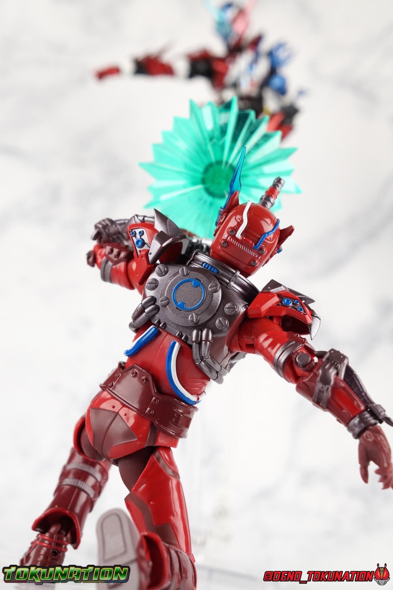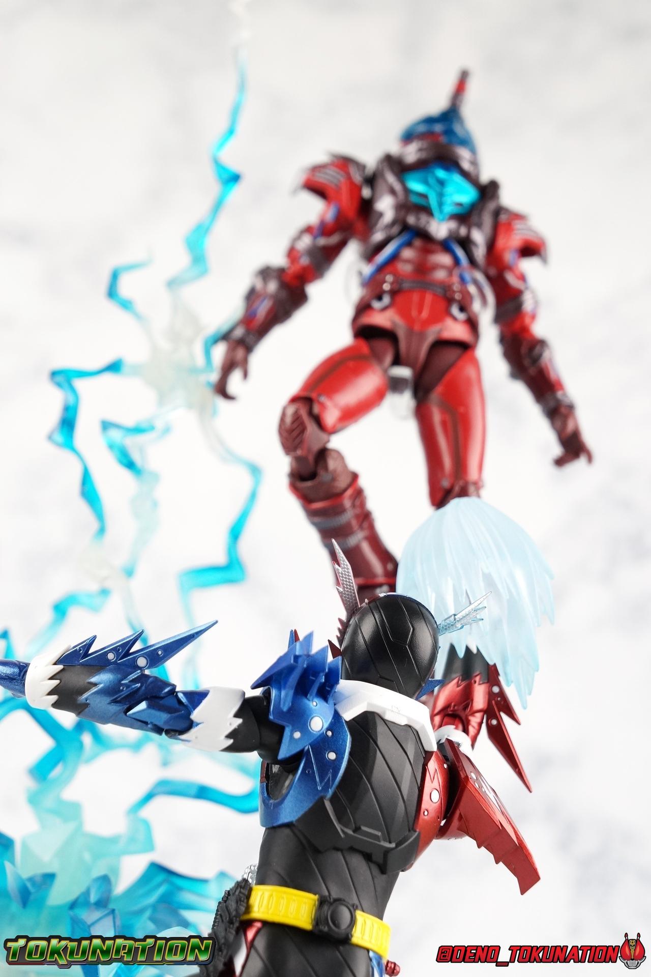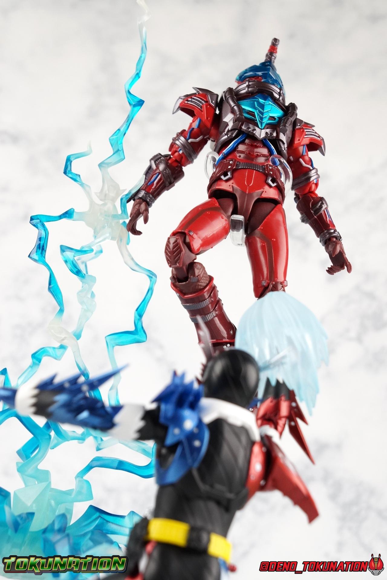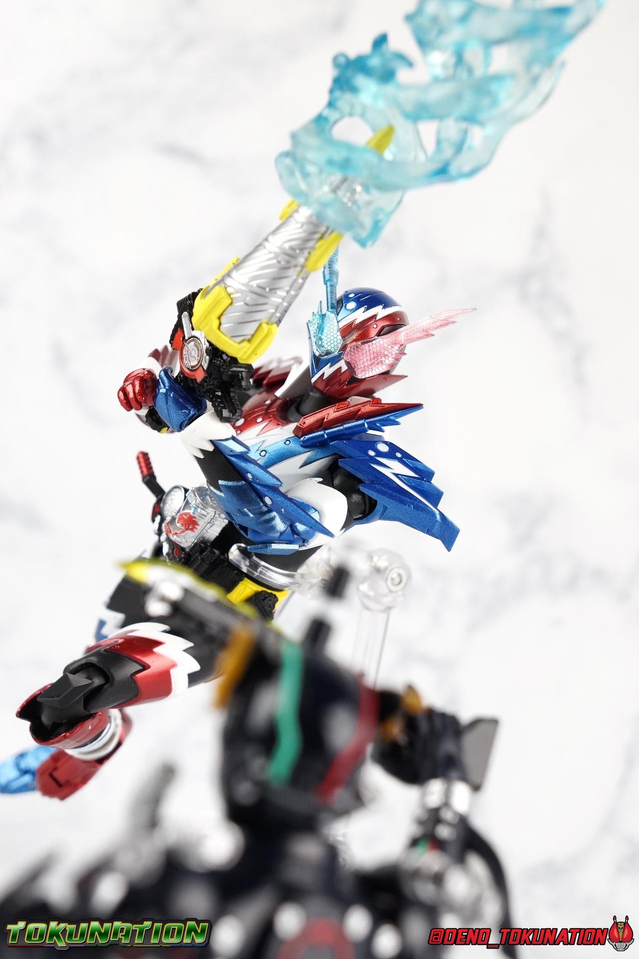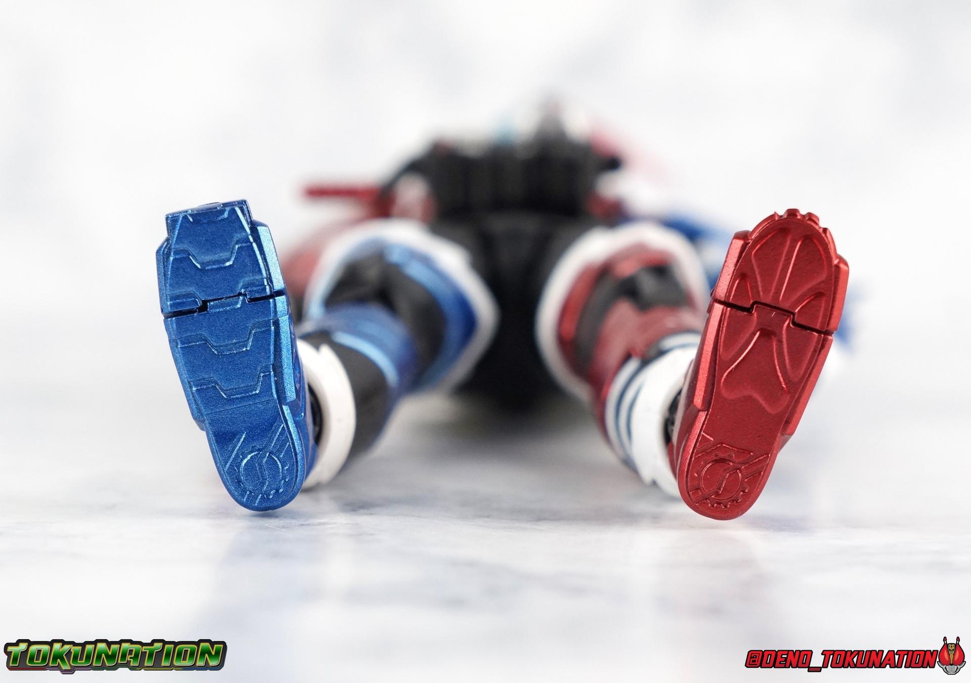 Faced with the truth about Souichi Isurugi & Blood Stalk, Sento has one last ditch plan to stop him. Distill the power of Pandora's Box into a new power up item! Now that he knows the truth about Souichi, and himself, can Sento really wield this power? Find out in our gallery of S.H. Figuarts Kamen Rider Build Rabbit Tank Sparkling Form! Packaging Sparkling continues the trend of two-tone boxes for Build releases and much like the solid color Ex-Aid boxes, this style has gotten a bit stale rather quickly. Honestly it's not terribly important to me how boxes look anymore anyway. Main Figure Build Sparkling builds (HA HA HA) off of what we've seen from the line already, and I mean that literally. The main Build mold has only made 2 outings in the line so far as Rabbit/Tank and modified as Cross-Z. Sparkling sees it for a third time. If you've had experience with either of those releases then you know all the essentials of this mold and what it can do. Here's a brief refresher. With the lower body, the legs are largely identical to Build aside from the new electrical white strips. Like Cross-Z, Sparkling seems to have some tolerance issues with the legs. The knees creak on mine the same way Cross-Z's hips did. The hips are quite tight as well. So just be careful handling him, it seems like a recipe for disaster. Apply heat and shock oil where necessary. For articuation, these legs function identically to the last two uses of the mold. The Build Driver is once again carried over and identical to it's previous outings. The new feature here is of course the Rabbit Tank Sparkling Full Bottle which is modeled on a typical can of soda. The Bottle is removable, there's no functionality to it though, the pegs can't recede into the can form like the DX toy. Weirdly, because of the way it's designed to slot into the holes on the Driver, it can also fit nicely into the Bottle holster on the hip. For the upper body, the primary change is the new electrical burst pattern that stretches over the chest and up to the left shoulder. You can see the original diagonal lines from base Build's chest under the paint but the new sculpted detail obscures that somewhat. It's basically the same chest, just with these new details and paint on top. I also really dig thew little electric additions to the rabbit/tank protrusions on the shoulder. A new collar part has been added around the neck as well, continuing the electrical theme. With the arms we again see what are essentially identical parts to base Build just with new detailing, each forearm also now has a new protrusion on top of the detailing. The biggest change comes in the new shoulder pads which can look a little awkward depending on the angle you move them to. I tended to pop them off by accident a number of time while shooting this gallery. While keeping in line with the original Build's theme, Sparkling's head is by the far the best new addition. It's very much the super powered version of the Rabbit/Tank head, right down to the new electrified look of the compound eyes. I gotta say Sparkling has never been a favorite form of mine, but this head sells it so hard. It's just spot on. The new collar around the neck can get in the way of posing the head somewhat, but that's about the only drawback. Quite often, people have made the joke of "Sparkling is Pepsiman" which totally makes sense given this form's color scheme. I took that a bit further with some bonus shots attached in the second post. I hope you enjoy Target: Pepsi Prime! Accessories Sadly, Sparkling follows the standard Rabbit/Tank form's lead and comes with minimal accessories: 10 - additional hands. Weirdly not all in matching pairs either. 3 left hands, and 7 right hands of various posers. Which include multiple to hold weapons he doesn't actually come with and ride a motorcycle that was a previous web exclusive and included said weapons. The hand variety is fantastic. Honestly, I wish regular Rabbit/Tank had come this sort of variety. But these go a long way to helping Sparkilng feel like it has more than it does since it can utilize things from the rest of the line. If you're like me and had already picked up Machine Builder with the parts set then this figure is a perfect compliment. If not, then you'll likely be quite disappointed with the accessory selection here. Final thoughts Overall this is a really solid remold of a base figure that I quite like. I didn't really expect to like Sparkling that much, but it's succeeded in being a really great little addition to my Build collection. I usually tend to go completionist on shows I love and I'm really happy I did in this case. Build Sparkling Form is a really unexpectedly fun addition to any Build collection.