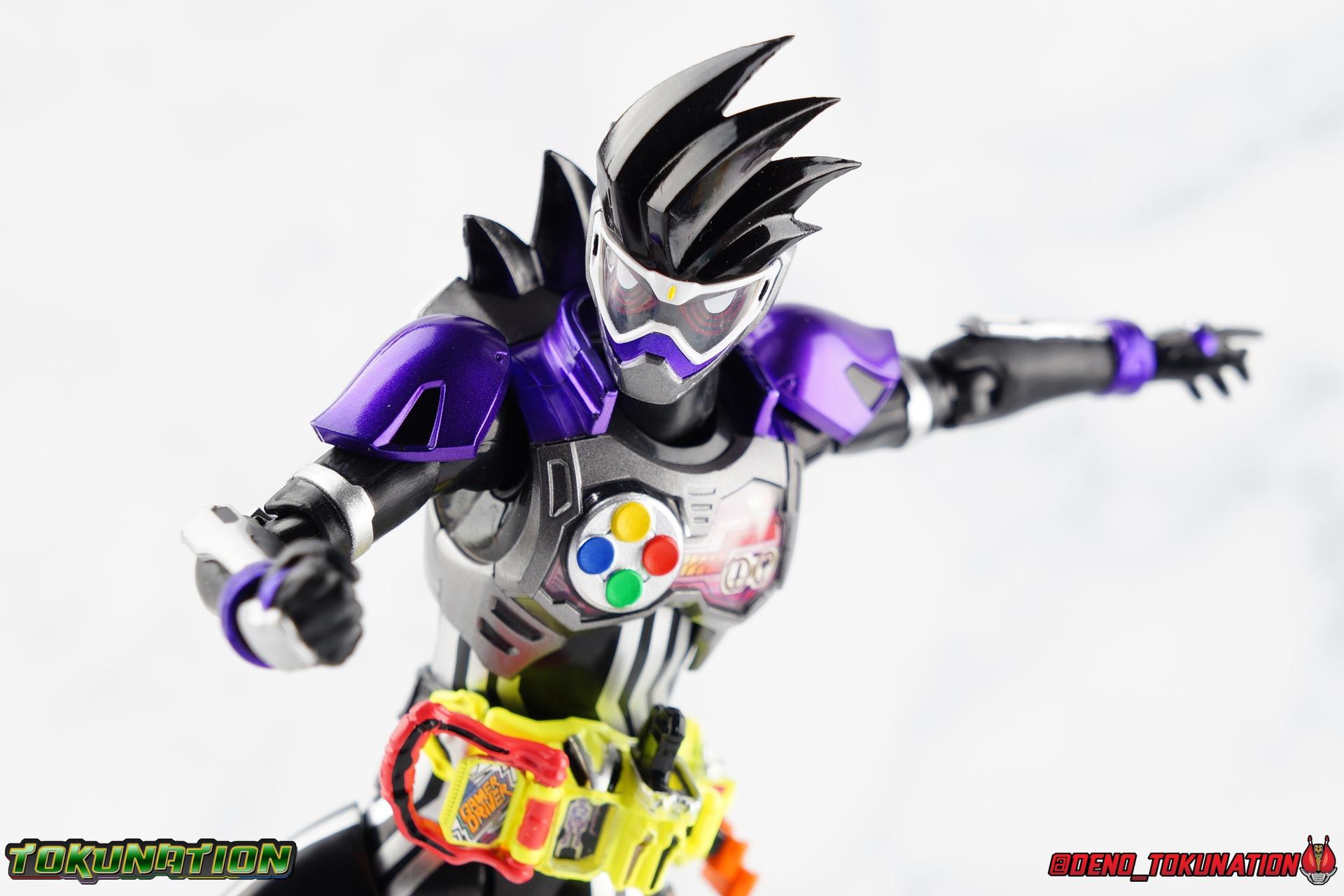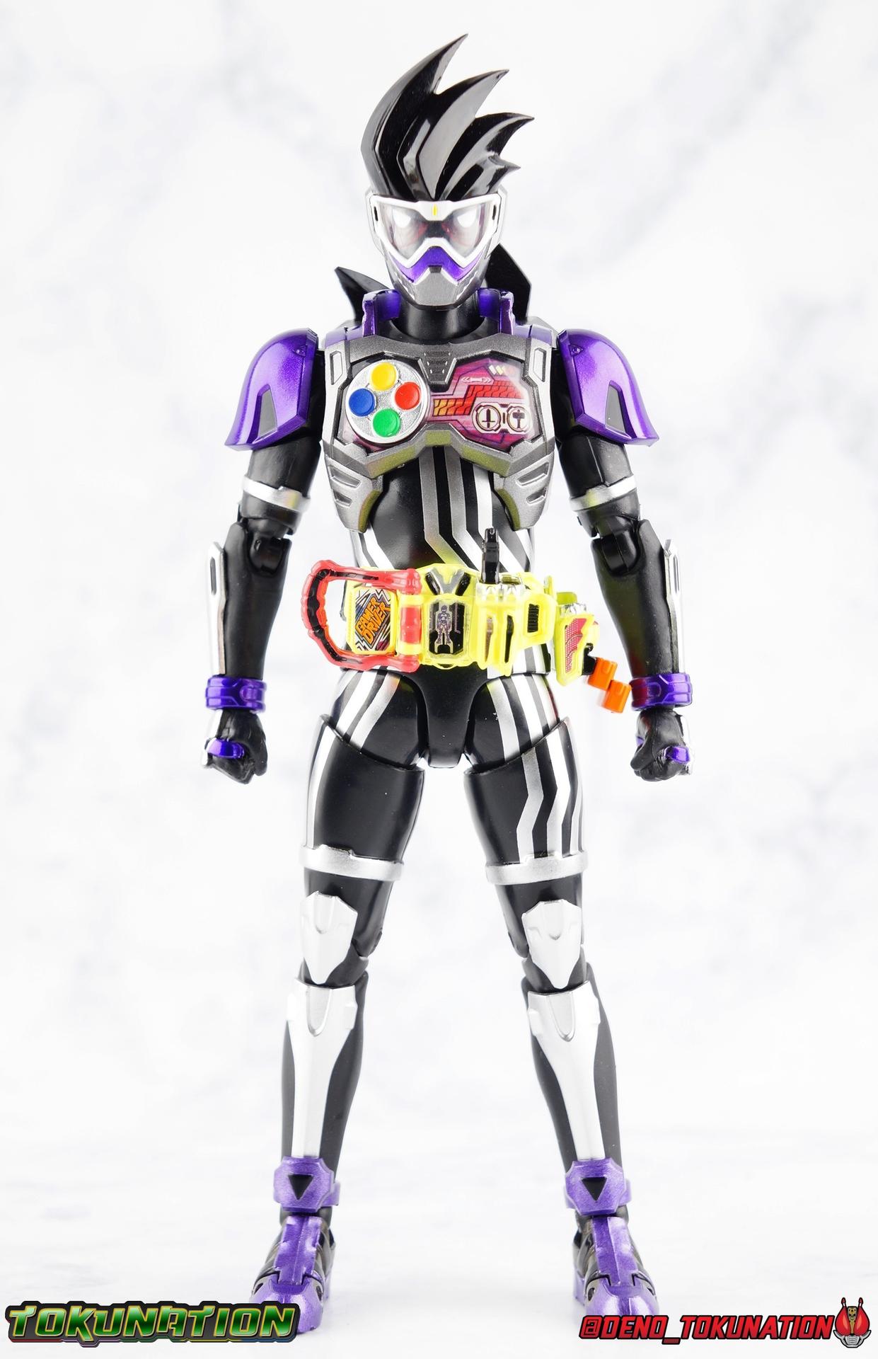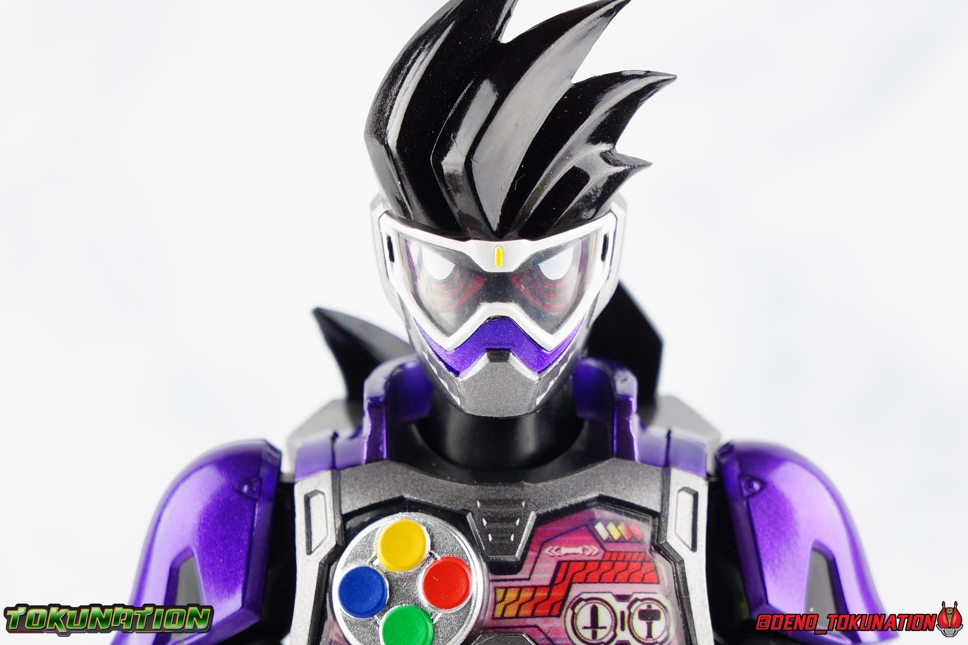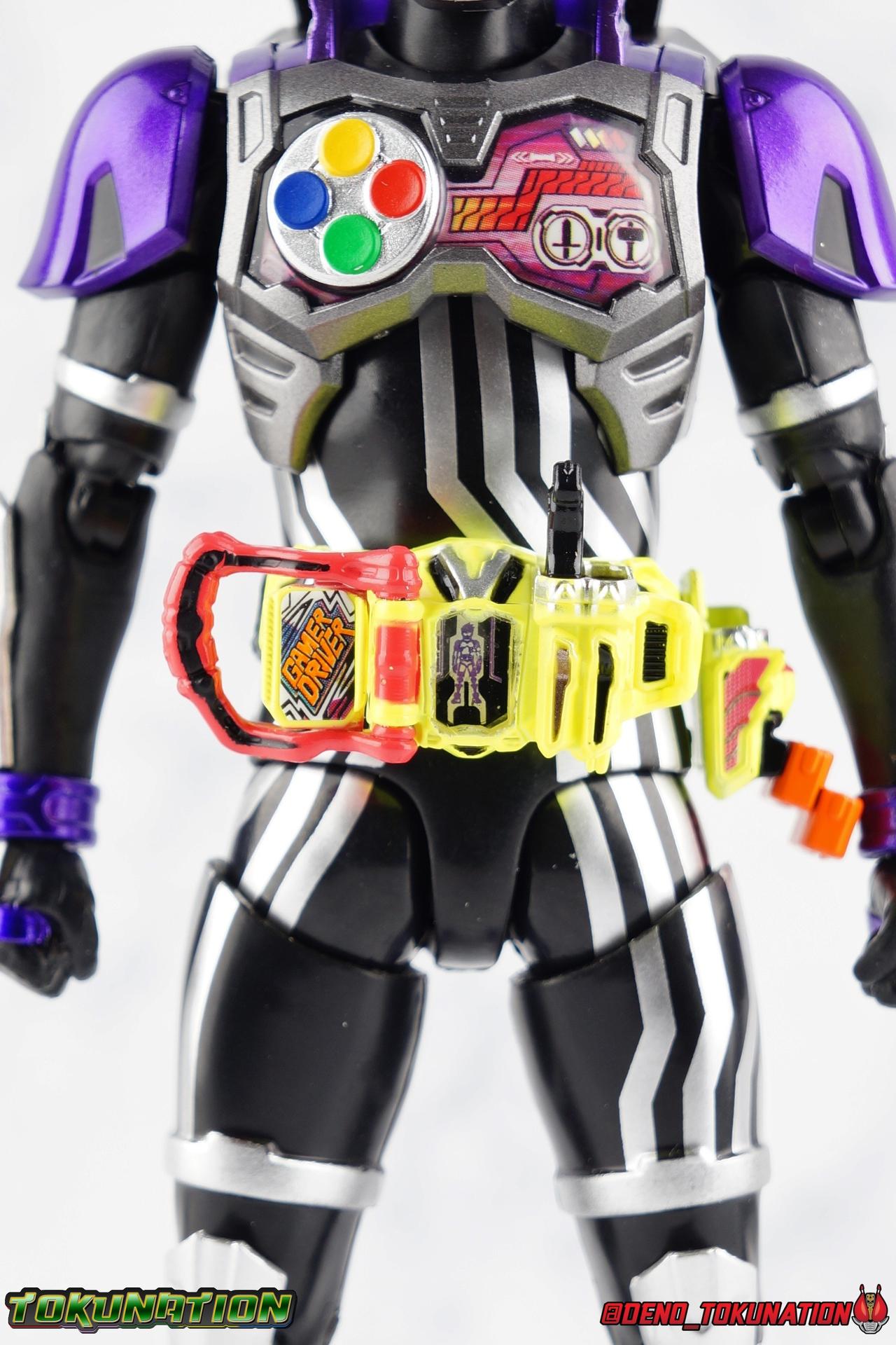 We've previously taken looks at the exceedingly popular GenM Level X/Dangerous Zombie and GenM Level 2, but finally Bandai has recreated Kuroto's most important form. The one that represents not only his return to life, but also his (temporary) shift to side of our heroes. This form represents the character's popularity itself even. Having been brought back from a pretty final death, and worked back in as an integral part of the winning side. It's safe to say that although this is not his most powerful form, this is probably GenM's most important one. So let's take a look at just how S.H. Figuarts Kamen Rider GenM Action Gamer Level 0 has turned out! Packaging Unlike GenM Level 2, Level 0 comes in far more standard packaging. A box that fits right in with the rest of the Ex-Aid line. It's pretty standard stuff by this point. Main Figure This review is basically identical to that of my GenM Level 2 one. There are minor paint app differences between the two. The accessories will be the real departure so feel free to jump down to that section if you like. GenM Action Gamer Level 0 utilizes the familiar Mighty Action X body type we've come to know and love. A mold utilized for damn near every figure in the Ex-Aid subline. This mold brings with it all the meticulous molded details and paint apps we've previously seen before. Much as with GenM Level 2, Level 0 is just lavishly executed. From the ground up this body type is a sold build. Physically I still nitpick the ankles on this mold, as the slight limitations to them irk me, especially moving forward. And getting GenM into a good pose is a total necessity for his character. Kuroto was an incredibly expressive character, so poseability is paramount. You really have to work with these feet, but they can get the job done. The knees have a great bend that helps add to the general athletic platformer theme of the figure. Much like with GenM Level x, I take issue with some sloppy paint flecks around the silver striping on the legs. There are plenty of flecks on the thighs and minor defects that are an annoyance on an expensive event exclusive such as this one. The Gamer Driver for this figure is the same standard one we've seen a countless number of times now. I still think it's an incredible to-scale replica. The Driver handle can flip shut, thus hiding the rider read out on the front screen as well, a read out which is identical to Level 2. The upper right of the driver has 2 slots for Gasshats. One is already attached in the form of the Proto-Mighty Action X Origin Gasshat. This one is black compared to the purple Proto Gashat that came with Level 2. As is standard, this is a dummy Gashat that can be reattached to any compatible Driver, holster, or Gashacon weapon. To the right of the driver, is a Gashat holster. There are 2 slots for extra Gasshats as well as 1 slot for a Critical Finish to be inserted. As with Ex-Aid, GenM's chest detailing is magnificent. And unlike a few other releases in the line, interior label used for the Rider Gauge is flawless. The paint apps on the outer layer are crisp and clear here for the most part as well. On the flip side of the torso is the deactivated Level 1 head. It's a bit stylized and shrunk down, but that's as it should be if TV CG magic could really work in toy form. Not to be forgotten are the arms, which admittedly only have one flaw that I'm truly bothered by, and that's the shoulder pads. Not because they impact the articulation, but because they pop off easily when fully extending the arms. This release however does have VERY finicky elbow pads which pop off with the slightest pressure. I had the same problem with my Ex-Aid forever ago but oddly not really with anything in the Ex-Aid line since. The wrists are solid, the elbows fully functional and the bicep swivels uninhibited & welcome as always. Finally that brings us to the head. This is where the most egregious paint issues are present. The white paint used for the visor is just really poorly applied, an issue that's been present on the last two GenM releases as well. Lot's of hazy overspray around the edges and a ton of flecks on the visor itself. Honestly the clear part of the visor looks dirty or scratched or just, somehow off. The "hair" of the helmet likewise has a number of paint flecks that really detract from it's overall look. Otherwise, I think the shape of the head is generally great, and the hair looks very solid. Lots of people took issue with this head on the original Ex-Aid release, but I've always thought it looked pretty spot on. I will say that this go around, the eyes are seemingly too far apart. Overall not a bad effort, just not terribly different physically or quality wise from the Level 2 release. Accessories GenM Level 2 came out as a Tamashii Nations exclusive a while back, and included with it the Shakariki Sports bike as a sort of bonus. The later Tamashii Web Shop release would not include this piece. That one large accessory is the big difference between the two releases, but Level 0 honestly comes with a lot: 3 - set of hands. 2 varieties of open palm hands and 1 set for holding things, like weapons or bike handles. Honestly they're a bit too narrow for the included weapons. 1 - Gashacon Breaker Blade Mode. Kuroto wasn't really seen much (if at all) using the Hammer mode, so they've opted to just go with the sword version for this release. The grip is just a bit too thick to be held well, but it works alright. Paint app work on a weapon like this could always be better as well. 1 - set of Bug Visor Zwei parts. This accessory is actually split into a few pieces though out of box it comes in the Chainsaw mode, although the saw form is not the standard mode of the weapon. The Bug Visor itself is just a plate in the center that makes up most of the mass of the accessory. It's attached to a long board with the saw extended on one end. The Grip Knuckle is likewise a separate part plugged onto this board. An alternate 