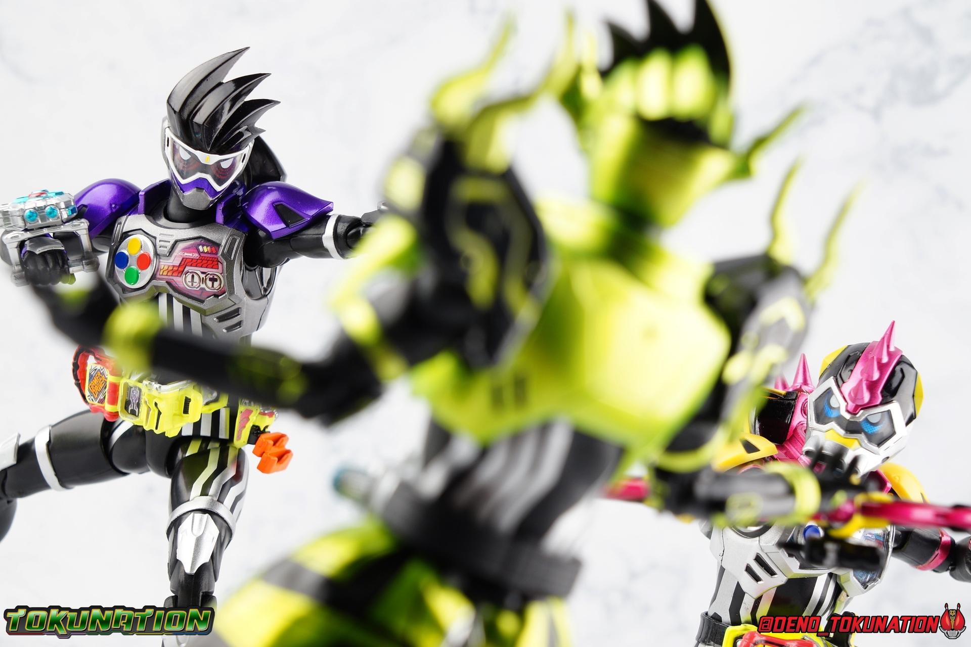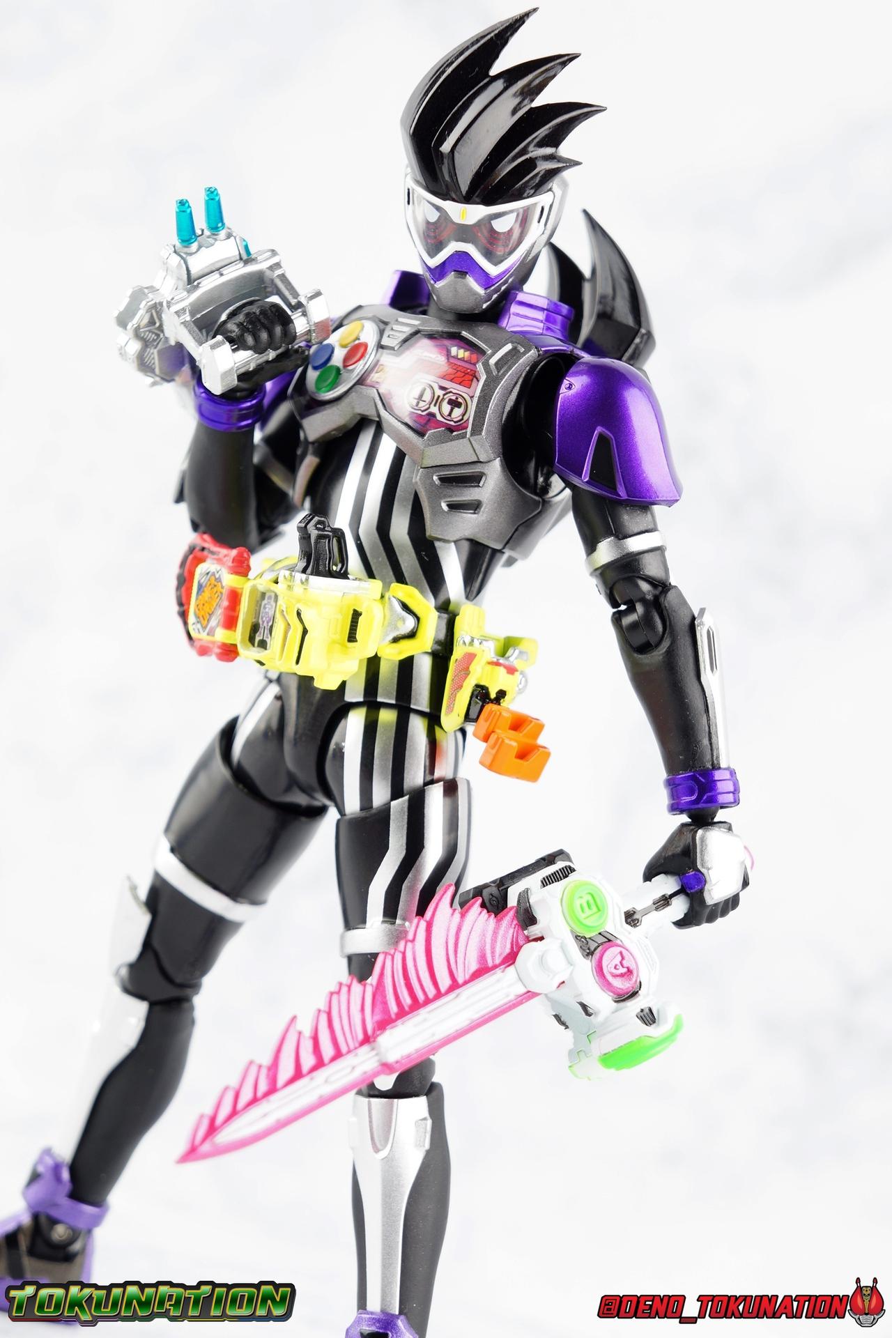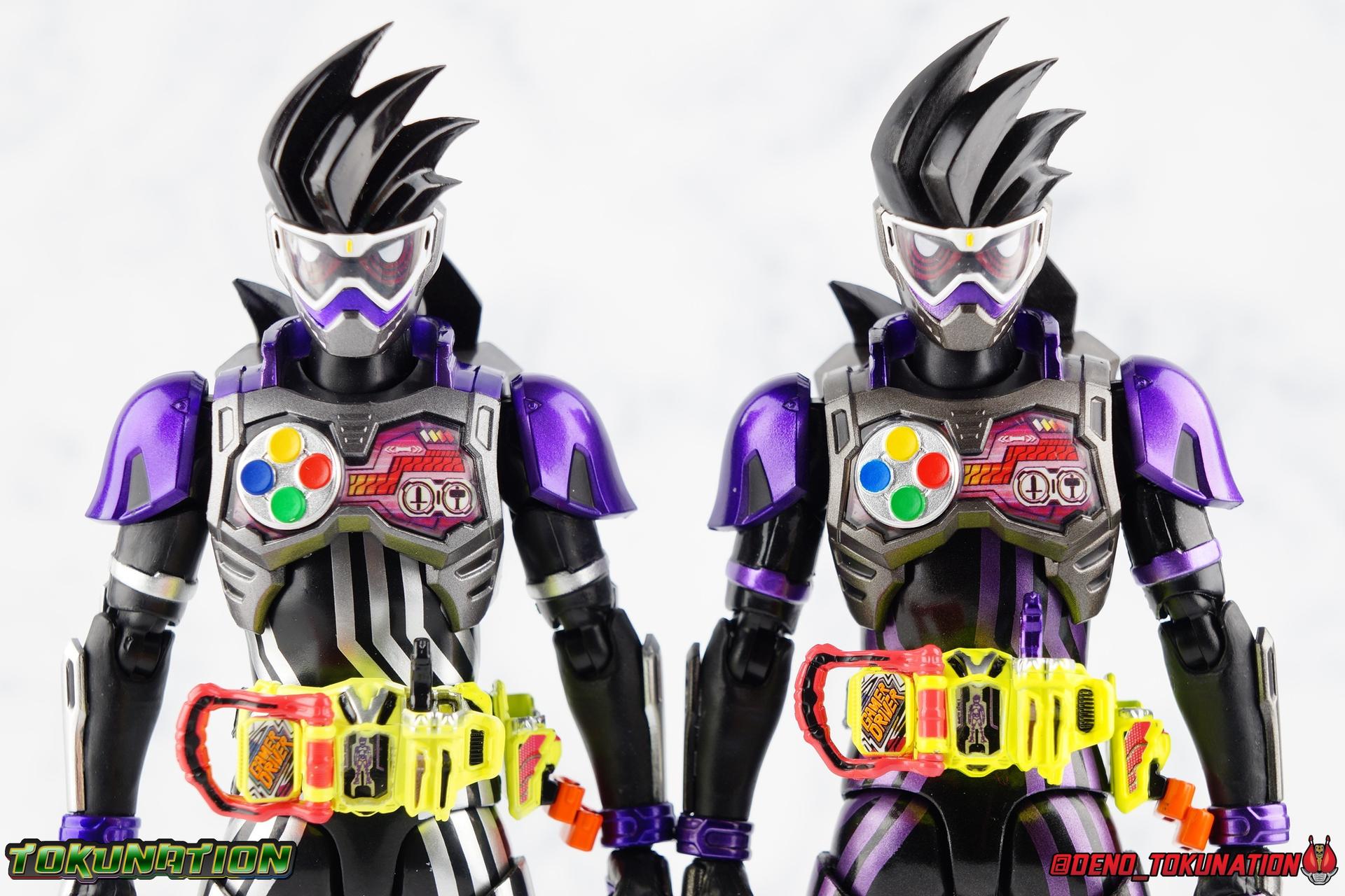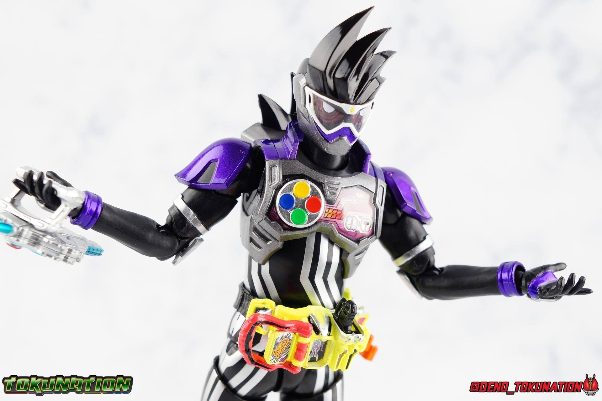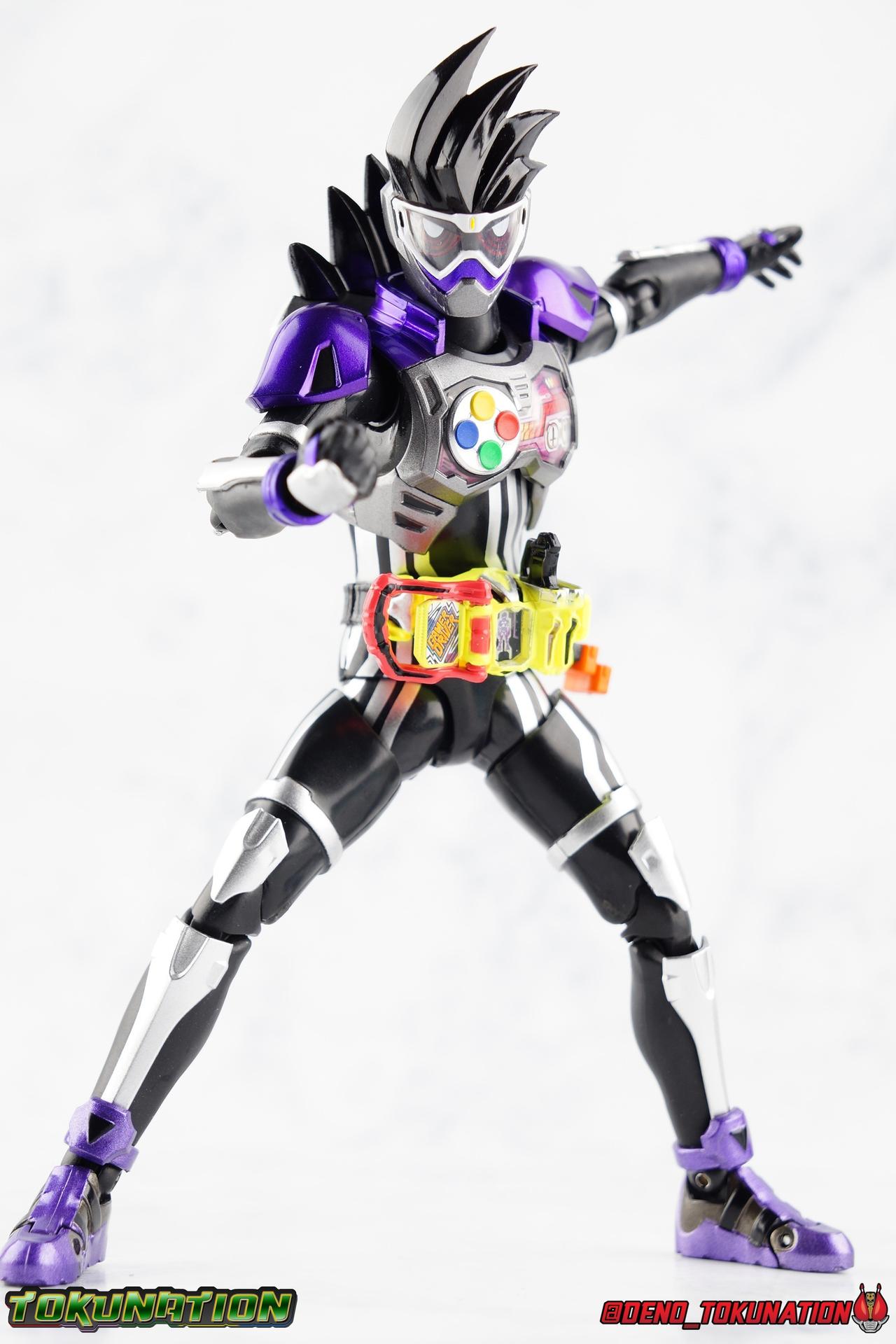 We've previously taken looks at the exceedingly popular GenM Level X/Dangerous Zombie and GenM Level 2, but finally Bandai has recreated Kuroto's most important form. The one that represents not only his return to life, but also his (temporary) shift to side of our heroes. This form represents the character's popularity itself even. Having been brought back from a pretty final death, and worked back in as an integral part of the winning side. It's safe to say that although this is not his most powerful form, this is probably GenM's most important one. So let's take a look at just how S.H. Figuarts Kamen Rider GenM Action Gamer Level 0 has turned out! Packaging Unlike GenM Level 2, Level 0 comes in far more standard packaging. A box that fits right in with the rest of the Ex-Aid line. It's pretty standard stuff by this point. Main Figure This review is basically identical to that of my GenM Level 2 one. There are minor paint app differences between the two. The accessories will be the real departure so feel free to jump down to that section if you like. GenM Action Gamer Level 0 utilizes the familiar Mighty Action X body type we've come to know and love. A mold utilized for damn near every figure in the Ex-Aid subline. This mold brings with it all the meticulous molded details and paint apps we've previously seen before. Much as with GenM Level 2, Level 0 is just lavishly executed. From the ground up this body type is a sold build. Physically I still nitpick the ankles on this mold, as the slight limitations to them irk me, especially moving forward. And getting GenM into a good pose is a total necessity for his character. Kuroto was an incredibly expressive character, so poseability is paramount. You really have to work with these feet, but they can get the job done. The knees have a great bend that helps add to the general athletic platformer theme of the figure. Much like with GenM Level x, I take issue with some sloppy paint flecks around the silver striping on the legs. There are plenty of flecks on the thighs and minor defects that are an annoyance on an expensive event exclusive such as this one. The Gamer Driver for this figure is the same standard one we've seen a countless number of times now. I still think it's an incredible to-scale replica. The Driver handle can flip shut, thus hiding the rider read out on the front screen as well, a read out which is identical to Level 2. The upper right of the driver has 2 slots for Gasshats. One is already attached in the form of the Proto-Mighty Action X Origin Gasshat. This one is black compared to the purple Proto Gashat that came with Level 2. As is standard, this is a dummy Gashat that can be reattached to any compatible Driver, holster, or Gashacon weapon. To the right of the driver, is a Gashat holster. There are 2 slots for extra Gasshats as well as 1 slot for a Critical Finish to be inserted. As with Ex-Aid, GenM's chest detailing is magnificent. And unlike a few other releases in the line, interior label used for the Rider Gauge is flawless. The paint apps on the outer layer are crisp and clear here for the most part as well. On the flip side of the torso is the deactivated Level 1 head. It's a bit stylized and shrunk down, but that's as it should be if TV CG magic could really work in toy form. Not to be forgotten are the arms, which admittedly only have one flaw that I'm truly bothered by, and that's the shoulder pads. Not because they impact the articulation, but because they pop off easily when fully extending the arms. This release however does have VERY finicky elbow pads which pop off with the slightest pressure. I had the same problem with my Ex-Aid forever ago but oddly not really with anything in the Ex-Aid line since. The wrists are solid, the elbows fully functional and the bicep swivels uninhibited & welcome as always. Finally that brings us to the head. This is where the most egregious paint issues are present. The white paint used for the visor is just really poorly applied, an issue that's been present on the last two GenM releases as well. Lot's of hazy overspray around the edges and a ton of flecks on the visor itself. Honestly the clear part of the visor looks dirty or scratched or just, somehow off. The "hair" of the helmet likewise has a number of paint flecks that really detract from it's overall look. Otherwise, I think the shape of the head is generally great, and the hair looks very solid. Lots of people took issue with this head on the original Ex-Aid release, but I've always thought it looked pretty spot on. I will say that this go around, the eyes are seemingly too far apart. Overall not a bad effort, just not terribly different physically or quality wise from the Level 2 release. Accessories GenM Level 2 came out as a Tamashii Nations exclusive a while back, and included with it the Shakariki Sports bike as a sort of bonus. The later Tamashii Web Shop release would not include this piece. That one large accessory is the big difference between the two releases, but Level 0 honestly comes with a lot: 3 - set of hands. 2 varieties of open palm hands and 1 set for holding things, like weapons or bike handles. Honestly they're a bit too narrow for the included weapons. 1 - Gashacon Breaker Blade Mode. Kuroto wasn't really seen much (if at all) using the Hammer mode, so they've opted to just go with the sword version for this release. The grip is just a bit too thick to be held well, but it works alright. Paint app work on a weapon like this could always be better as well. 1 - set of Bug Visor Zwei parts. This accessory is actually split into a few pieces though out of box it comes in the Chainsaw mode, although the saw form is not the standard mode of the weapon. The Bug Visor itself is just a plate in the center that makes up most of the mass of the accessory. It's attached to a long board with the saw extended on one end. The Grip Knuckle is likewise a separate part plugged onto this board. An alternate 