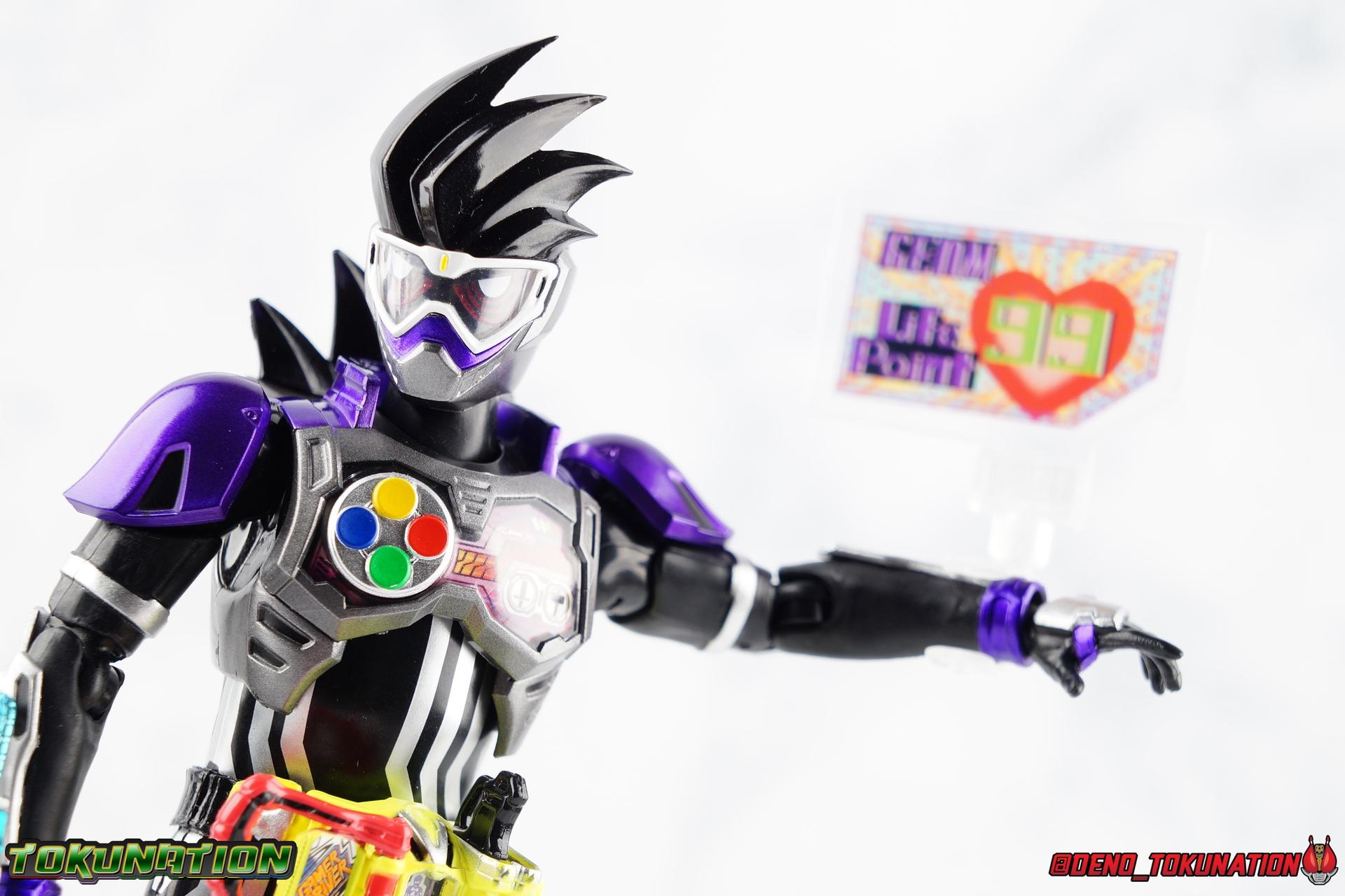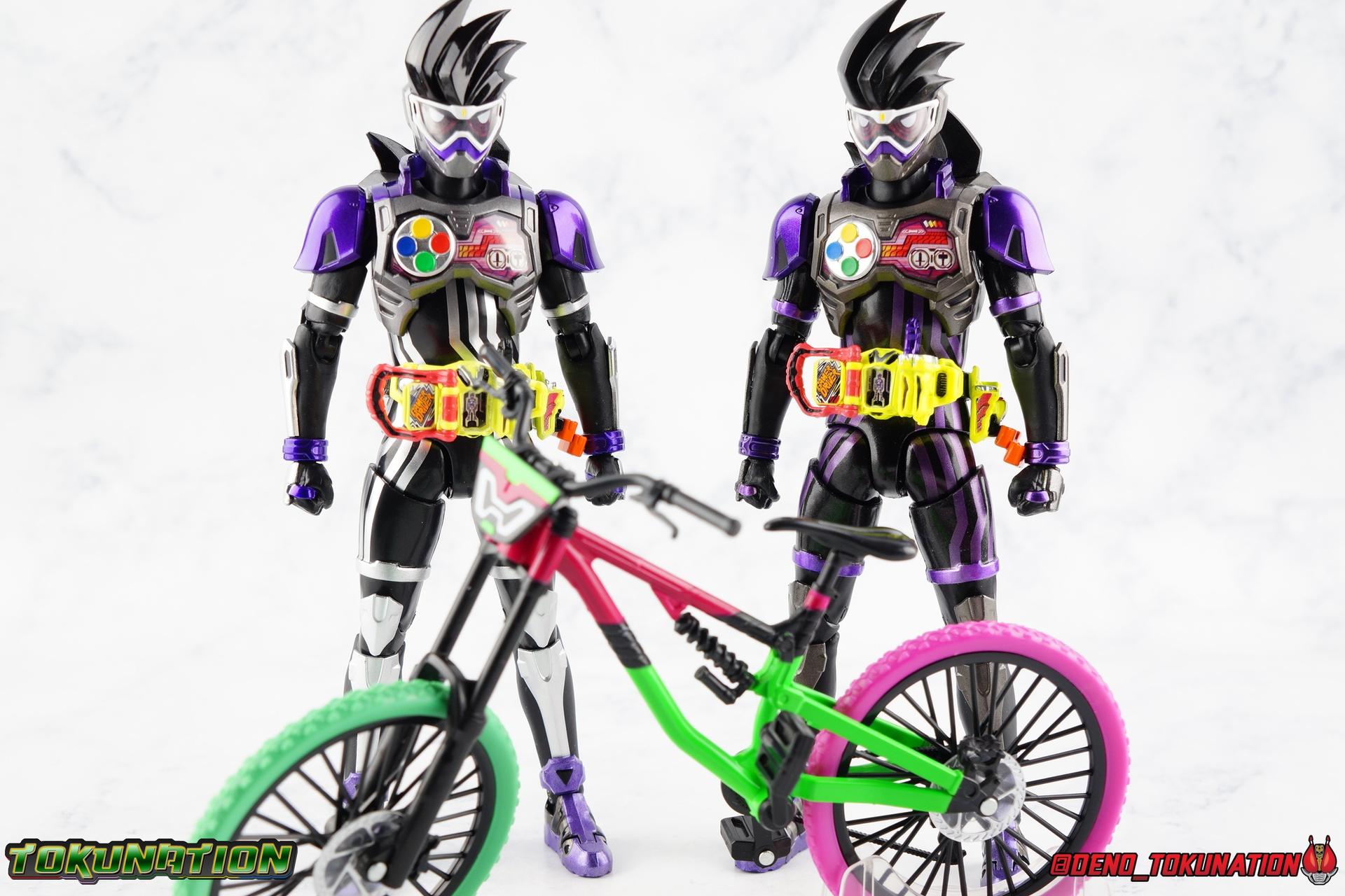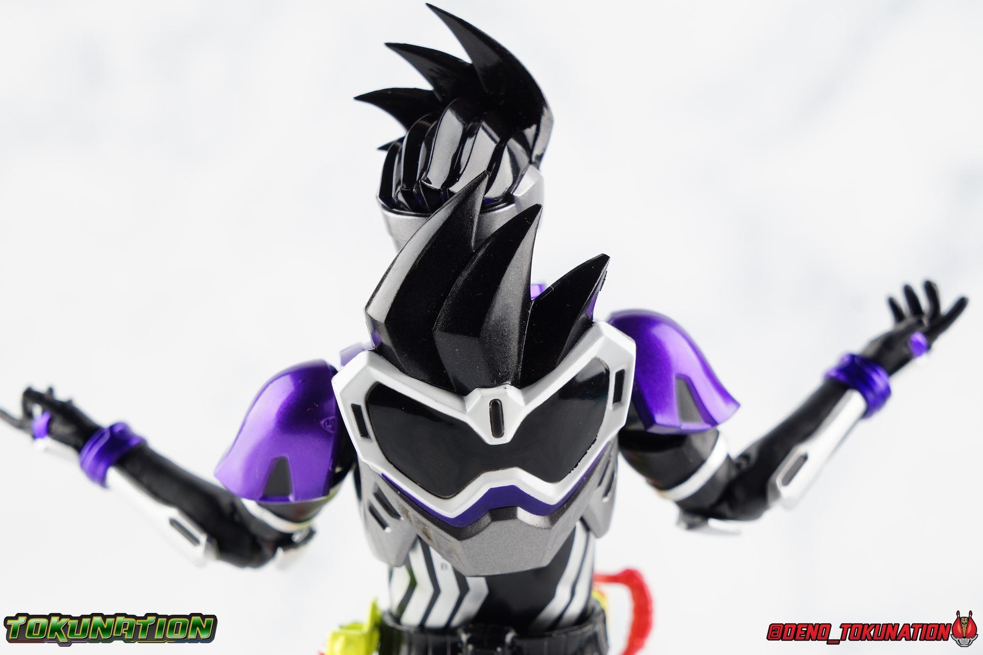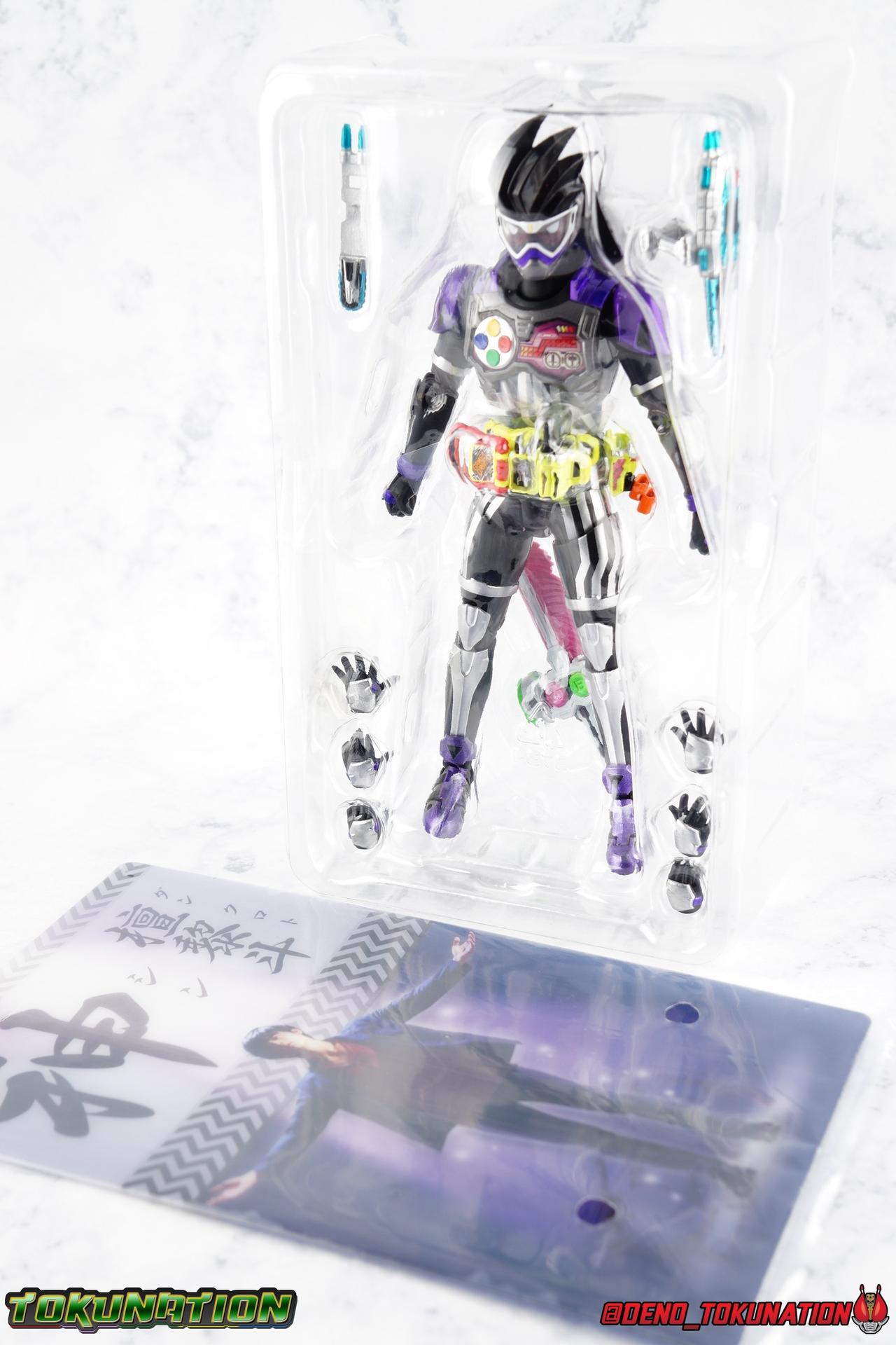 We've previously taken looks at the exceedingly popular GenM Level X/Dangerous Zombie and GenM Level 2, but finally Bandai has recreated Kuroto's most important form. The one that represents not only his return to life, but also his (temporary) shift to side of our heroes. This form represents the character's popularity itself even. Having been brought back from a pretty final death, and worked back in as an integral part of the winning side. It's safe to say that although this is not his most powerful form, this is probably GenM's most important one. So let's take a look at just how S.H. Figuarts Kamen Rider GenM Action Gamer Level 0 has turned out! Packaging Unlike GenM Level 2, Level 0 comes in far more standard packaging. A box that fits right in with the rest of the Ex-Aid line. It's pretty standard stuff by this point. Main Figure This review is basically identical to that of my GenM Level 2 one. There are minor paint app differences between the two. The accessories will be the real departure so feel free to jump down to that section if you like. GenM Action Gamer Level 0 utilizes the familiar Mighty Action X body type we've come to know and love. A mold utilized for damn near every figure in the Ex-Aid subline. This mold brings with it all the meticulous molded details and paint apps we've previously seen before. Much as with GenM Level 2, Level 0 is just lavishly executed. From the ground up this body type is a sold build. Physically I still nitpick the ankles on this mold, as the slight limitations to them irk me, especially moving forward. And getting GenM into a good pose is a total necessity for his character. Kuroto was an incredibly expressive character, so poseability is paramount. You really have to work with these feet, but they can get the job done. The knees have a great bend that helps add to the general athletic platformer theme of the figure. Much like with GenM Level x, I take issue with some sloppy paint flecks around the silver striping on the legs. There are plenty of flecks on the thighs and minor defects that are an annoyance on an expensive event exclusive such as this one. The Gamer Driver for this figure is the same standard one we've seen a countless number of times now. I still think it's an incredible to-scale replica. The Driver handle can flip shut, thus hiding the rider read out on the front screen as well, a read out which is identical to Level 2. The upper right of the driver has 2 slots for Gasshats. One is already attached in the form of the Proto-Mighty Action X Origin Gasshat. This one is black compared to the purple Proto Gashat that came with Level 2. As is standard, this is a dummy Gashat that can be reattached to any compatible Driver, holster, or Gashacon weapon. To the right of the driver, is a Gashat holster. There are 2 slots for extra Gasshats as well as 1 slot for a Critical Finish to be inserted. As with Ex-Aid, GenM's chest detailing is magnificent. And unlike a few other releases in the line, interior label used for the Rider Gauge is flawless. The paint apps on the outer layer are crisp and clear here for the most part as well. On the flip side of the torso is the deactivated Level 1 head. It's a bit stylized and shrunk down, but that's as it should be if TV CG magic could really work in toy form. Not to be forgotten are the arms, which admittedly only have one flaw that I'm truly bothered by, and that's the shoulder pads. Not because they impact the articulation, but because they pop off easily when fully extending the arms. This release however does have VERY finicky elbow pads which pop off with the slightest pressure. I had the same problem with my Ex-Aid forever ago but oddly not really with anything in the Ex-Aid line since. The wrists are solid, the elbows fully functional and the bicep swivels uninhibited & welcome as always. Finally that brings us to the head. This is where the most egregious paint issues are present. The white paint used for the visor is just really poorly applied, an issue that's been present on the last two GenM releases as well. Lot's of hazy overspray around the edges and a ton of flecks on the visor itself. Honestly the clear part of the visor looks dirty or scratched or just, somehow off. The "hair" of the helmet likewise has a number of paint flecks that really detract from it's overall look. Otherwise, I think the shape of the head is generally great, and the hair looks very solid. Lots of people took issue with this head on the original Ex-Aid release, but I've always thought it looked pretty spot on. I will say that this go around, the eyes are seemingly too far apart. Overall not a bad effort, just not terribly different physically or quality wise from the Level 2 release. Accessories GenM Level 2 came out as a Tamashii Nations exclusive a while back, and included with it the Shakariki Sports bike as a sort of bonus. The later Tamashii Web Shop release would not include this piece. That one large accessory is the big difference between the two releases, but Level 0 honestly comes with a lot: 3 - set of hands. 2 varieties of open palm hands and 1 set for holding things, like weapons or bike handles. Honestly they're a bit too narrow for the included weapons. 1 - Gashacon Breaker Blade Mode. Kuroto wasn't really seen much (if at all) using the Hammer mode, so they've opted to just go with the sword version for this release. The grip is just a bit too thick to be held well, but it works alright. Paint app work on a weapon like this could always be better as well. 1 - set of Bug Visor Zwei parts. This accessory is actually split into a few pieces though out of box it comes in the Chainsaw mode, although the saw form is not the standard mode of the weapon. The Bug Visor itself is just a plate in the center that makes up most of the mass of the accessory. It's attached to a long board with the saw extended on one end. The Grip Knuckle is likewise a separate part plugged onto this board. An alternate 