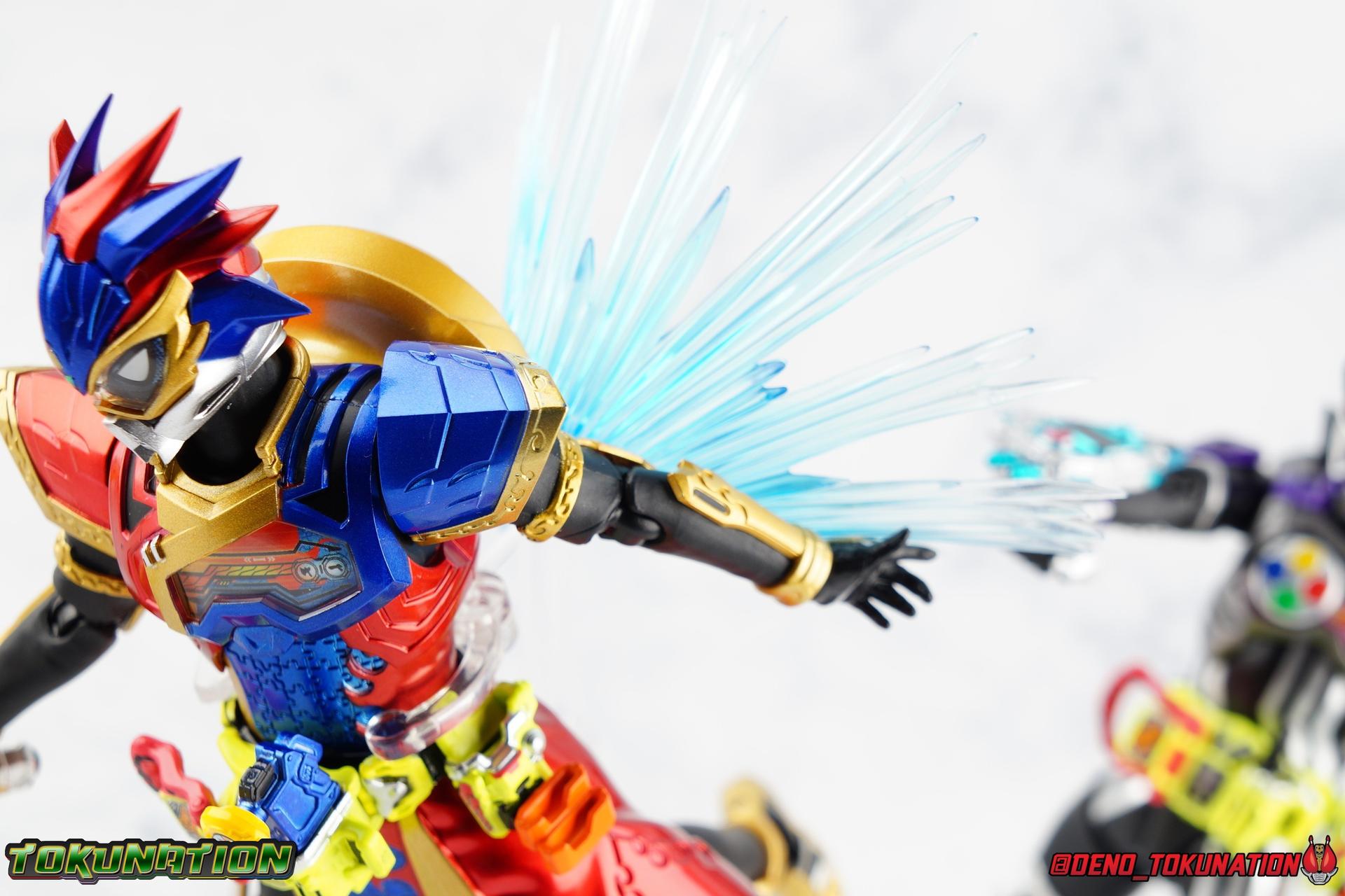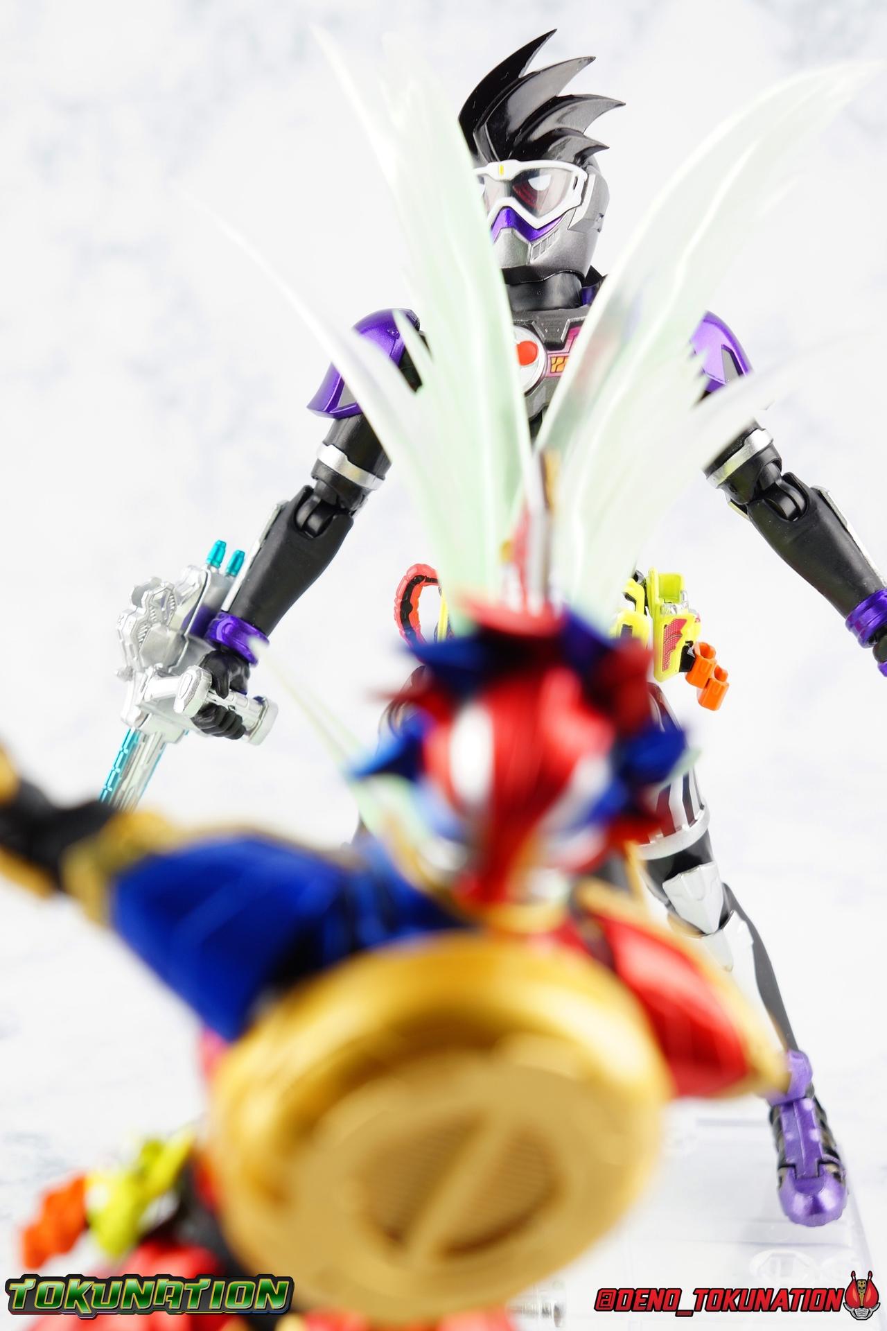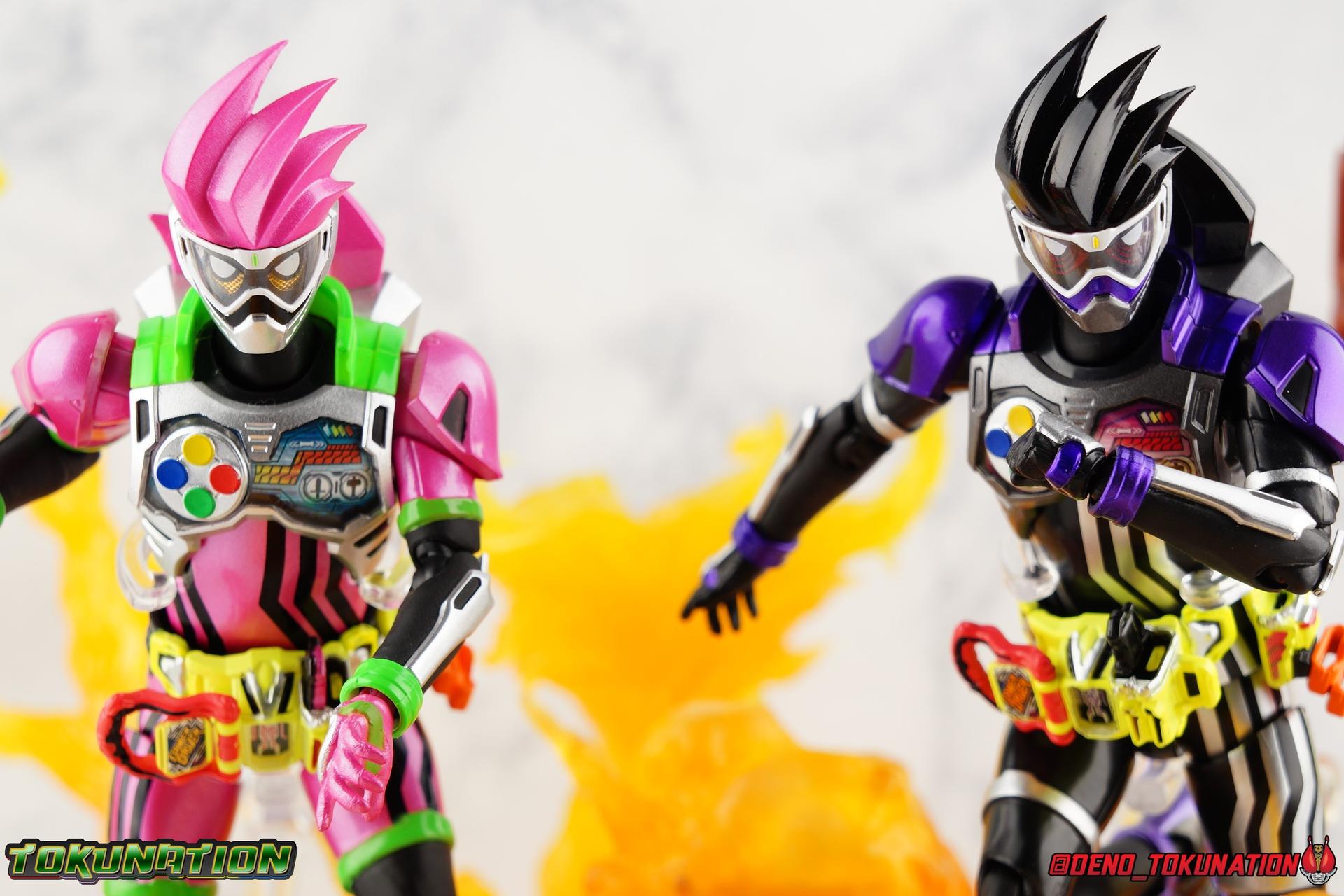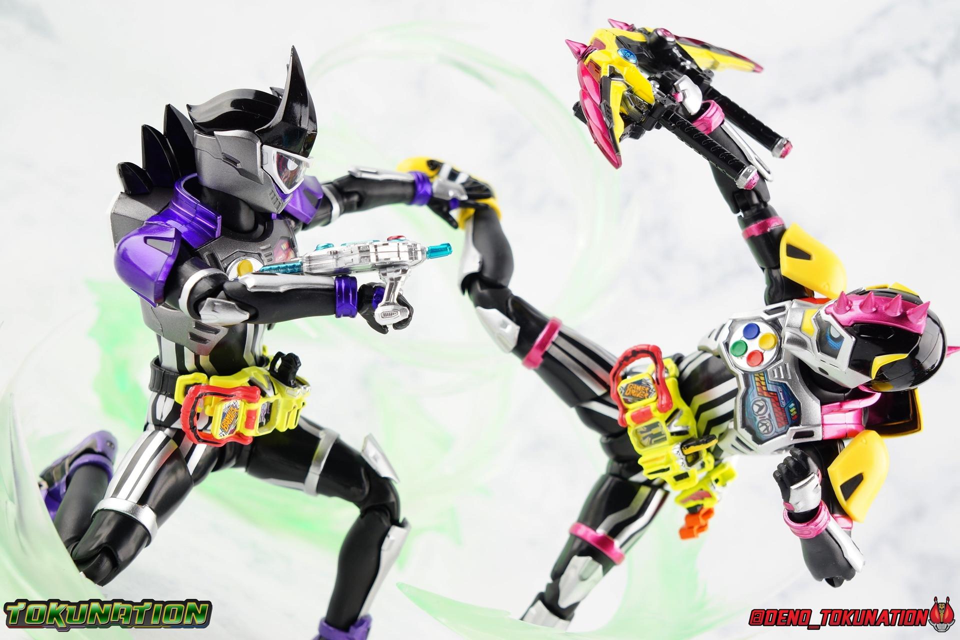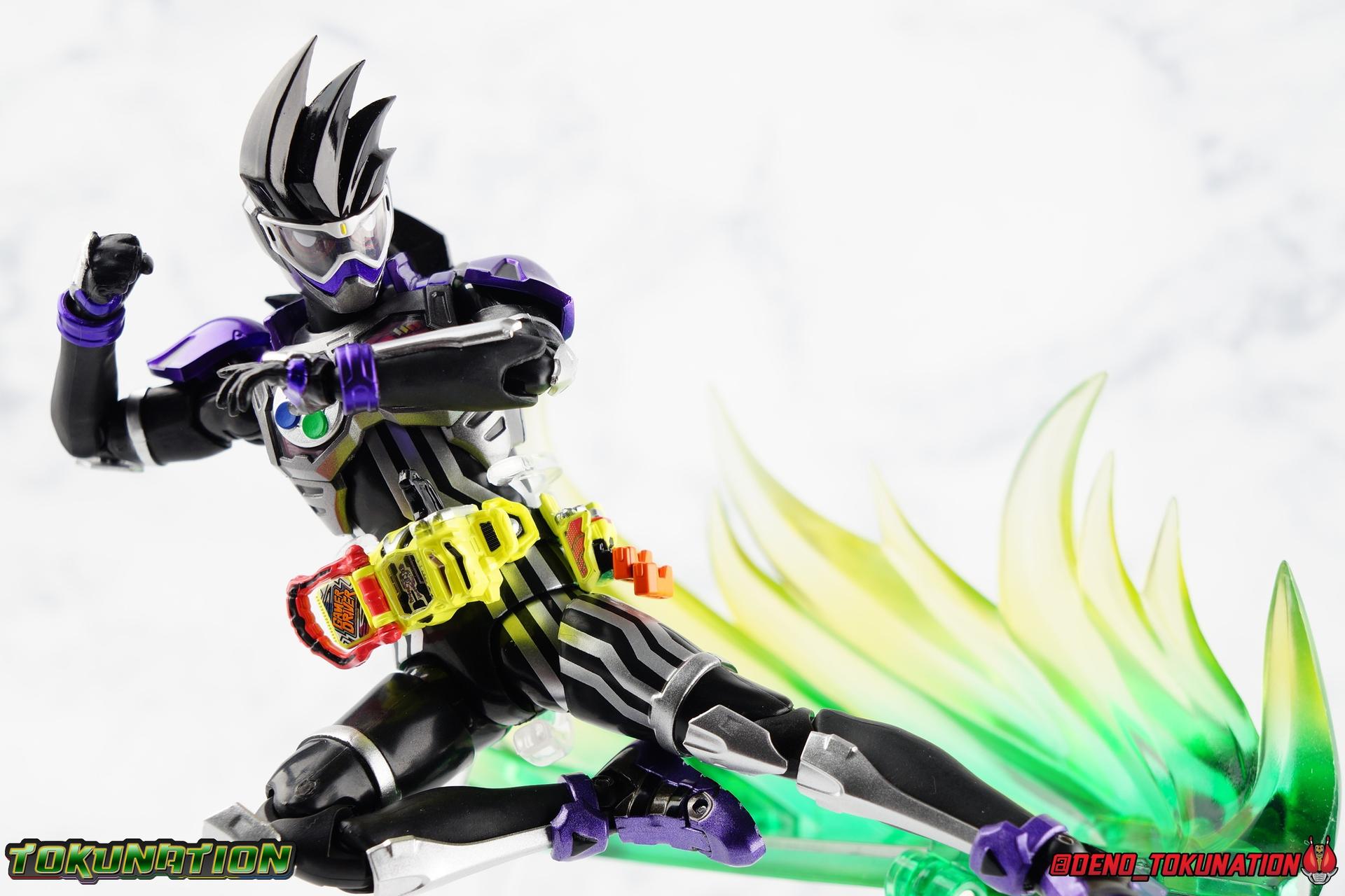 We've previously taken looks at the exceedingly popular GenM Level X/Dangerous Zombie and GenM Level 2, but finally Bandai has recreated Kuroto's most important form. The one that represents not only his return to life, but also his (temporary) shift to side of our heroes. This form represents the character's popularity itself even. Having been brought back from a pretty final death, and worked back in as an integral part of the winning side. It's safe to say that although this is not his most powerful form, this is probably GenM's most important one. So let's take a look at just how S.H. Figuarts Kamen Rider GenM Action Gamer Level 0 has turned out! Packaging Unlike GenM Level 2, Level 0 comes in far more standard packaging. A box that fits right in with the rest of the Ex-Aid line. It's pretty standard stuff by this point. Main Figure This review is basically identical to that of my GenM Level 2 one. There are minor paint app differences between the two. The accessories will be the real departure so feel free to jump down to that section if you like. GenM Action Gamer Level 0 utilizes the familiar Mighty Action X body type we've come to know and love. A mold utilized for damn near every figure in the Ex-Aid subline. This mold brings with it all the meticulous molded details and paint apps we've previously seen before. Much as with GenM Level 2, Level 0 is just lavishly executed. From the ground up this body type is a sold build. Physically I still nitpick the ankles on this mold, as the slight limitations to them irk me, especially moving forward. And getting GenM into a good pose is a total necessity for his character. Kuroto was an incredibly expressive character, so poseability is paramount. You really have to work with these feet, but they can get the job done. The knees have a great bend that helps add to the general athletic platformer theme of the figure. Much like with GenM Level x, I take issue with some sloppy paint flecks around the silver striping on the legs. There are plenty of flecks on the thighs and minor defects that are an annoyance on an expensive event exclusive such as this one. The Gamer Driver for this figure is the same standard one we've seen a countless number of times now. I still think it's an incredible to-scale replica. The Driver handle can flip shut, thus hiding the rider read out on the front screen as well, a read out which is identical to Level 2. The upper right of the driver has 2 slots for Gasshats. One is already attached in the form of the Proto-Mighty Action X Origin Gasshat. This one is black compared to the purple Proto Gashat that came with Level 2. As is standard, this is a dummy Gashat that can be reattached to any compatible Driver, holster, or Gashacon weapon. To the right of the driver, is a Gashat holster. There are 2 slots for extra Gasshats as well as 1 slot for a Critical Finish to be inserted. As with Ex-Aid, GenM's chest detailing is magnificent. And unlike a few other releases in the line, interior label used for the Rider Gauge is flawless. The paint apps on the outer layer are crisp and clear here for the most part as well. On the flip side of the torso is the deactivated Level 1 head. It's a bit stylized and shrunk down, but that's as it should be if TV CG magic could really work in toy form. Not to be forgotten are the arms, which admittedly only have one flaw that I'm truly bothered by, and that's the shoulder pads. Not because they impact the articulation, but because they pop off easily when fully extending the arms. This release however does have VERY finicky elbow pads which pop off with the slightest pressure. I had the same problem with my Ex-Aid forever ago but oddly not really with anything in the Ex-Aid line since. The wrists are solid, the elbows fully functional and the bicep swivels uninhibited & welcome as always. Finally that brings us to the head. This is where the most egregious paint issues are present. The white paint used for the visor is just really poorly applied, an issue that's been present on the last two GenM releases as well. Lot's of hazy overspray around the edges and a ton of flecks on the visor itself. Honestly the clear part of the visor looks dirty or scratched or just, somehow off. The "hair" of the helmet likewise has a number of paint flecks that really detract from it's overall look. Otherwise, I think the shape of the head is generally great, and the hair looks very solid. Lots of people took issue with this head on the original Ex-Aid release, but I've always thought it looked pretty spot on. I will say that this go around, the eyes are seemingly too far apart. Overall not a bad effort, just not terribly different physically or quality wise from the Level 2 release. Accessories GenM Level 2 came out as a Tamashii Nations exclusive a while back, and included with it the Shakariki Sports bike as a sort of bonus. The later Tamashii Web Shop release would not include this piece. That one large accessory is the big difference between the two releases, but Level 0 honestly comes with a lot: 3 - set of hands. 2 varieties of open palm hands and 1 set for holding things, like weapons or bike handles. Honestly they're a bit too narrow for the included weapons. 1 - Gashacon Breaker Blade Mode. Kuroto wasn't really seen much (if at all) using the Hammer mode, so they've opted to just go with the sword version for this release. The grip is just a bit too thick to be held well, but it works alright. Paint app work on a weapon like this could always be better as well. 1 - set of Bug Visor Zwei parts. This accessory is actually split into a few pieces though out of box it comes in the Chainsaw mode, although the saw form is not the standard mode of the weapon. The Bug Visor itself is just a plate in the center that makes up most of the mass of the accessory. It's attached to a long board with the saw extended on one end. The Grip Knuckle is likewise a separate part plugged onto this board. An alternate 