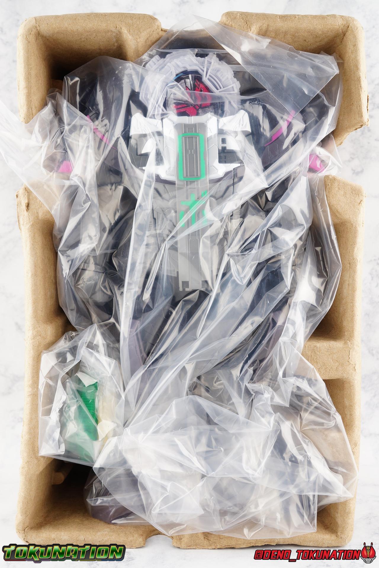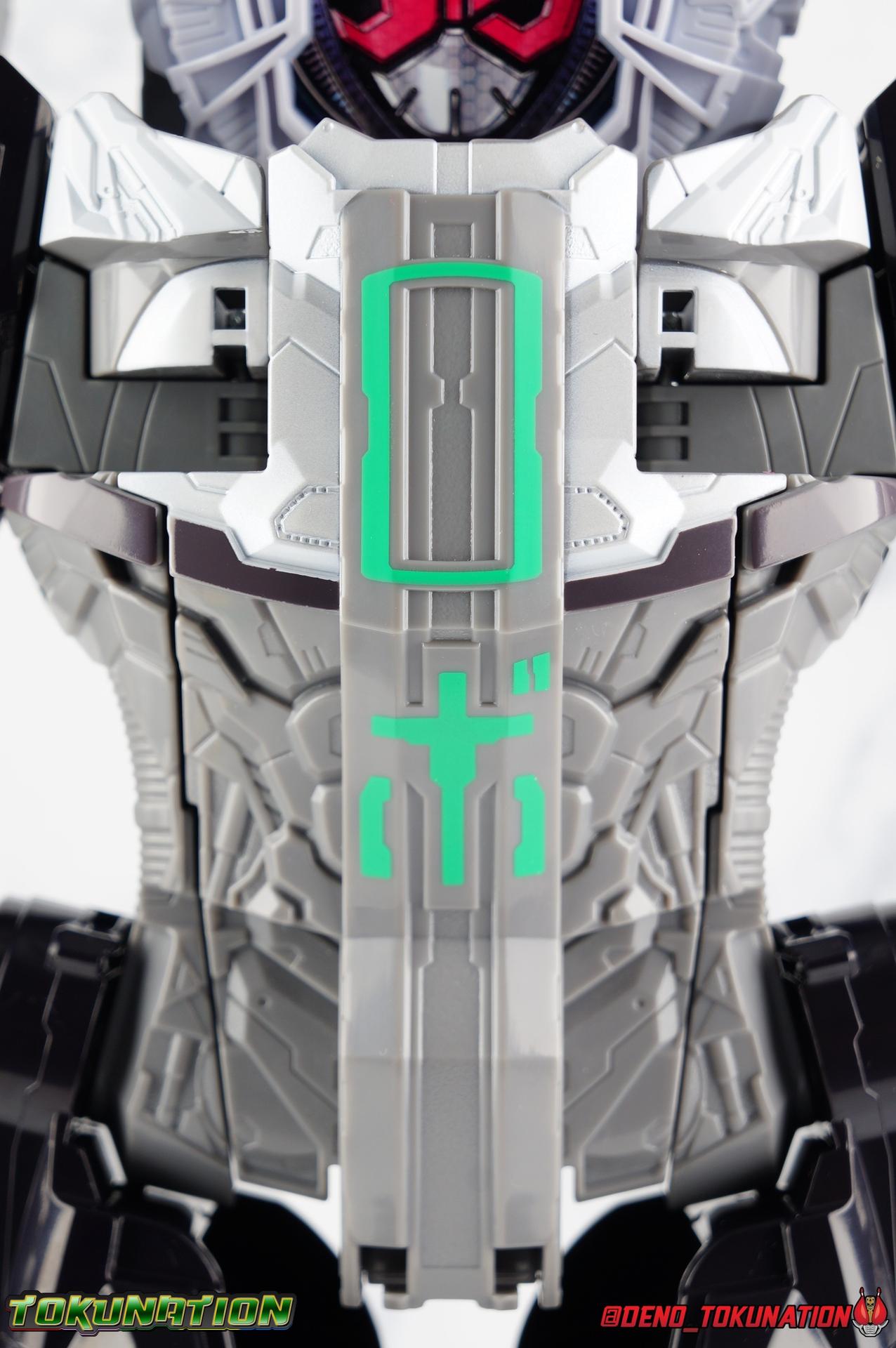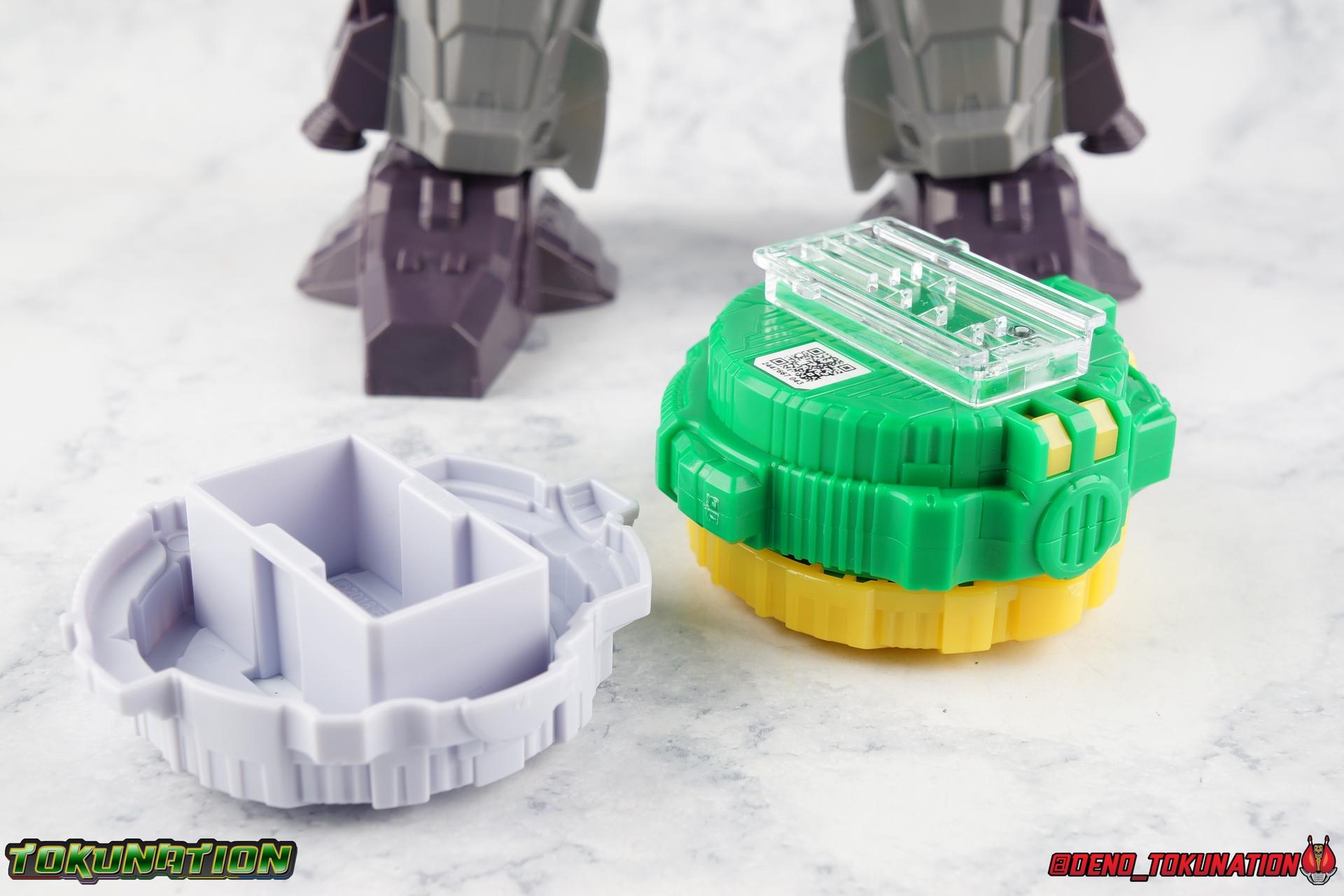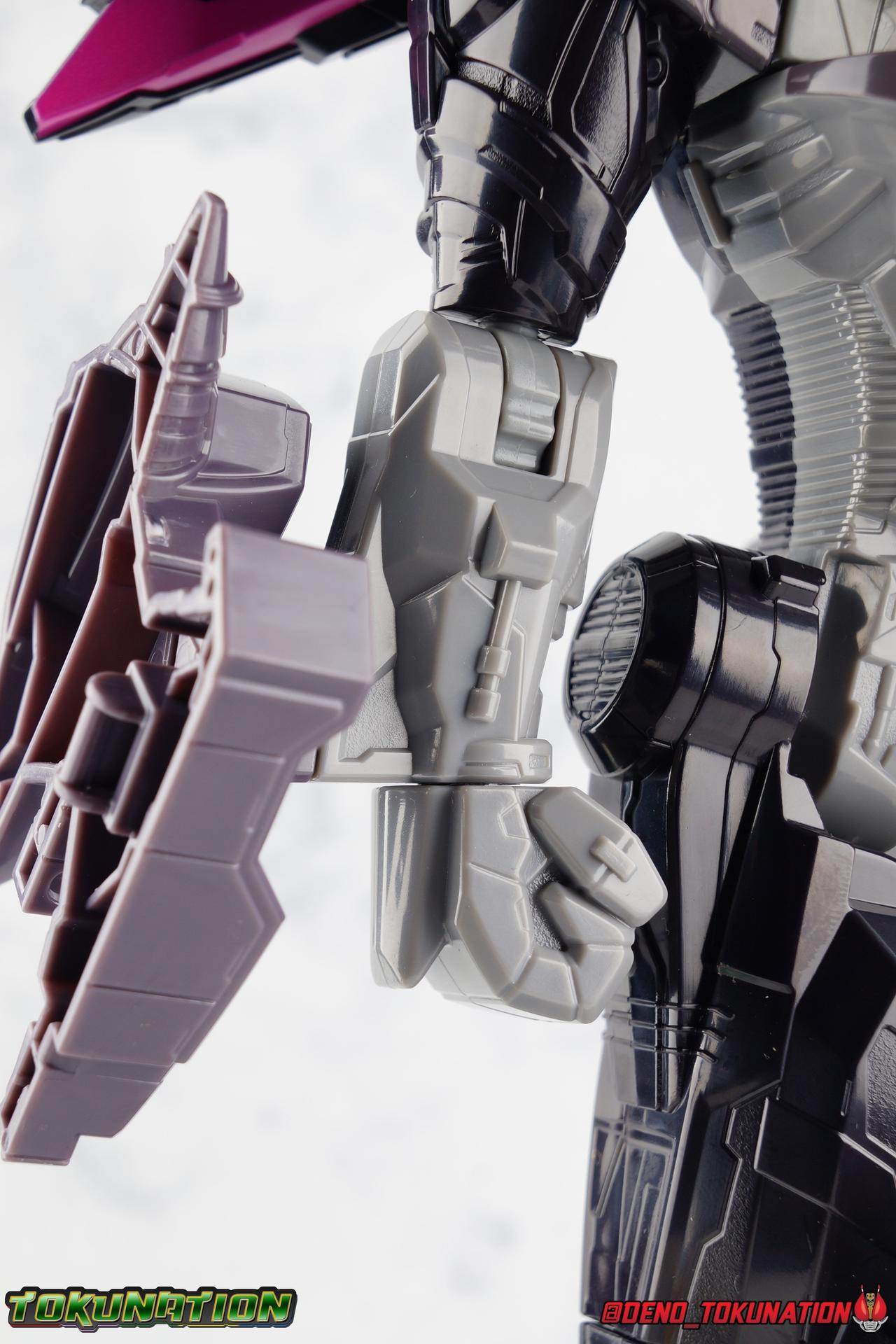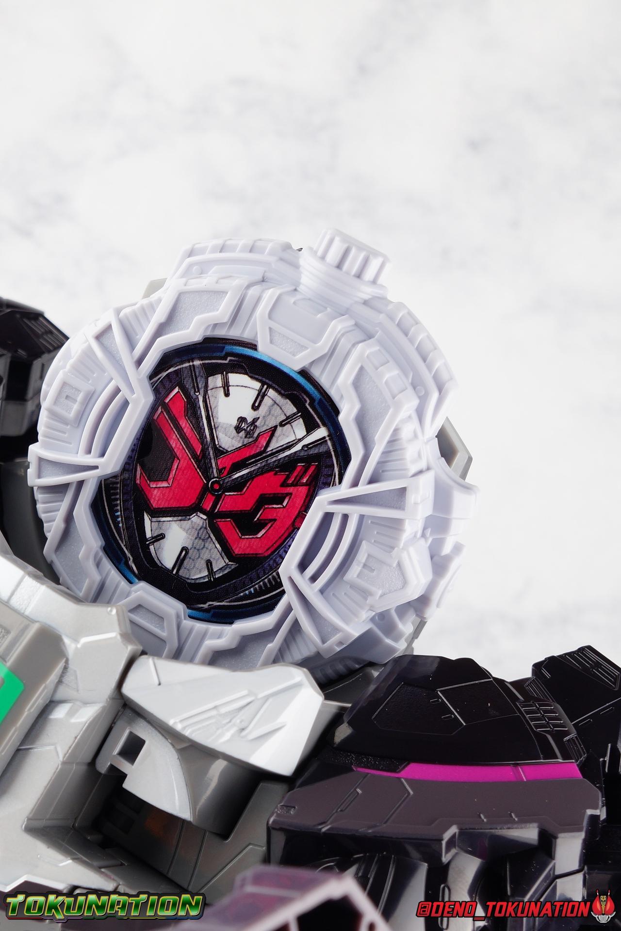 The massive mecha known as the Time Mazine is the last line of defense between the rebels of 2068 & the dark overlord Oma Zi-O. These mass produced defenders have even been known to be used by the Time Jackers... Sougo Tokiwa was given access to one thanks to Tsukuyomi travelling back in time from this bleak future. A means of travel to the eras of the legendary riders that preceded him, Sougo as the present day Kamen Rider Zi-O will gain the powers of the past to save (or dominate) the future! Packaging My favorite thing about DX packaging, toys which I don't handle much these days, is just how wacky and busy it tends to be. Tons of stock photos of various uses for whatever the item is, catch phrases, call outs, and character quotes from the show. There's just a lot going on, and I really like it. But by far the funniest thing about the box is the way it portrays Time Mazine on the back. It looks like a giant robot trying to squeeze it's legs together to hold in a poo frankly. Though, the toy itself tends to look like this in hand a little as well.... In box Time Mazine is all fully assembled, the only packed in separate part being the DX Ride Watch/ Main Figure Oddly enough, the Time Mazine is my first opportunity to handle merchandise from Zi-O. The Rider Kicks Figure line was a total turn off to me once I found out about the size. Figure's that small just have no place in my collection, so even with the armor gimmick, they weren't ever gonna sell me on that. But a giant robot, that turns into a flying time machine, and can swap out faces for Ride Watches? Yeah, I'm down for that. Time Mazine by the way, is a play on words. It's a combination of the english term Time Machine, and the Japanese word Majin/魔神, which means malevolent or demonic god. The "j" works it's way into the new word as a "z" sound. It's a fun play on words I can get behind. Now to start with the figure, this is a big boy. The Mazine will dwarf quite a few of the riders and other various robots in your collection. I included some group images below to show off the scale of this thing, and it's impressive. The Mazine is in it's Robo Mode straight out of the box, and while not perfect, there's a decent amount of articulation in this thing. Some of it isn't very useful, or in fact at all, but as you can see in the images you actually can get some use out of them. Time Mazine has ratcheting hips that can move forward and back by a couple clicks, though they have no outward movement. The thighs feature a pretty strong swivel joint to angle the legs out. The knees bend back to about a 90 degree angle as well. However the feet don't move at all. So while you can get the lower body into some cool poses, many aren't sustainable because the feet can't reach a stable position and the hips can't angle outward at all. The upper body articulation is limited to the head and arms. The arms feature fully rotating (closed) fists, a pretty great elbow bend that incorporates a swivel, and butterfly type shoulder joints. These shoulders work like this because of the Vehicle Mode transformation joints built into them. They can be pushed forward until the arms come parallel to one another and they angle very far up and out as well. Sentai Robos ain't got nothing on this big guy! The chest actually opens up as well. Grab the chest panel just below the face and pull down to reveal a cockpit scaled for Rider Kicks Figures! As I mentioned above, the RKF scale doesn't work for my collection at all, so I didn't have any on hand for the shoot. But some figuarts do tend to work decently well at this scale. The cockpit actually has some little arms that would hold an RKF in place, while the bottom is open ended so the rider's legs can go down into the Mazine's legs. I'm happy to see it scale this way even if it's not quite up to par with the show's portrayal of the cockpit. Time Mazine can also equip weapons from the RKF armors on it's arms, though again, I don't have any to demonstrate that with. The head also has some minor articulation in that it can swivel side to side. The head is in fact a dummy Zi-O Ride Watch. It's actually a hollow on the backside lookalike for the real deal Zi-O watch. It sets a bit further into the head than a proper DX Ride Watch would, plugging directly into the rectangular slot. Luckily DX Ride Watches fit just fine in there, any DX Gashapon or etc Ride Watch will. Literally any of them. The Mazine comes with the DX OOO TaToBa Combo Ride Watch as well, one which looks pretty cool as the head. I also had on hand the DX Den-O Sword Form & Wizard Flame Style Ride Watches during this shoot, so those are shown in the photos as well. Just don't mistake them for coming with Time Mazine. It only comes with the DX OOO watch and the dummy Zi-O watch. Time Mazine of course also has a Vehicle Mode. Though I would *very* generously consider this thing a "vehicle". It's a simple process to transform. Remove any Ride Watch attached, even the dummy one, push the shoulders fully forward, fold the shoulder armor flaps in and tab it together. Then rotate the arms around and tab them together, the whole assembly then rotates back flush to the panel where a Ride Watch would normally go. The final step is sadly the point where I realized they just gave up trying to do something meaningful with this toy. You just slightly bend the knees back so the knee armor/skis are flat on the ground. There you have this "vehicle". I really sincerely hope there's some other big DX vehicle coming that could combine with this thing because that's a pretty silly and useless vehicle mode. Accessories 1 - DX OOO TaToBa Combo Ride Watch. As mentioned above this is the full DX watch. Just pull the plastic tab out of the side to free up the batteries and start making some noise! The face of the watch of course rotates from the year to reveal the rider's full face. Gashapon watches rotate, but not in a way that reveals the face. It would have been nice to ge
