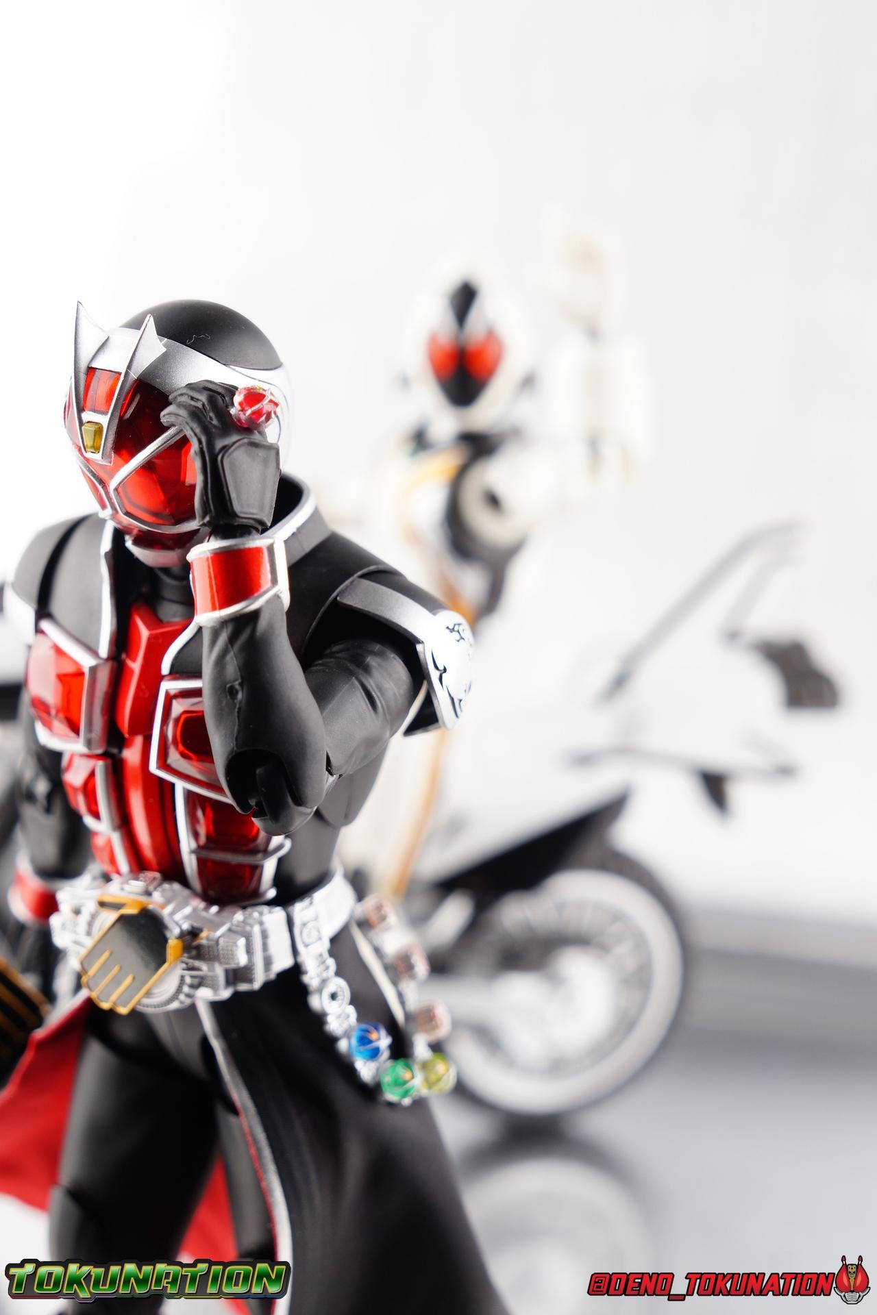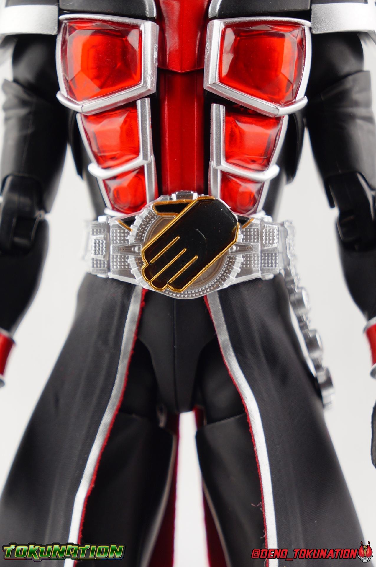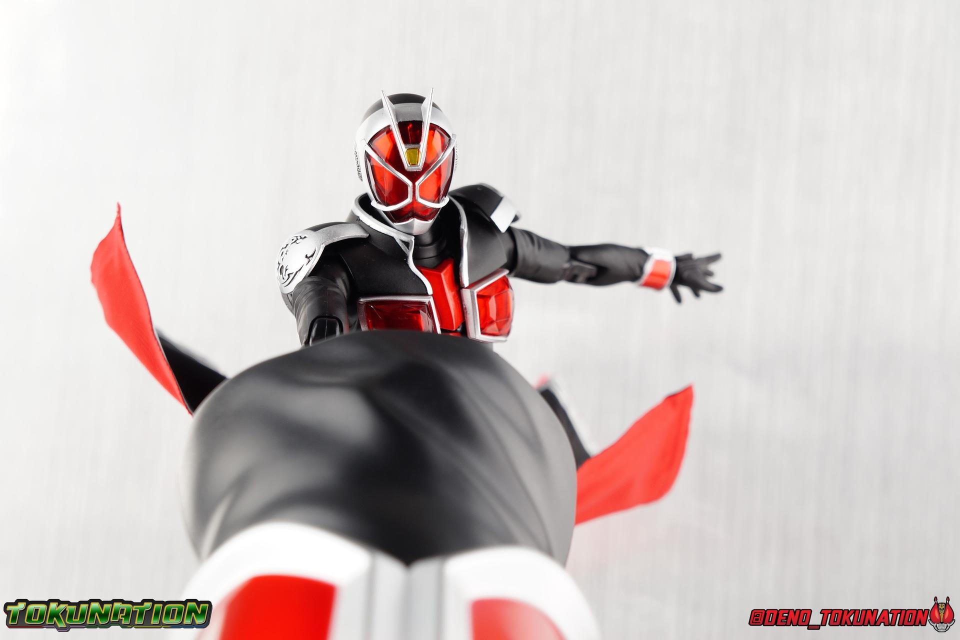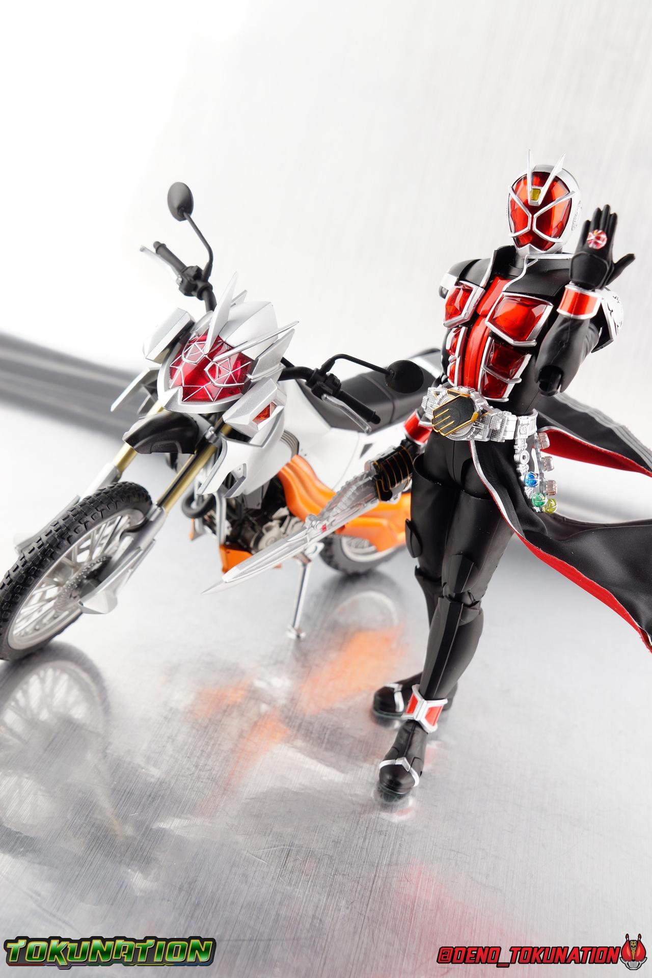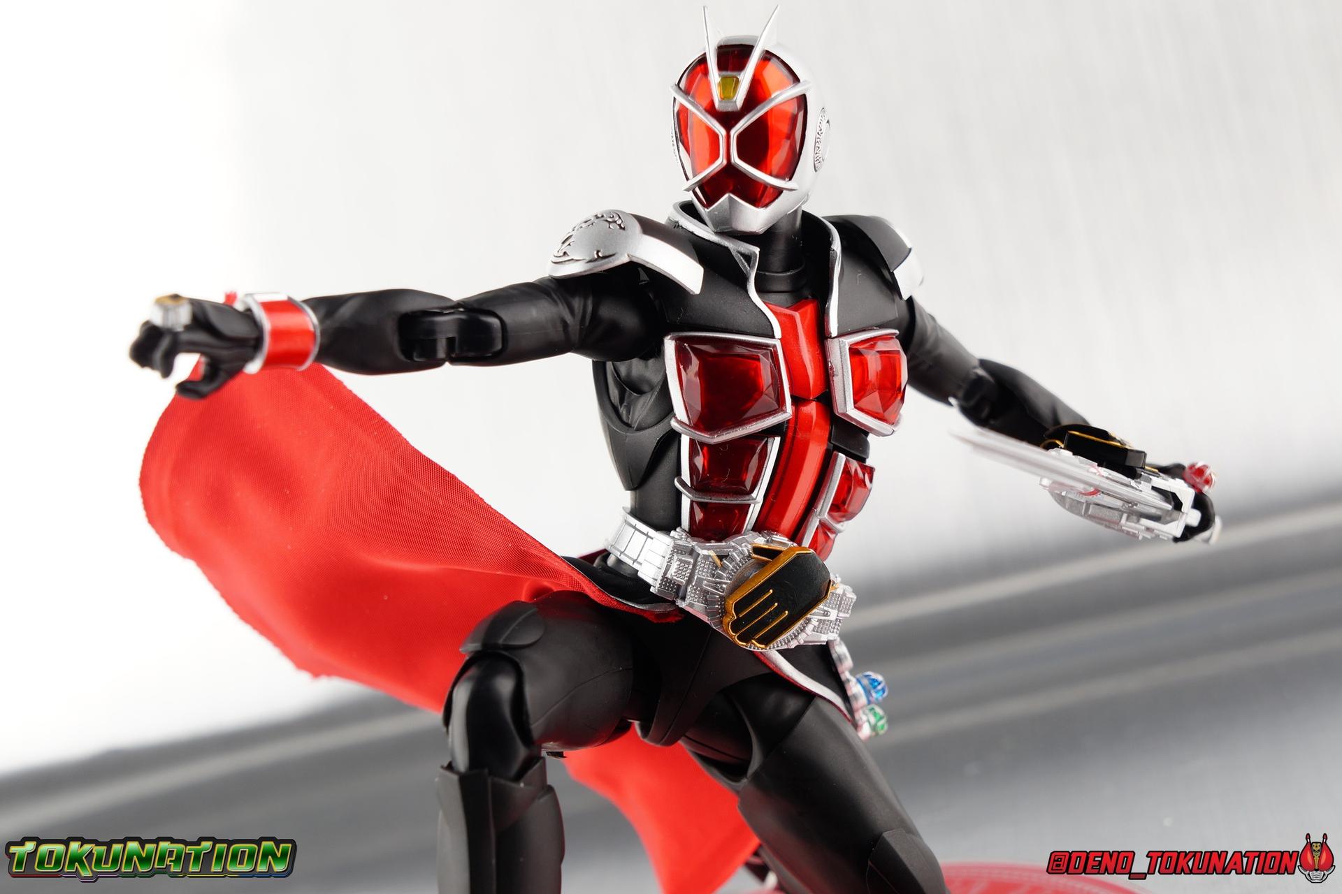 Haruto Soma was the only survivor of a dark Solar Eclipse ritual which saw the creation of a legion of monsters known as Phantoms. Assuming the likeness and identities of those humans they emerged from, Phantom's invade the world of humans and use magic to wreak havoc. Only one man can stop them, the one who faced despair head on in the light of the eclipse and emerged to gain the power of magic from his hope. Haruto Soma became Kamen Rider Wizard! Believe it or not, 2012-13 is the home of one of my favorite rider shows, Kamen Rider Wizard. The show gets derided often, but I've never felt that way about it. It was entertaining, had good music, a really enjoyable cast, some great twists along the way, and probably the most sensible and organic suit design and evolution of any series other than Kuuga. It's good stuff, and I've been waiting years for a new line of figures to properly represent it. Now that Shinkocchou Seihou has really taken off as a subline of premium renewals, and after having been shown off at multiple events leading up to it's release, Kamen Rider Wizard Flame Style has been reborn! ** This is a massive 100+ image gallery spread across the first 3 posts of this thread. Be sure to check it all out! Packaging The familiar Shinkocchou Seihou slip cover box makes another appearance! Not much can be said about it this time that hasn't been said before. It's gotten a bit stale (to me) over time but it's still a pleasing type of collector's box. Wizard features the now standard Bandai Spirits blue logo as well as the holofoil Tamashii Nations brand sticker. Main Figure Where to start? The original SHF Wizard has been spoken ill of for years. Essentially from the time it was released, pretty much forever. And rightfully so. Original Wizard was plagued by a number of issues including, a driver that perpetually fell off, incorrectly shaped and colored suit details, a stumpy torso, clown shoes, and just generally squashed and distorted proportions overall. Seihou Wizard goes above and beyond fixing every single one of these issues. For starters Seihou Wizard is a gorgeous figure, even statically posed. Just straight out the box standing upright, this thing looks gorgeous. This is a figure than looks like a suit on display at a Toei event. They've really and truly nailed this one. Looking at the figure, you can see that the legs are about the same length as the original, which is to say the original had a ridiculously short and stumpy torso. The Seihou's legs are thicker and more muscular over all, and are thankfully articulated much better. The hips now feature a thigh swivel, though one that's weirdly limited to roughly a quarter turn in either direction. In another course correction the new knee joint is designed so that the knee cap armor is above it, rather than the middle, giving the legs a more accurate look when posed. The feet and ankles have likewise been designed with full function in mind. The ankle tilts are far more free while the actual feet are no longer clown sized, Thanks to new toe bends they function better as well, and the details on the sole of the shoes has been fully sculpted and painted this time as well. Of course the biggest improvement of this entire release is the Wizard Robes. These are absolutely wonderful, and something that was sorely missing from literally every Wizard Figuart before this. And has sorely been missing from other recent releases like Kamen Rider Cronus. These new robes are actually two halves of fabric that are glued together with a poseable wire running along the entire contour. I will say that the edges of the fabric have some fraying to them that bothers me, but at this scale I think this has been done as well as possible. The wire allows the robes to be posed in really fantastic ways, making it look naturally windswept or tussled as necessary. I think the photos speak for themselves, these are the ideal way to recreate Wizard's Robes, and are far better than the rubbery plastic interchangeable bits the old one had. On the waist is of course the Wizard Driver, which I'm happy to report is fully functional. The sliding mechanism has been recreated so that when you simultaneously move the blocks on either side of the face, that the driver hand spins accordingly. The Ring Holder on the left hip is also quite the highlight. All of Wizard's standard Rings are included as separate accessories (which I'll detail further below) and can be plugged into the belt. Each time you change the ring on the corresponding hand, you can plug it safely and snugly into the holder for storage. The upper body is a real marvel as well. As you can see, the way it's designed is a total reversal of the original. Instead of a tiny ab section floating below a bulky chest, the entire torso is two more properly sized halves. The jewels lining the exterior of these pieces can slide up or down slightly, in particular those along the chest. Much like how Seihou Amazon & Kabuto have pectoral parts that move to accommodate the rest of the way the body moves. The entire assembly adds up to a way more useful and functional figure than we ever had before. As with everything else, the arms are far superior to what came before them. A bit longer and more evenly proportioned to the main body, Wizard's arms feature a bicep swivel as well as a far better elbow joint that allows you to bring the arm in right up against the body. The sculpted in fabric style detailing is also done a bit differently this time, and makes things look much more natural than before. The only odd thing I can say about them, is that Wizard does not come with close fists attached. In fact, he only come with one closed (right) fist at all. The standard hands he has out of box are relaxed open hands. That's just a new thing, Figuarts pretty much always come with closed fists attached so that was a bit strange. No matter what hands you're using with Wizard, every single one of them has a small peg hole t