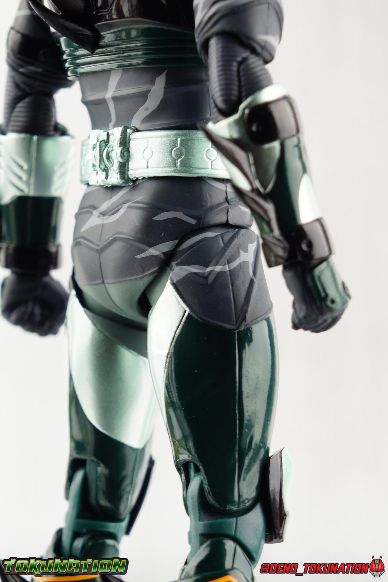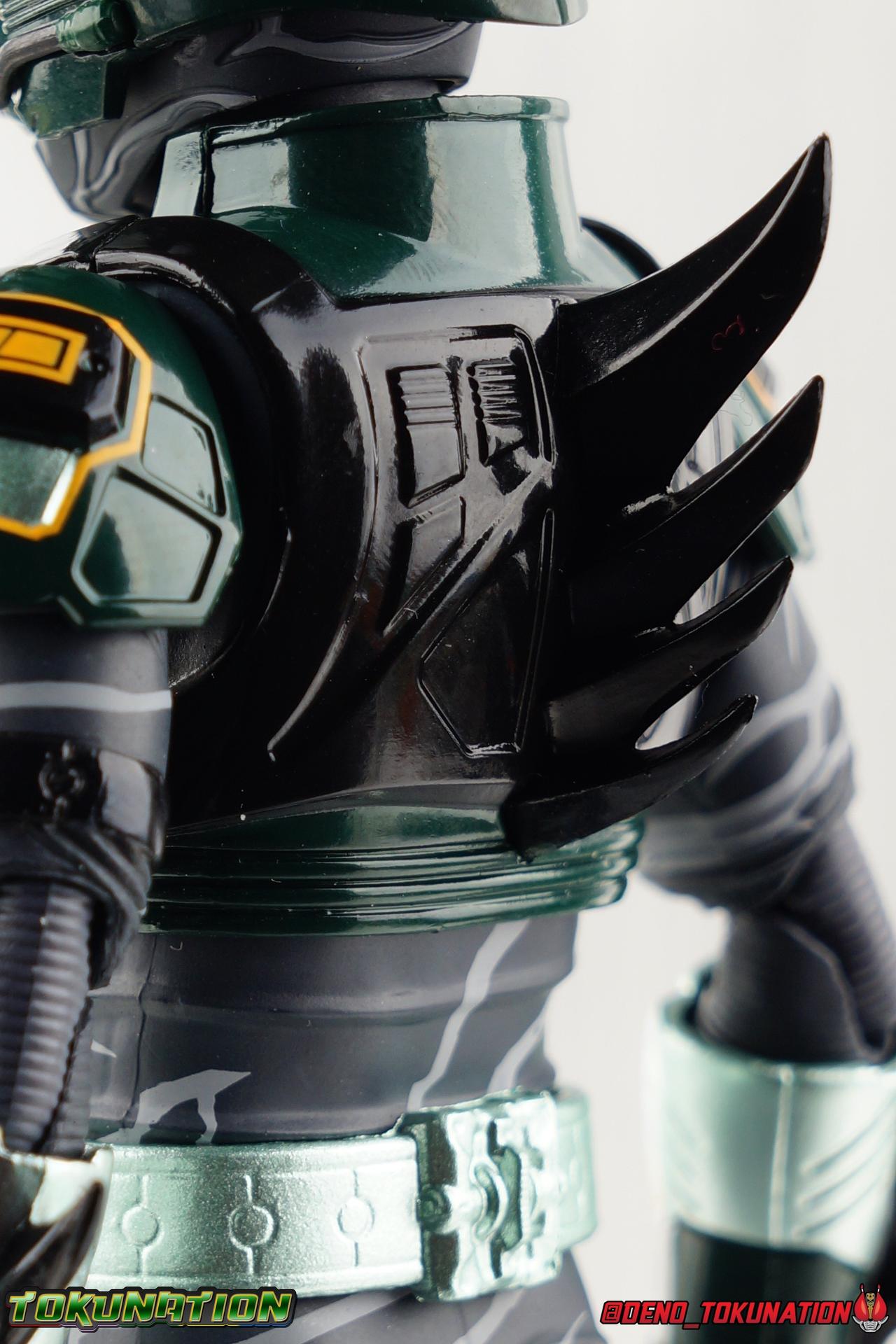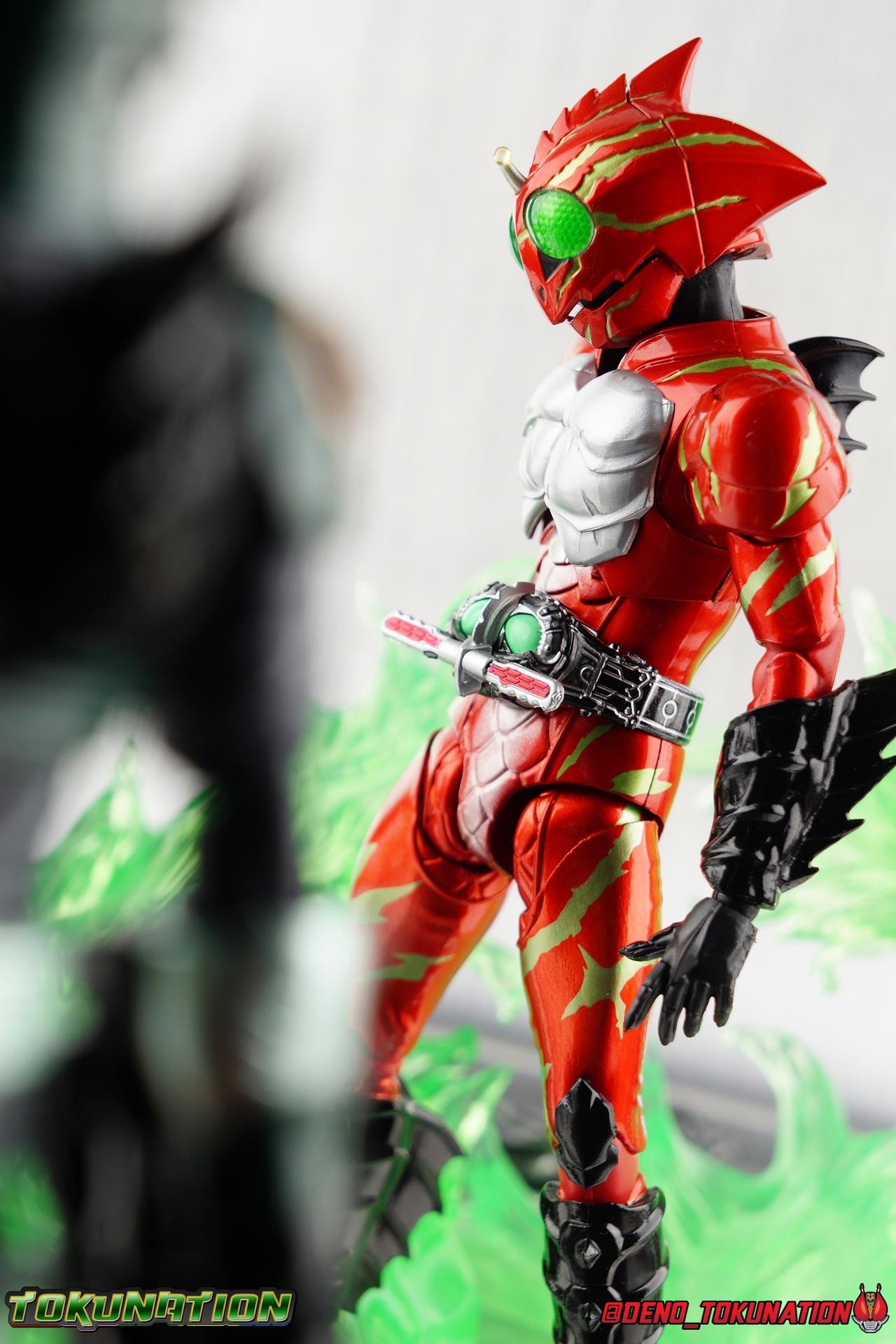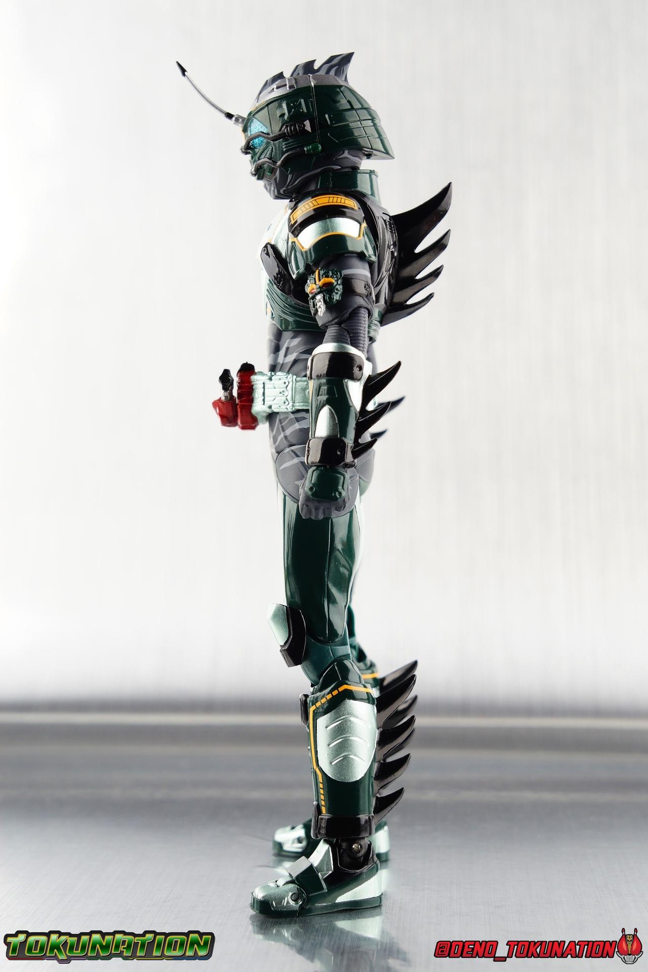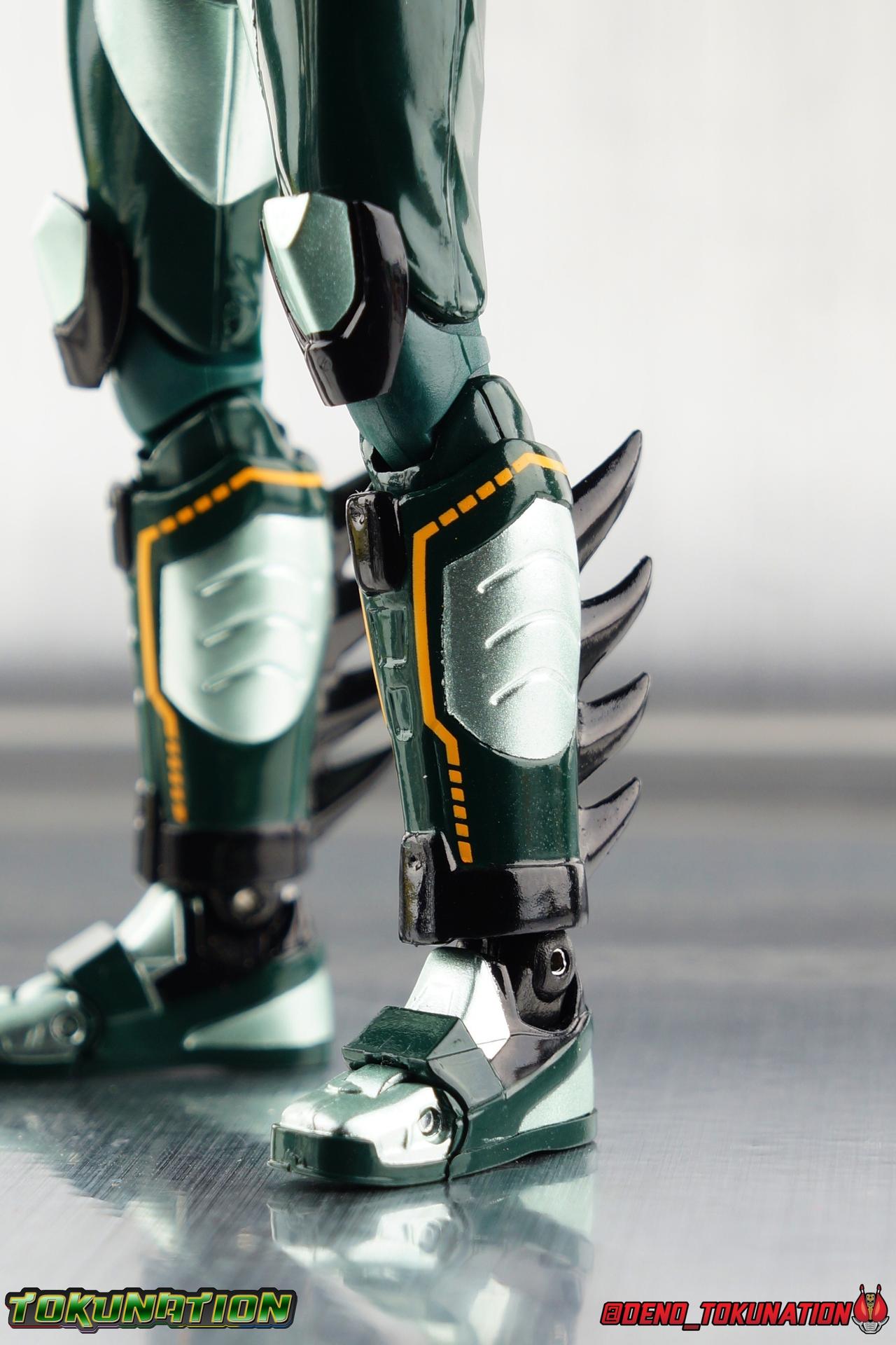 ** Spoilers for Amazons The Last Judgement abound in this review. Read at your own risk! Two years on from Neo's death, Omega is hunted. Haruka and Mizuki have barely escaped 4C when they cross paths with an unusual home for children and a man named Midou. Little do they know, this place is merely a buffet, but not for Amazons. For humans. A new terrifying iteration of the Sigma Project has been undertaken, and the discovery of what keeps it going, will shake Haruka to his core. As the hunters become the hunted, the man named Midou proclaims himself Neo Alpha, the one to surpass Jin Takayama and the original madness of the Amazon Cells. Packaging Just as the Amazons that preceded him, Neo Alpha comes in a pretty dark box with some great stock photos. Alpha's color scheme is pretty dark as well however so everything tends to blend together a lot unfortunately. As with regular Alpha, the name is spelled as "Alfa" on the box. In Jin/Alpha's case the name Alpha is relative to Haruka's Omega. Midou sees himself as the better version of Jin, hence his self naming as Neo Alpha. Regardless, it should be "Alpha" not "Alfa". It's just a bad romanization. Main Figure The end is nigh for the creatures known as Amazons. And sadly, it would seem the same can be said for their figuarts as well. As of the writing of this review, no further Amazons figures have been confirmed for release. In fact the only displayed prototypes seen since the dual reveal of Crow Amazon & Neo Alpha, were the Last Judgement Ver. Alpha & Omega. Neither of which have been seen for some time. So it's fitting that Neo Alpha ends the line as it currently stands, especially considering his well, violent, death. You're probably familiar with this figure already, that is if you own Amazon Neo. Neo was absolutely one of my favorite release in the Amazons line. It was a really great mold that changed things up from previous releases, and it helped that the design deviated to a more armored & cybernetic look. I also enjoyed how elements of the design were borrowed for New Omega. Neo Alpha takes the Neo mold and really militarizes the design. Which in the context of the film's story, makes so much sense when you think about the job Midou is tasked with. In the same way that Neo was decked out in some gorgeous metallic blue and brushed silver, a color scheme that really sold me on the figure, Neo Alpha sells me so hard with the finer details of the paint scheme. Using quite a few more paint applications than usual, Neo Alpha features 4 distinct shades of green both metallic and glossy. There's some bright yellow pin-striping that really offsets the varying greens and glossy blacks nicely as well. The best details however are the alternating gray camo stripes that cover the abdomen hips and arms. These bits are patterned the same way as Neo's red and blue, but the subtlety of the grays really works well with the various greens and yellows of the suit. The various Alpha & Omega releases, and to a lesser extent Sigma as well as Mole & Crow all had faults that irked me. But the Neo mold was a real winner to me. Unlike the others, most of the articulation is solidly intact with this design. Despite the bulk of the armor carried over to Neo Alpha, the figure is very free to move. The ankles are unobstructed so you can get nice solid balance from them. Their forward motion is limited only by the bottom of the shin armor, but not terribly so. The knees are really perfect. Unlike with Omega where the leg fins limited the legs to 90 degree angles, Neo Alpha is free to move because the shin armor can rotate the fins away from the back of the leg. I'm still not super in love with the drop down hips the two Neo's feature, but they aren't a huge detractor in their cases. Now this is a really odd thing for this figure, but more so the character in the film. Neo Alpha has the Neo Amazons Driver attached to his belt, with an Ampule molded into it just like New Omega & Neo. However, in The Last Judgement, Midou only uses his unique Amazons Register attached to the left arm to transform. In much the same way that Iyu/Crow did. Only using the driver to summon his weapon arm. I can only assume a Driver was incorporated into his design simply as a way to set him apart from standard Amazons and make him a rider like the other 4, and I can get that. But he's already a remold of the Neo suit in both mediums, so the Driver was unnecessary to communicate his rider-ness. It's just weird. The upper body is engineered in such a way that it allows you to arch the back up and lean him forward for really savage and animal like poses, though it does expose a gap on his back side when done. The arms are free of most obstruction thanks to some great shoulder pad design, swivel biceps, and rotating forearm guards. My only real gripe with the arms is that the fist pegs are a little tight, and the hands a little difficult to exchange, mostly on the left arm which features the unique Militant Amazons Register. Amazon Neo Alpha does however deviate from the original Neo in one big way, the head. Taking inspiration for this design from a monitor lizard, Neo Alpha has a much more elongated and pronounced head than his predecessor. The new sort of bucket style head features really pretty blue compound eyes, a first for Amazons, and also has some admittedly oddly placed face guards that seem to emulate a football helmet a bit. The most striking piece of the helmet is the very elongated and fragile horn. The figure is packaged sideways in box because of it. So just be careful. As you can see I've assembled all of the Amazons together in this gallery for a big family photo and some comparisons. There's a shot in there as well where you'll notice a silver Amazon Neo as well. Don't let me deceive you, that's not an official figure. It's a custom Amazon Neo Sigma that was made by @Gigabeetle and made it's way to me. I just wanted to give him a brief little spotlight because Neo Sigma is