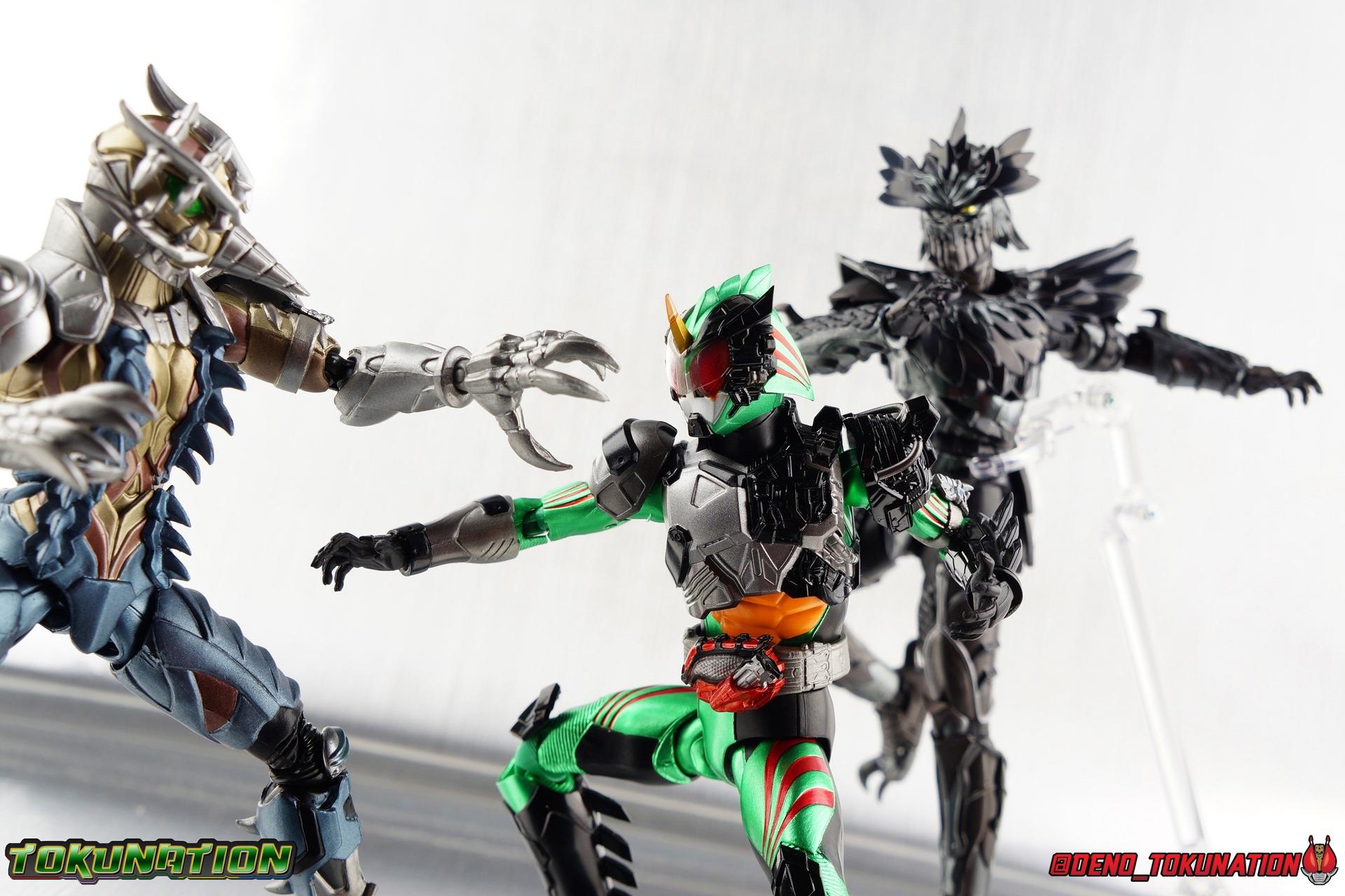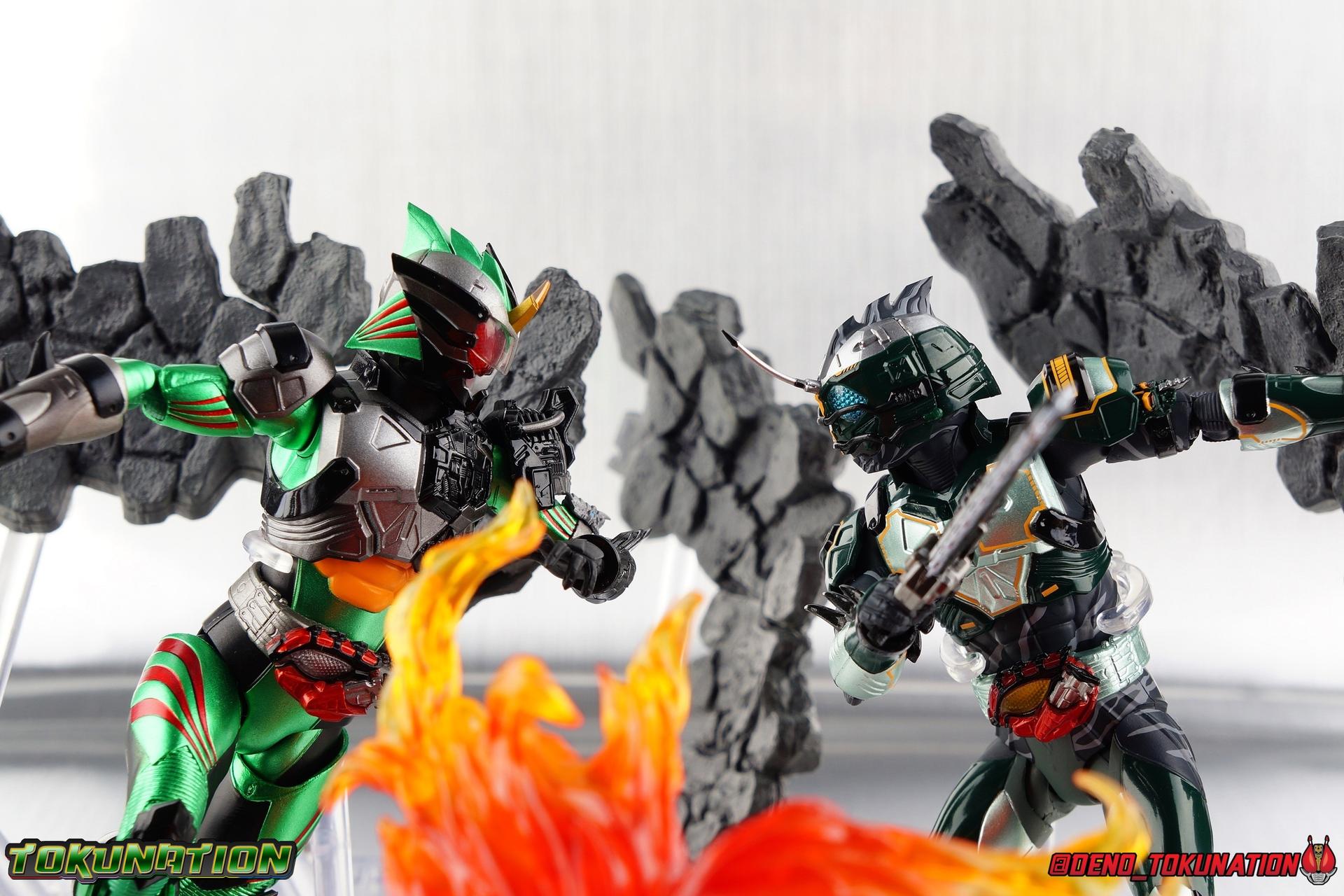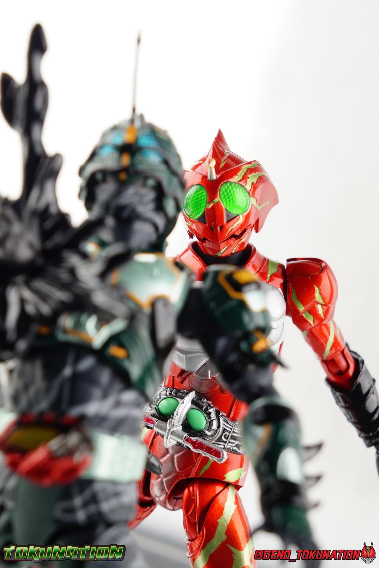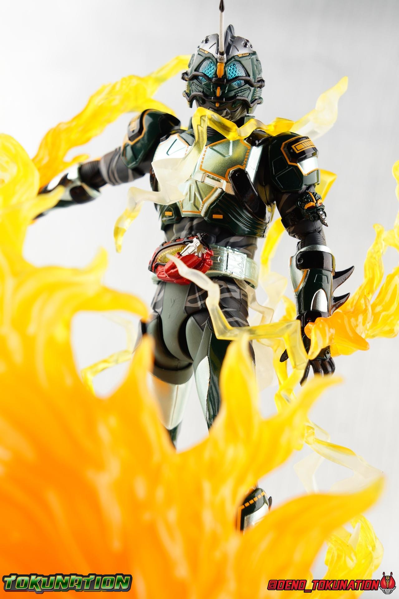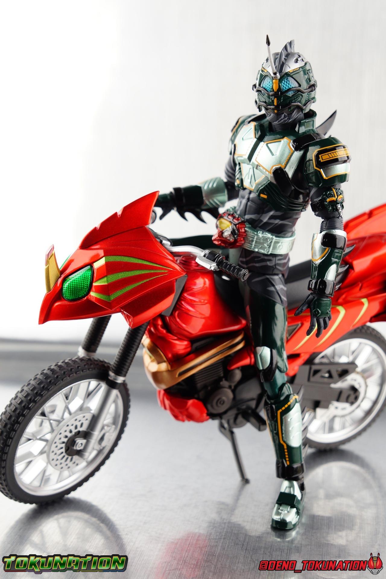 ** Spoilers for Amazons The Last Judgement abound in this review. Read at your own risk! Two years on from Neo's death, Omega is hunted. Haruka and Mizuki have barely escaped 4C when they cross paths with an unusual home for children and a man named Midou. Little do they know, this place is merely a buffet, but not for Amazons. For humans. A new terrifying iteration of the Sigma Project has been undertaken, and the discovery of what keeps it going, will shake Haruka to his core. As the hunters become the hunted, the man named Midou proclaims himself Neo Alpha, the one to surpass Jin Takayama and the original madness of the Amazon Cells. Packaging Just as the Amazons that preceded him, Neo Alpha comes in a pretty dark box with some great stock photos. Alpha's color scheme is pretty dark as well however so everything tends to blend together a lot unfortunately. As with regular Alpha, the name is spelled as "Alfa" on the box. In Jin/Alpha's case the name Alpha is relative to Haruka's Omega. Midou sees himself as the better version of Jin, hence his self naming as Neo Alpha. Regardless, it should be "Alpha" not "Alfa". It's just a bad romanization. Main Figure The end is nigh for the creatures known as Amazons. And sadly, it would seem the same can be said for their figuarts as well. As of the writing of this review, no further Amazons figures have been confirmed for release. In fact the only displayed prototypes seen since the dual reveal of Crow Amazon & Neo Alpha, were the Last Judgement Ver. Alpha & Omega. Neither of which have been seen for some time. So it's fitting that Neo Alpha ends the line as it currently stands, especially considering his well, violent, death. You're probably familiar with this figure already, that is if you own Amazon Neo. Neo was absolutely one of my favorite release in the Amazons line. It was a really great mold that changed things up from previous releases, and it helped that the design deviated to a more armored & cybernetic look. I also enjoyed how elements of the design were borrowed for New Omega. Neo Alpha takes the Neo mold and really militarizes the design. Which in the context of the film's story, makes so much sense when you think about the job Midou is tasked with. In the same way that Neo was decked out in some gorgeous metallic blue and brushed silver, a color scheme that really sold me on the figure, Neo Alpha sells me so hard with the finer details of the paint scheme. Using quite a few more paint applications than usual, Neo Alpha features 4 distinct shades of green both metallic and glossy. There's some bright yellow pin-striping that really offsets the varying greens and glossy blacks nicely as well. The best details however are the alternating gray camo stripes that cover the abdomen hips and arms. These bits are patterned the same way as Neo's red and blue, but the subtlety of the grays really works well with the various greens and yellows of the suit. The various Alpha & Omega releases, and to a lesser extent Sigma as well as Mole & Crow all had faults that irked me. But the Neo mold was a real winner to me. Unlike the others, most of the articulation is solidly intact with this design. Despite the bulk of the armor carried over to Neo Alpha, the figure is very free to move. The ankles are unobstructed so you can get nice solid balance from them. Their forward motion is limited only by the bottom of the shin armor, but not terribly so. The knees are really perfect. Unlike with Omega where the leg fins limited the legs to 90 degree angles, Neo Alpha is free to move because the shin armor can rotate the fins away from the back of the leg. I'm still not super in love with the drop down hips the two Neo's feature, but they aren't a huge detractor in their cases. Now this is a really odd thing for this figure, but more so the character in the film. Neo Alpha has the Neo Amazons Driver attached to his belt, with an Ampule molded into it just like New Omega & Neo. However, in The Last Judgement, Midou only uses his unique Amazons Register attached to the left arm to transform. In much the same way that Iyu/Crow did. Only using the driver to summon his weapon arm. I can only assume a Driver was incorporated into his design simply as a way to set him apart from standard Amazons and make him a rider like the other 4, and I can get that. But he's already a remold of the Neo suit in both mediums, so the Driver was unnecessary to communicate his rider-ness. It's just weird. The upper body is engineered in such a way that it allows you to arch the back up and lean him forward for really savage and animal like poses, though it does expose a gap on his back side when done. The arms are free of most obstruction thanks to some great shoulder pad design, swivel biceps, and rotating forearm guards. My only real gripe with the arms is that the fist pegs are a little tight, and the hands a little difficult to exchange, mostly on the left arm which features the unique Militant Amazons Register. Amazon Neo Alpha does however deviate from the original Neo in one big way, the head. Taking inspiration for this design from a monitor lizard, Neo Alpha has a much more elongated and pronounced head than his predecessor. The new sort of bucket style head features really pretty blue compound eyes, a first for Amazons, and also has some admittedly oddly placed face guards that seem to emulate a football helmet a bit. The most striking piece of the helmet is the very elongated and fragile horn. The figure is packaged sideways in box because of it. So just be careful. As you can see I've assembled all of the Amazons together in this gallery for a big family photo and some comparisons. There's a shot in there as well where you'll notice a silver Amazon Neo as well. Don't let me deceive you, that's not an official figure. It's a custom Amazon Neo Sigma that was made by @Gigabeetle and made it's way to me. I just wanted to give him a brief little spotlight because Neo Sigma is