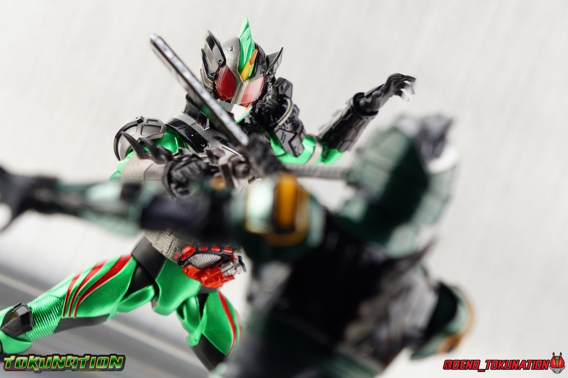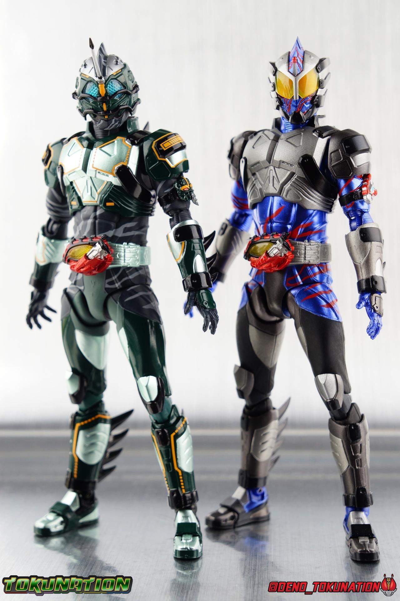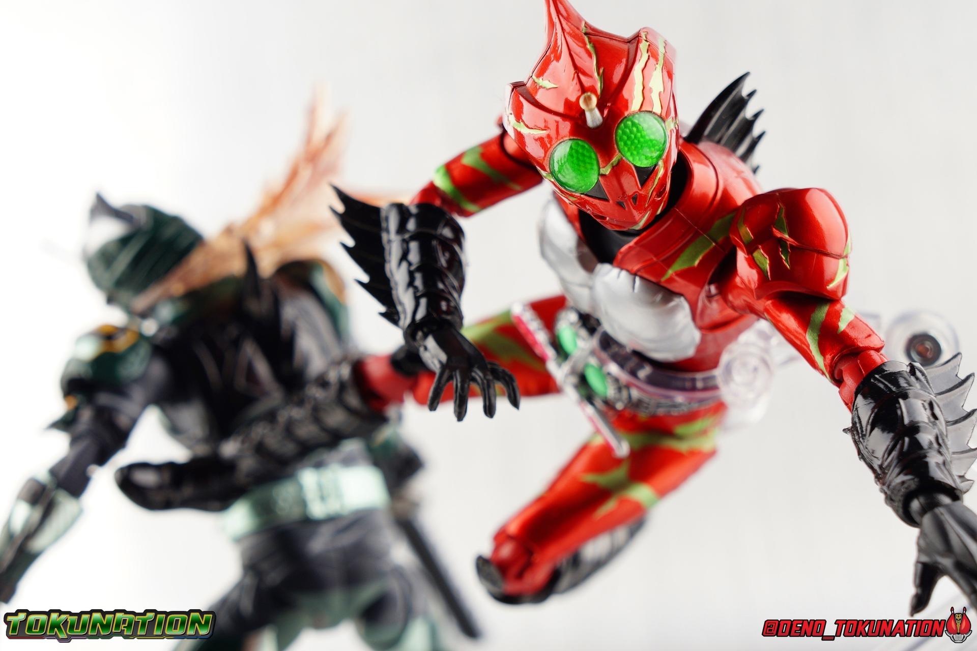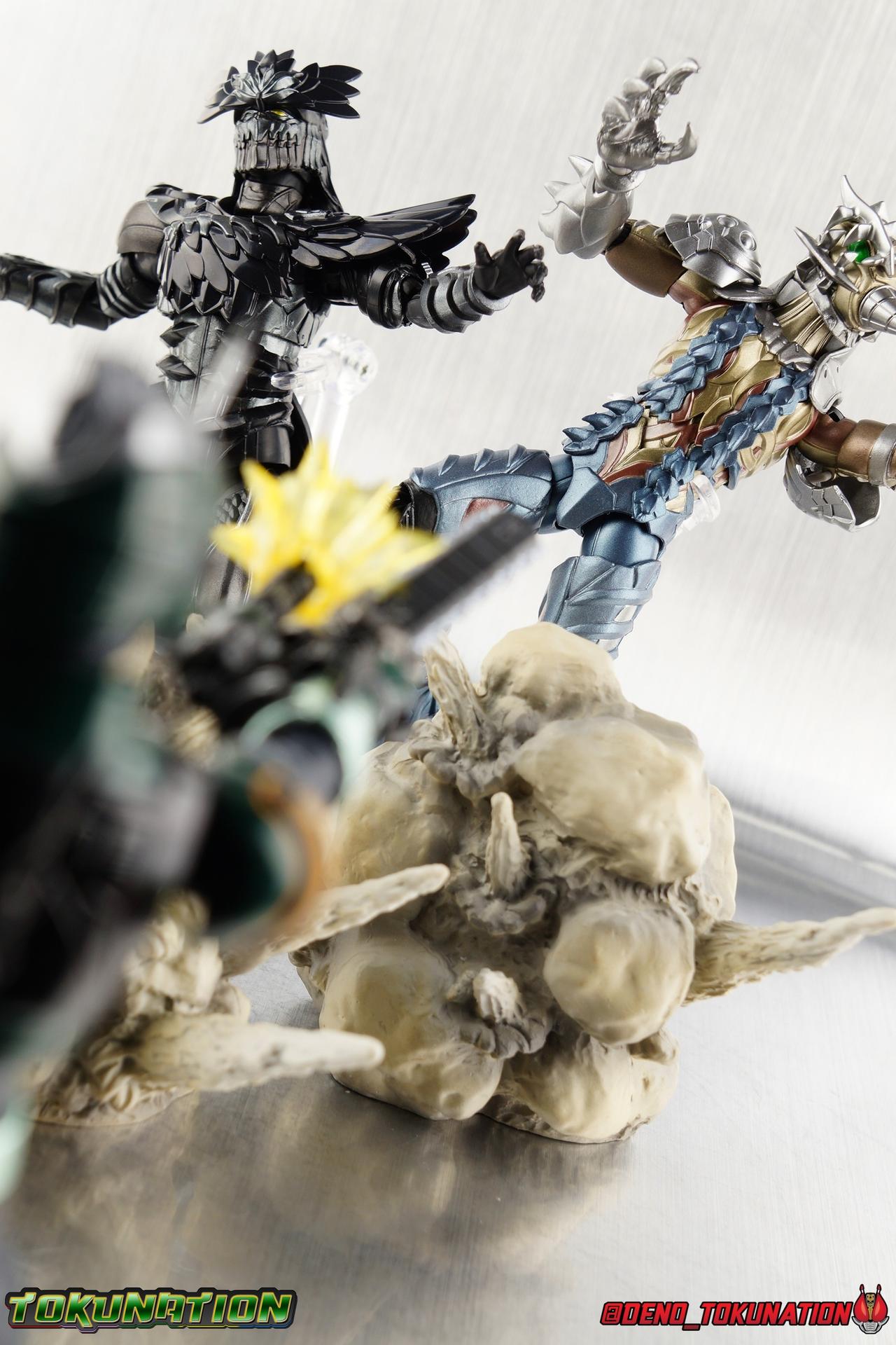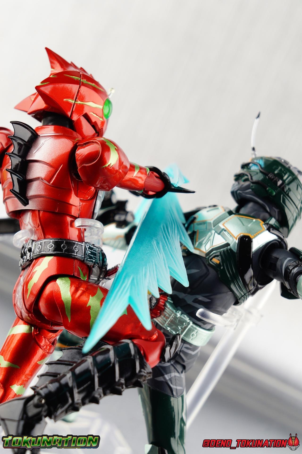 ** Spoilers for Amazons The Last Judgement abound in this review. Read at your own risk! Two years on from Neo's death, Omega is hunted. Haruka and Mizuki have barely escaped 4C when they cross paths with an unusual home for children and a man named Midou. Little do they know, this place is merely a buffet, but not for Amazons. For humans. A new terrifying iteration of the Sigma Project has been undertaken, and the discovery of what keeps it going, will shake Haruka to his core. As the hunters become the hunted, the man named Midou proclaims himself Neo Alpha, the one to surpass Jin Takayama and the original madness of the Amazon Cells. Packaging Just as the Amazons that preceded him, Neo Alpha comes in a pretty dark box with some great stock photos. Alpha's color scheme is pretty dark as well however so everything tends to blend together a lot unfortunately. As with regular Alpha, the name is spelled as "Alfa" on the box. In Jin/Alpha's case the name Alpha is relative to Haruka's Omega. Midou sees himself as the better version of Jin, hence his self naming as Neo Alpha. Regardless, it should be "Alpha" not "Alfa". It's just a bad romanization. Main Figure The end is nigh for the creatures known as Amazons. And sadly, it would seem the same can be said for their figuarts as well. As of the writing of this review, no further Amazons figures have been confirmed for release. In fact the only displayed prototypes seen since the dual reveal of Crow Amazon & Neo Alpha, were the Last Judgement Ver. Alpha & Omega. Neither of which have been seen for some time. So it's fitting that Neo Alpha ends the line as it currently stands, especially considering his well, violent, death. You're probably familiar with this figure already, that is if you own Amazon Neo. Neo was absolutely one of my favorite release in the Amazons line. It was a really great mold that changed things up from previous releases, and it helped that the design deviated to a more armored & cybernetic look. I also enjoyed how elements of the design were borrowed for New Omega. Neo Alpha takes the Neo mold and really militarizes the design. Which in the context of the film's story, makes so much sense when you think about the job Midou is tasked with. In the same way that Neo was decked out in some gorgeous metallic blue and brushed silver, a color scheme that really sold me on the figure, Neo Alpha sells me so hard with the finer details of the paint scheme. Using quite a few more paint applications than usual, Neo Alpha features 4 distinct shades of green both metallic and glossy. There's some bright yellow pin-striping that really offsets the varying greens and glossy blacks nicely as well. The best details however are the alternating gray camo stripes that cover the abdomen hips and arms. These bits are patterned the same way as Neo's red and blue, but the subtlety of the grays really works well with the various greens and yellows of the suit. The various Alpha & Omega releases, and to a lesser extent Sigma as well as Mole & Crow all had faults that irked me. But the Neo mold was a real winner to me. Unlike the others, most of the articulation is solidly intact with this design. Despite the bulk of the armor carried over to Neo Alpha, the figure is very free to move. The ankles are unobstructed so you can get nice solid balance from them. Their forward motion is limited only by the bottom of the shin armor, but not terribly so. The knees are really perfect. Unlike with Omega where the leg fins limited the legs to 90 degree angles, Neo Alpha is free to move because the shin armor can rotate the fins away from the back of the leg. I'm still not super in love with the drop down hips the two Neo's feature, but they aren't a huge detractor in their cases. Now this is a really odd thing for this figure, but more so the character in the film. Neo Alpha has the Neo Amazons Driver attached to his belt, with an Ampule molded into it just like New Omega & Neo. However, in The Last Judgement, Midou only uses his unique Amazons Register attached to the left arm to transform. In much the same way that Iyu/Crow did. Only using the driver to summon his weapon arm. I can only assume a Driver was incorporated into his design simply as a way to set him apart from standard Amazons and make him a rider like the other 4, and I can get that. But he's already a remold of the Neo suit in both mediums, so the Driver was unnecessary to communicate his rider-ness. It's just weird. The upper body is engineered in such a way that it allows you to arch the back up and lean him forward for really savage and animal like poses, though it does expose a gap on his back side when done. The arms are free of most obstruction thanks to some great shoulder pad design, swivel biceps, and rotating forearm guards. My only real gripe with the arms is that the fist pegs are a little tight, and the hands a little difficult to exchange, mostly on the left arm which features the unique Militant Amazons Register. Amazon Neo Alpha does however deviate from the original Neo in one big way, the head. Taking inspiration for this design from a monitor lizard, Neo Alpha has a much more elongated and pronounced head than his predecessor. The new sort of bucket style head features really pretty blue compound eyes, a first for Amazons, and also has some admittedly oddly placed face guards that seem to emulate a football helmet a bit. The most striking piece of the helmet is the very elongated and fragile horn. The figure is packaged sideways in box because of it. So just be careful. As you can see I've assembled all of the Amazons together in this gallery for a big family photo and some comparisons. There's a shot in there as well where you'll notice a silver Amazon Neo as well. Don't let me deceive you, that's not an official figure. It's a custom Amazon Neo Sigma that was made by @Gigabeetle and made it's way to me. I just wanted to give him a brief little spotlight because Neo Sigma is