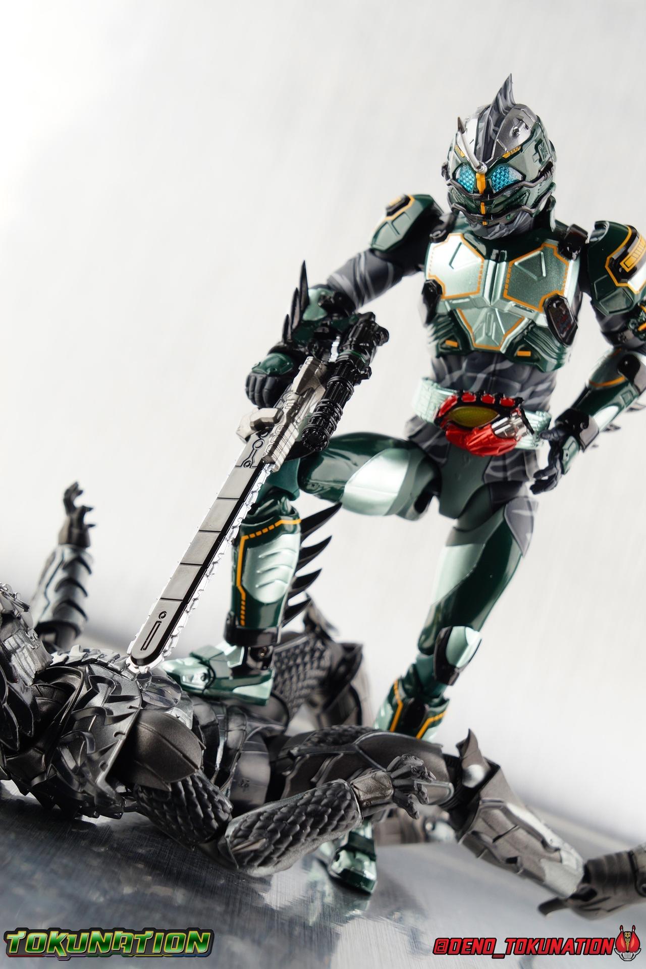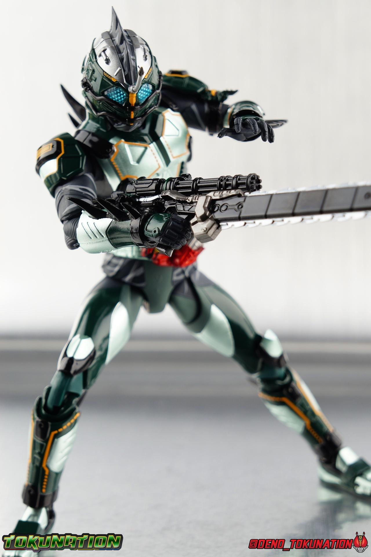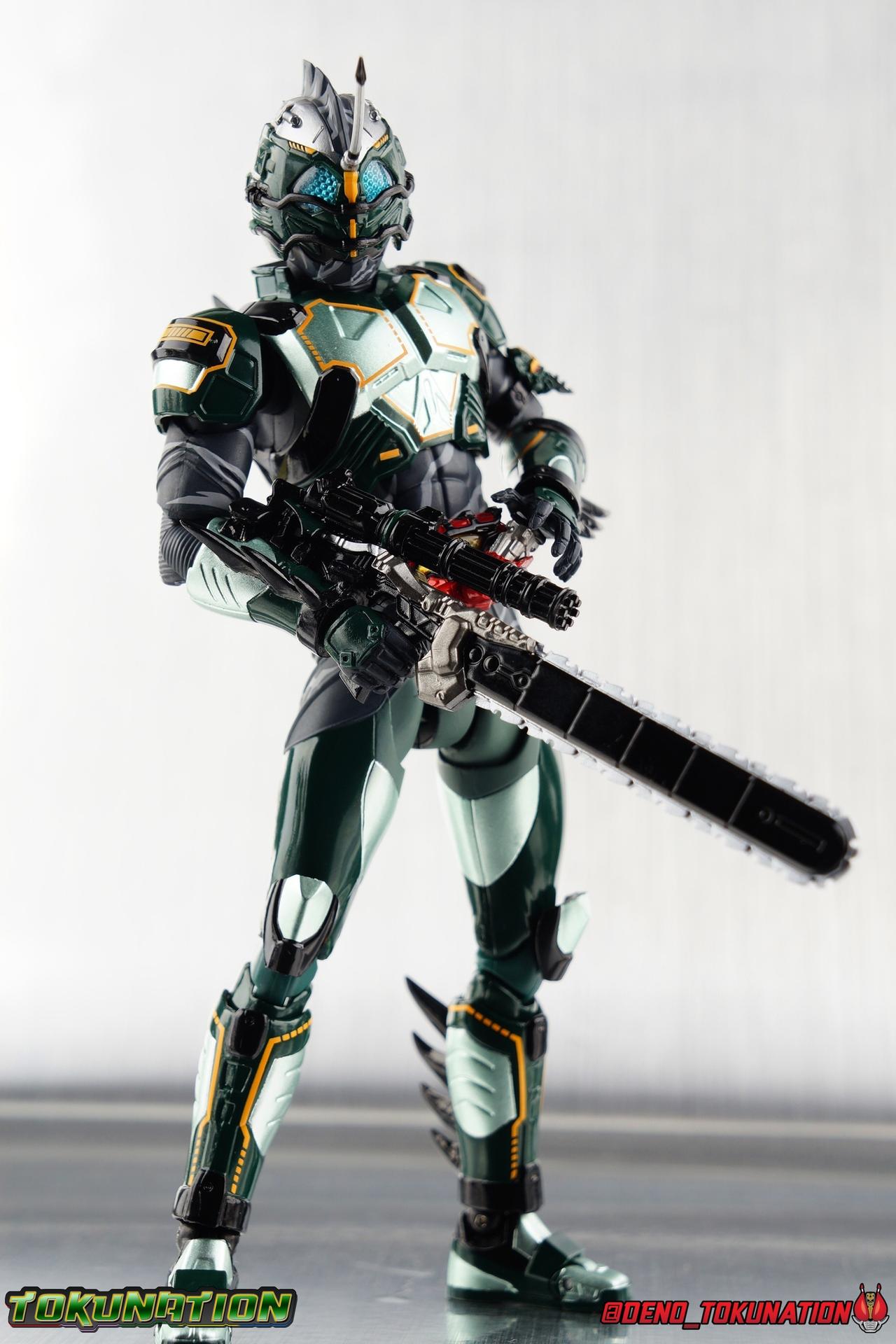 Much like with Neo I think it's fun to imagine what he'd look like without the armor - a black version of Alpha with white strips. Also, the hyper-murder-chaingunsaw-arm-of-doom has to among the most hardcode Rider weapons ever
